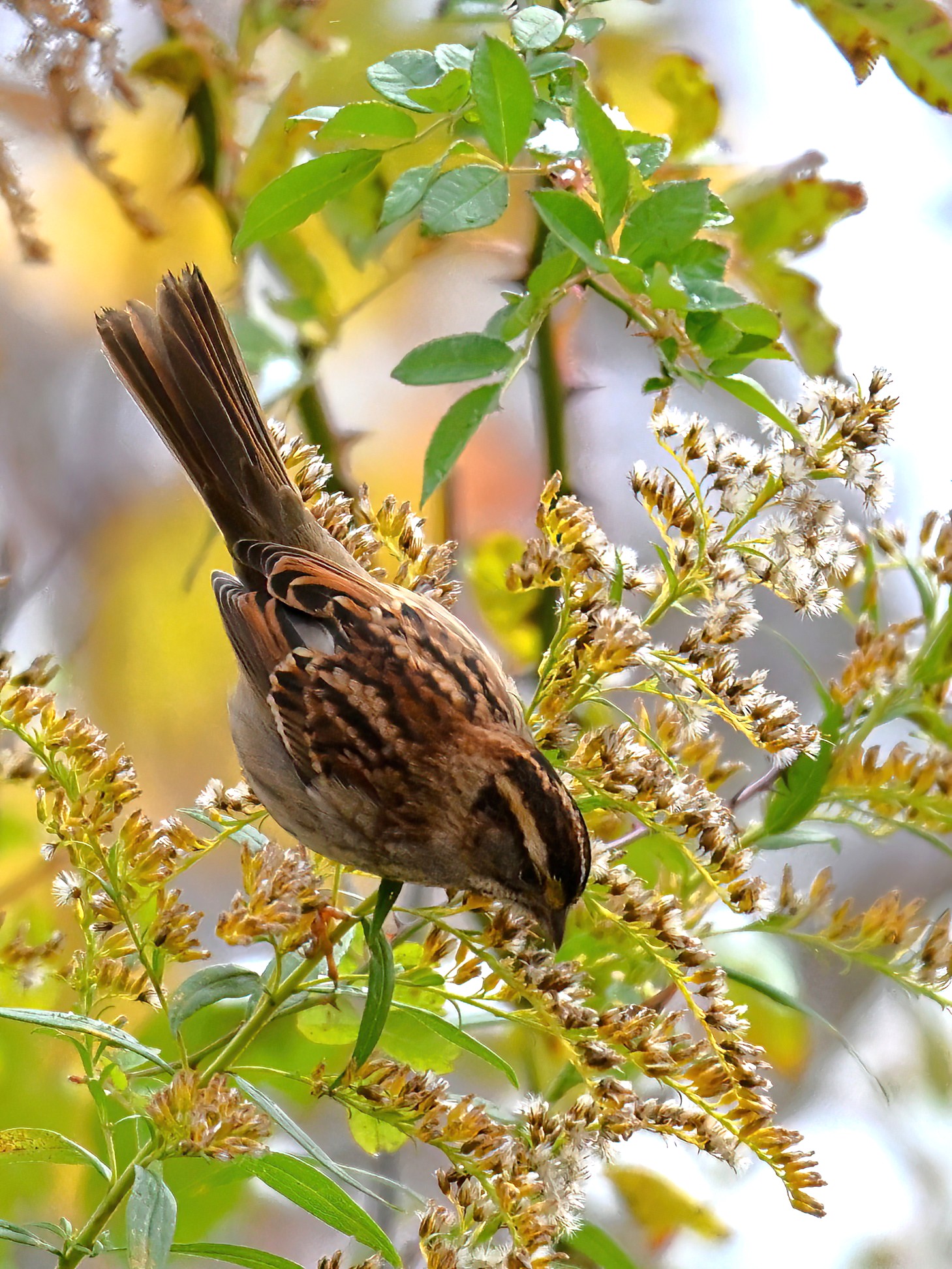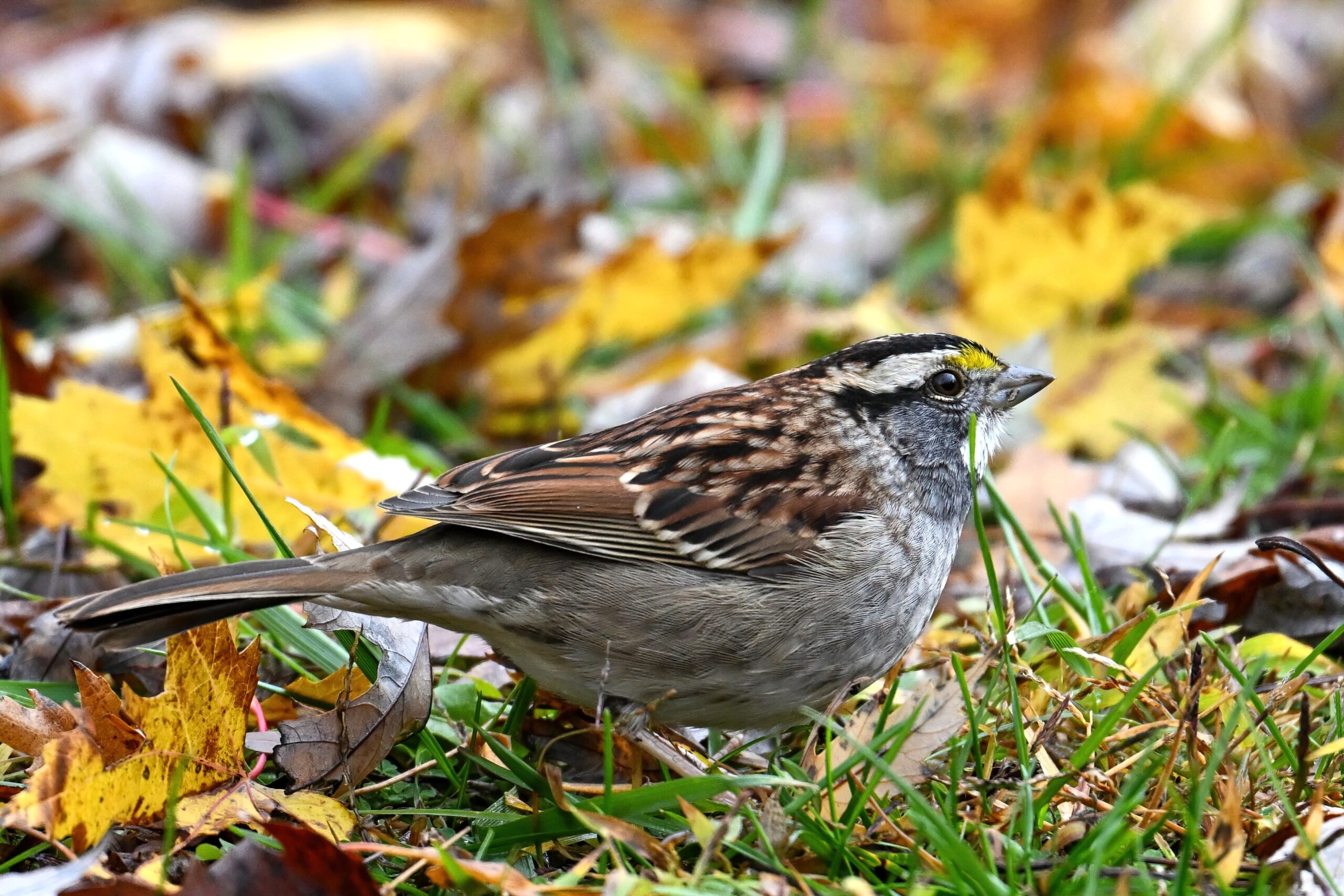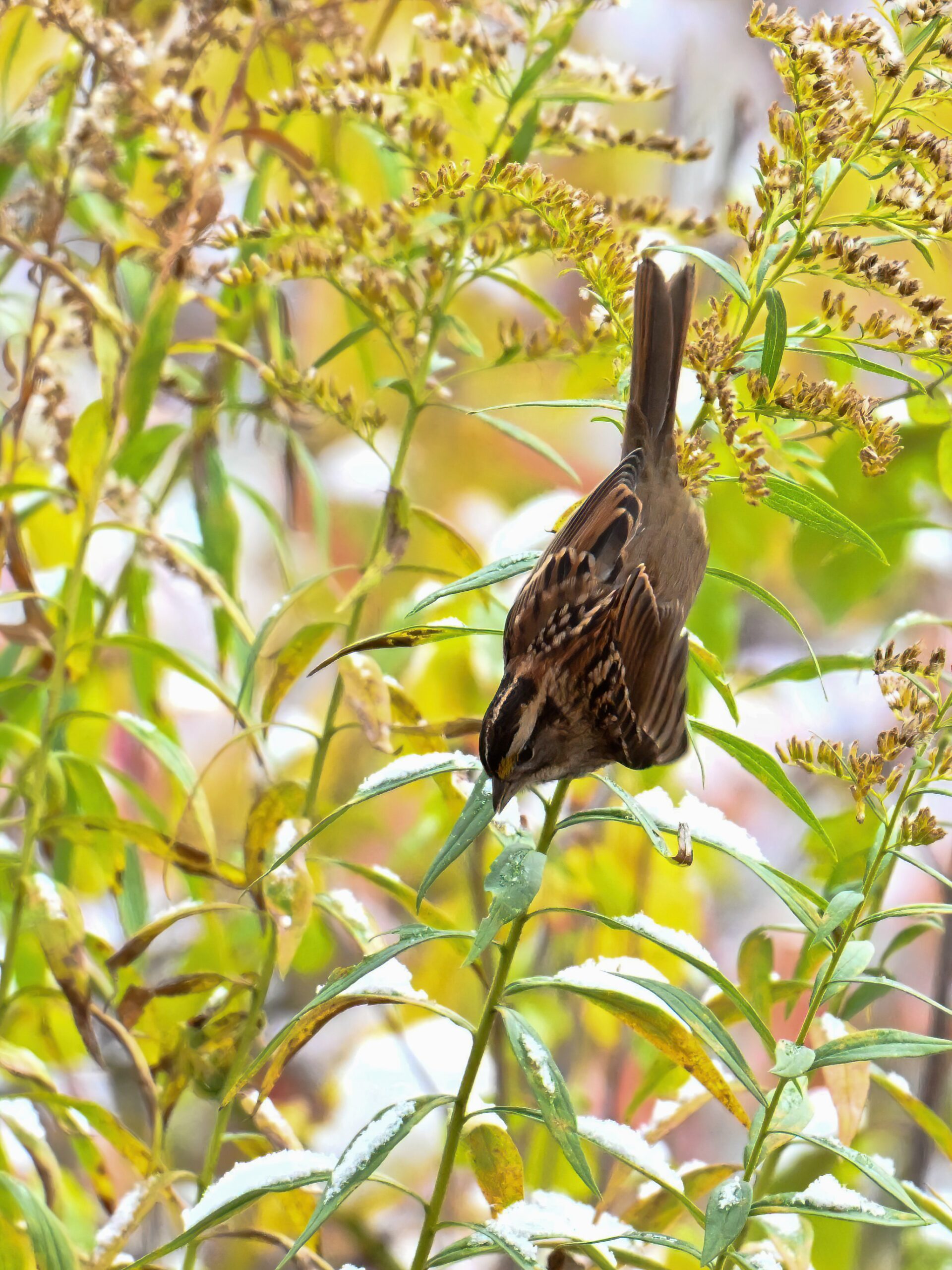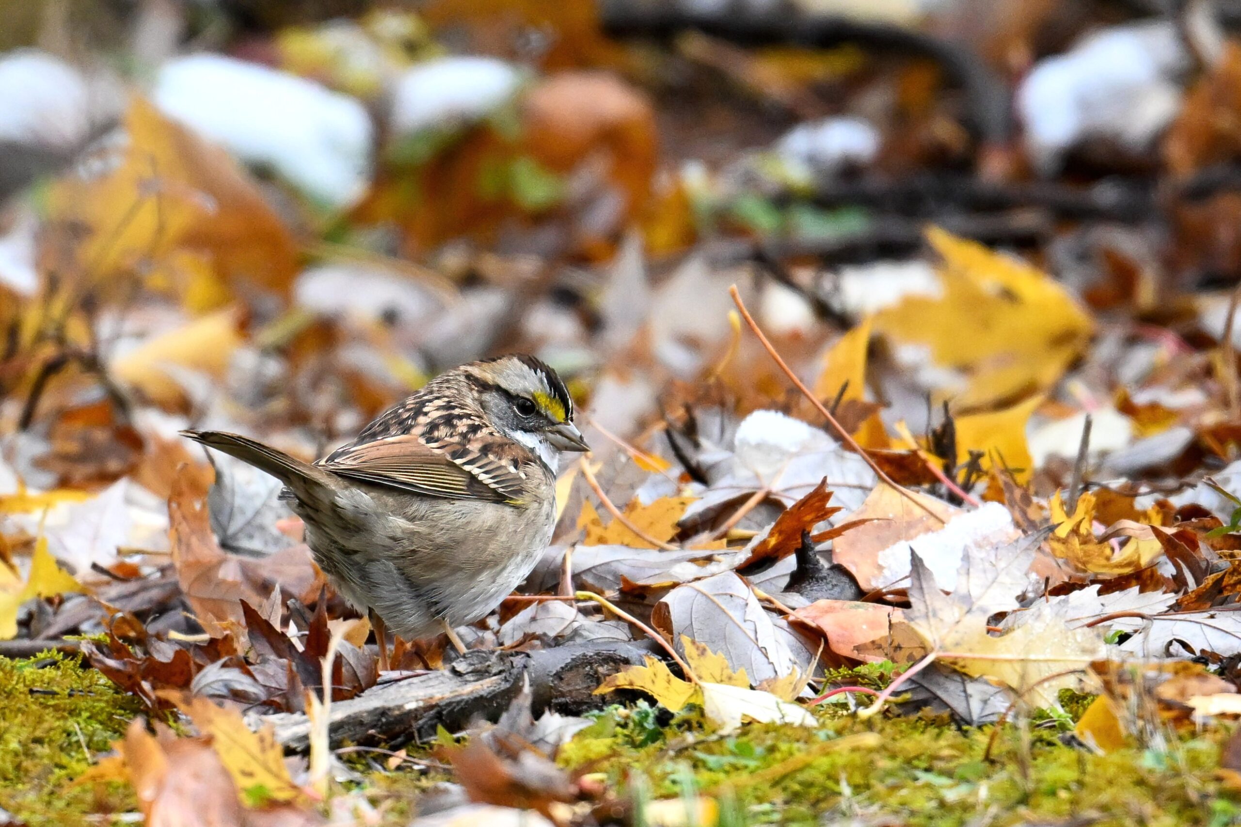 Taken under dark/gloomy conditions, some nice shots nevertheless of White-throated Sparrow (w/ foraging behaviour) at Scott Park earlier this week.
