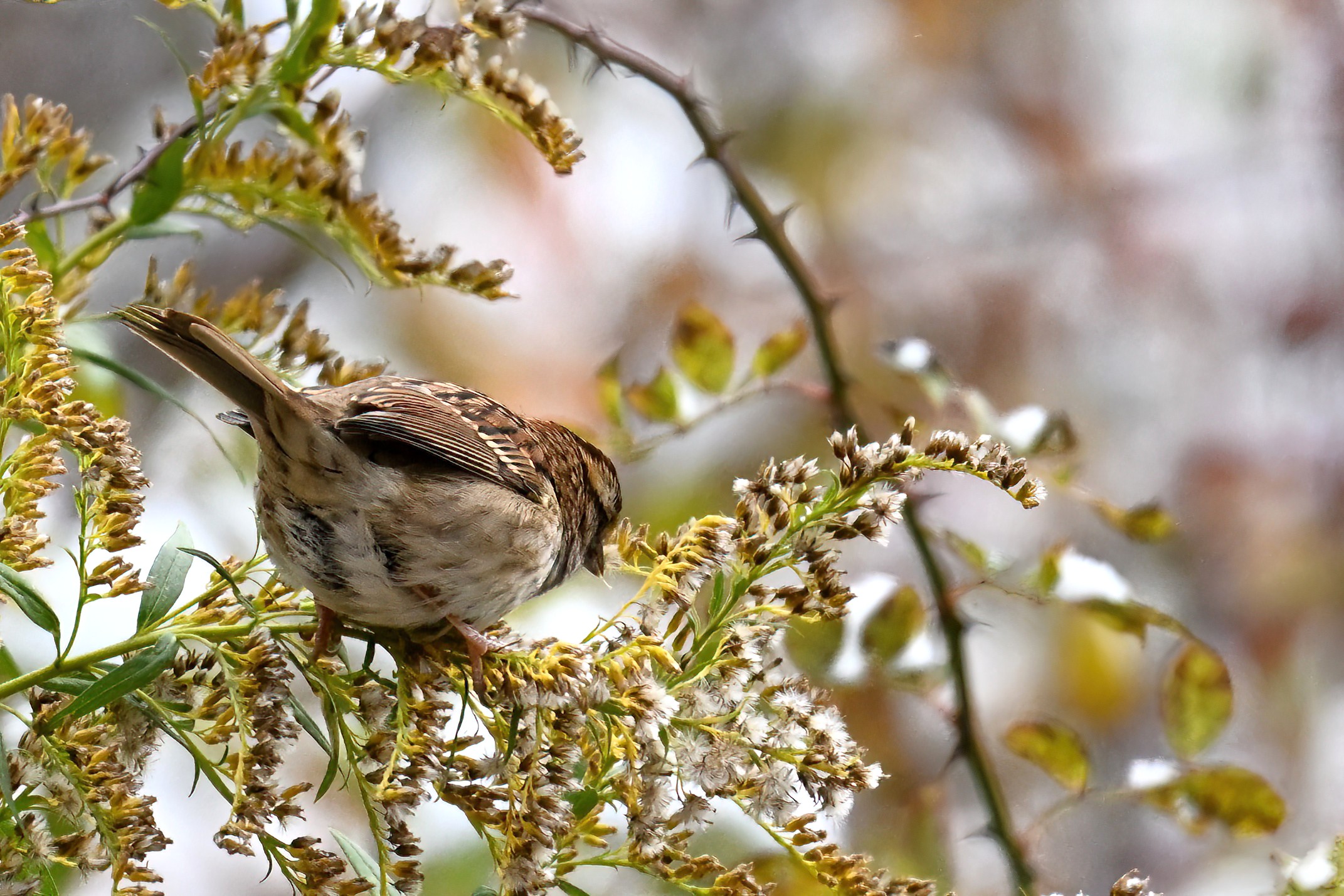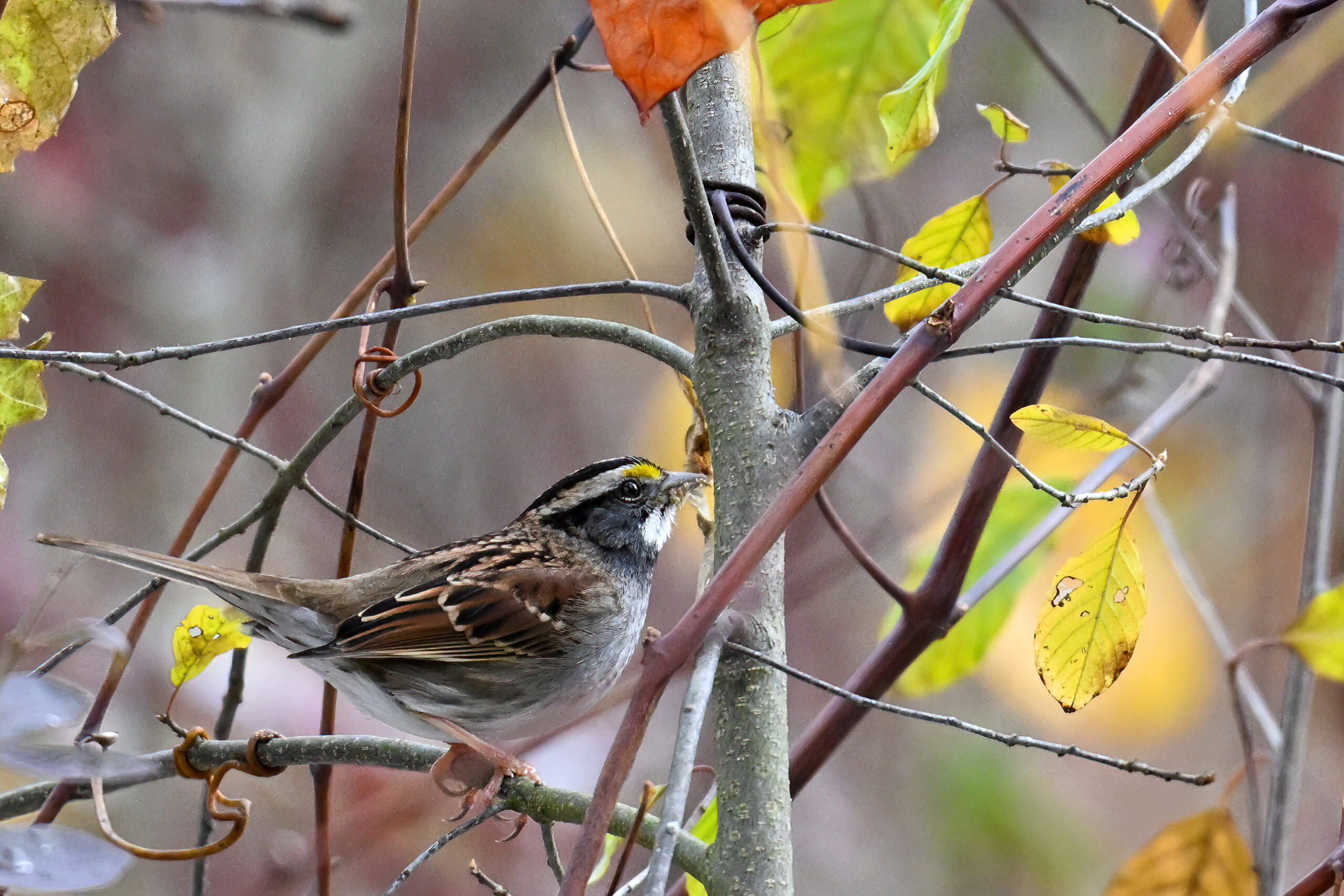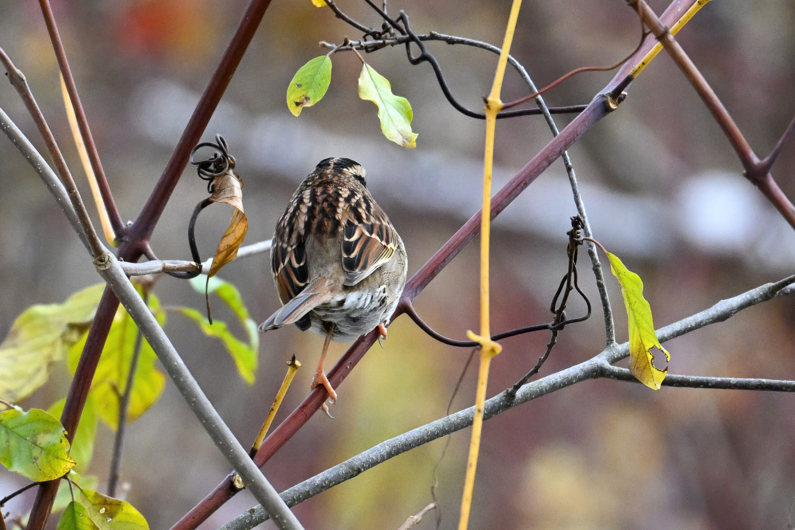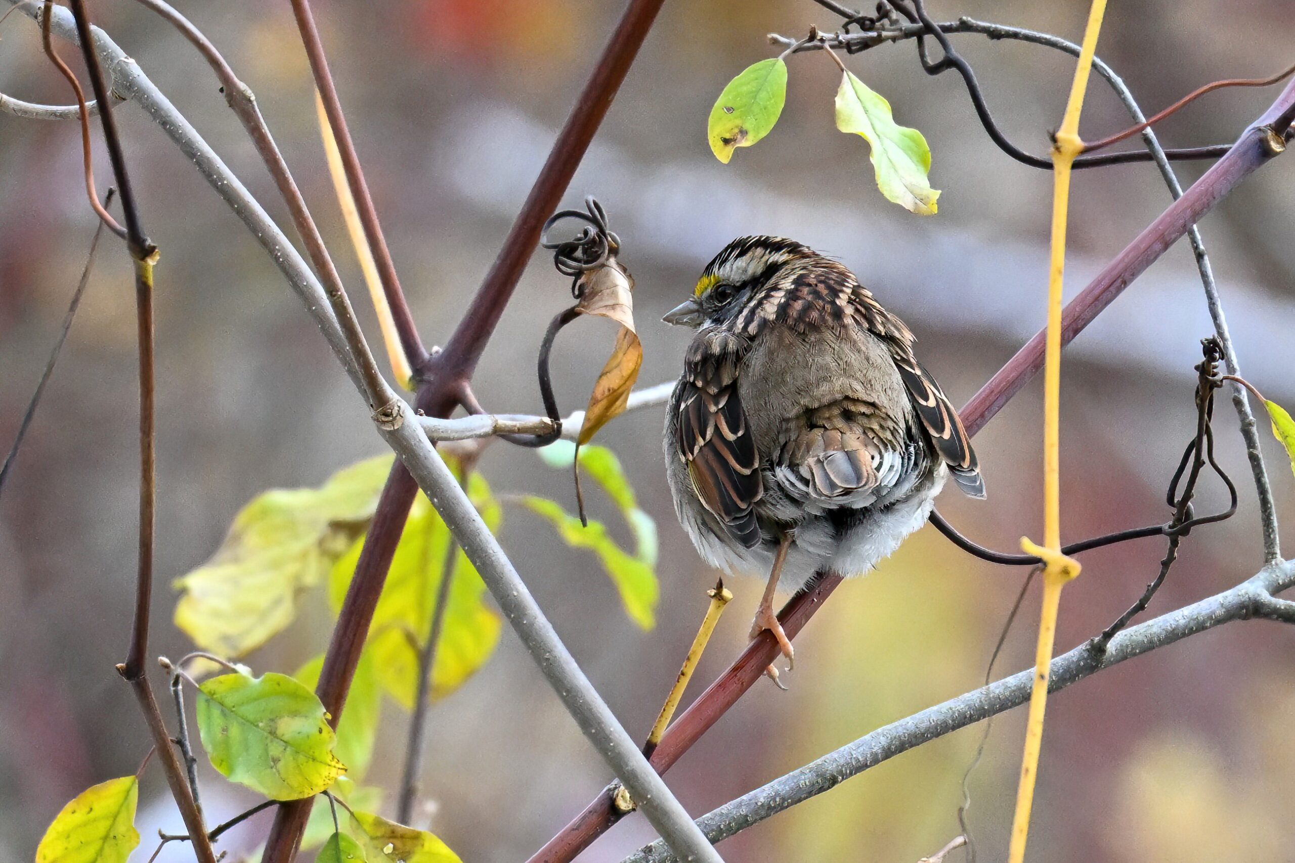 Taken under dark/gloomy conditions, some nice shots nevertheless of White-throated Sparrow (w/ foraging behaviour) at Scott Park earlier this week.