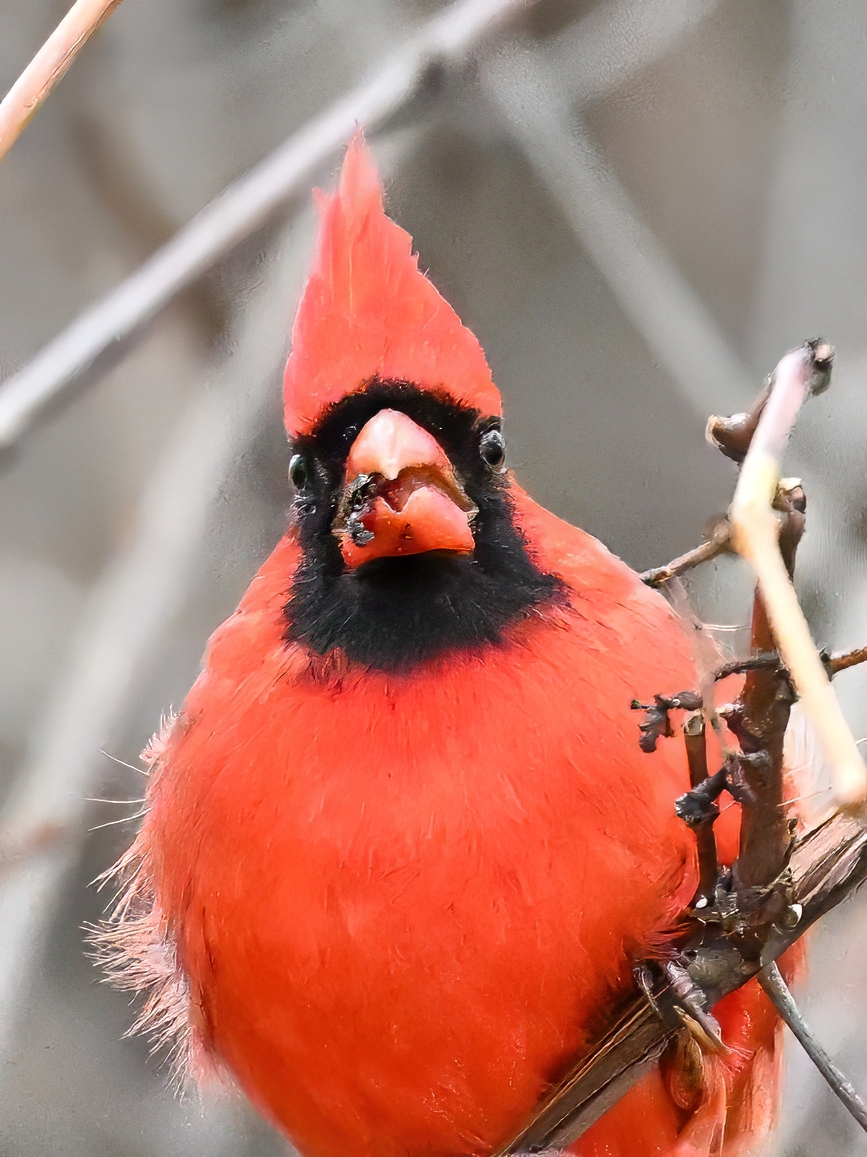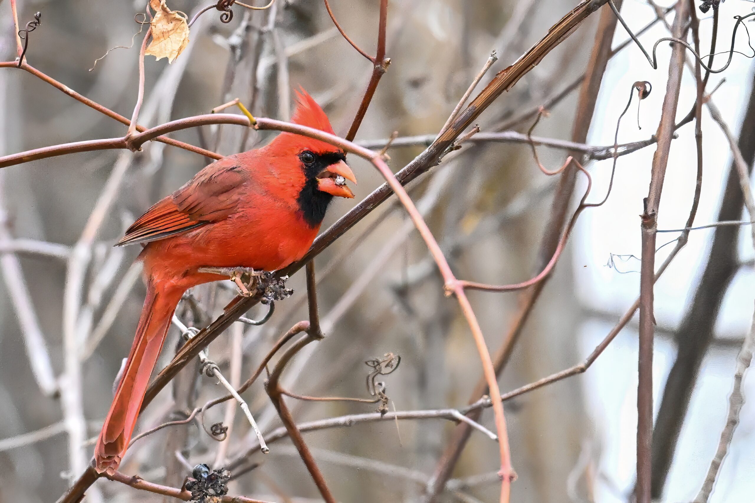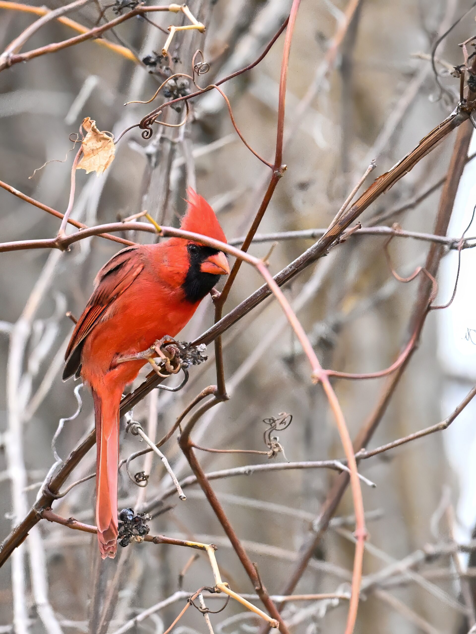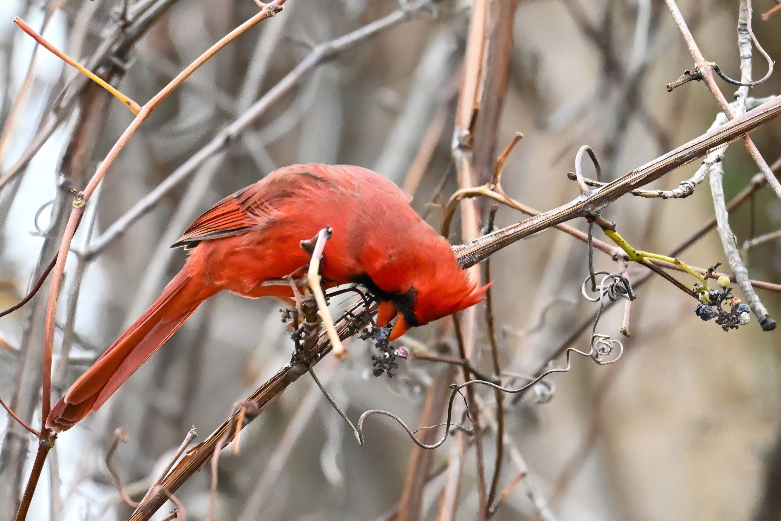 Nearby same date/location, fairly good pictures of beautiful male Northern Cardinal exhibiting foraging behaviour: