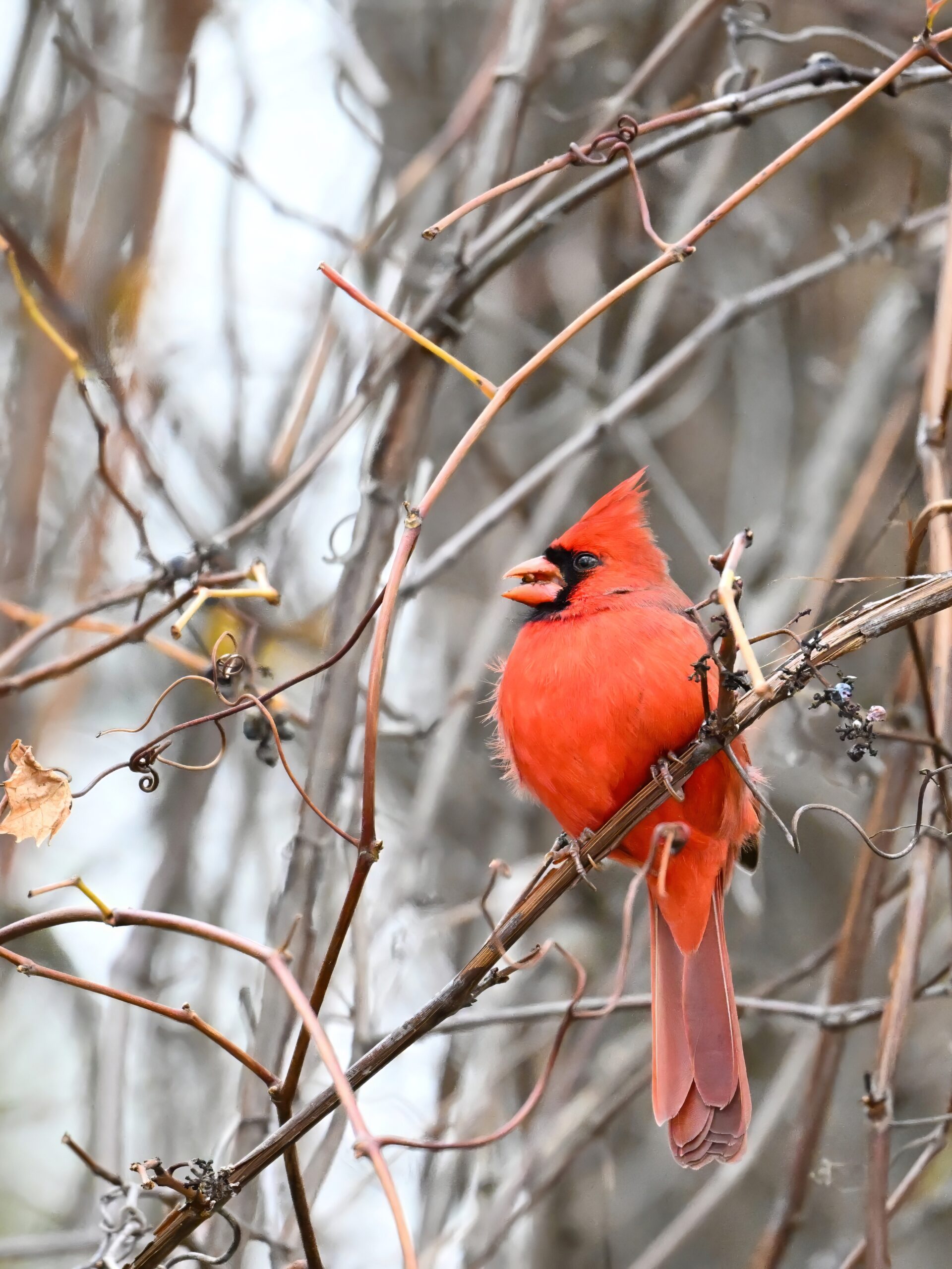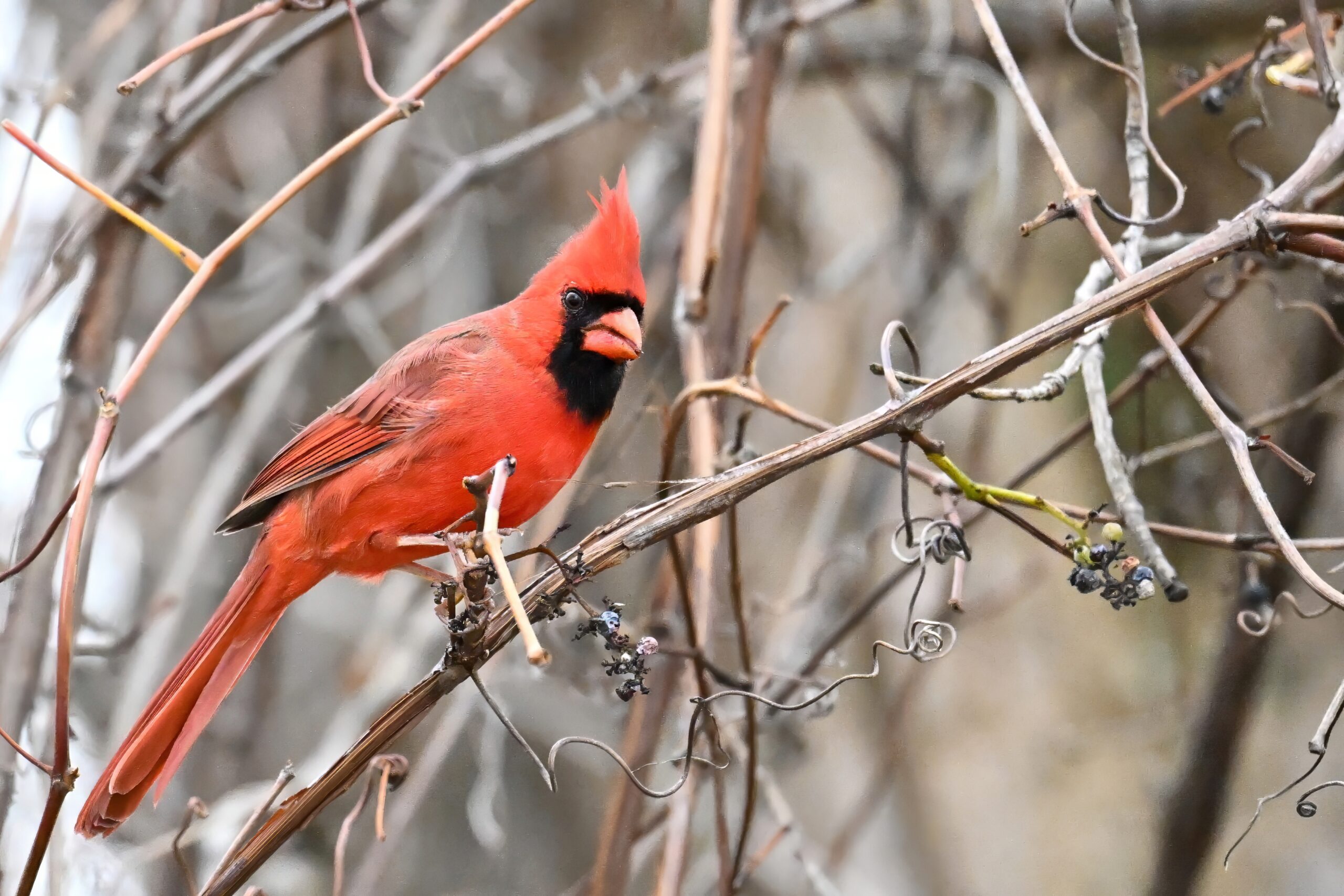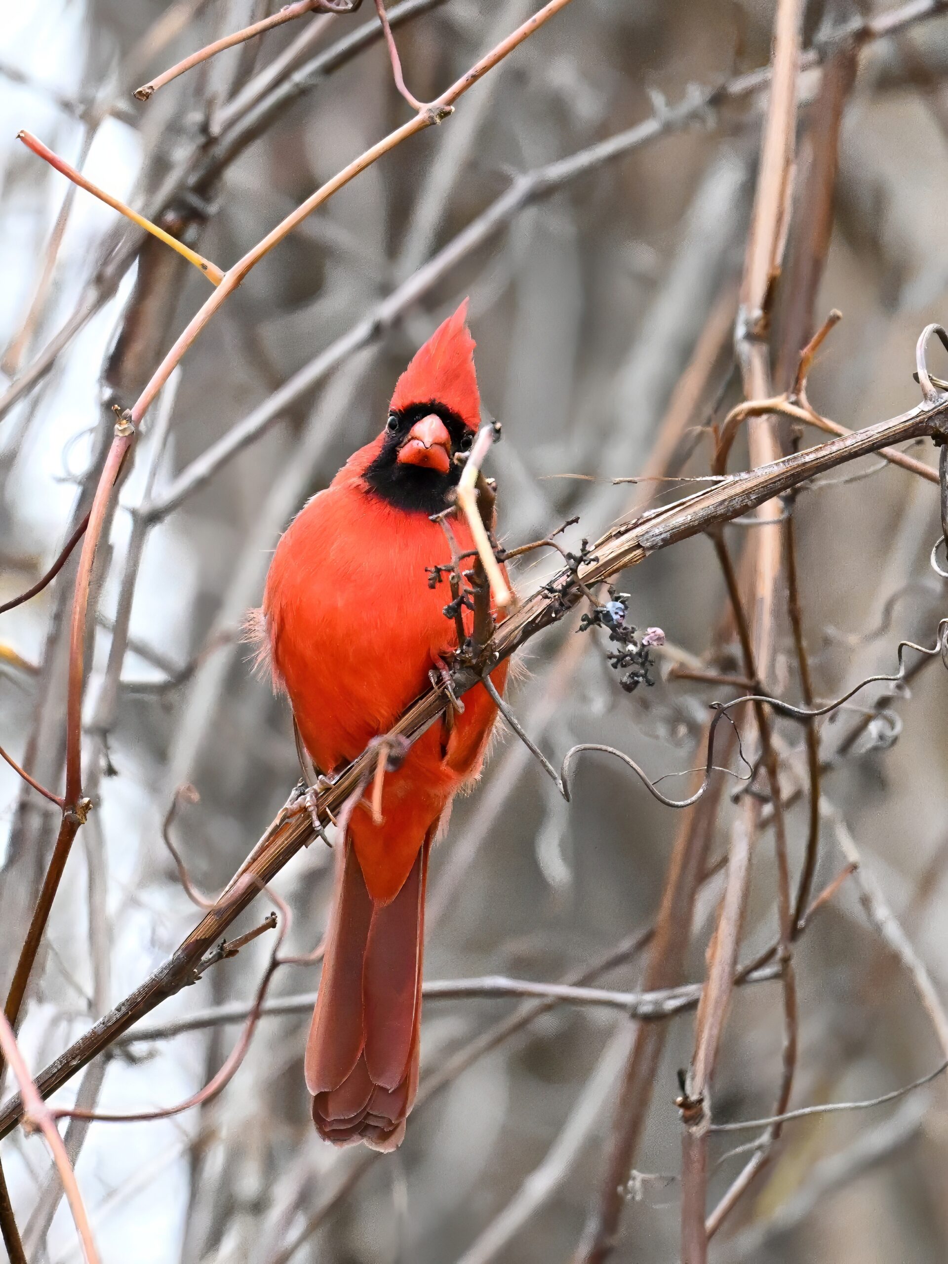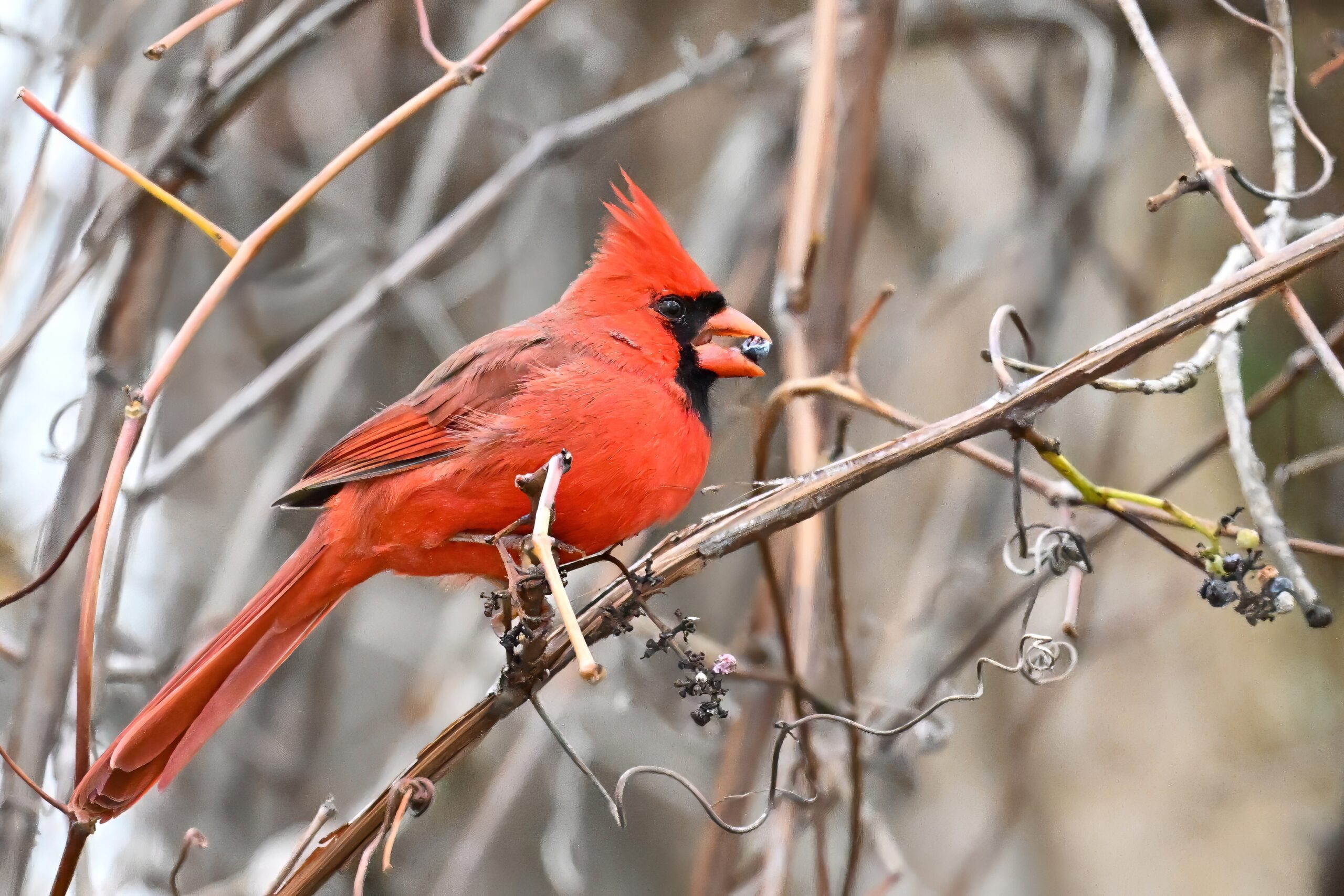 Nearby same date/location, fairly good pictures of beautiful male Northern Cardinal exhibiting foraging behaviour: