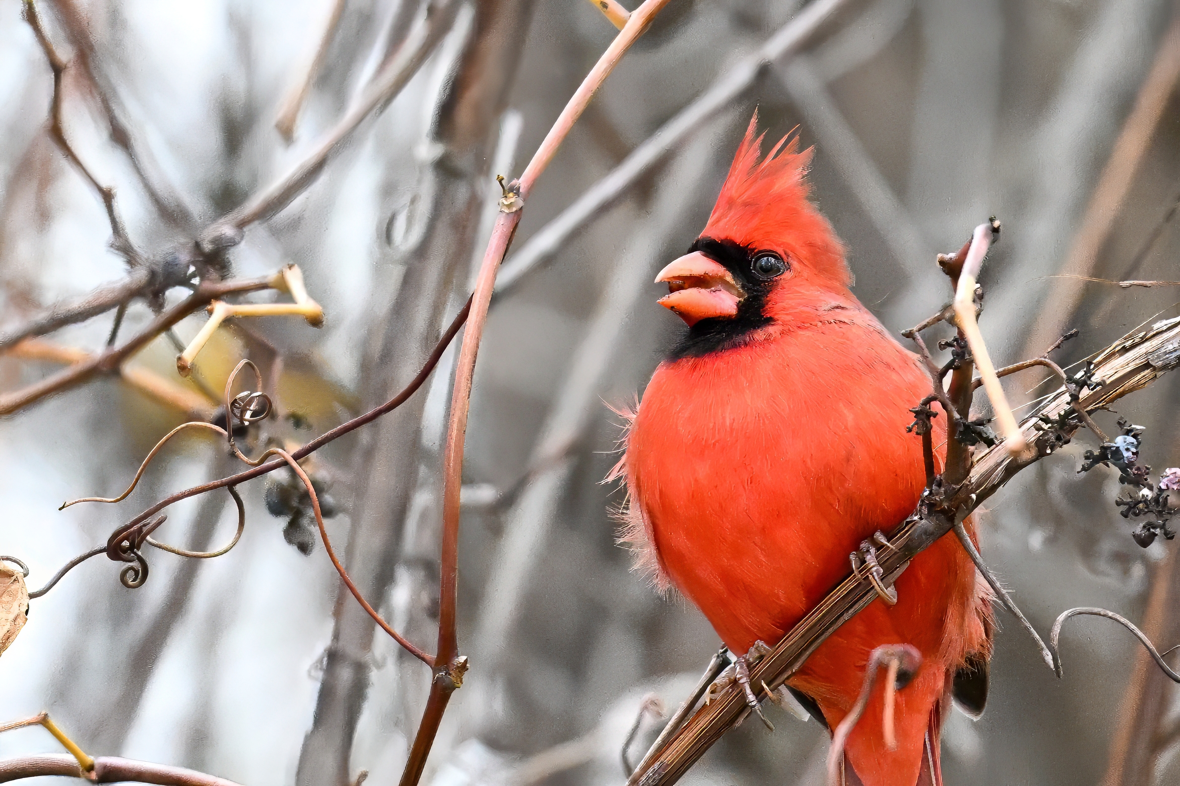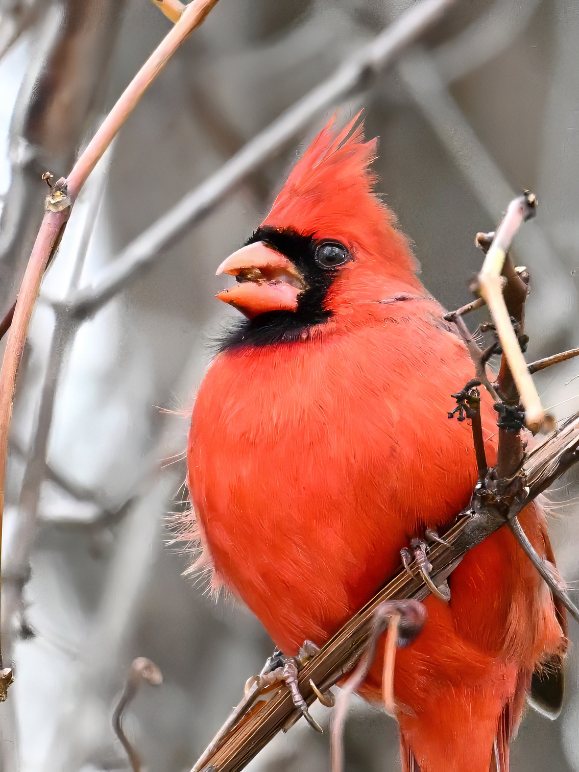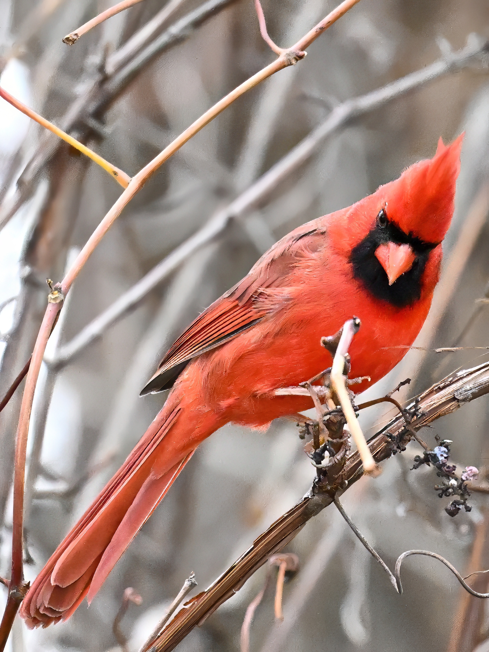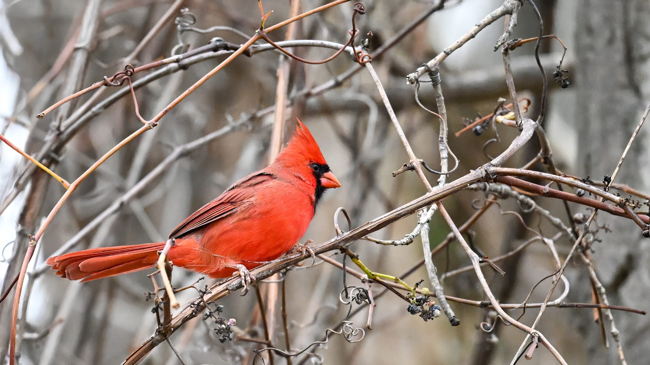 Nearby same date/location, fairly good pictures of beautiful male Northern Cardinal exhibiting foraging behaviour: