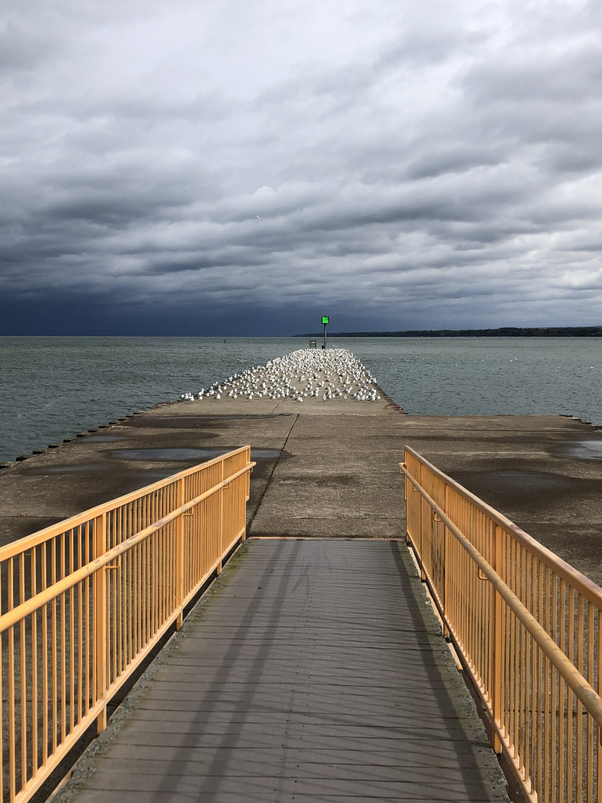 Despite cloudy conditions, it’s nice shots from the weekend before last on/near Presque Isle Bay just north of Leo’s Landing at Presque Isle State Park. Following is a view looking east of the entrance channel to Presque Isle Bay with North Pier on the left and South Pier on the right: