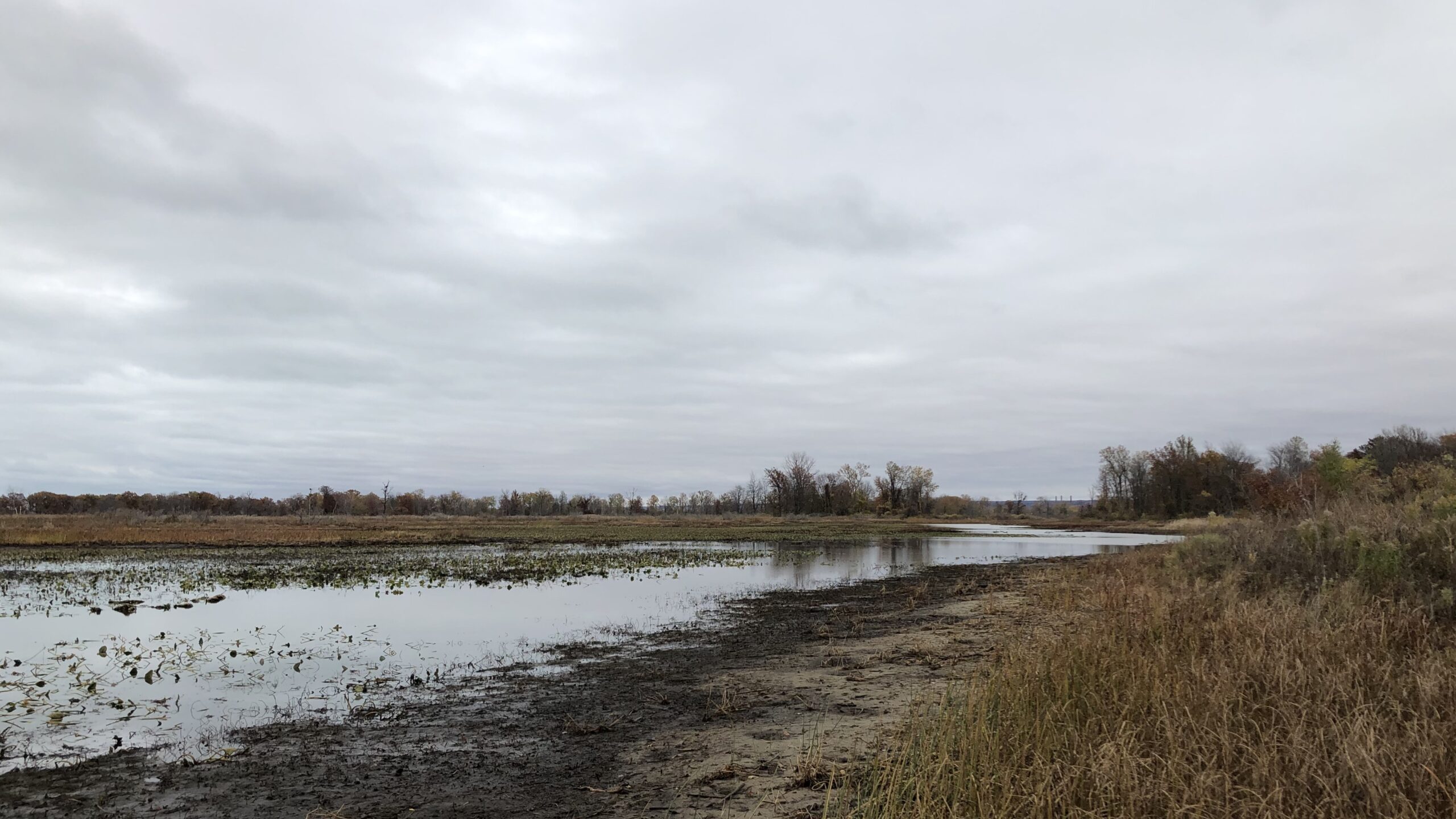 Water level’s down generally, hence possible to walk along the muddy shore of Long Pond for quite a distance:
