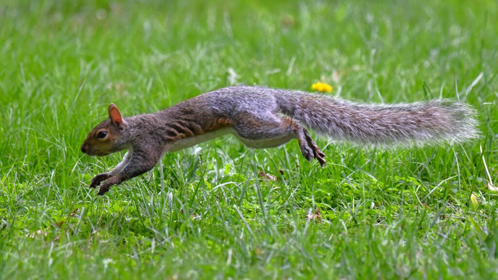 Eastern Gray Squirrel (Sciurus carolinensis) “leaping to attack”
