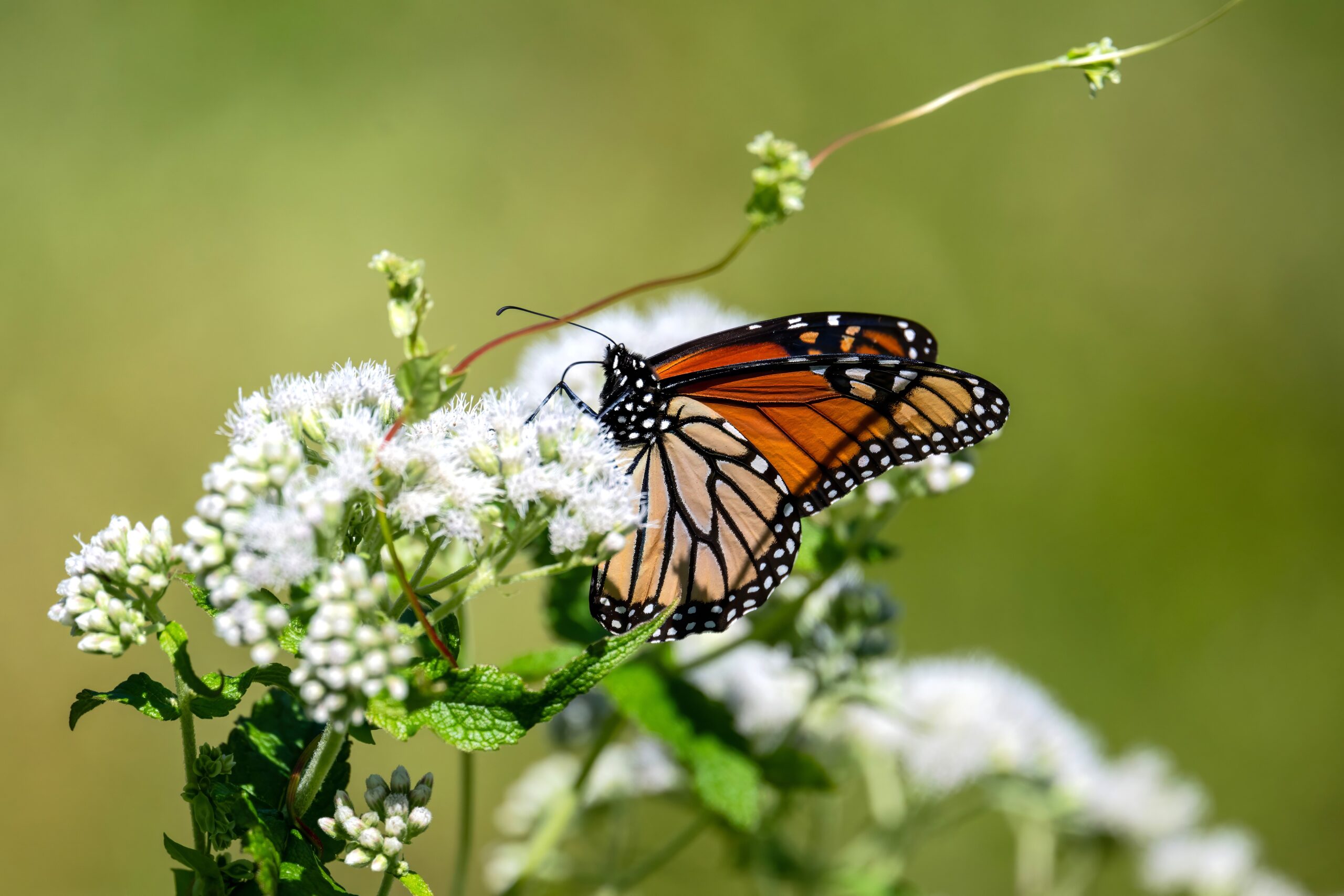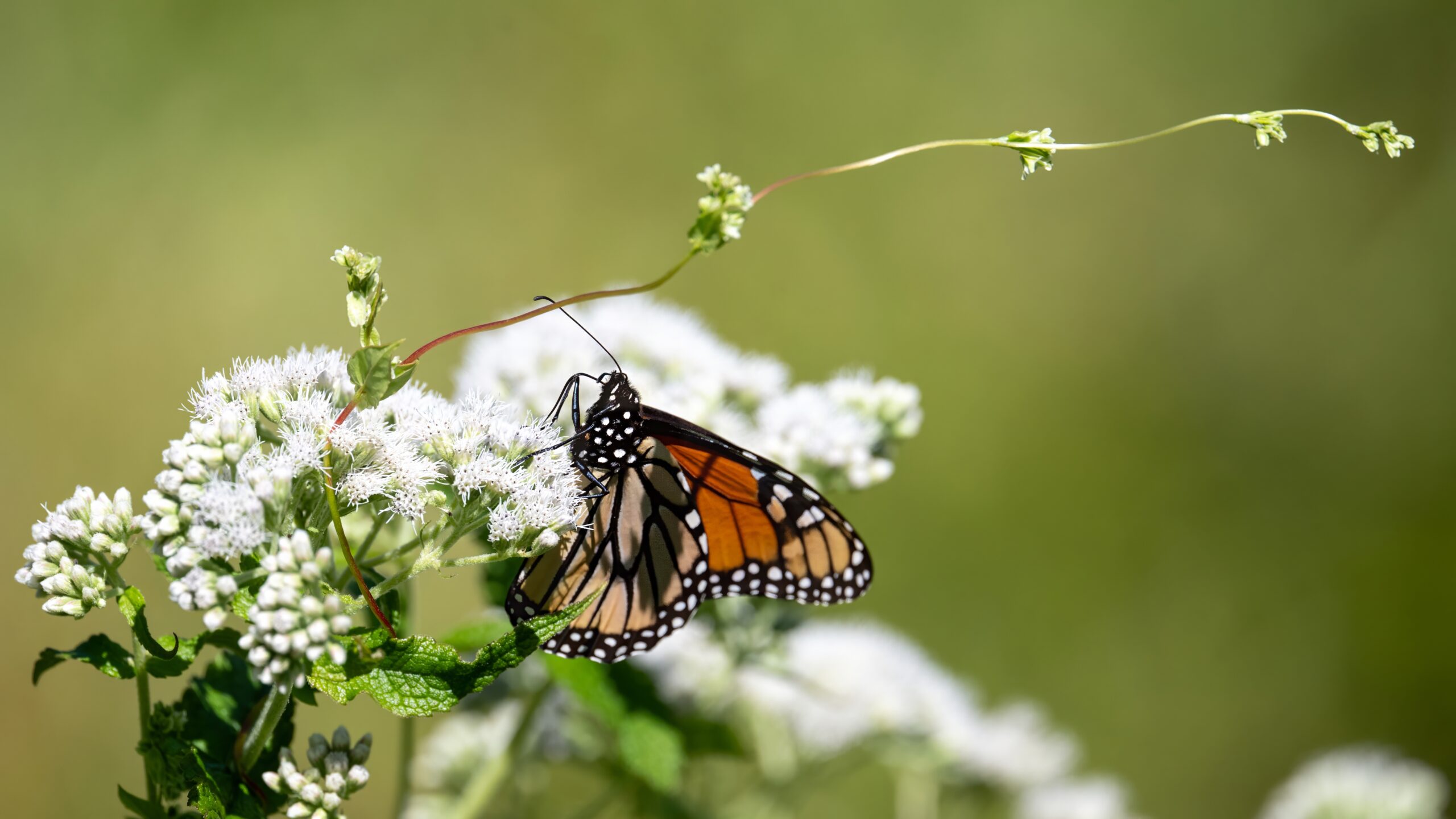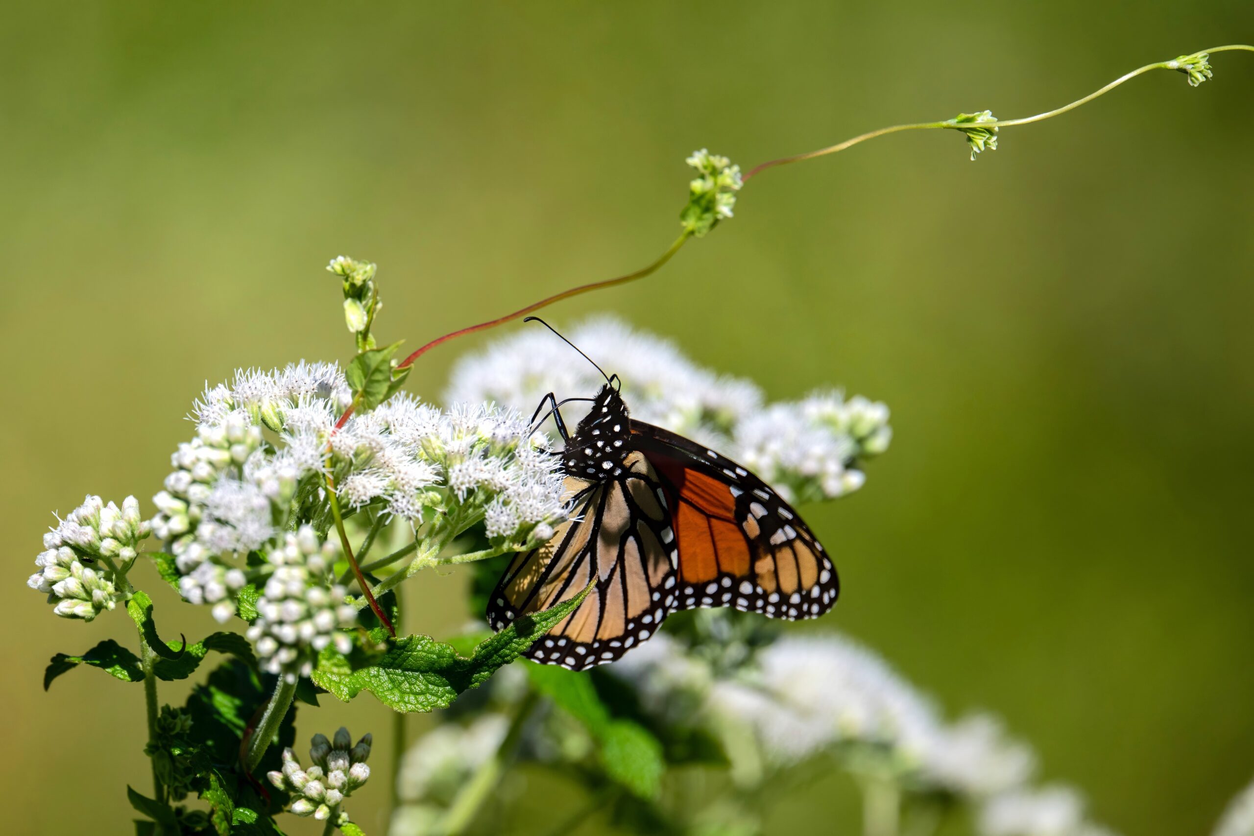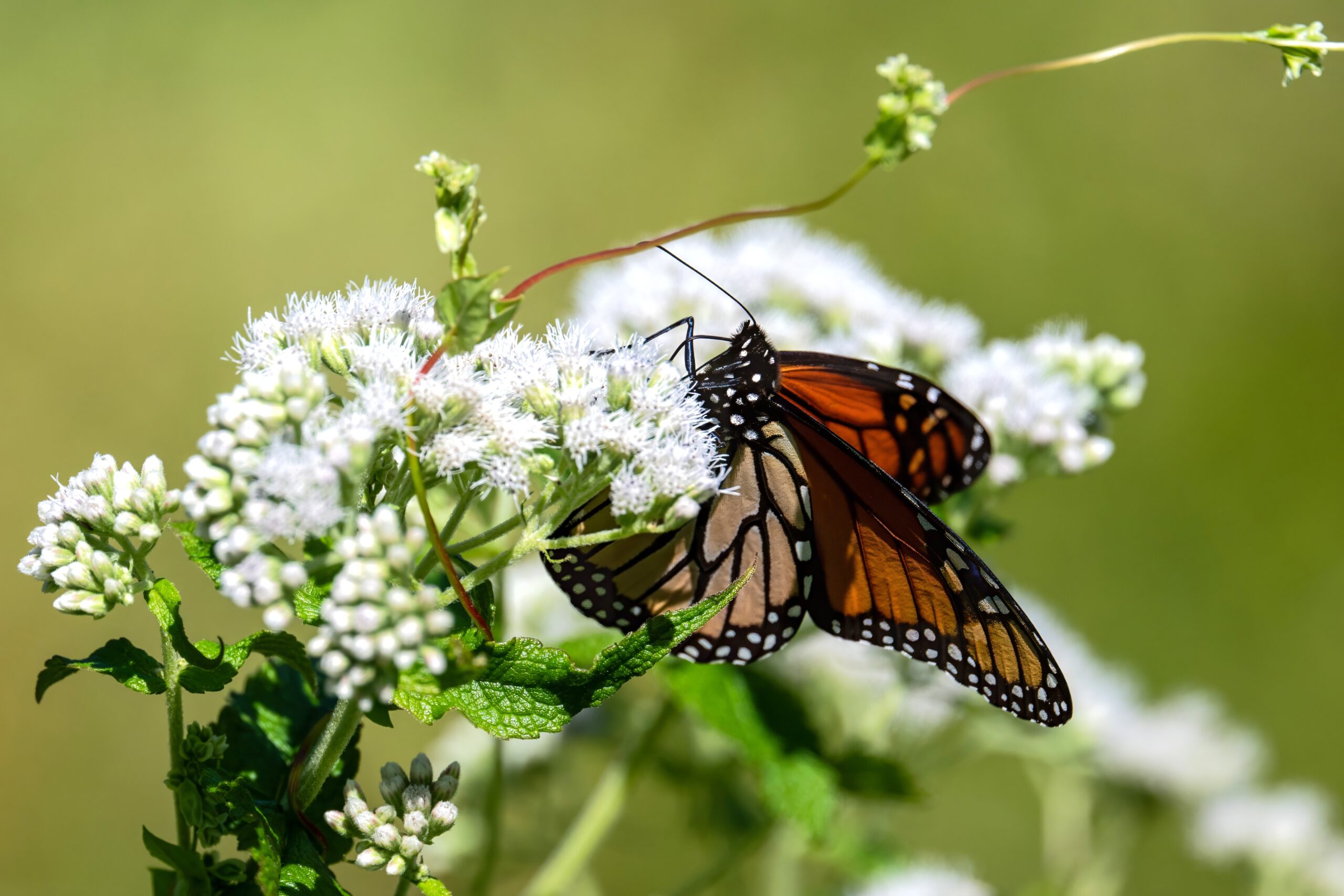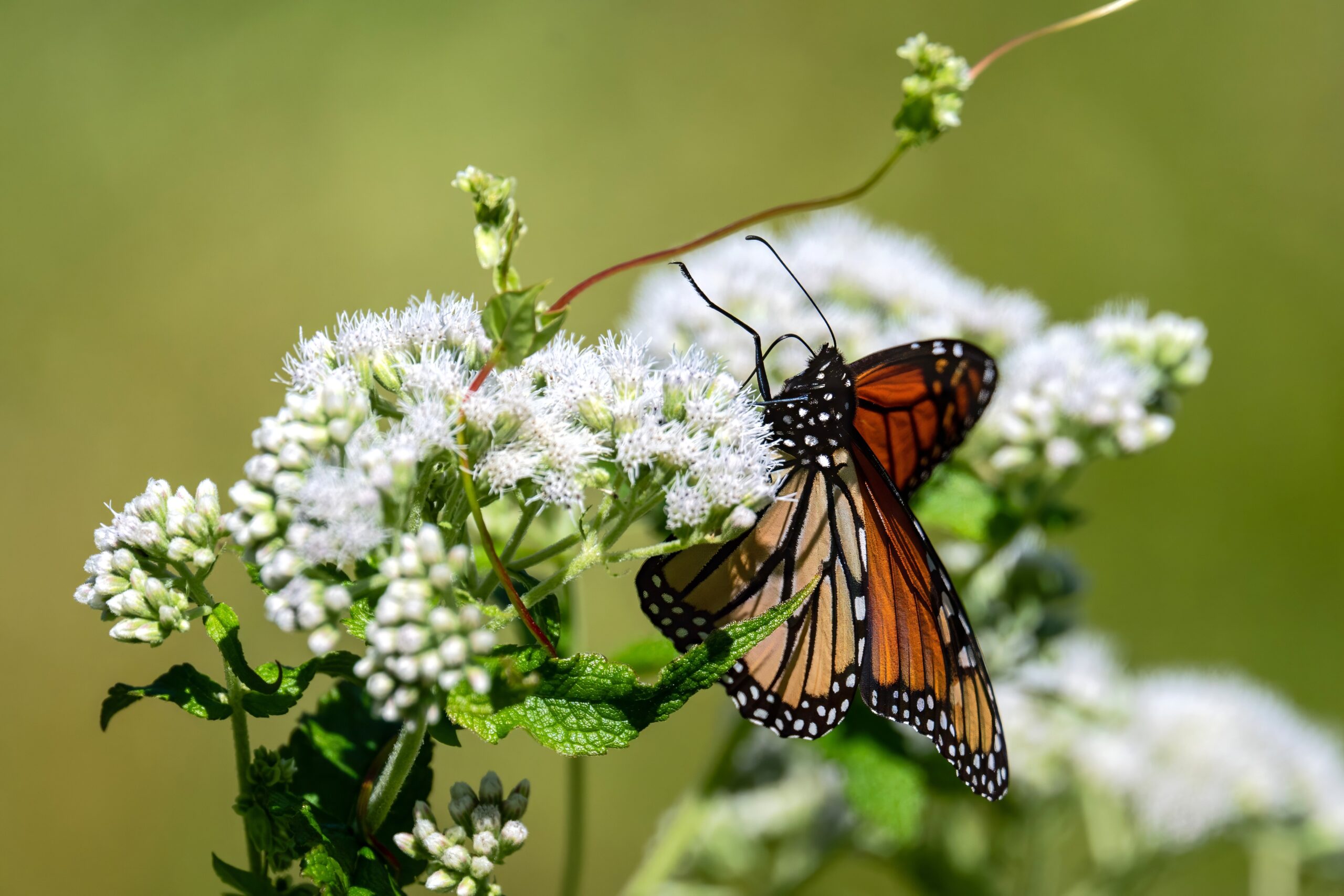 ID tips: Monarch has copious white spotting on the head and thorax (front part of main body) that Viceroy lacks; Monarch larger in size.