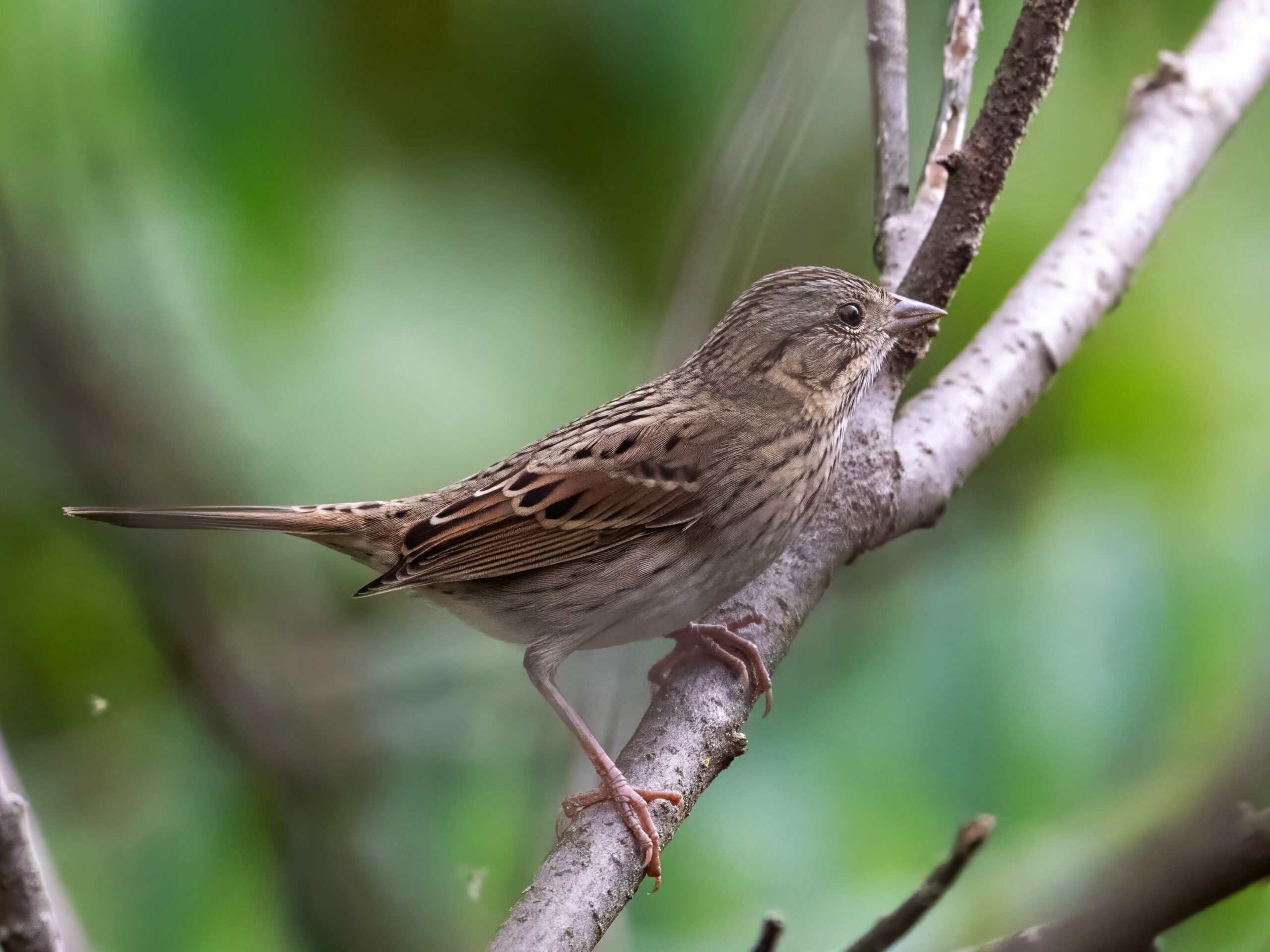 This was a nice sighting of the relatively reclusive and “not seen that often” Lincoln’s Sparrow. ID: finely streaked breast with buffy wash, as shown quite nicely in the shots above and below.