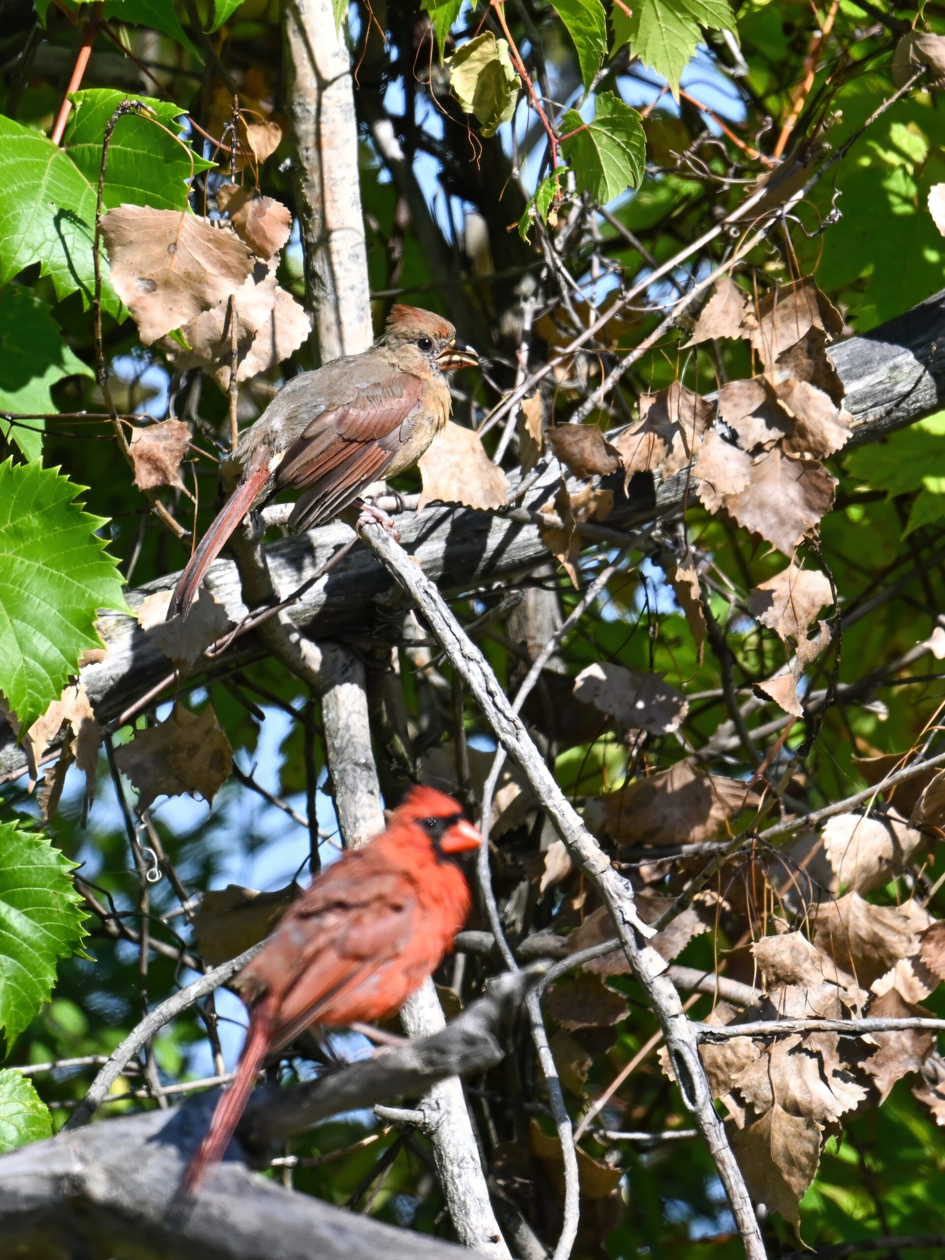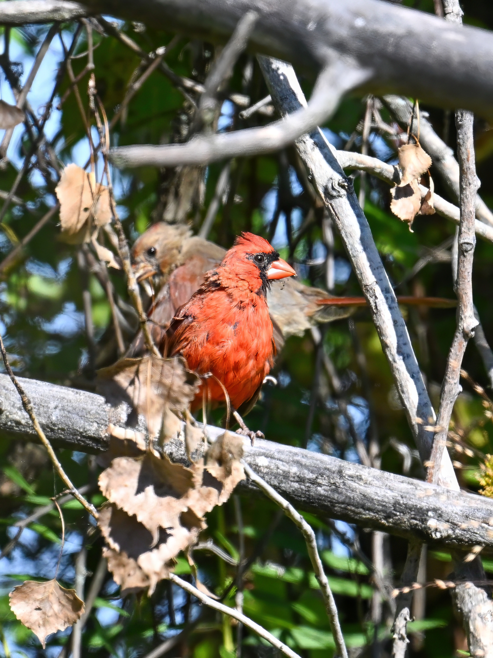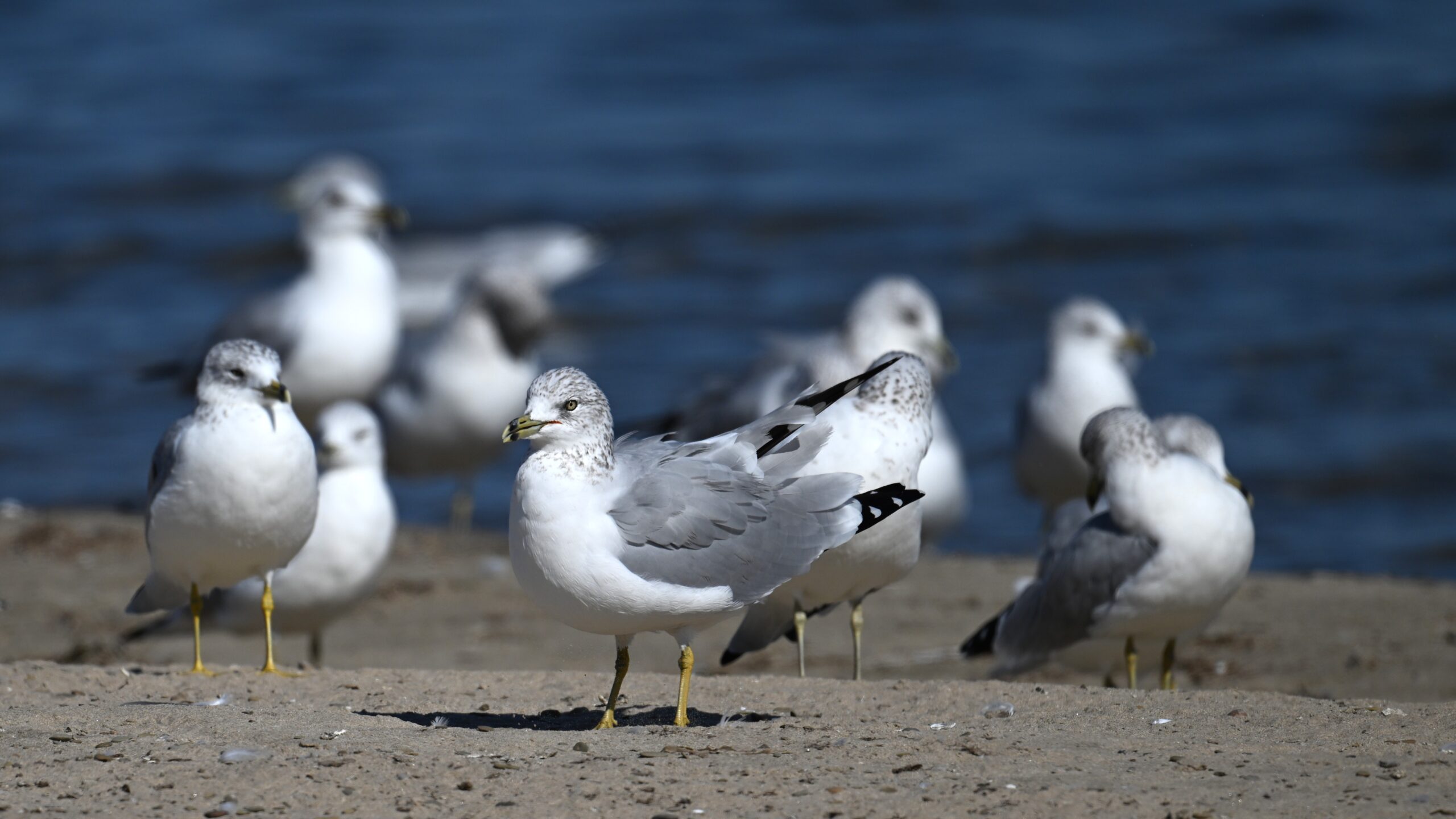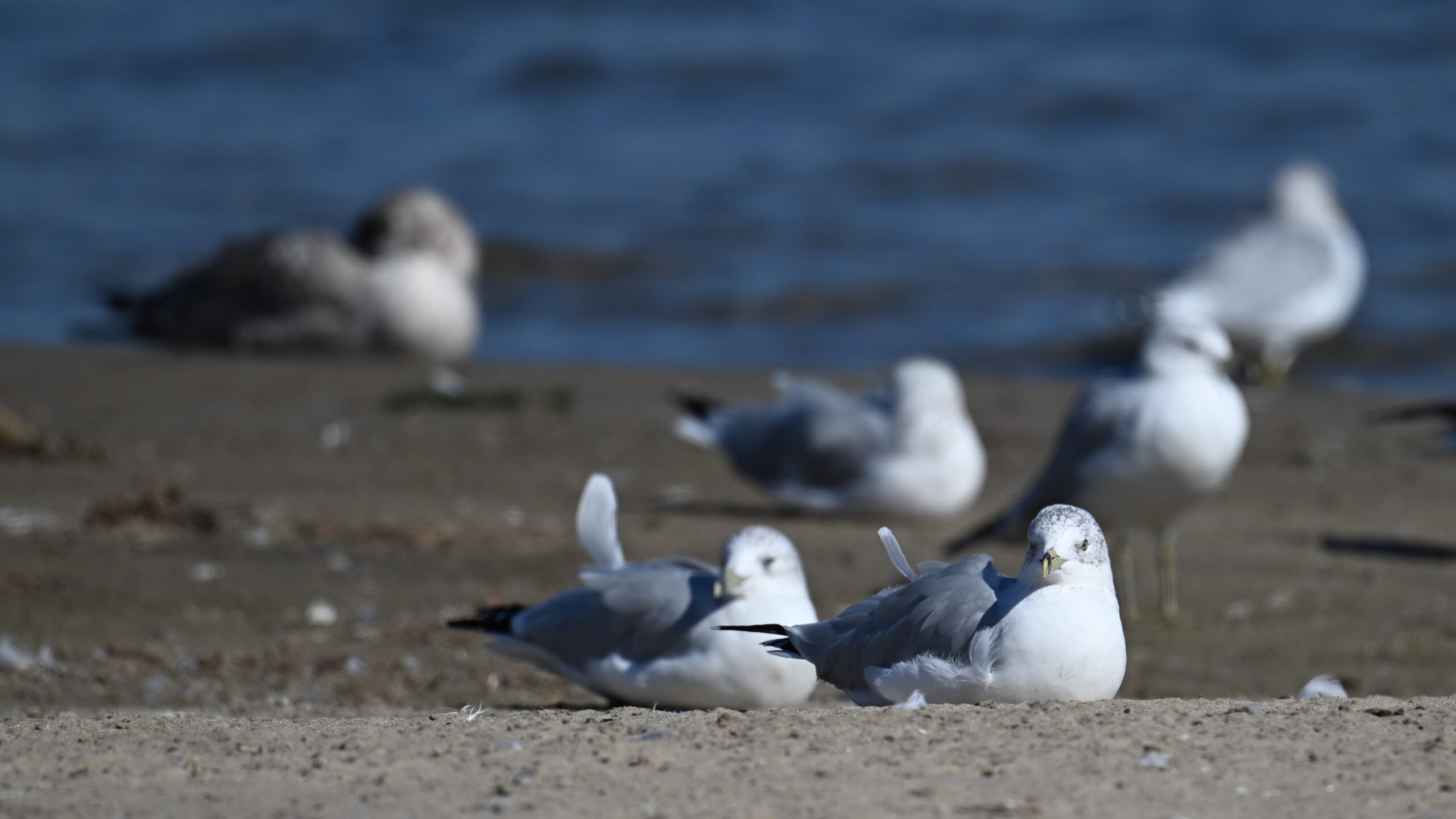 Seems like folks are always clamouring for more gull photographs, so today it’s a nice medley of gulls @ Beach No. 11 (Presque Isle State Park) plus “not that often easily photographed together” male and female Northern Cardinal same date/location (just within the tree line):