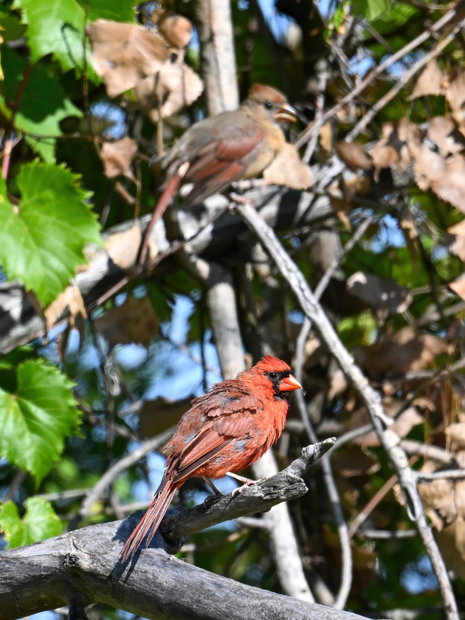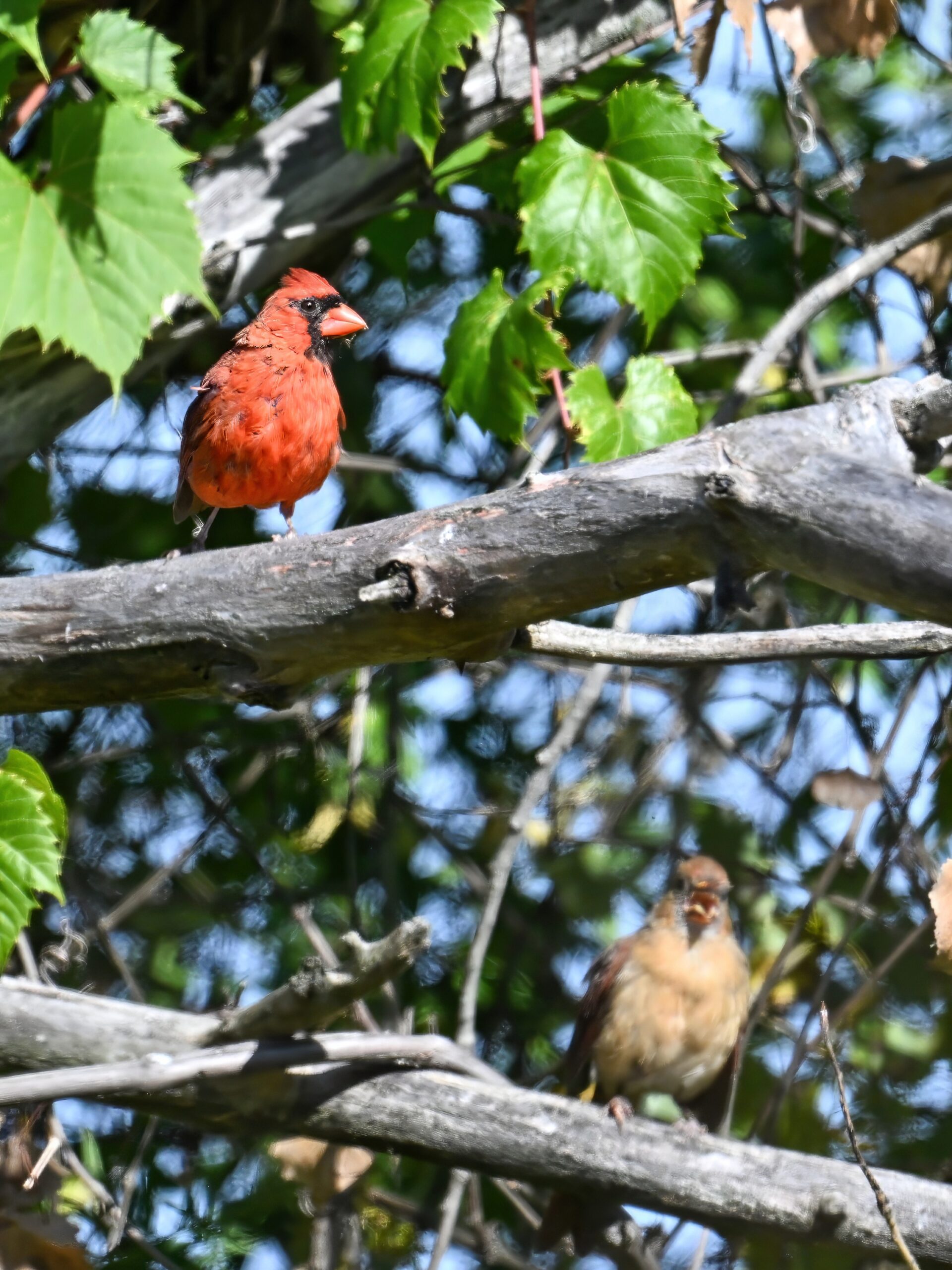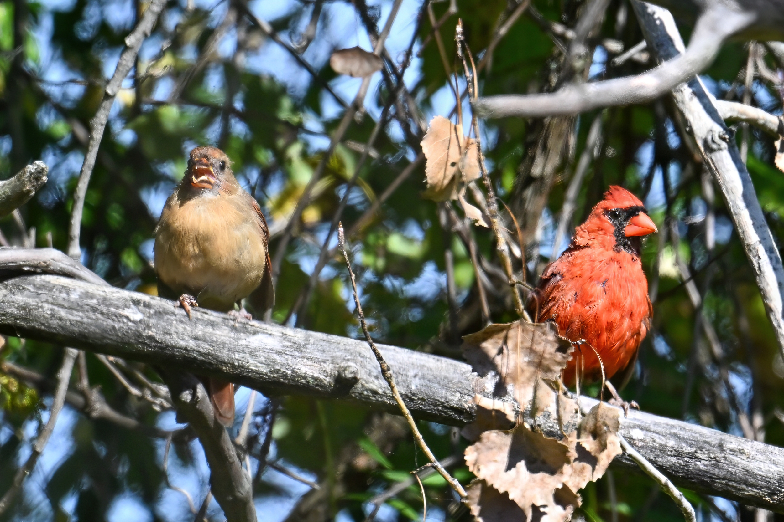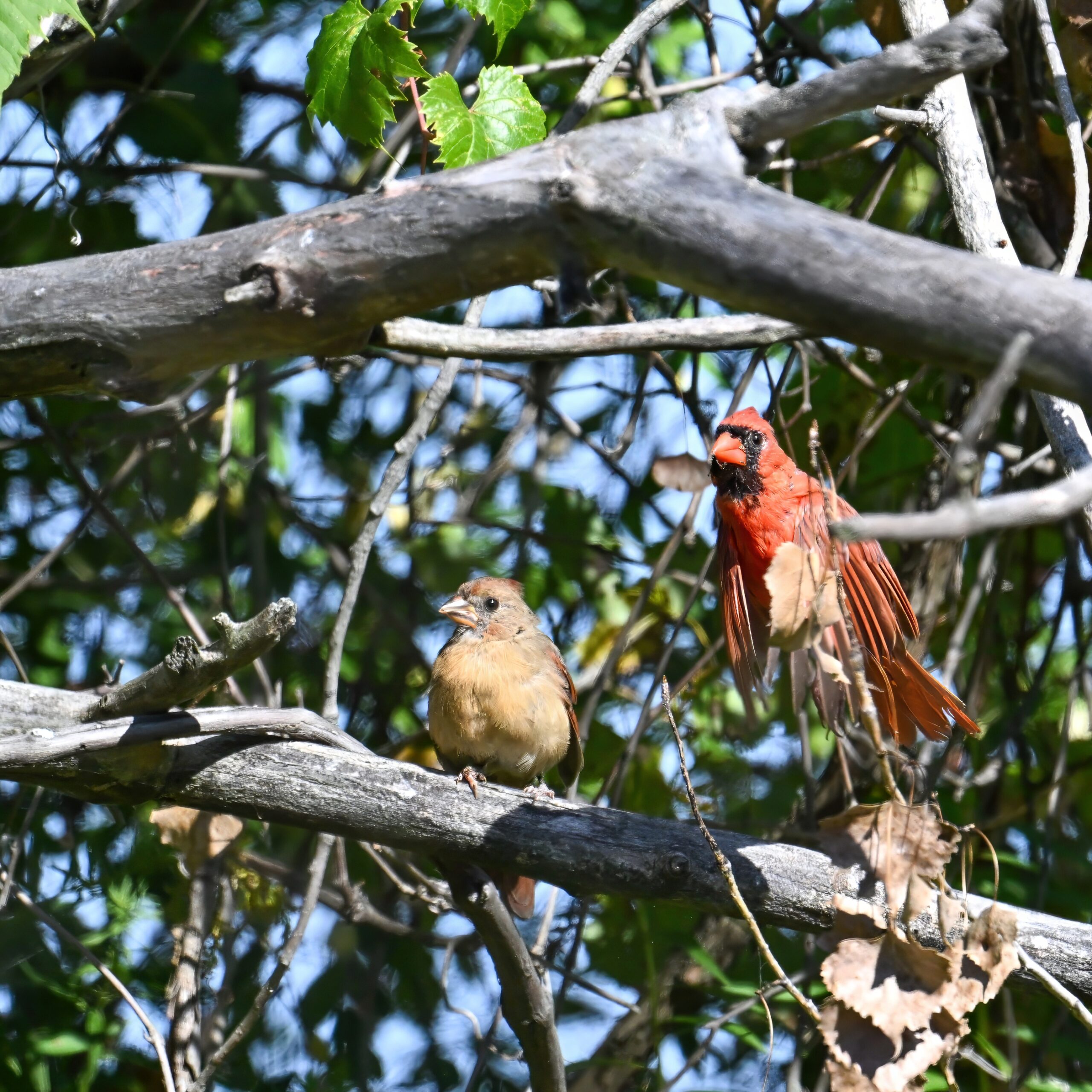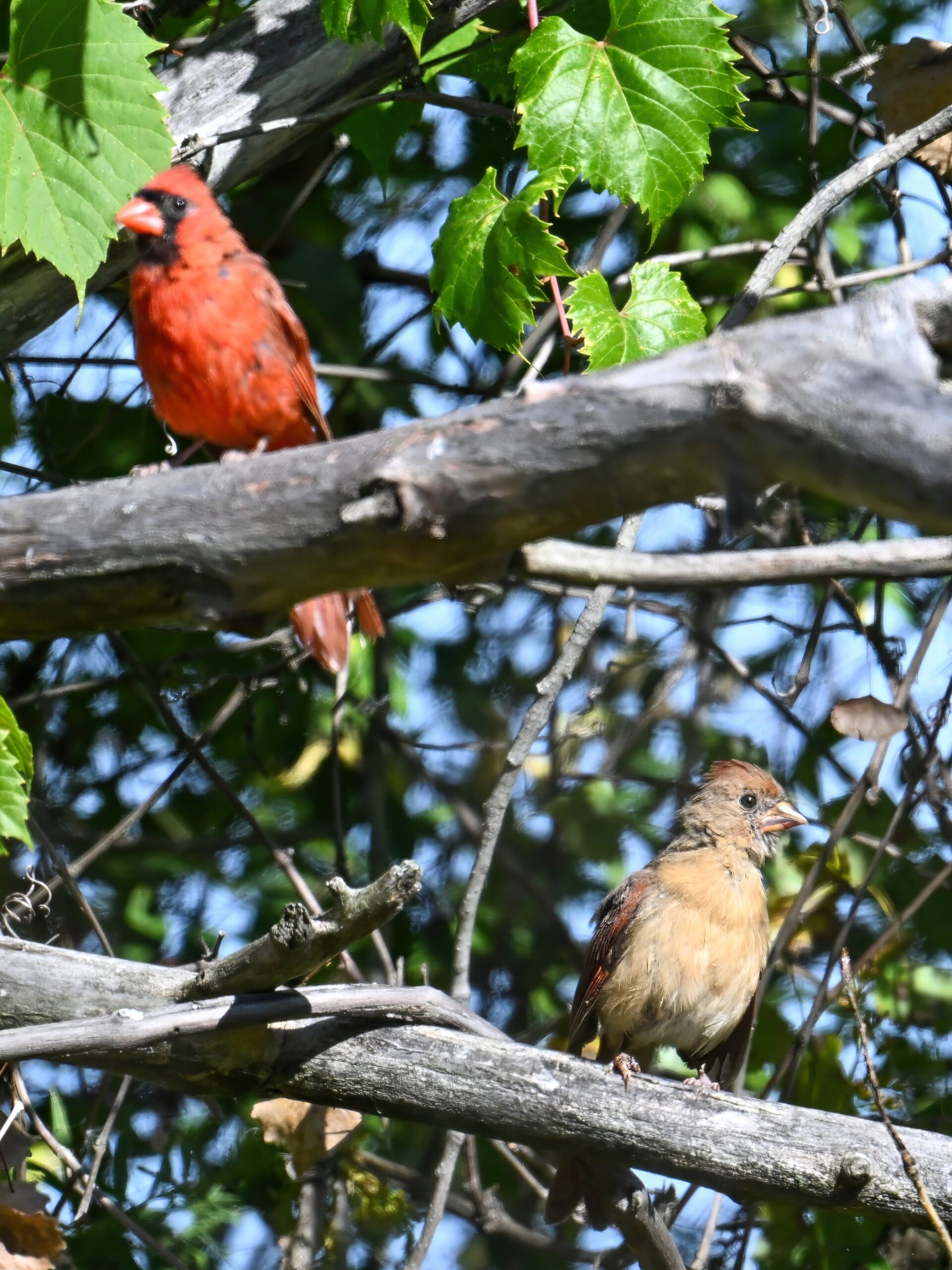 Seems like folks are always clamouring for more gull photographs, so today it’s a nice medley of gulls @ Beach No. 11 (Presque Isle State Park) plus “not that often easily photographed together” male and female Northern Cardinal same date/location (just within the tree line):