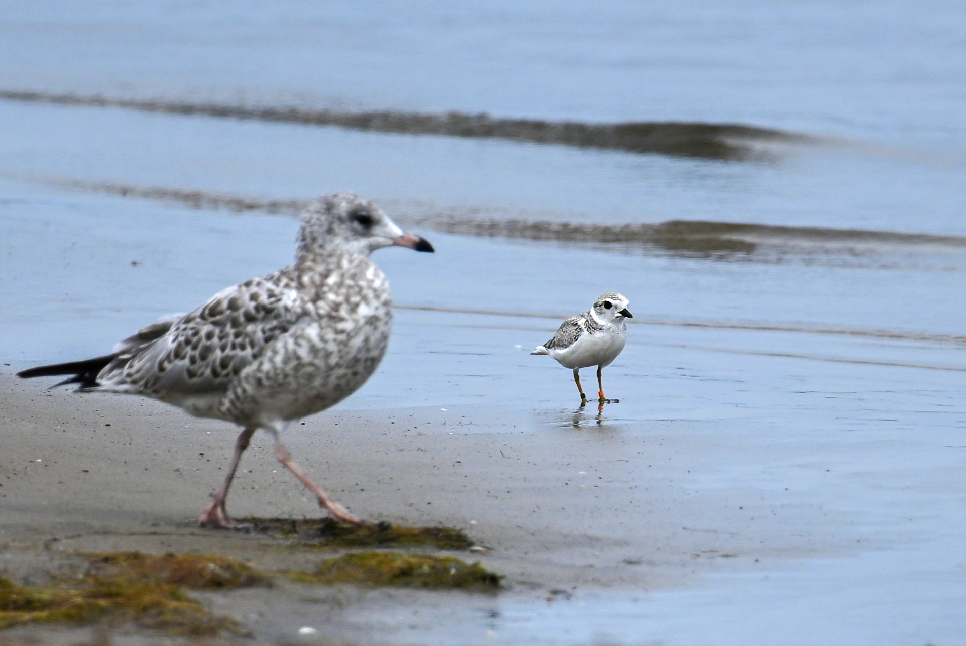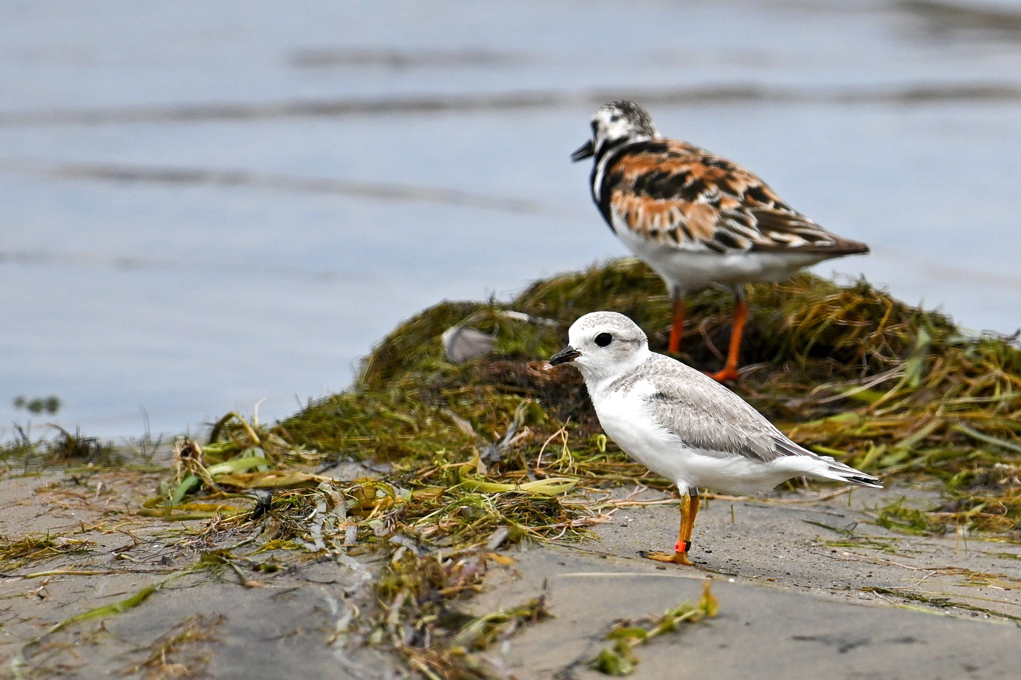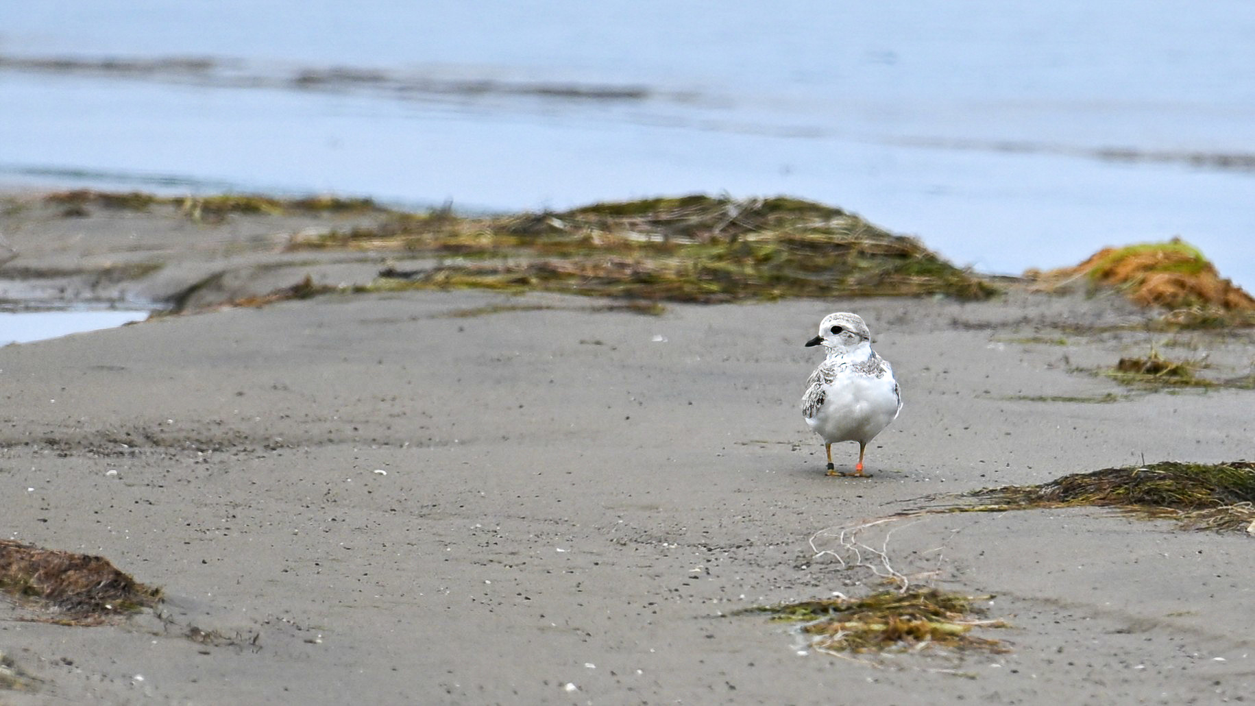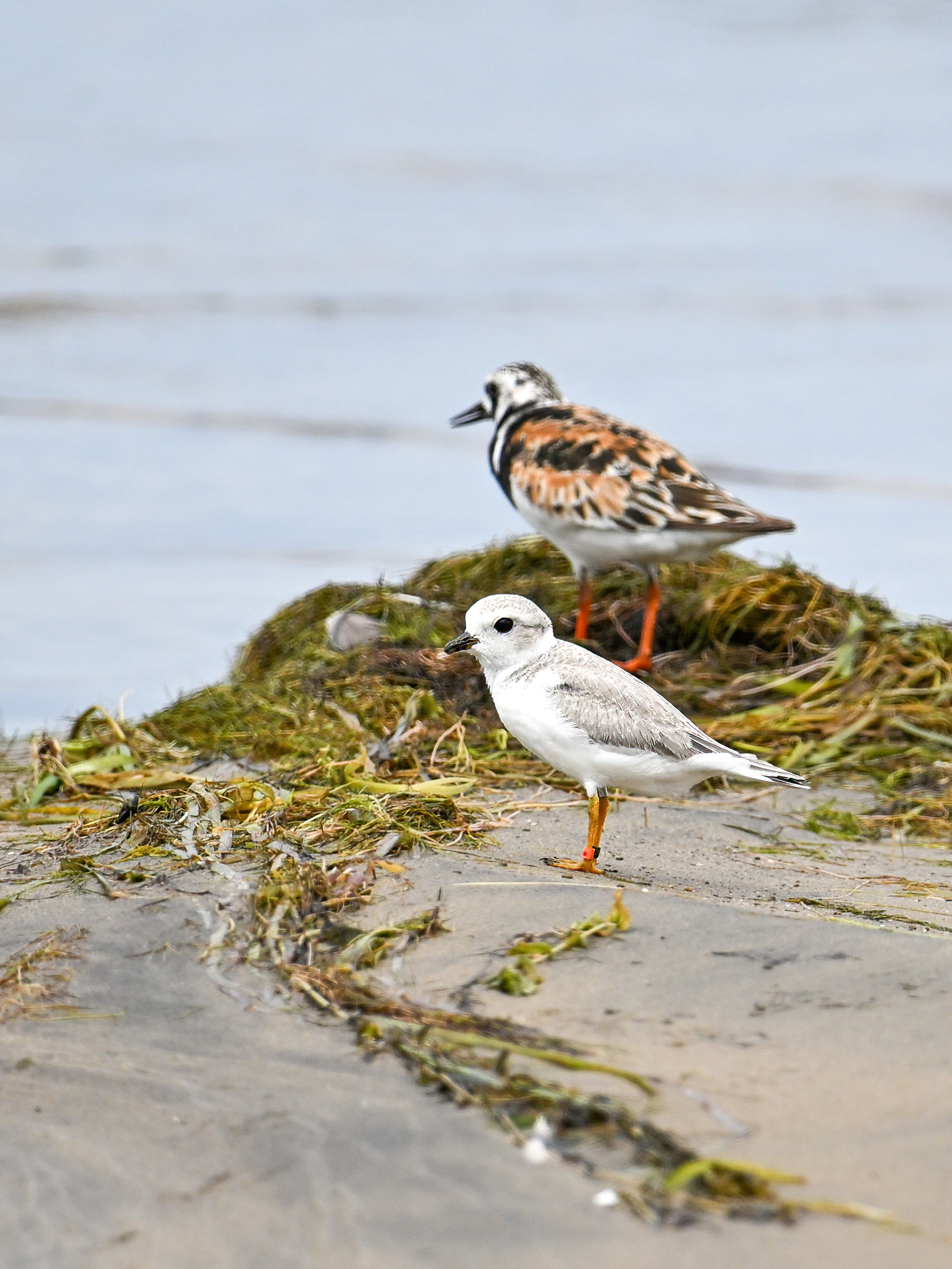 Note the Piping Plover has three ID bands – plastic orange, plastic black, and metal. Probably one of the relatively recent hatchlings, now approaching maturity, over from nearby Gull Point.