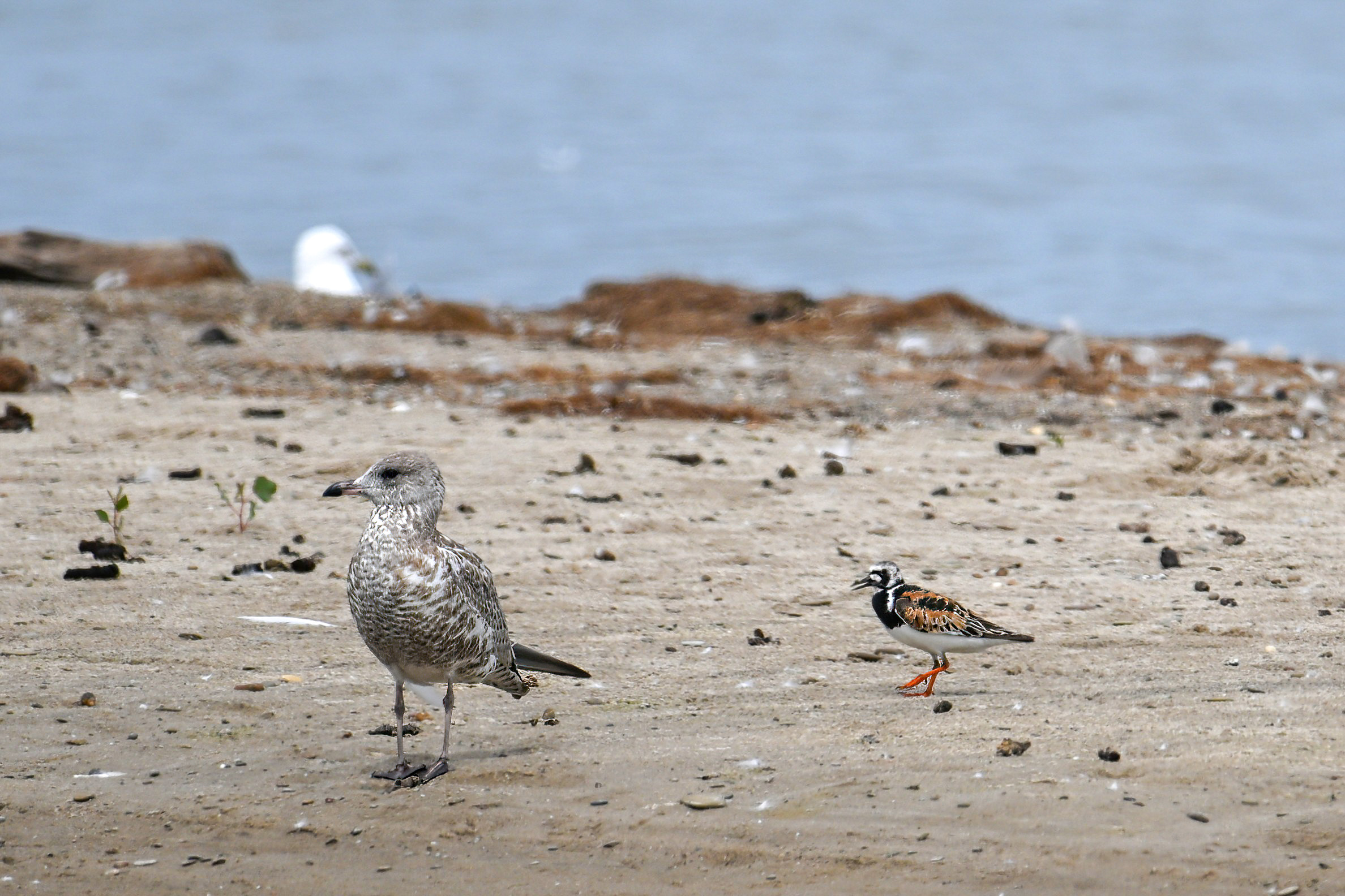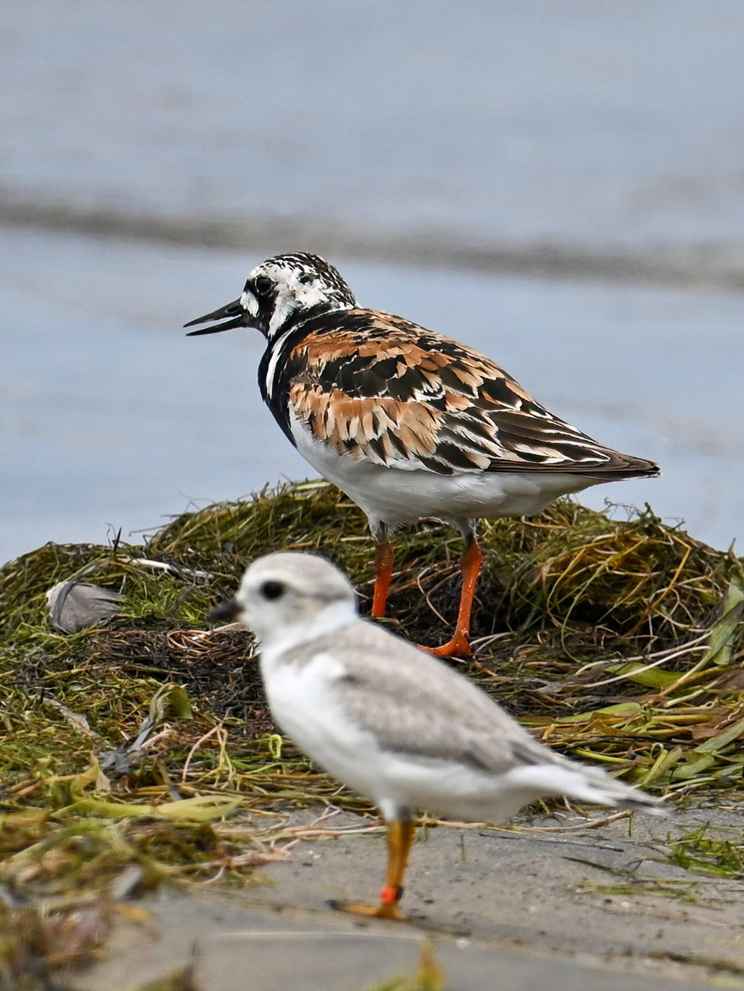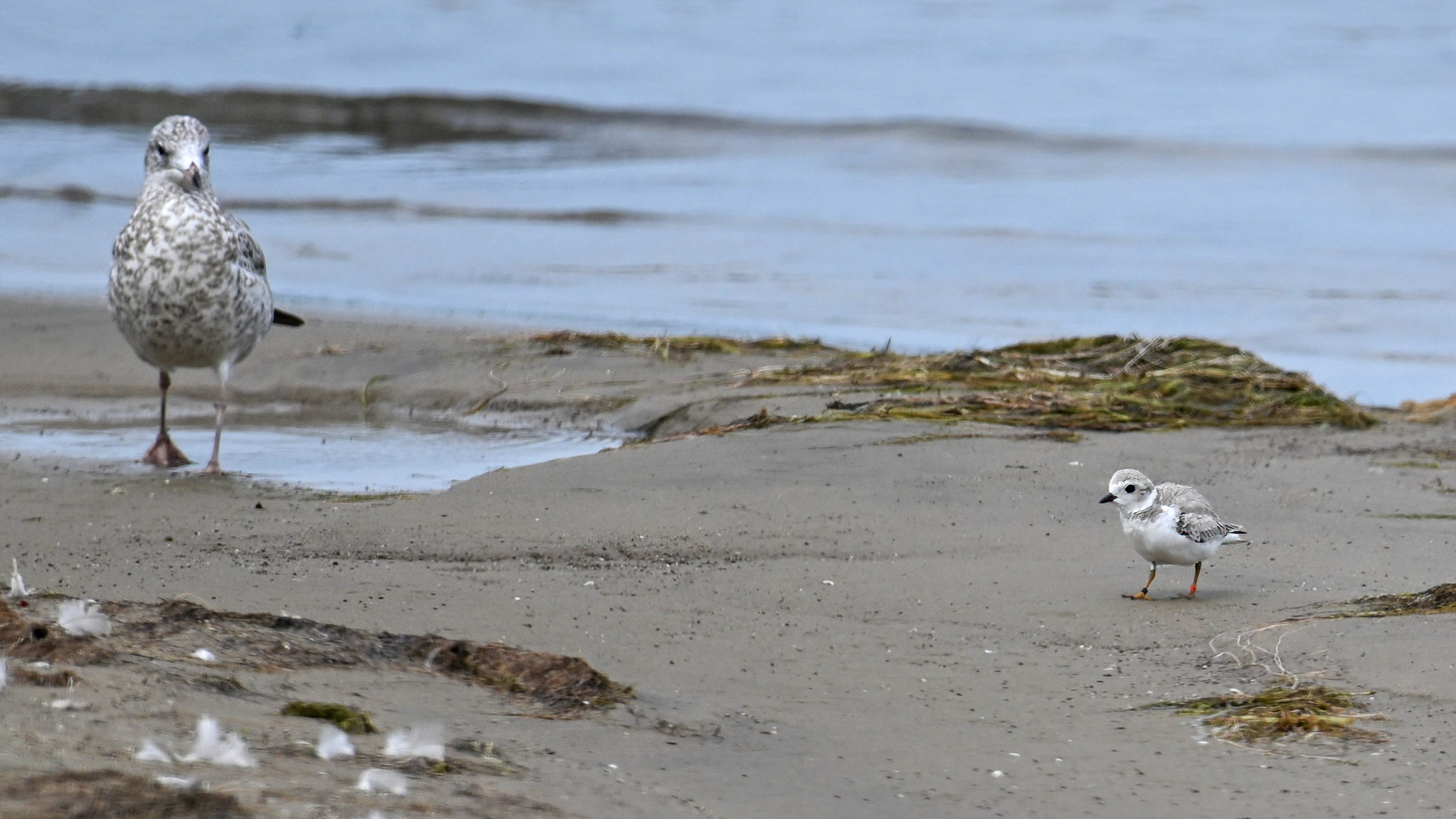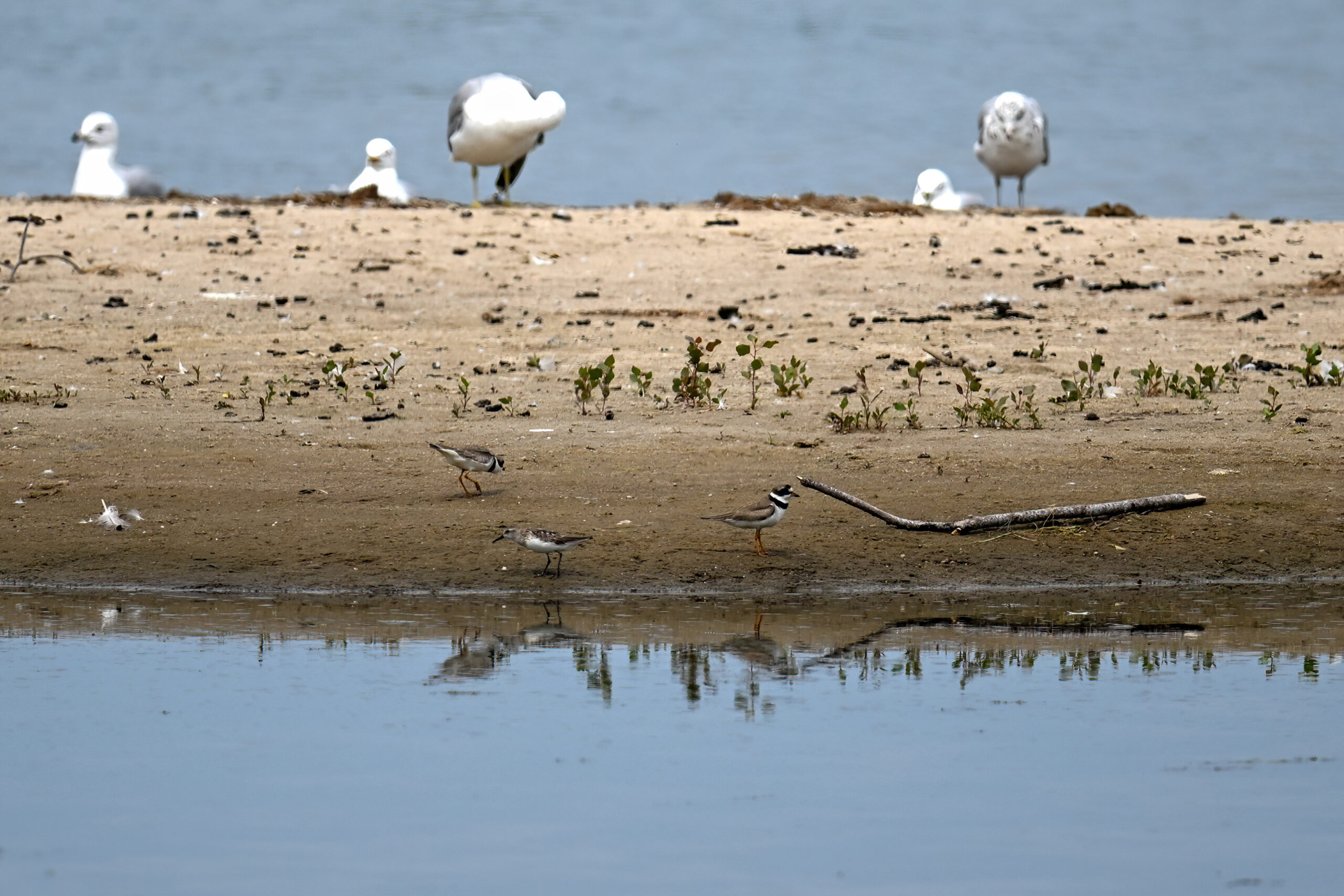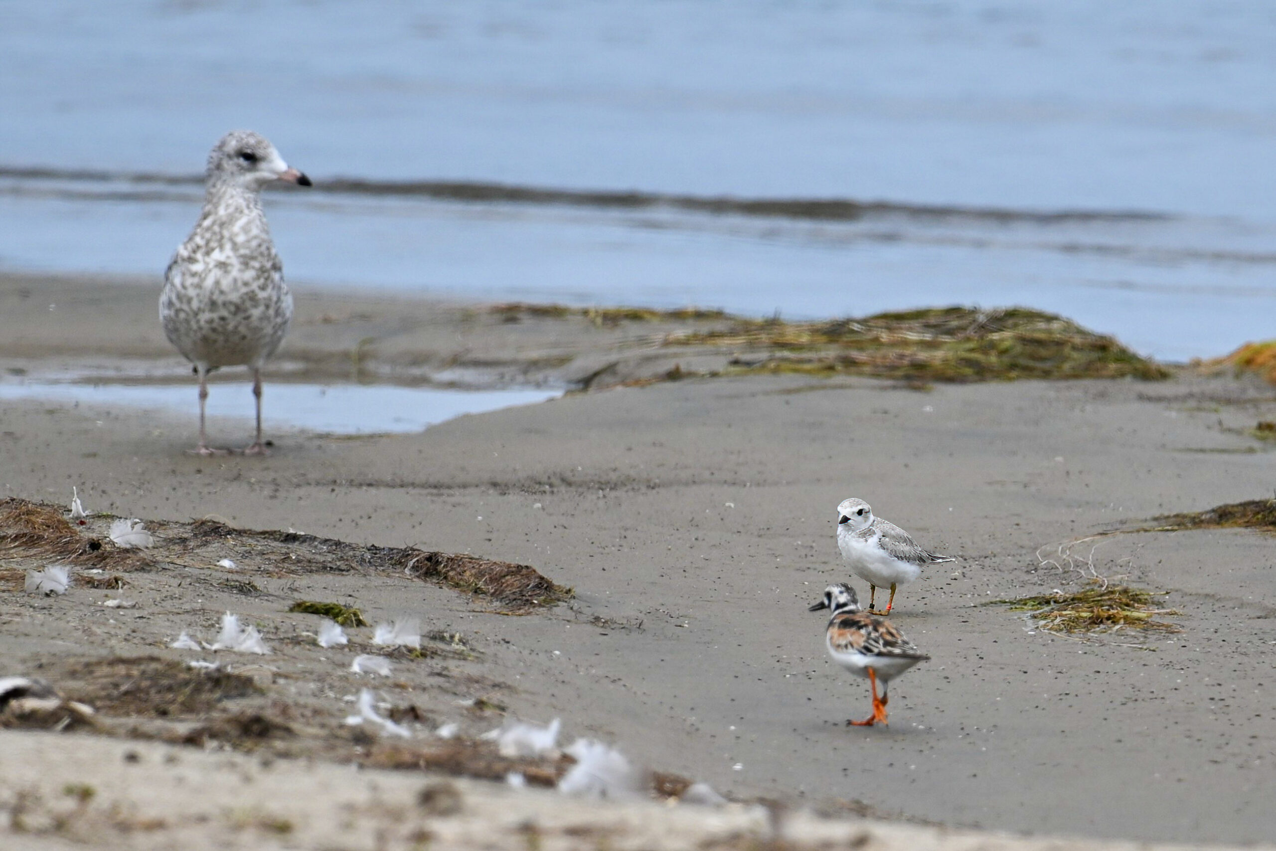 Note the Piping Plover has three ID bands – plastic orange, plastic black, and metal. Probably one of the relatively recent hatchlings, now approaching maturity, over from nearby Gull Point.