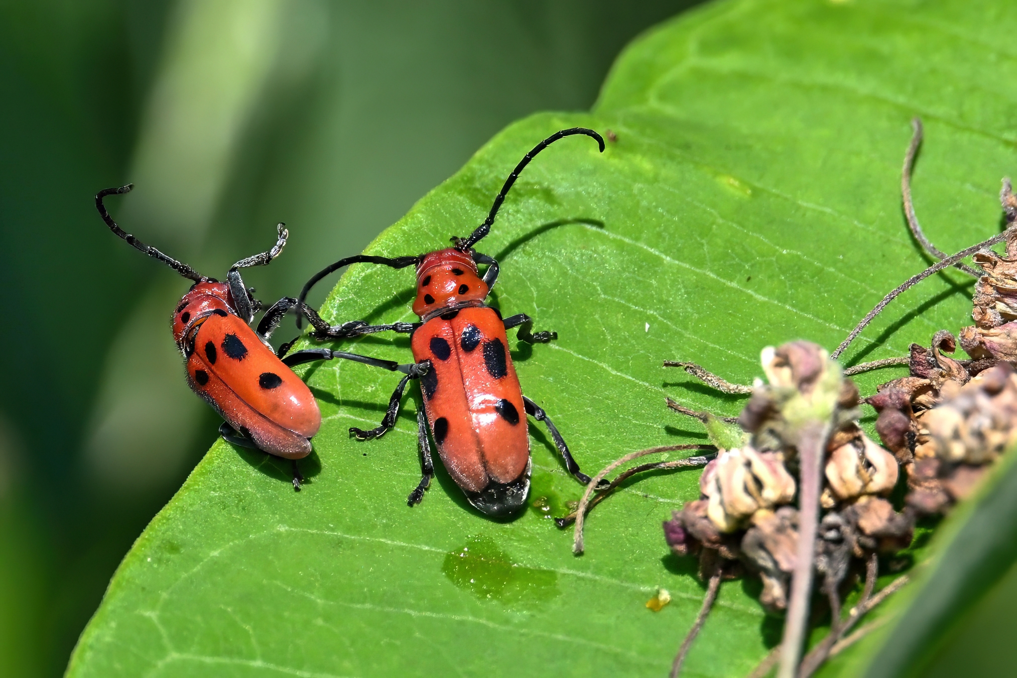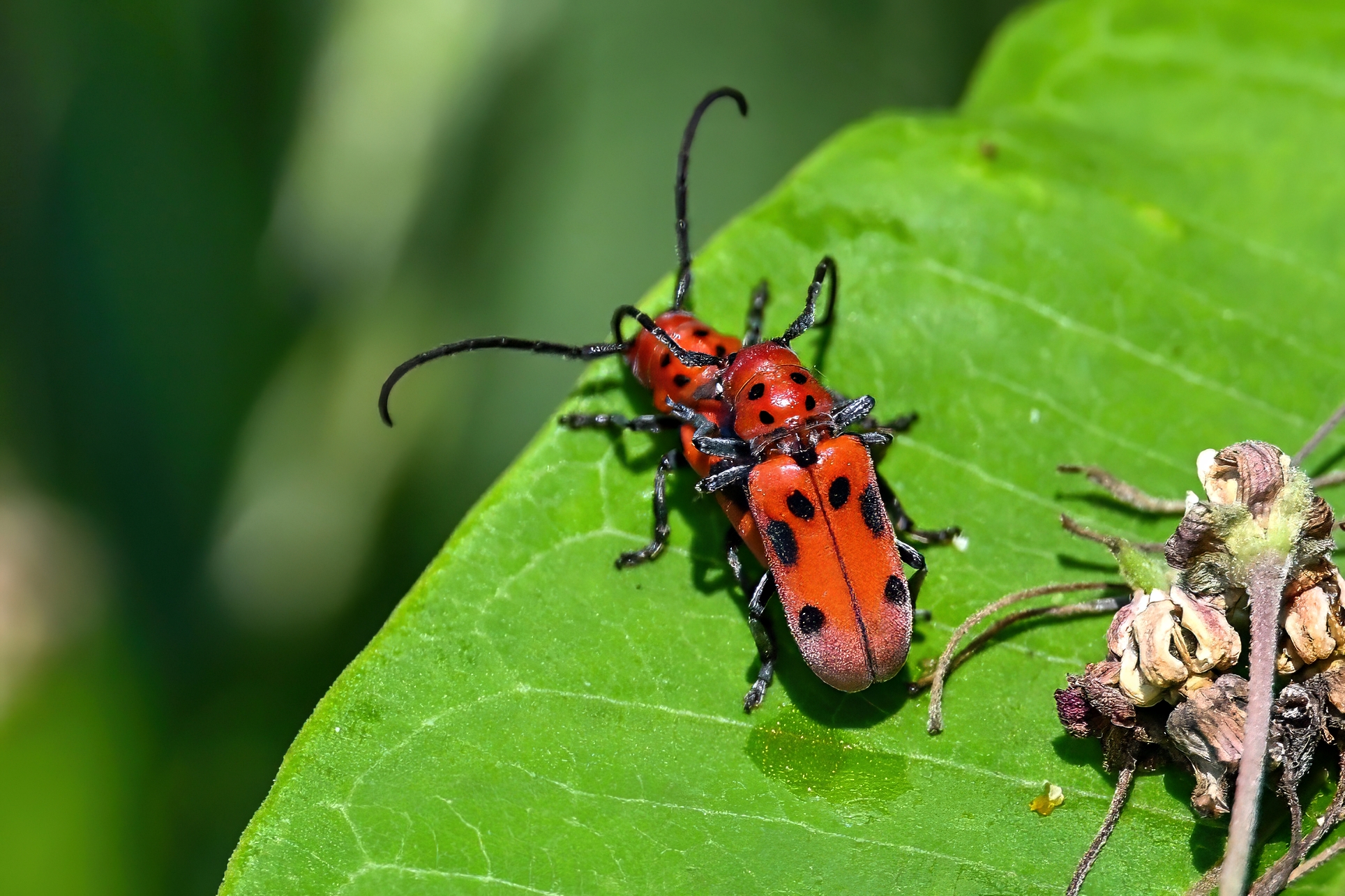 More Red Milkweed Beetle (Tetraopes tetrophthalmus) on milkweed: