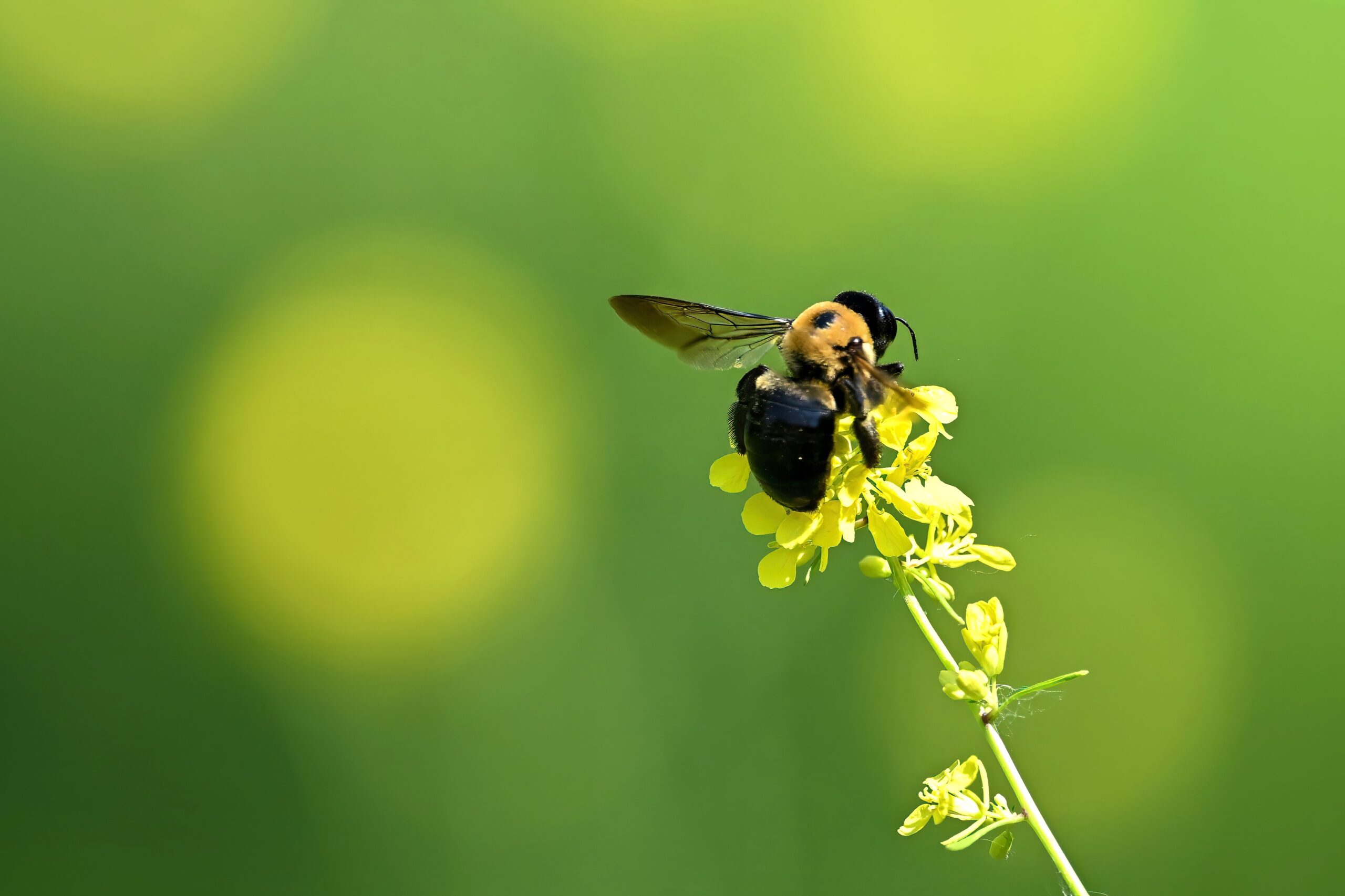 Except where noted, following are all bee, e.g., Eastern Bumble Bee or Eastern Carpenter Bee (Xylocopa virginica), on Wild Mustard (Rhamphospermum arvense):
