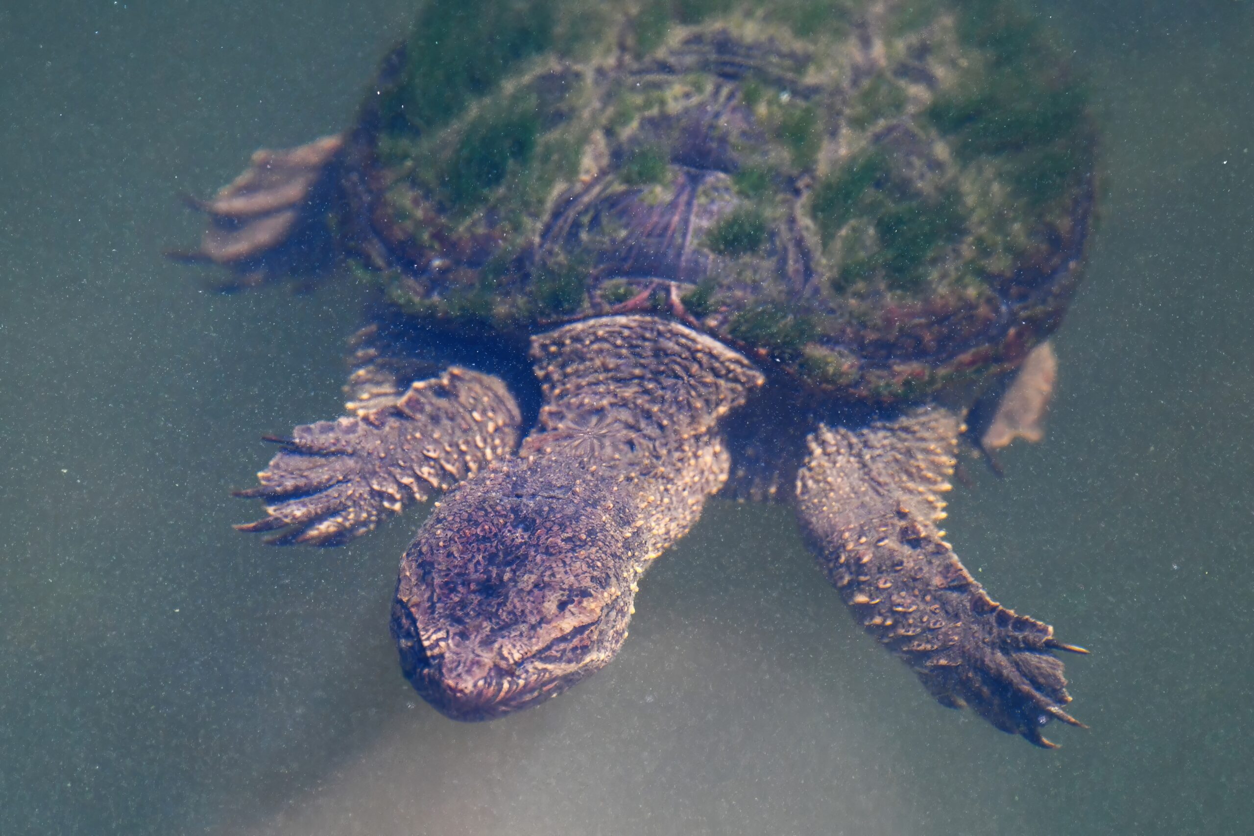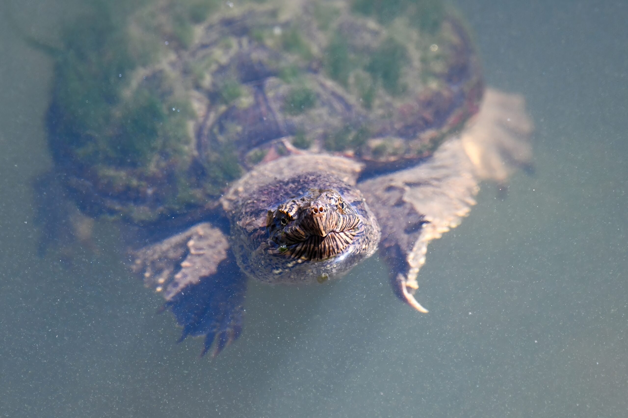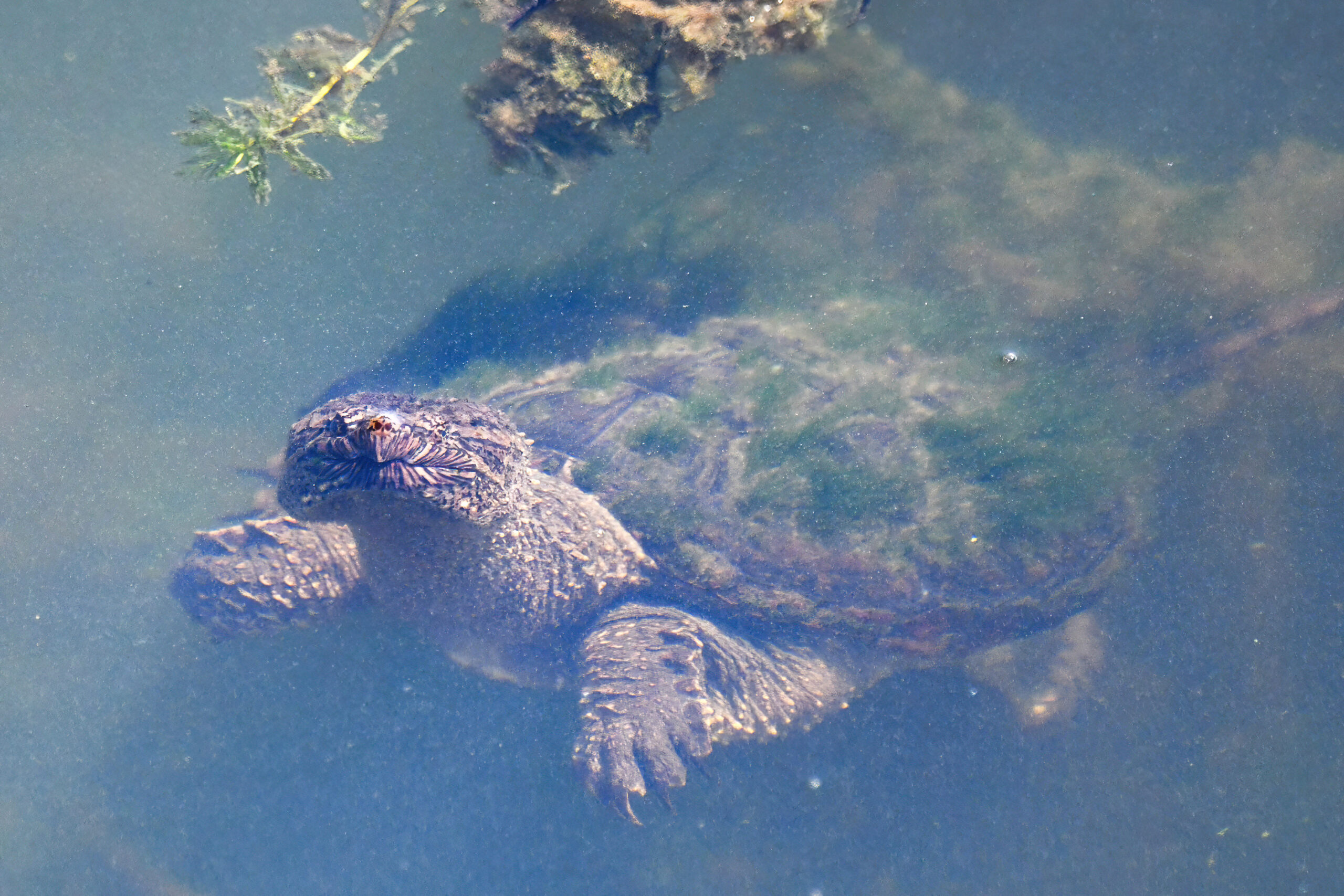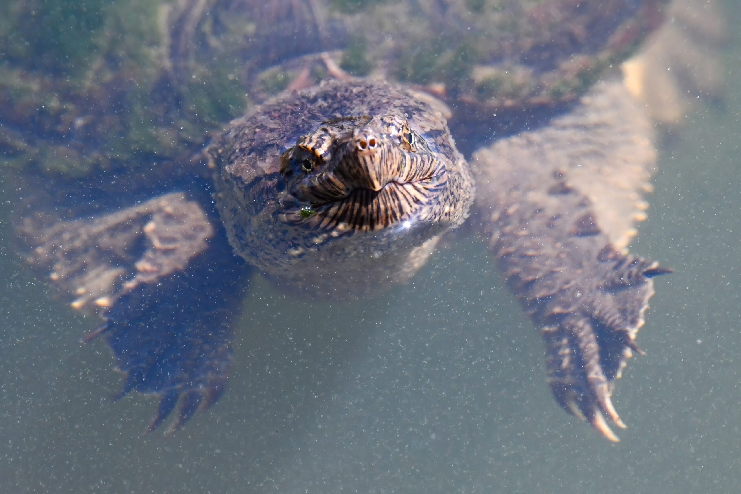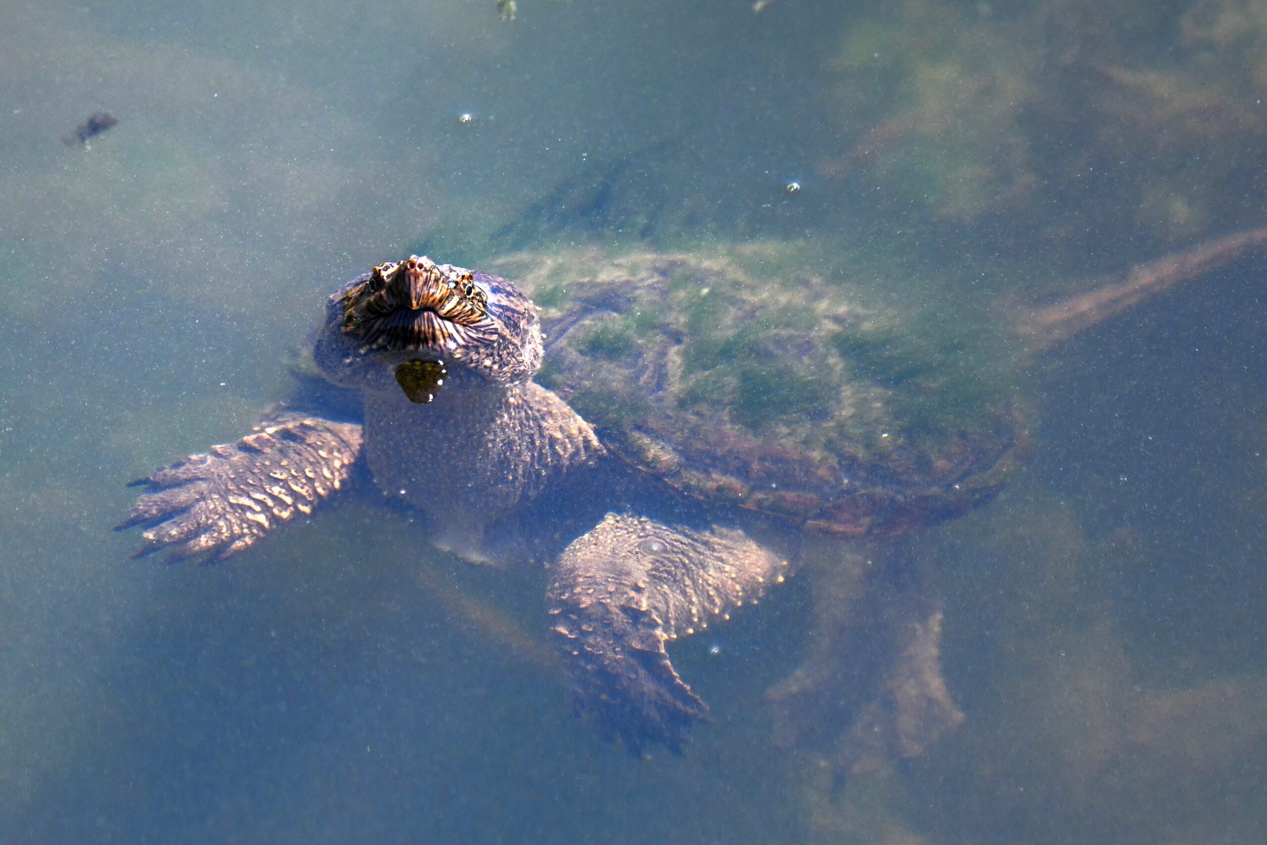 Guess it’s that time of the morning for coffee break, or some other sort of break – why not a herpetology break? – with recent, fun shots of Common Snapping Turtleย (Chelydra serpentina)ย in the enclosed pond at South Pier, Erie, Pennsylvania: