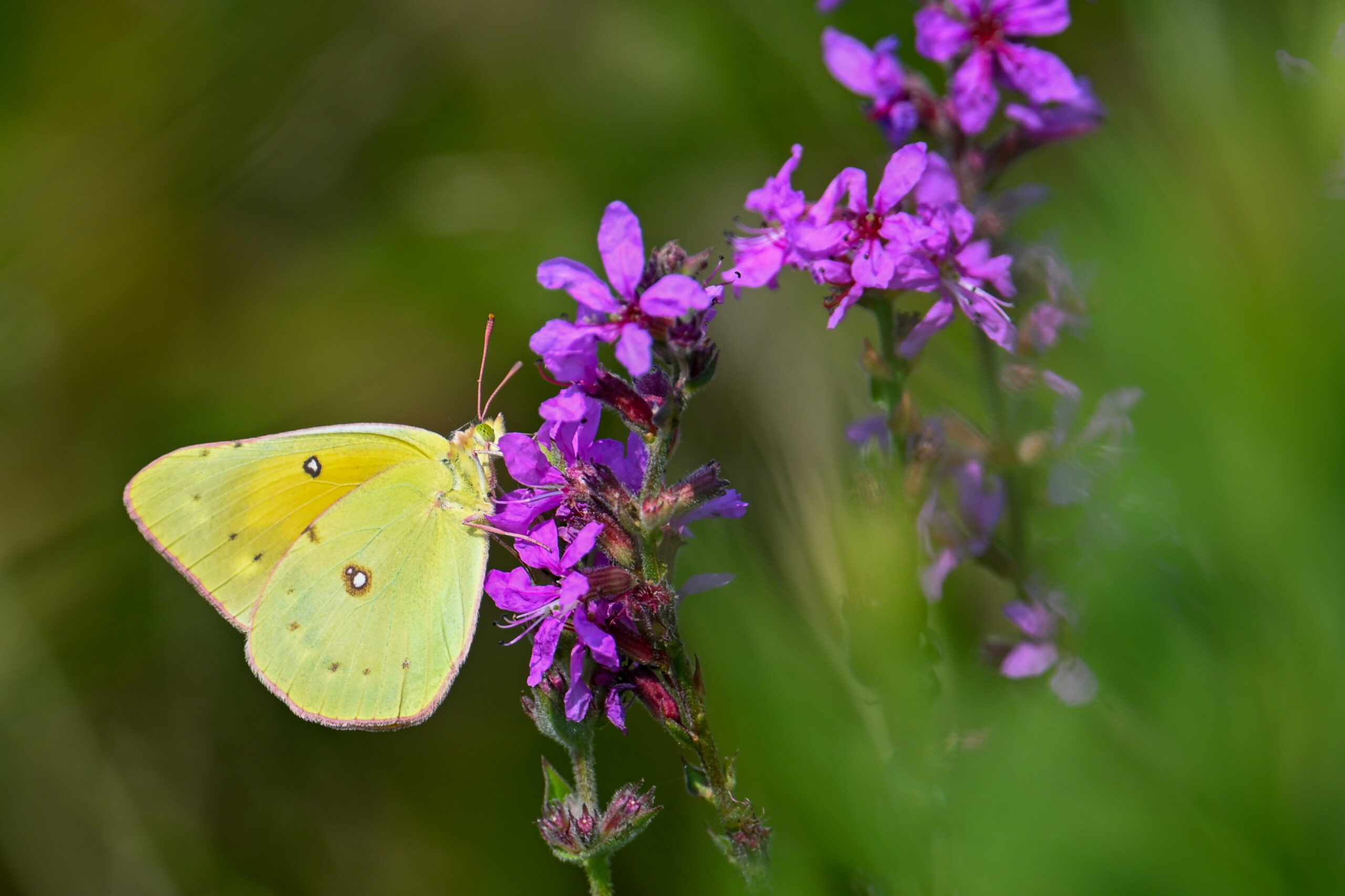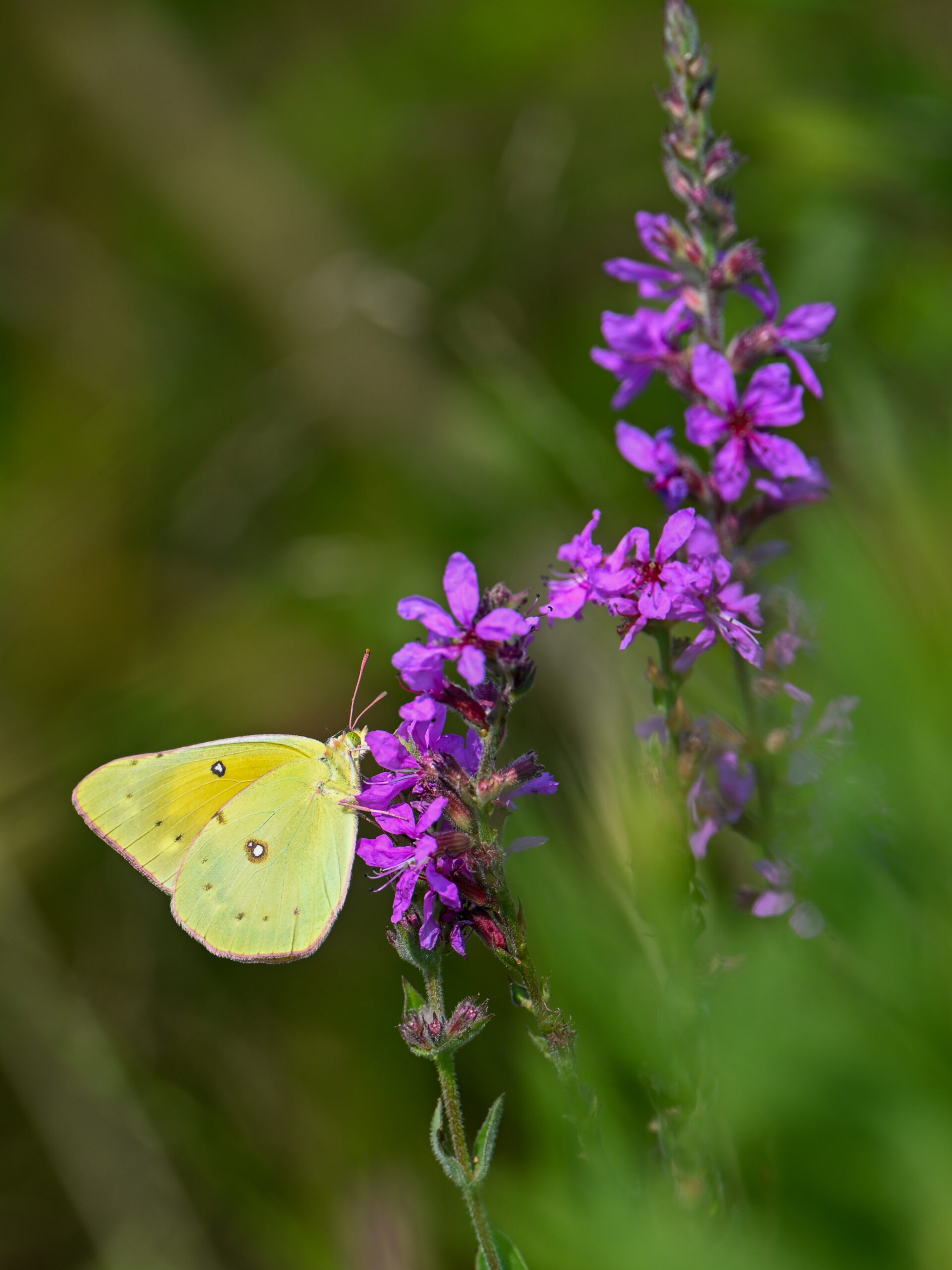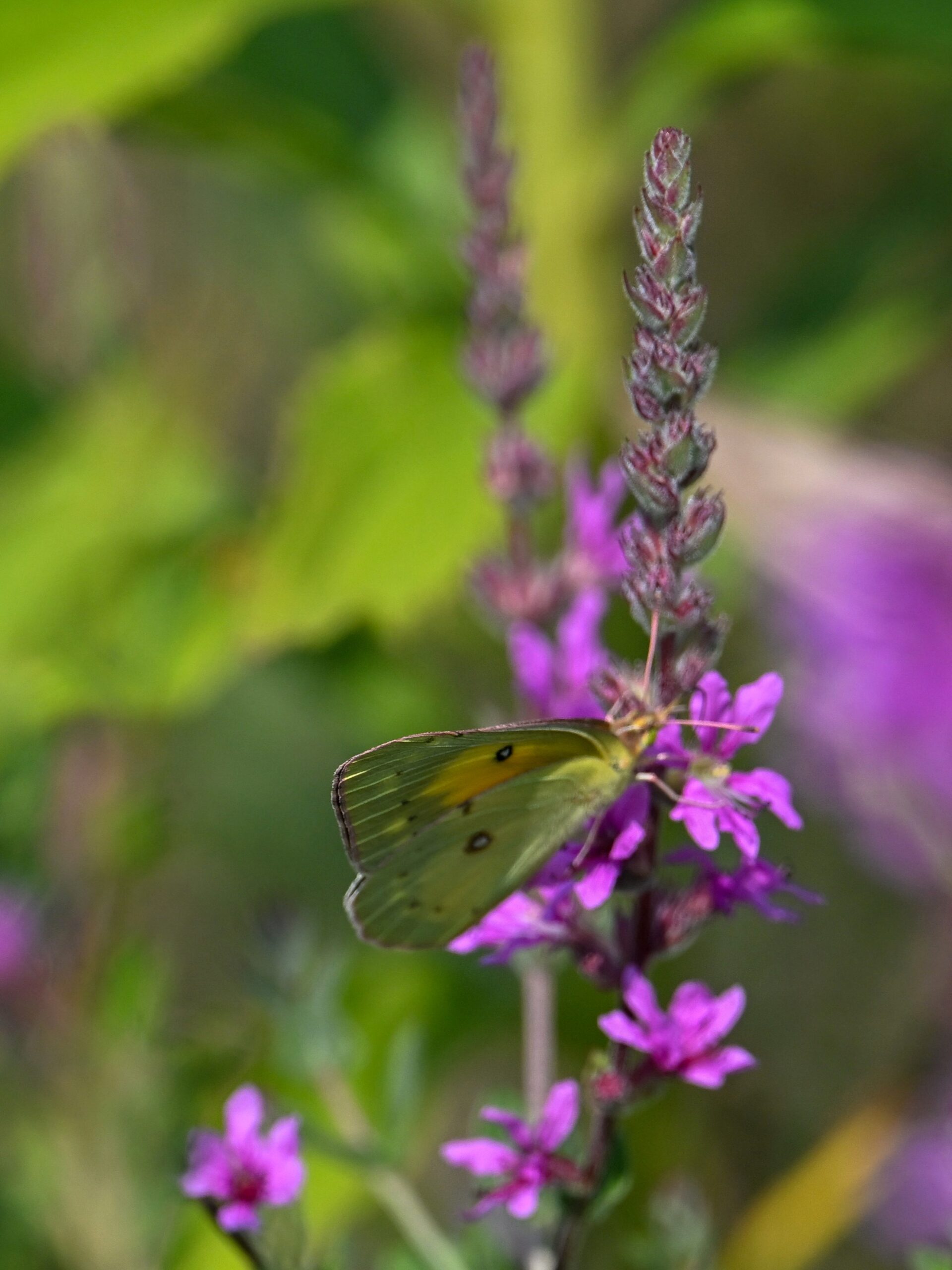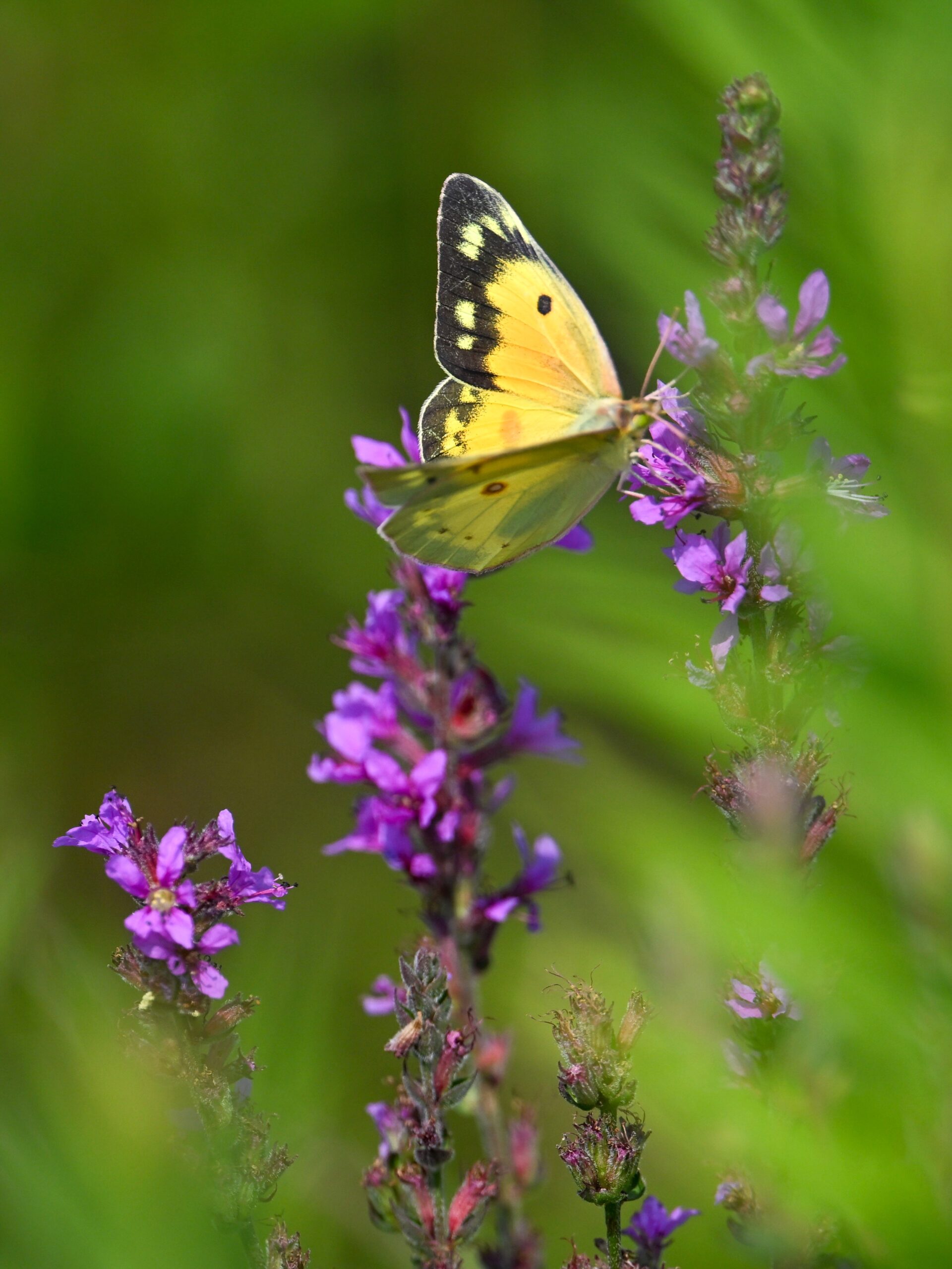With the Presque Isle Triathlon + entrance road lane closures, there were no BirdingPI.com field operations Saturday, at Presque Isle at least. Sunday, however, was a nice day for birding at the park, including lots of great shorebird activity. While waiting on photo editing, here’s a quick post of exceptionally beautiful Orange Sulphur (Colias eurytheme) butterfly at outer Gull Point: