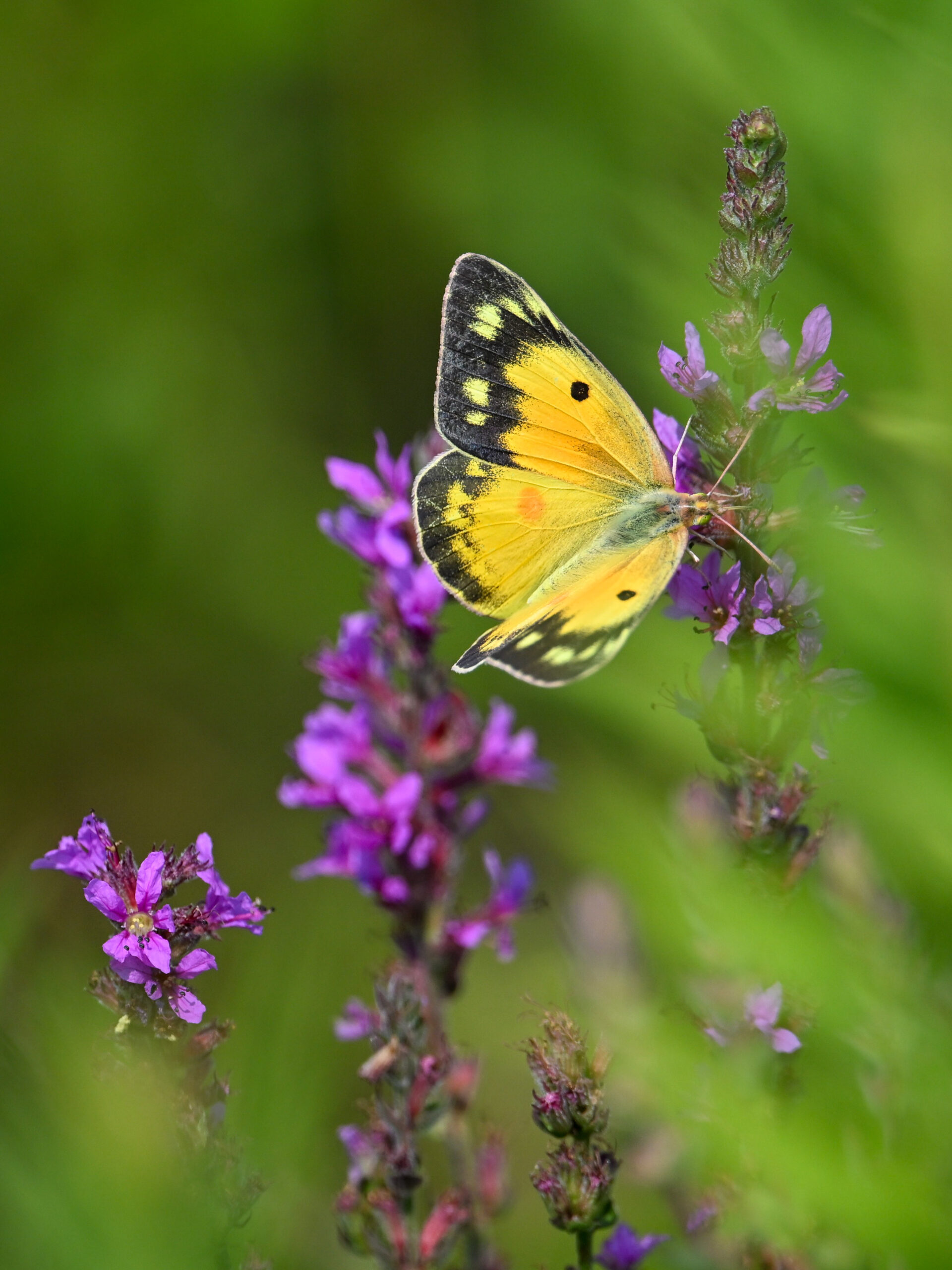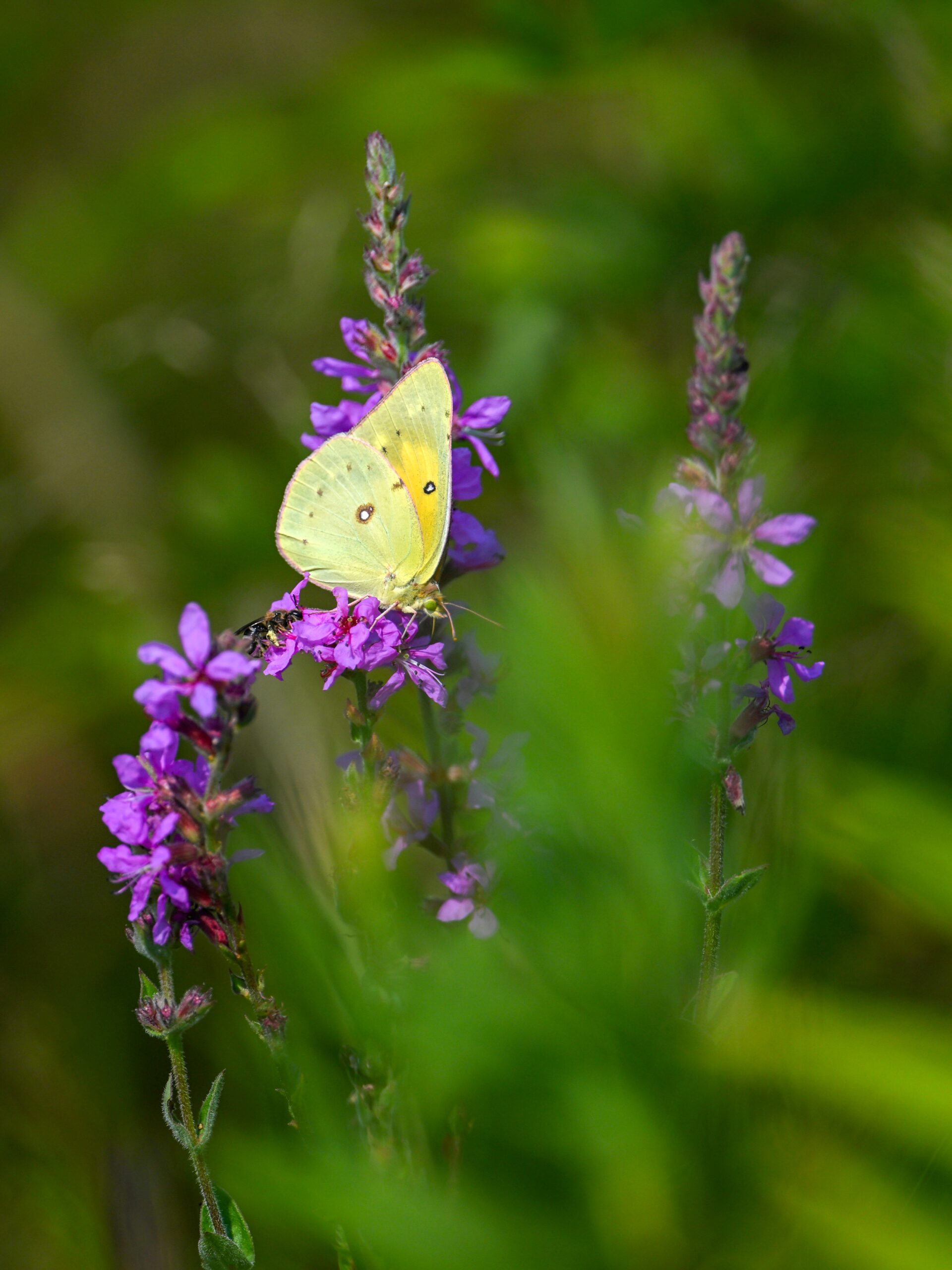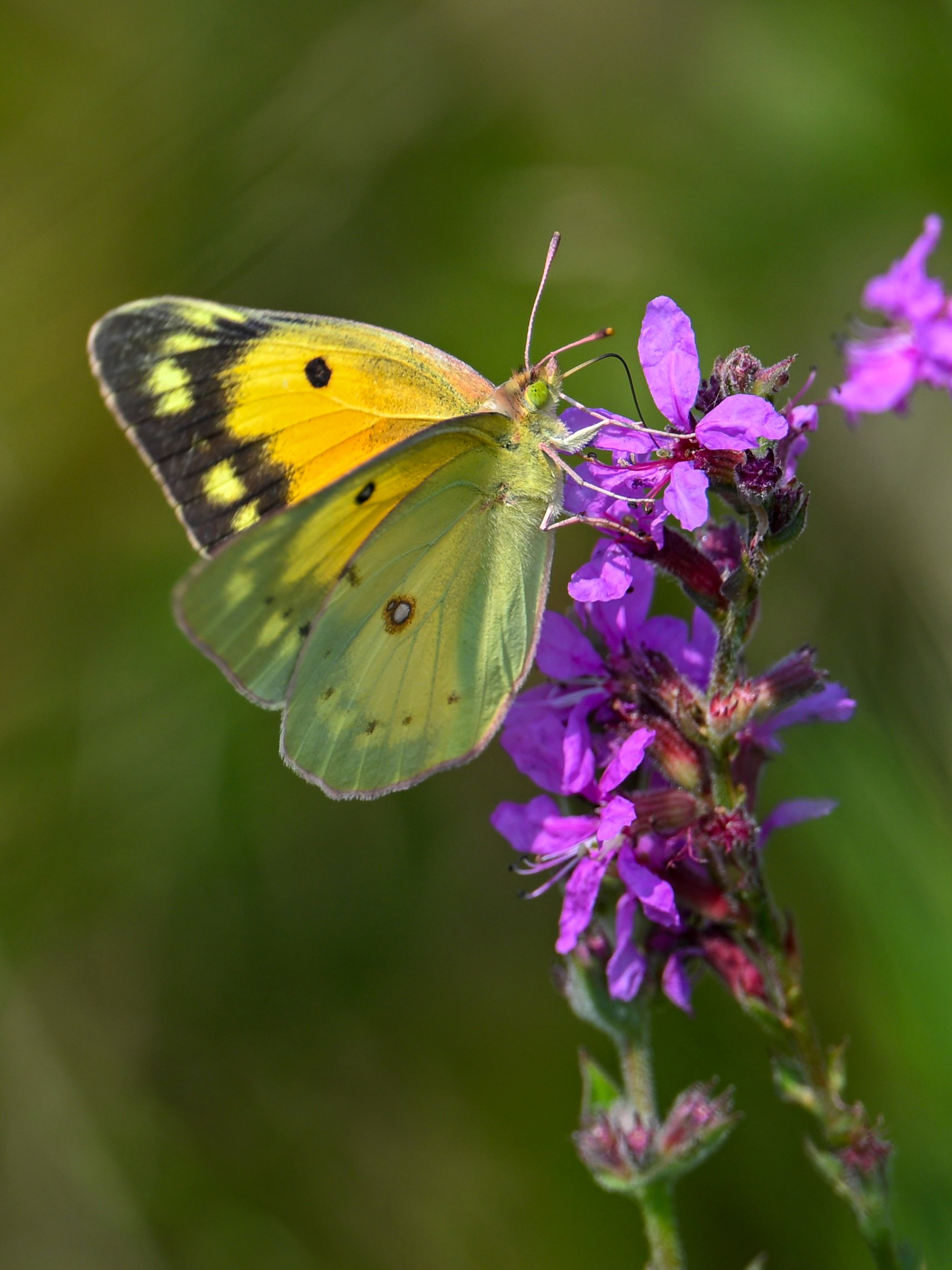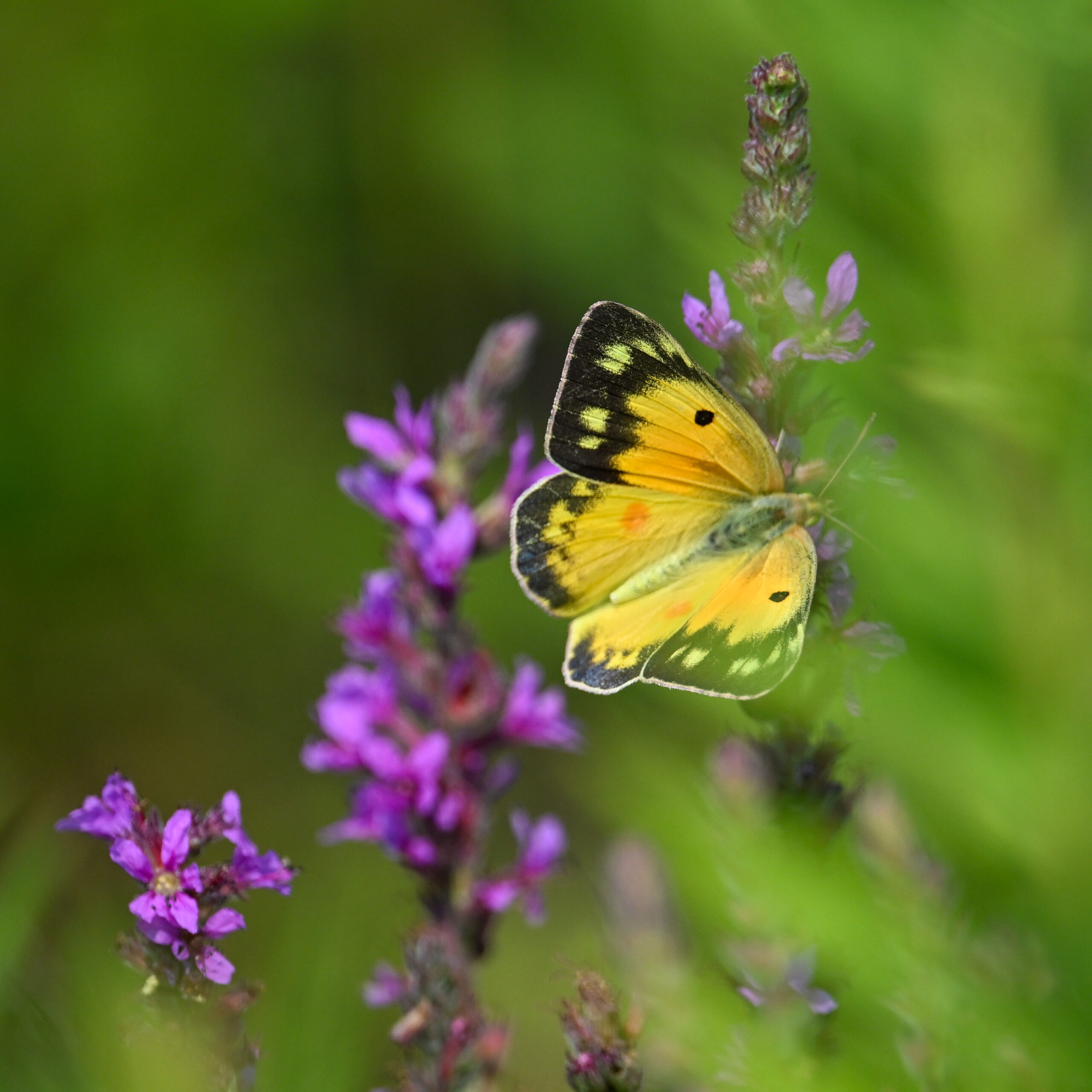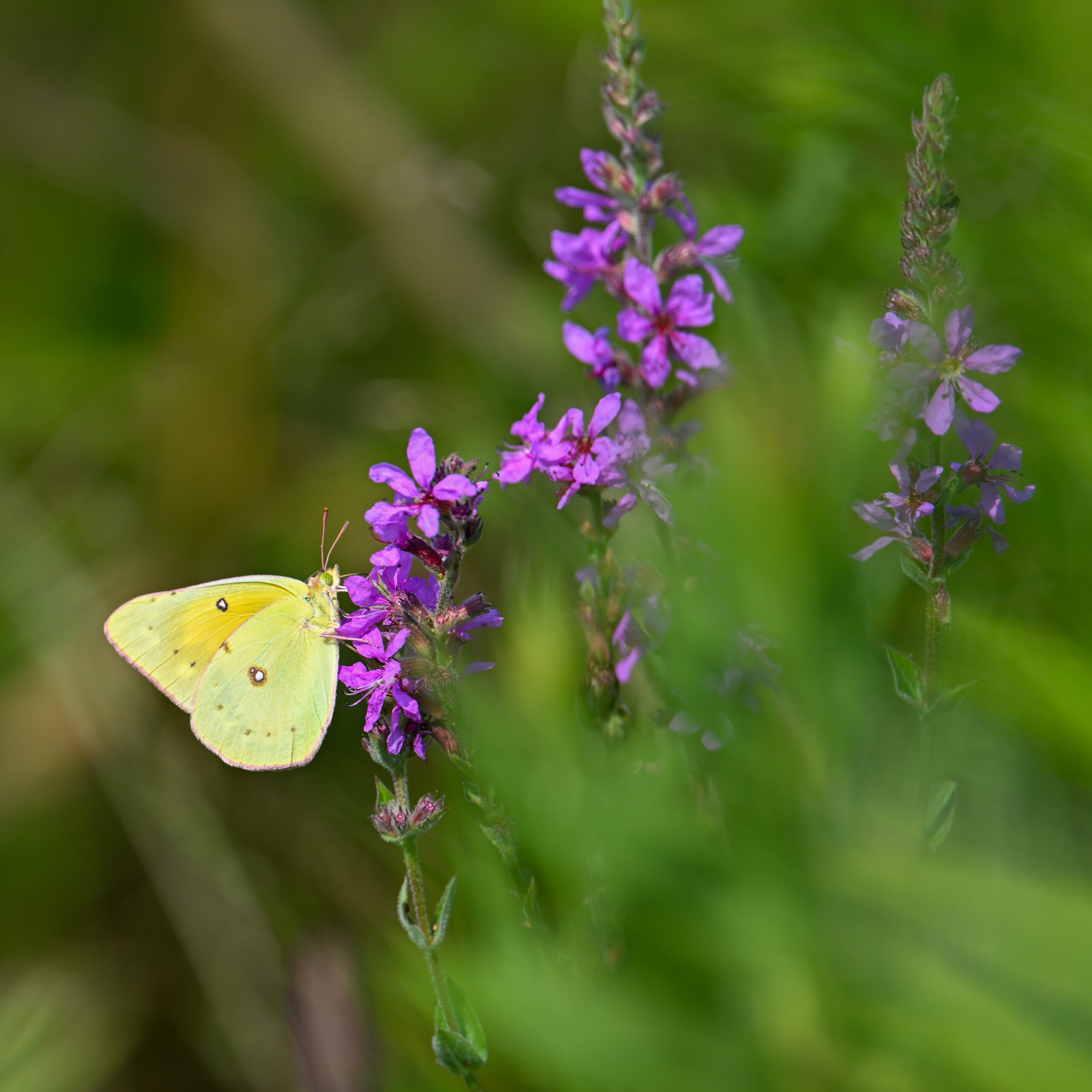 With the Presque Isle Triathlon + entrance road lane closures, there were no BirdingPI.com field operations Saturday, at Presque Isle at least. Sunday, however, was a nice day for birding at the park, including lots of great shorebird activity. While waiting on photo editing, here’s a quick post of exceptionally beautiful Orange Sulphur (Colias eurytheme) butterfly at outer Gull Point: