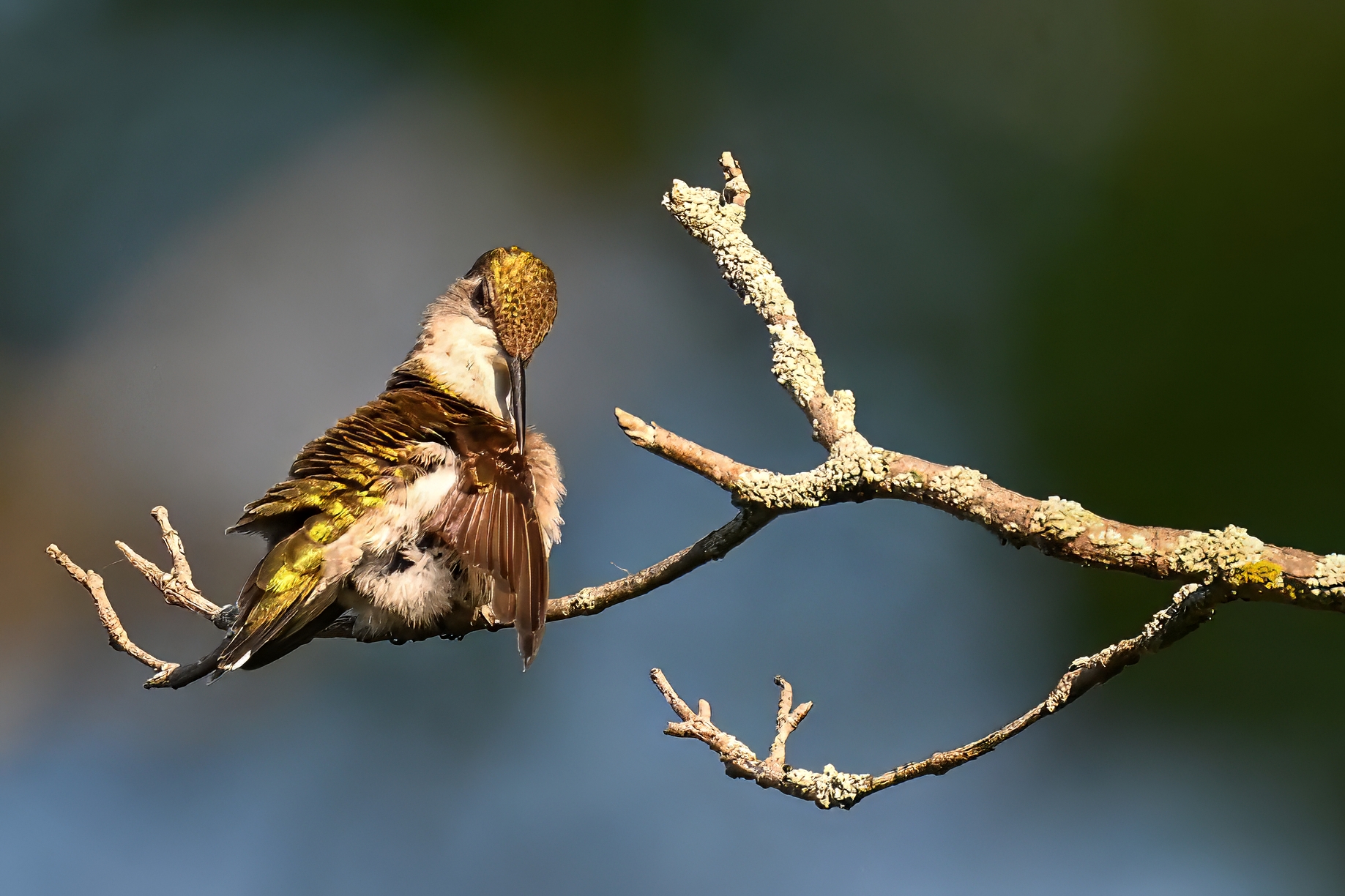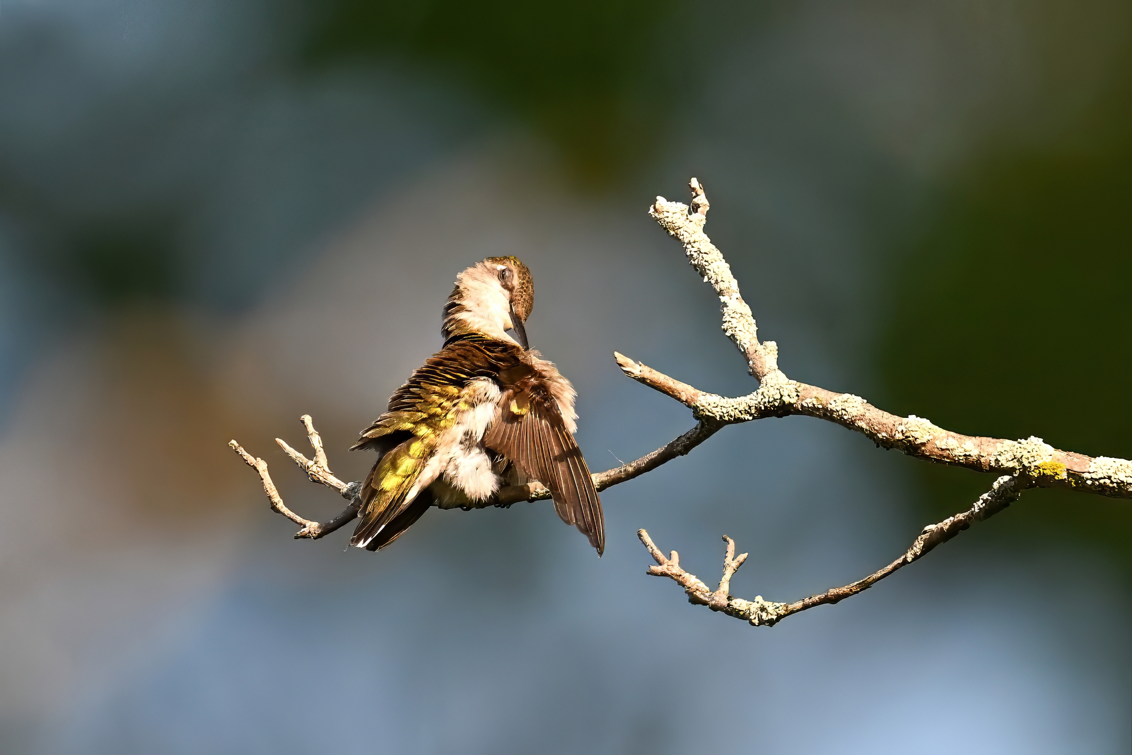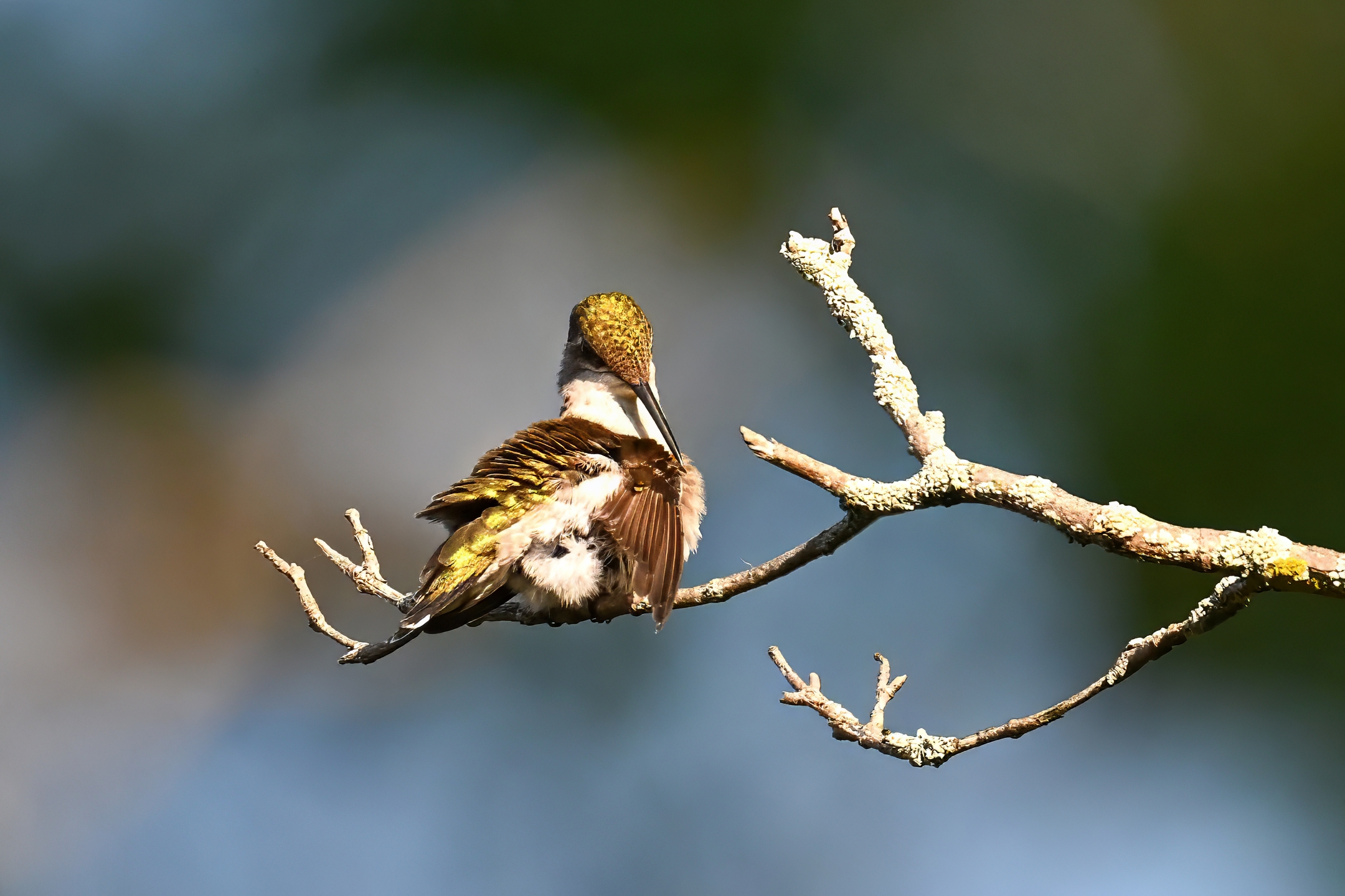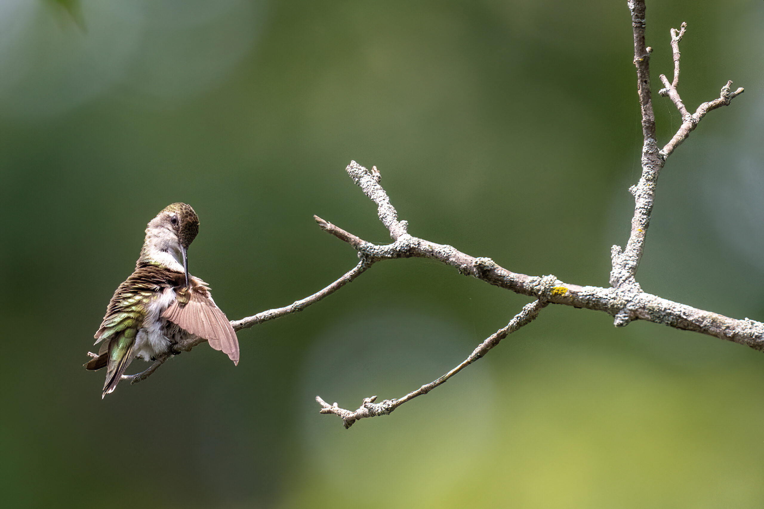 Today’s post featuring an amazing female Ruby-throated Hummingbird (mostly exhibiting preening behaviour) in Millcreek Twp, Pennsylvania (“Since 1800”), from 1 August 2025: