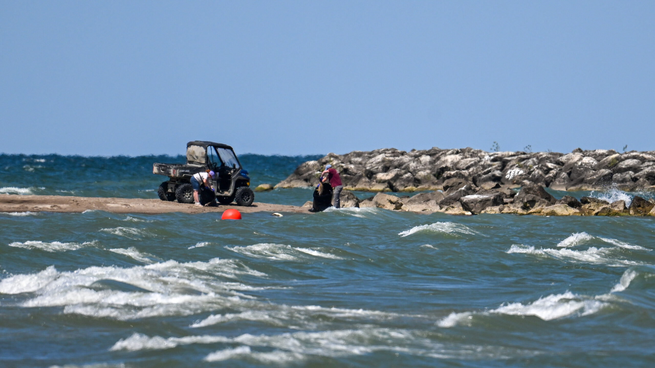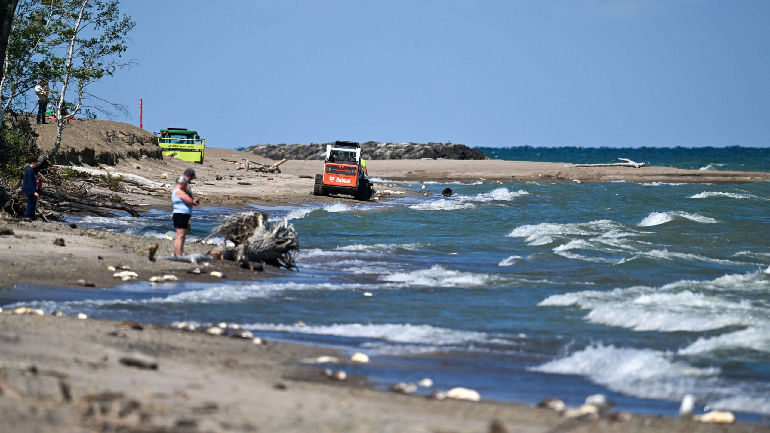 Unfortunately, the Presque Isle Triathlon is this morning (Saturday), including a swim portion just up the beach in the shot above. Crews were spotted doing beach cleanup, as above/below.