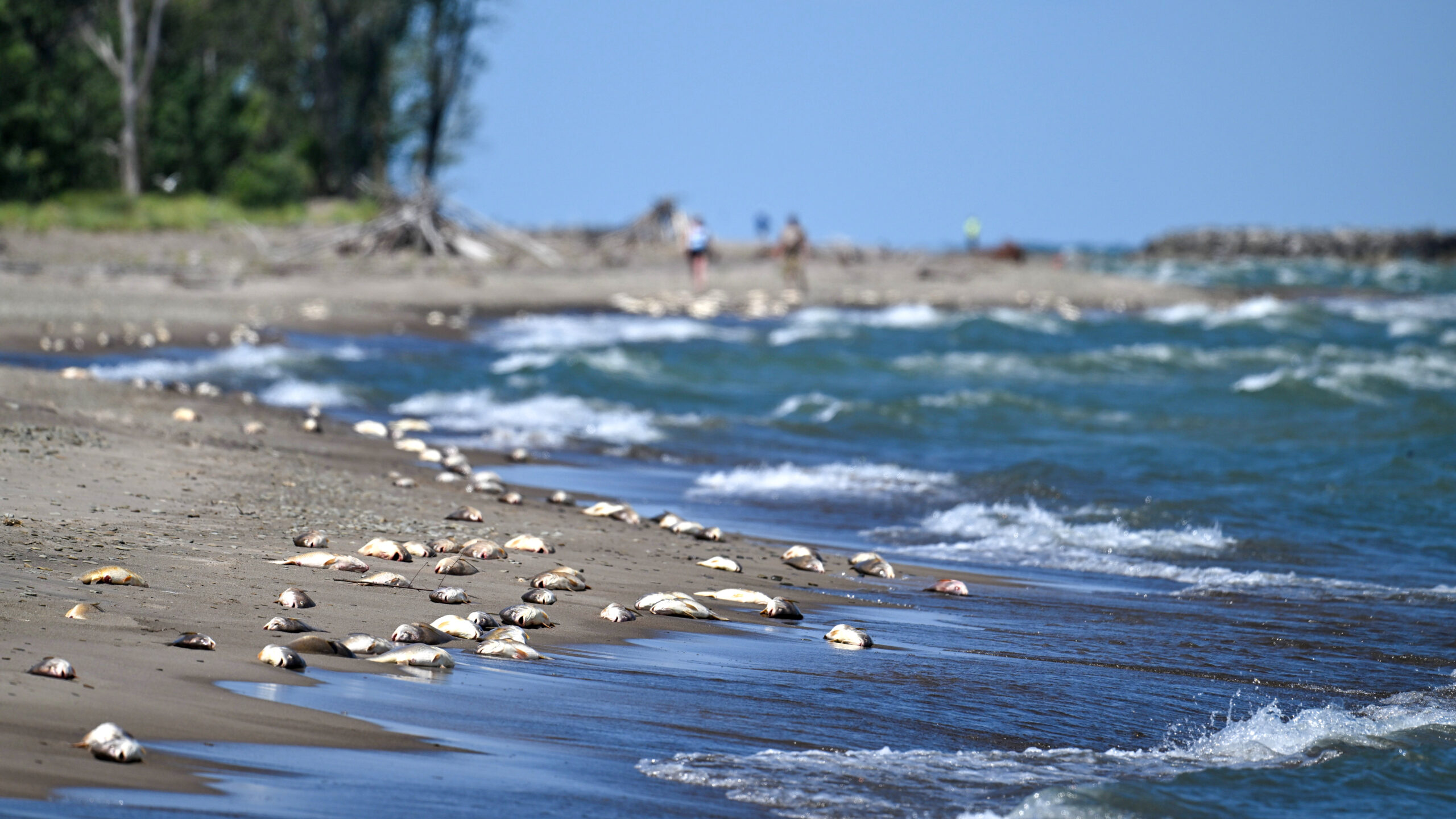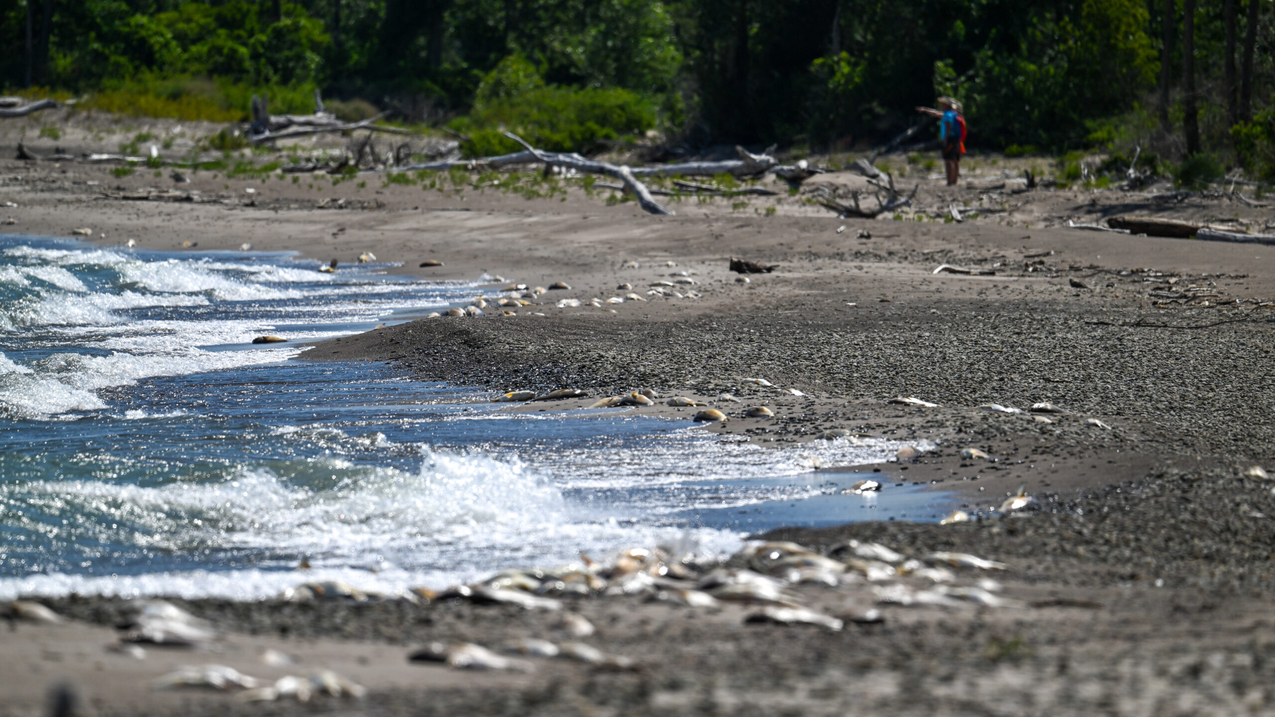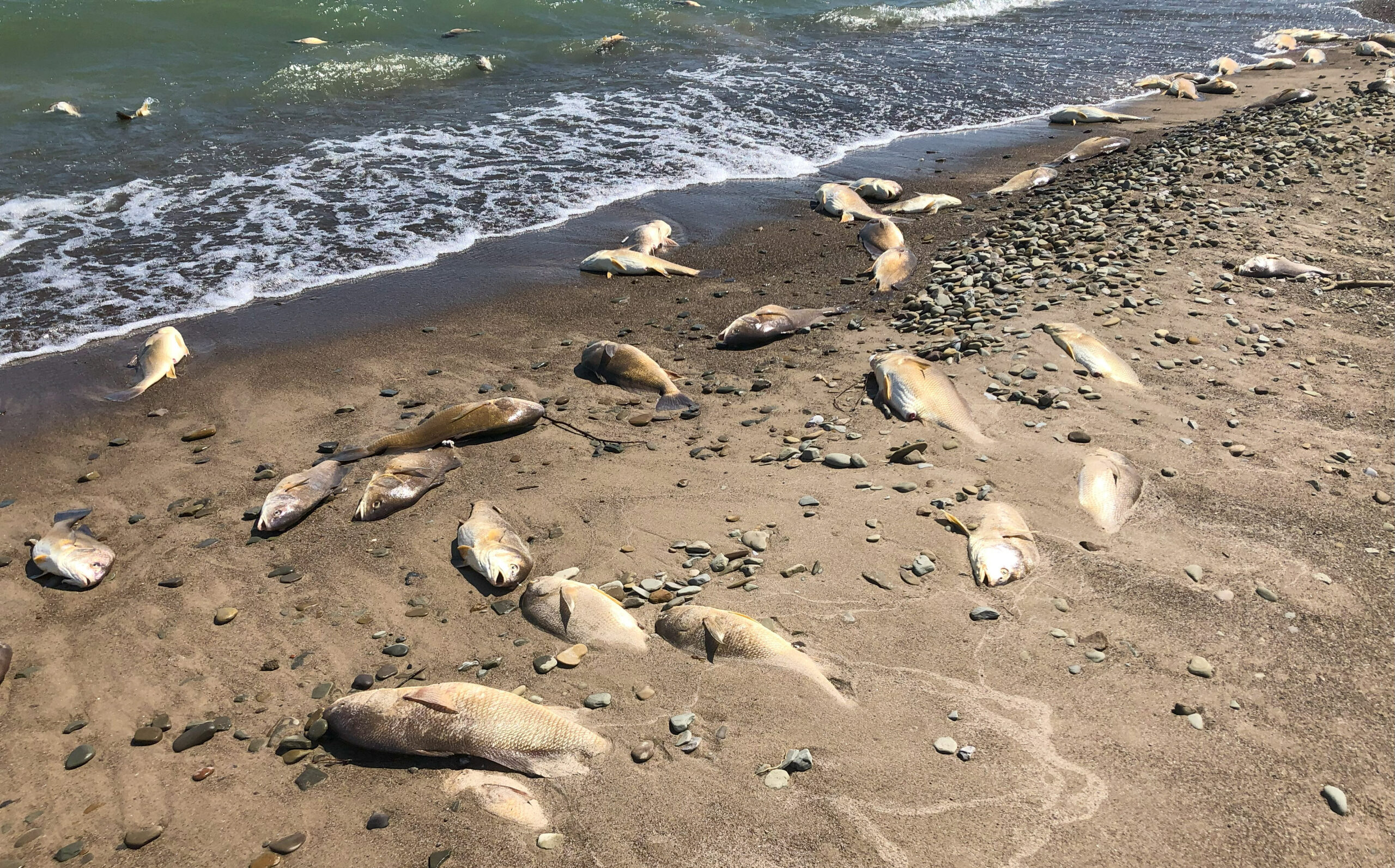 Preliminarily, this was attributed to hypoxic upwelling, where weather conditions (e.g., recent very windy weather) force de-oxygenated water up to the lake surface and fish closer to shore, where they suffer from hypoxia, leading to death by lack of oxygen.