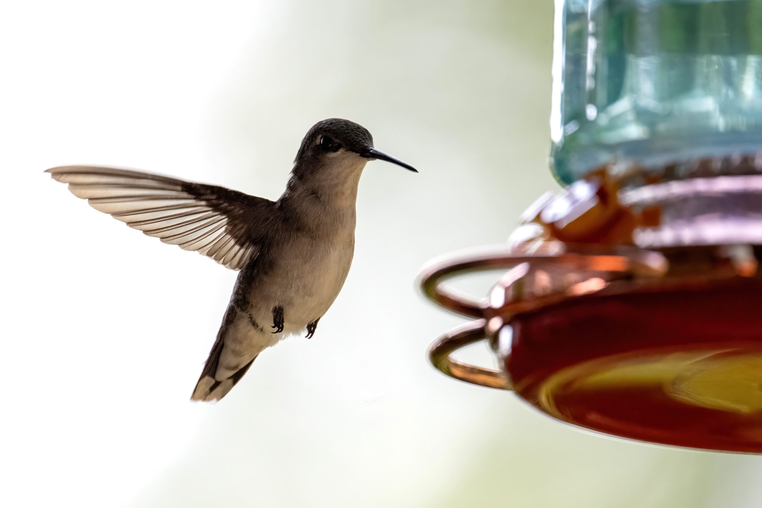 For the rest of the post, back to more recent Erie County, Pennsylvania hummingbird activity, w/ female Ruby-throated Hummingbird on and off a feeder: