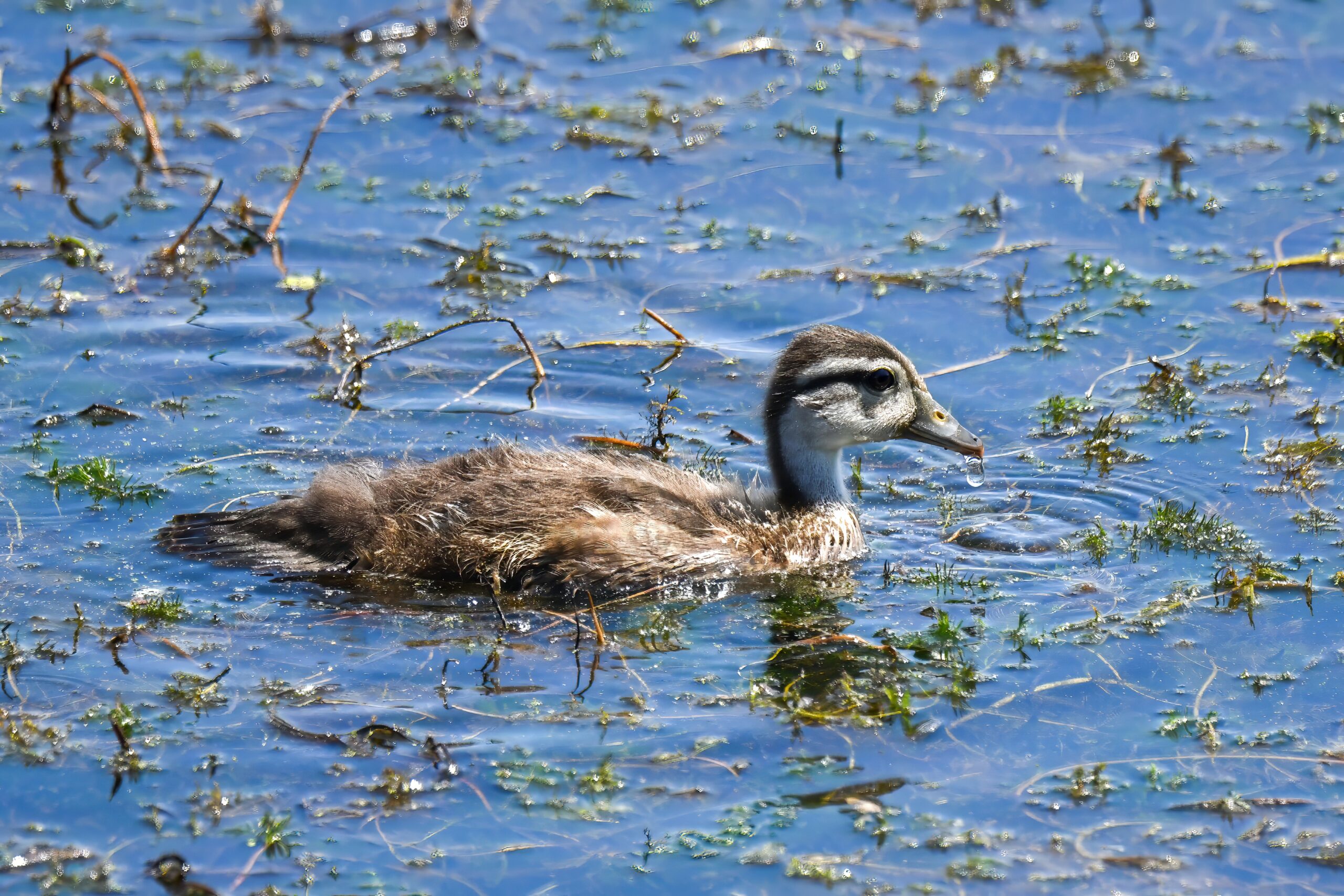 These shots: recent sunset (above), a beautiful roadside Red-tailed Hawk at Presque Isle State Park (immediately below), & a beautiful immature (older duckling) Wood Duck at South Pier: