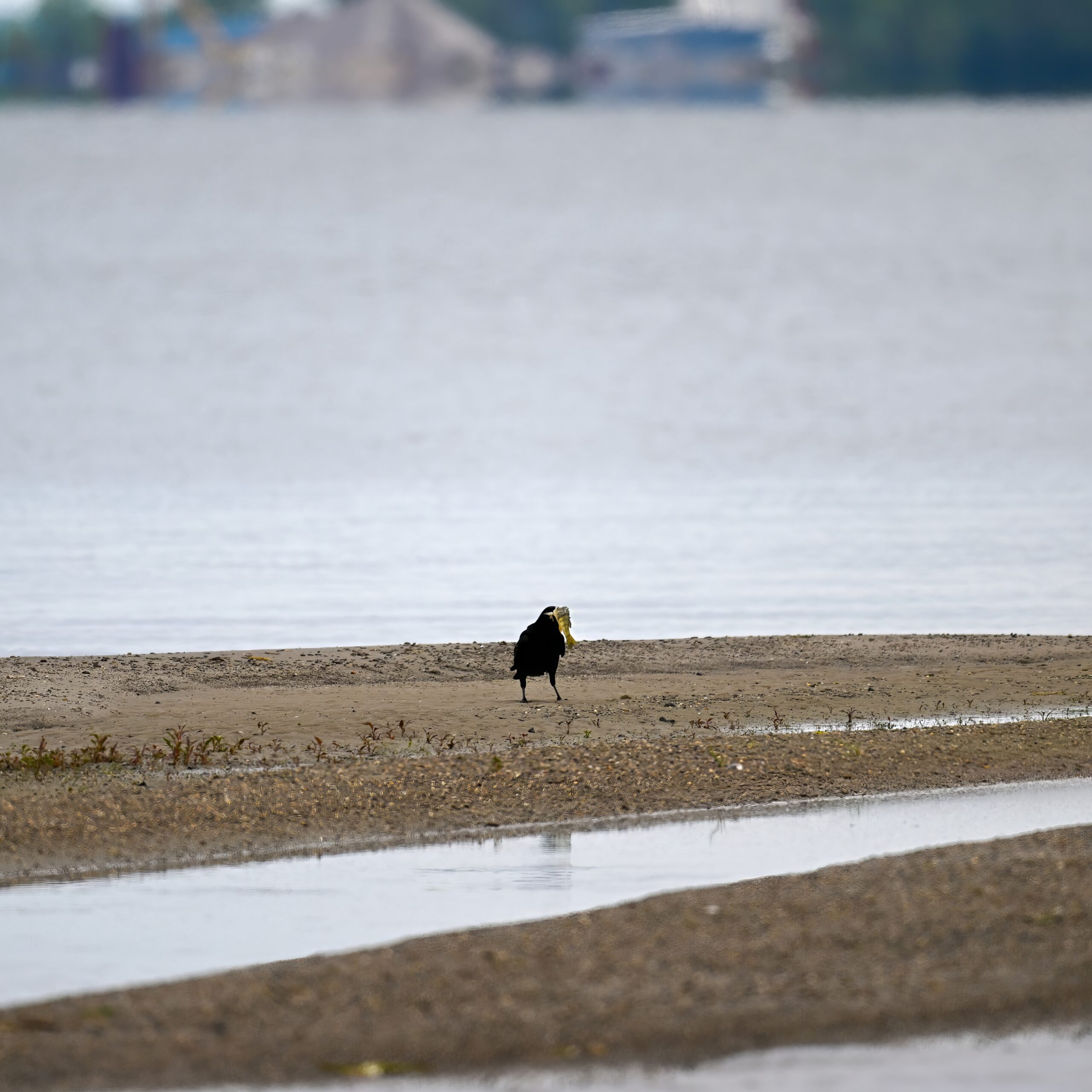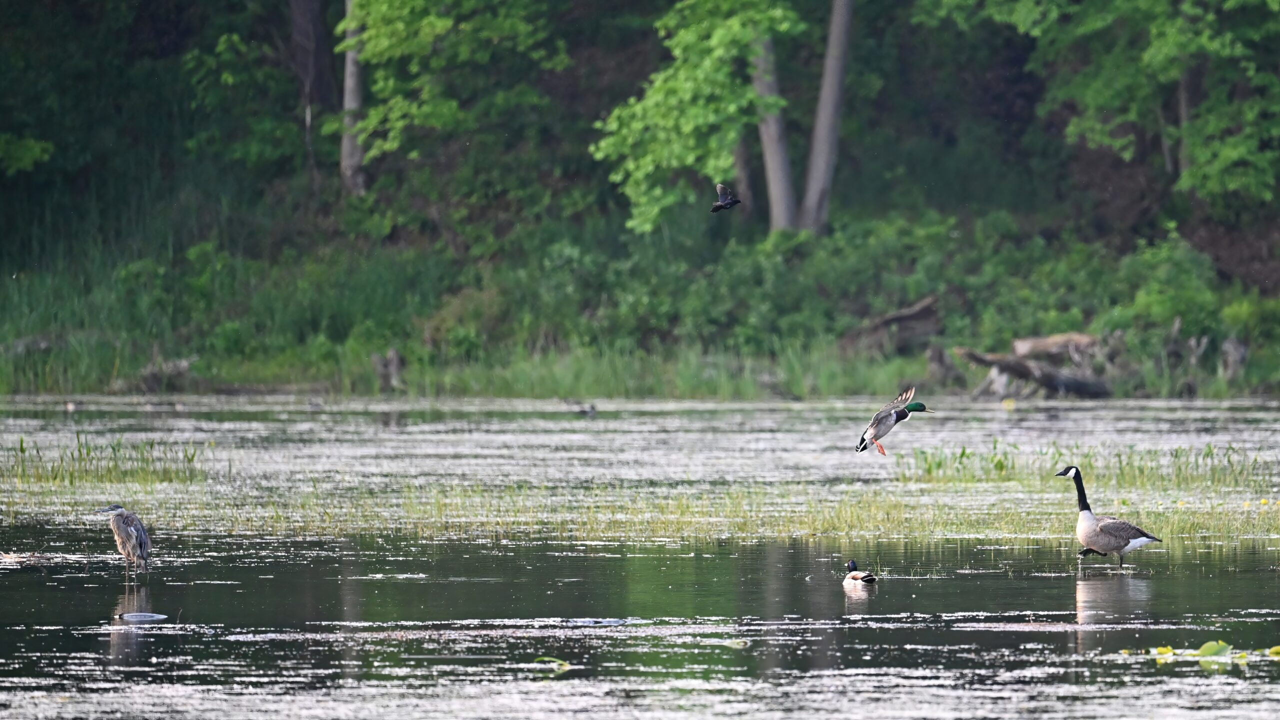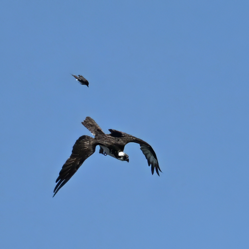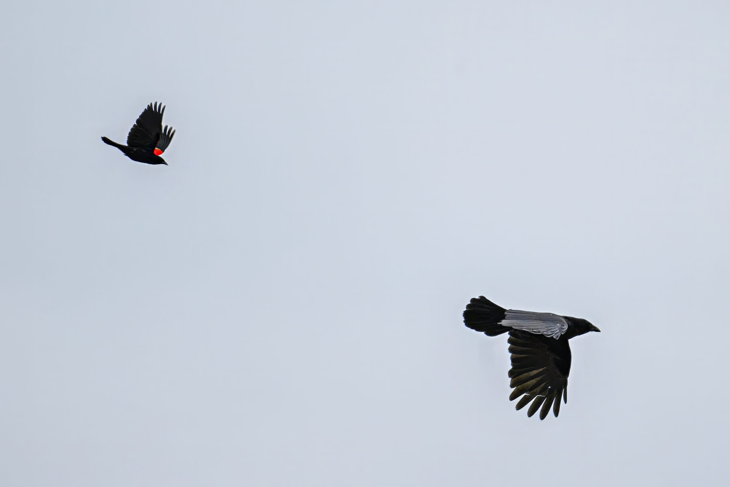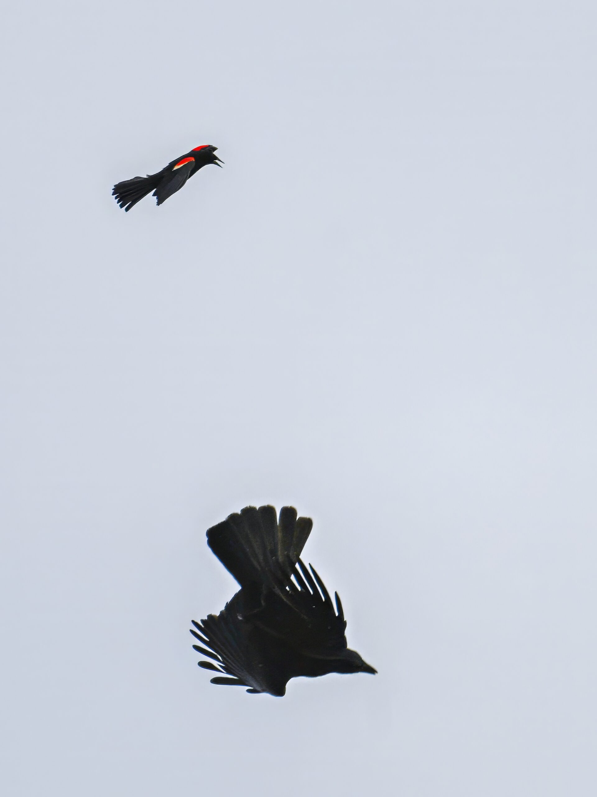 From May at Presque Isle State Park, a two-parter. First up, part 1, with American Crow harassed by a Red-winged Blackbird: