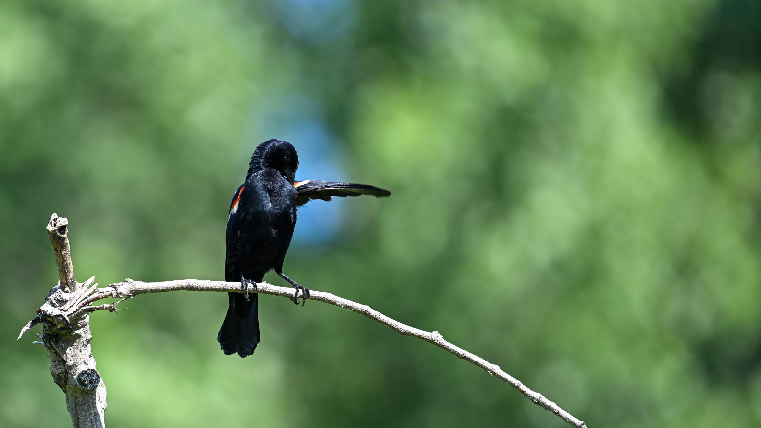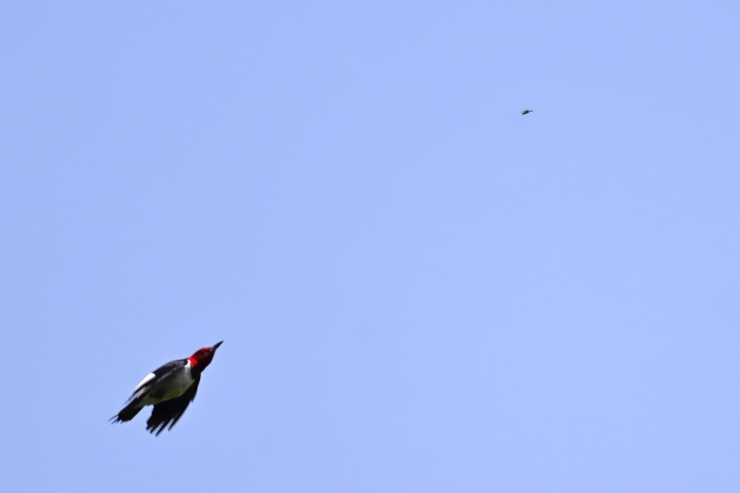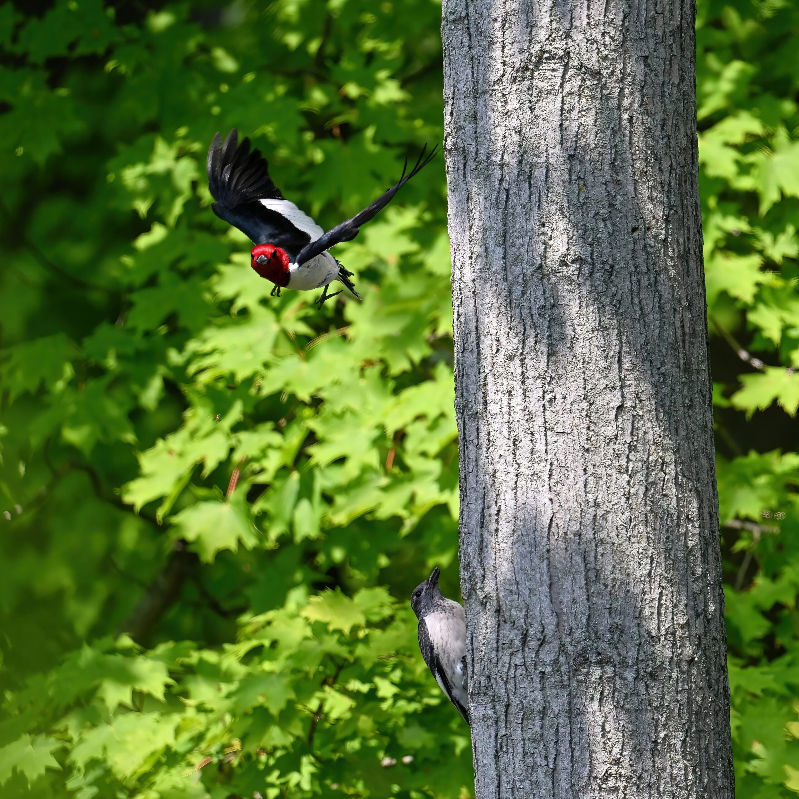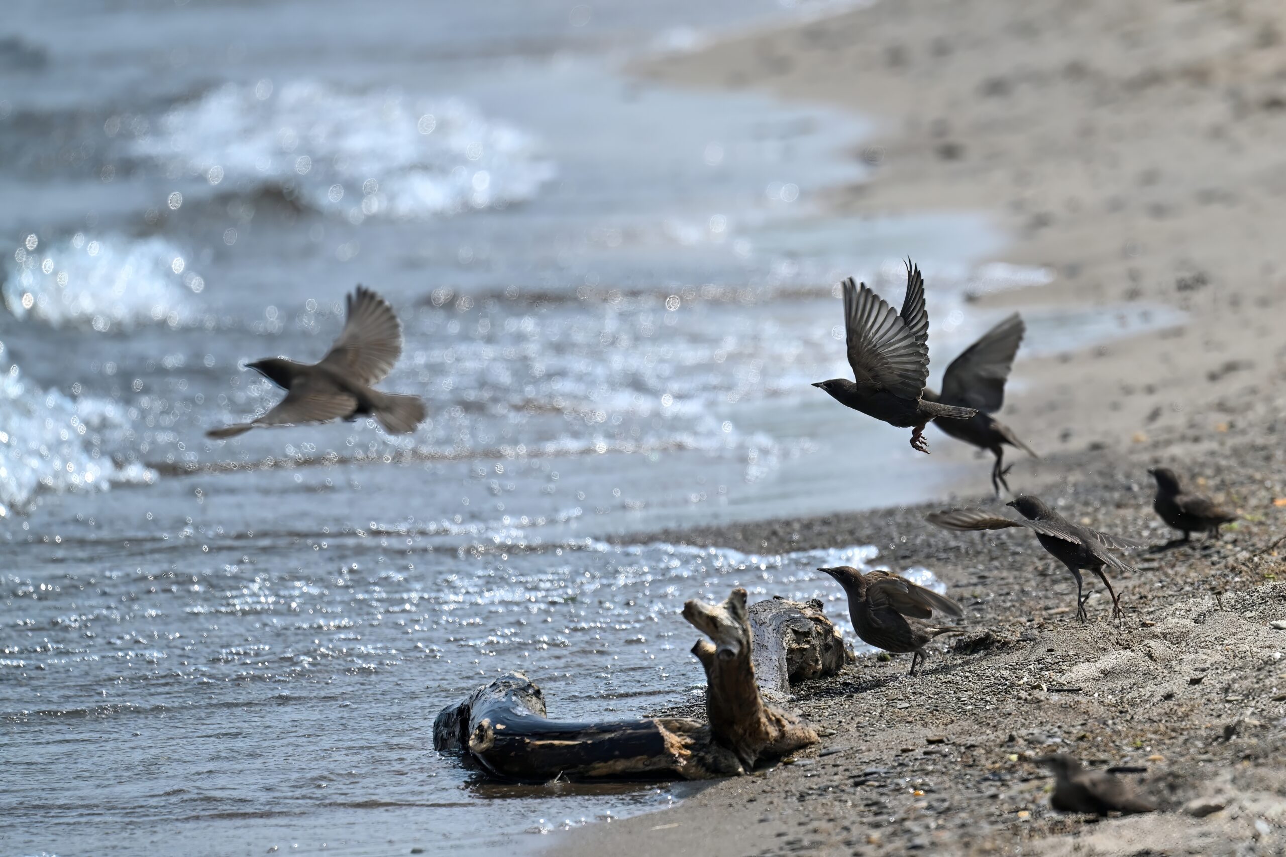From May at Presque Isle State Park, a two-parter. First up, part 1, with American Crow harassed by a Red-winged Blackbird:
