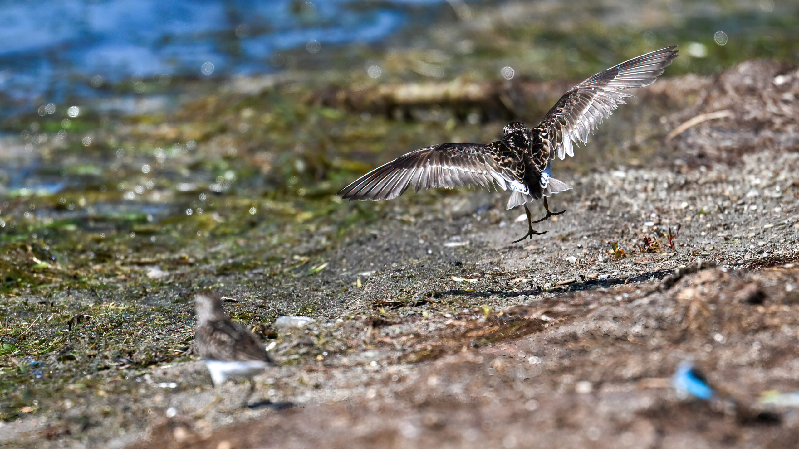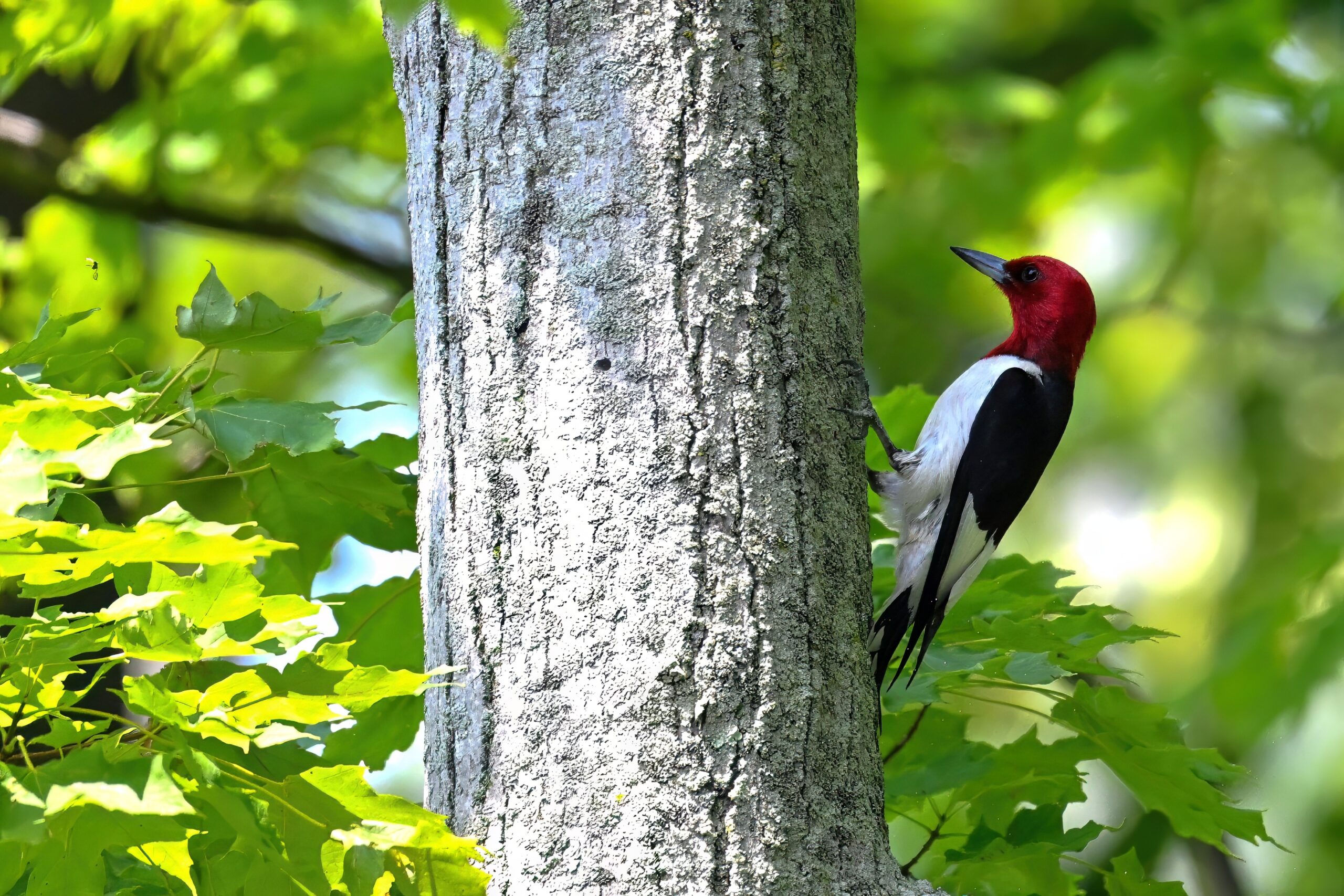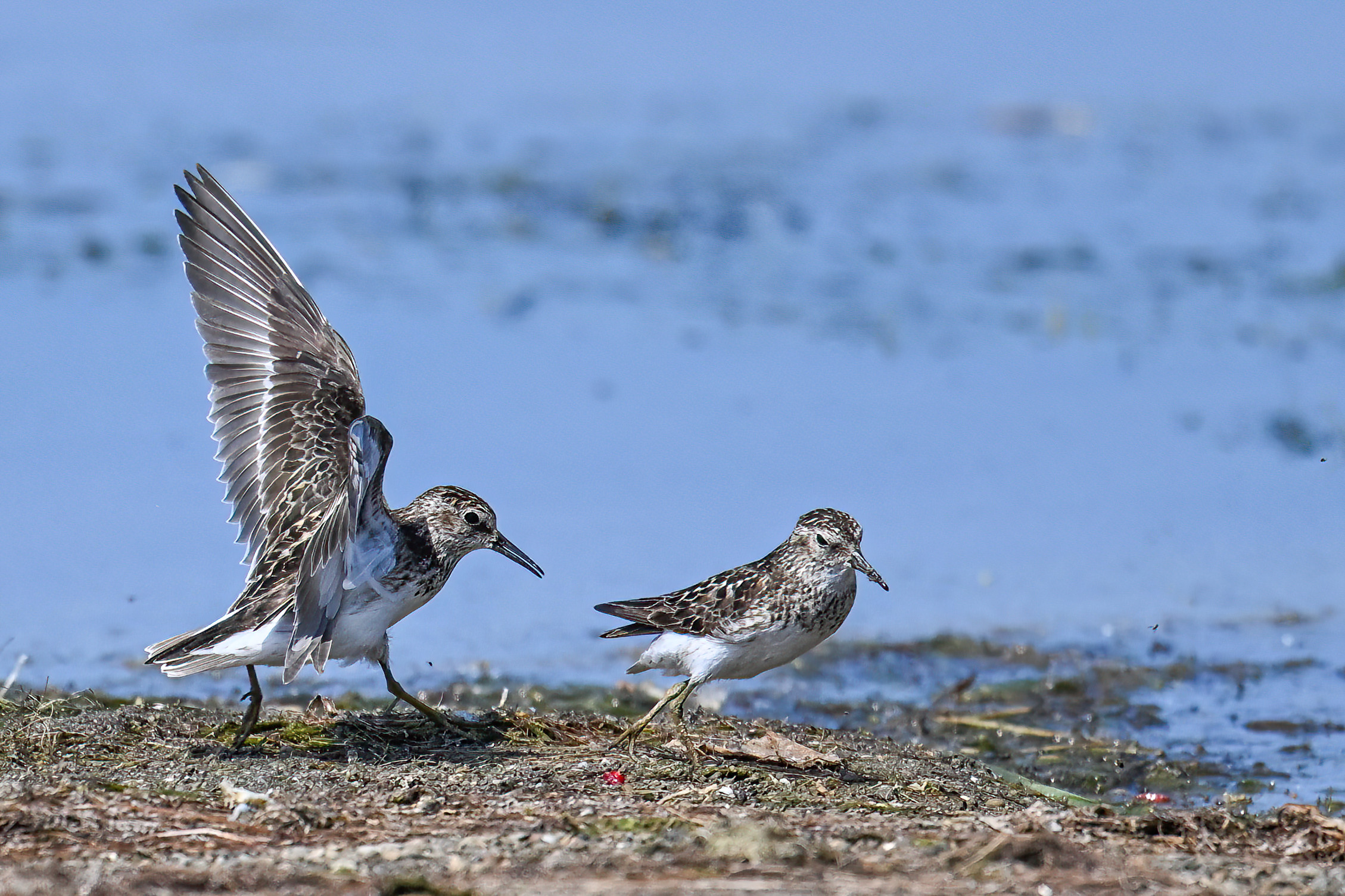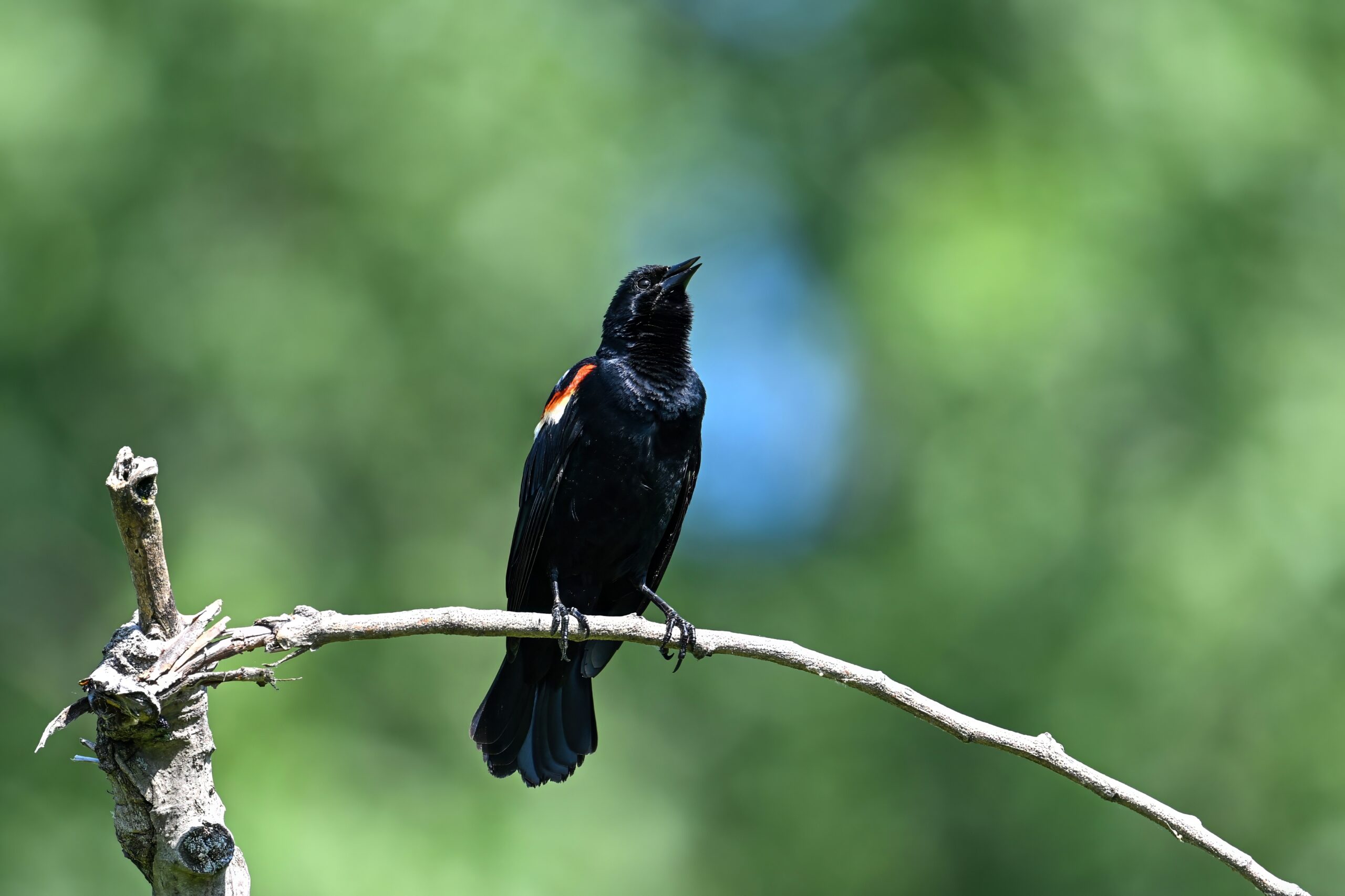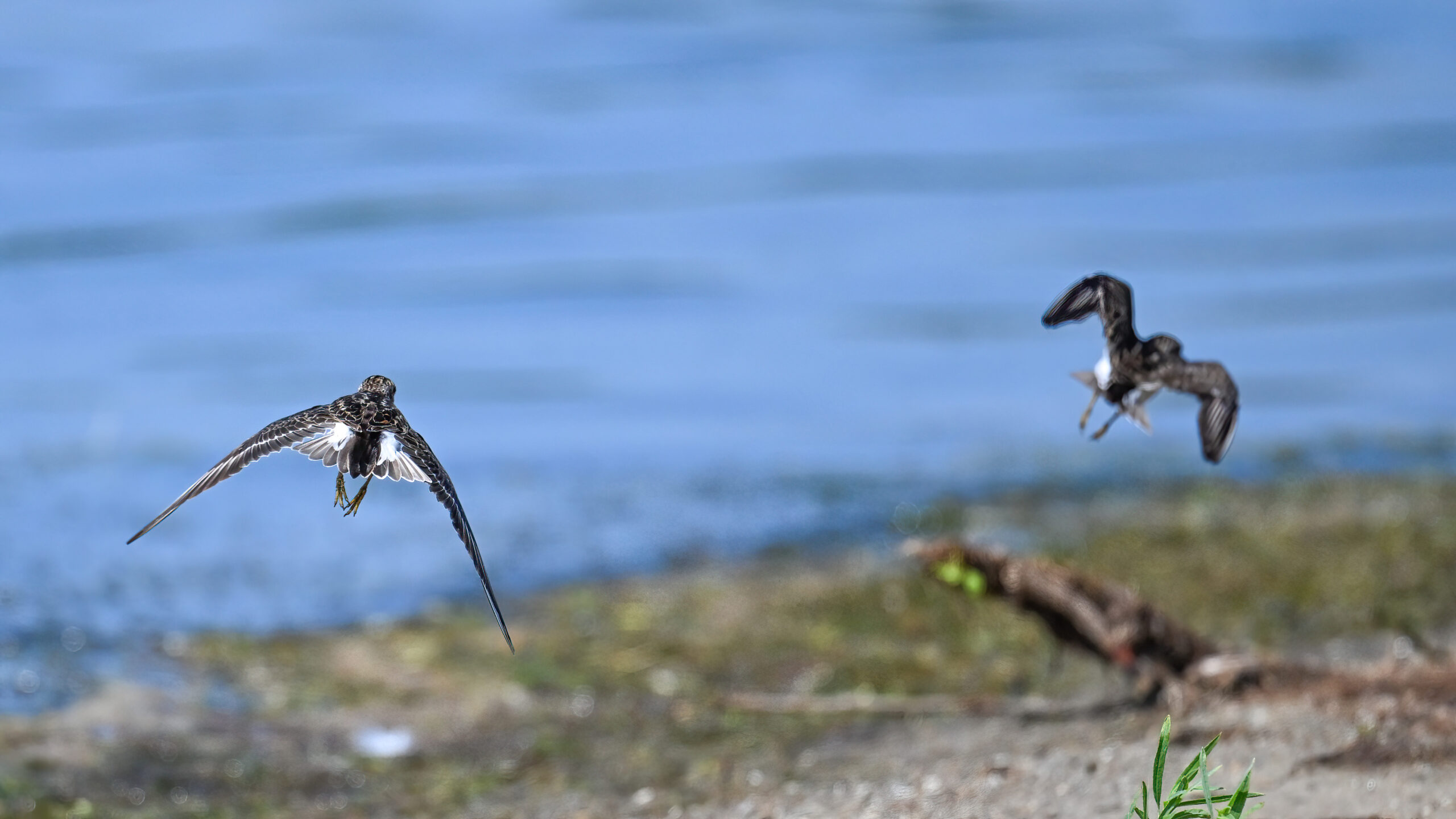From May at Presque Isle State Park, a two-parter. First up, part 1, with American Crow harassed by a Red-winged Blackbird:
