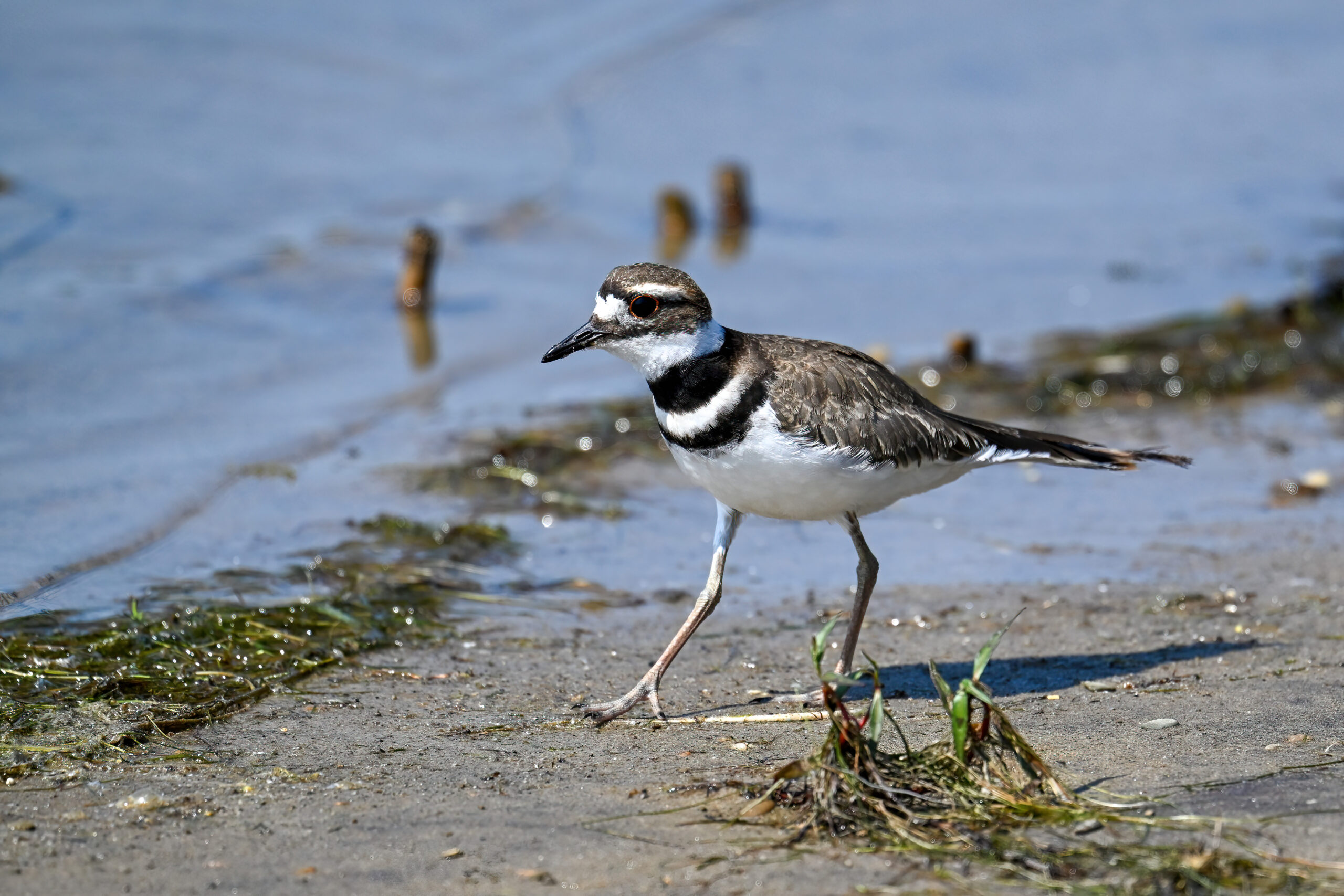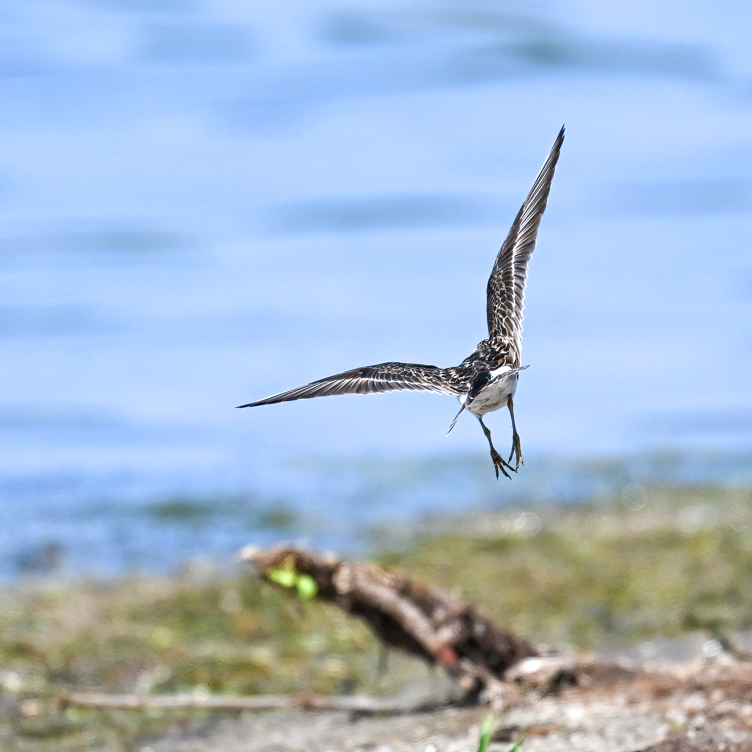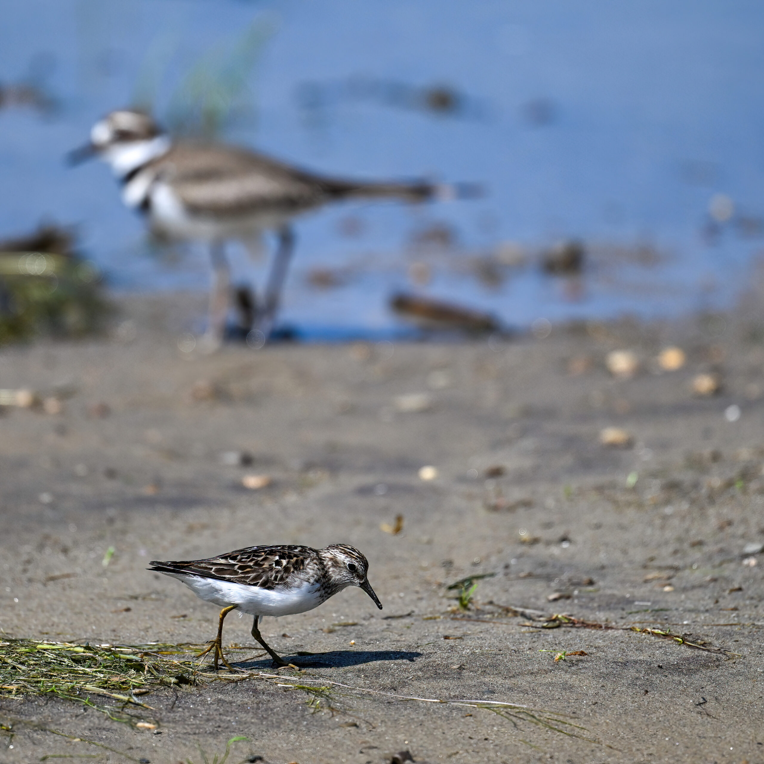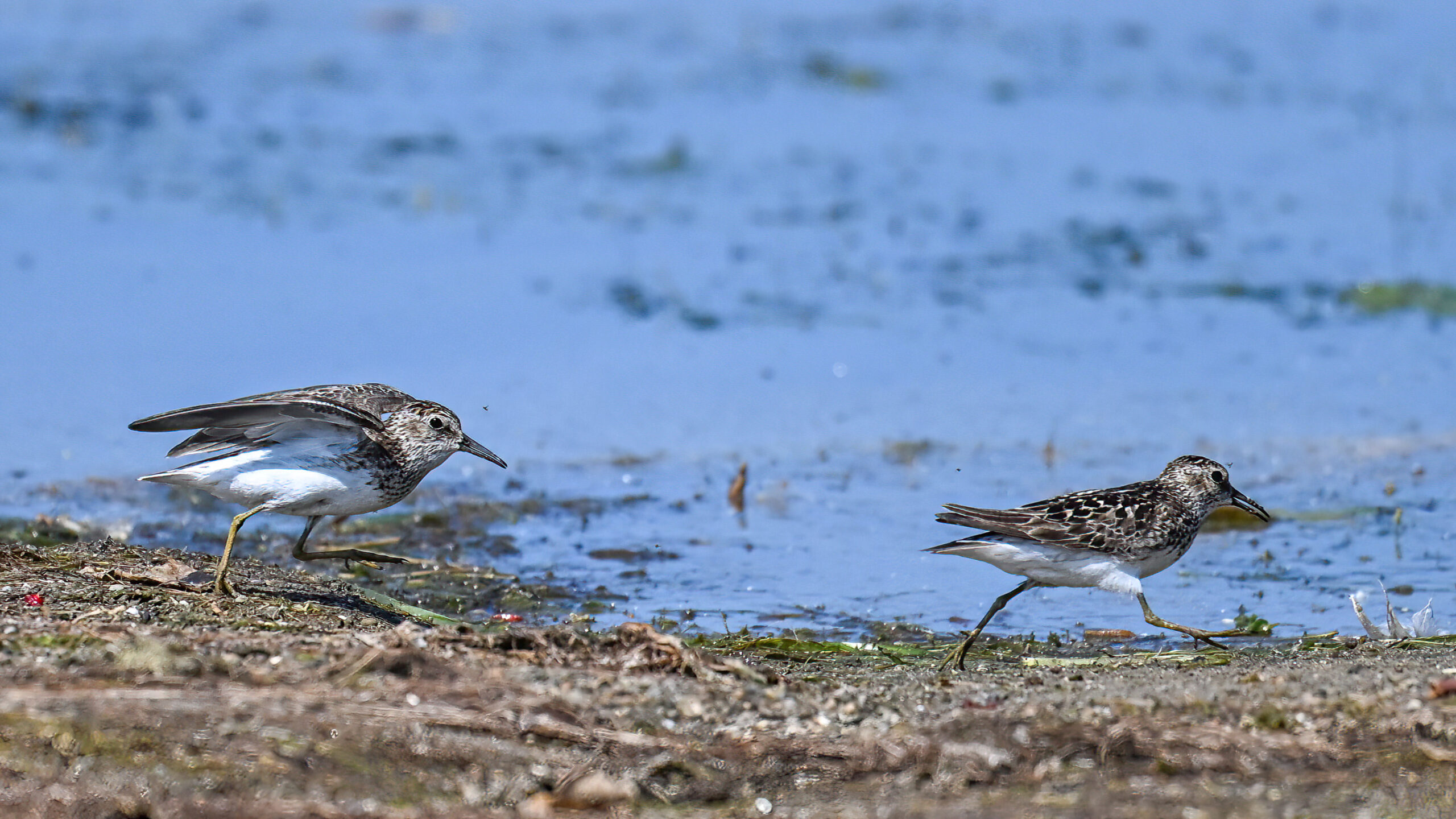 From May at Presque Isle State Park, a two-parter. First up, part 1, with American Crow harassed by a Red-winged Blackbird: