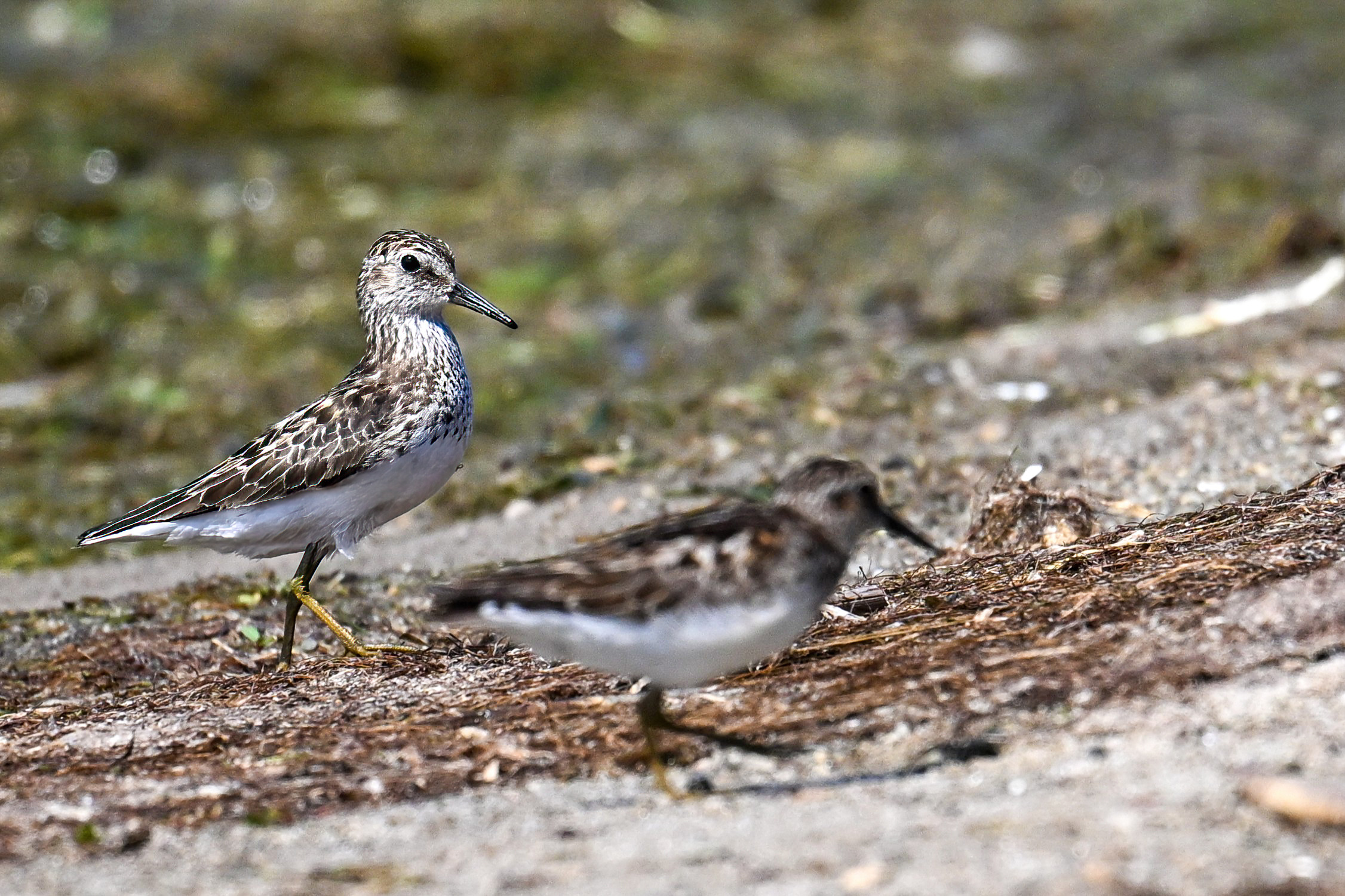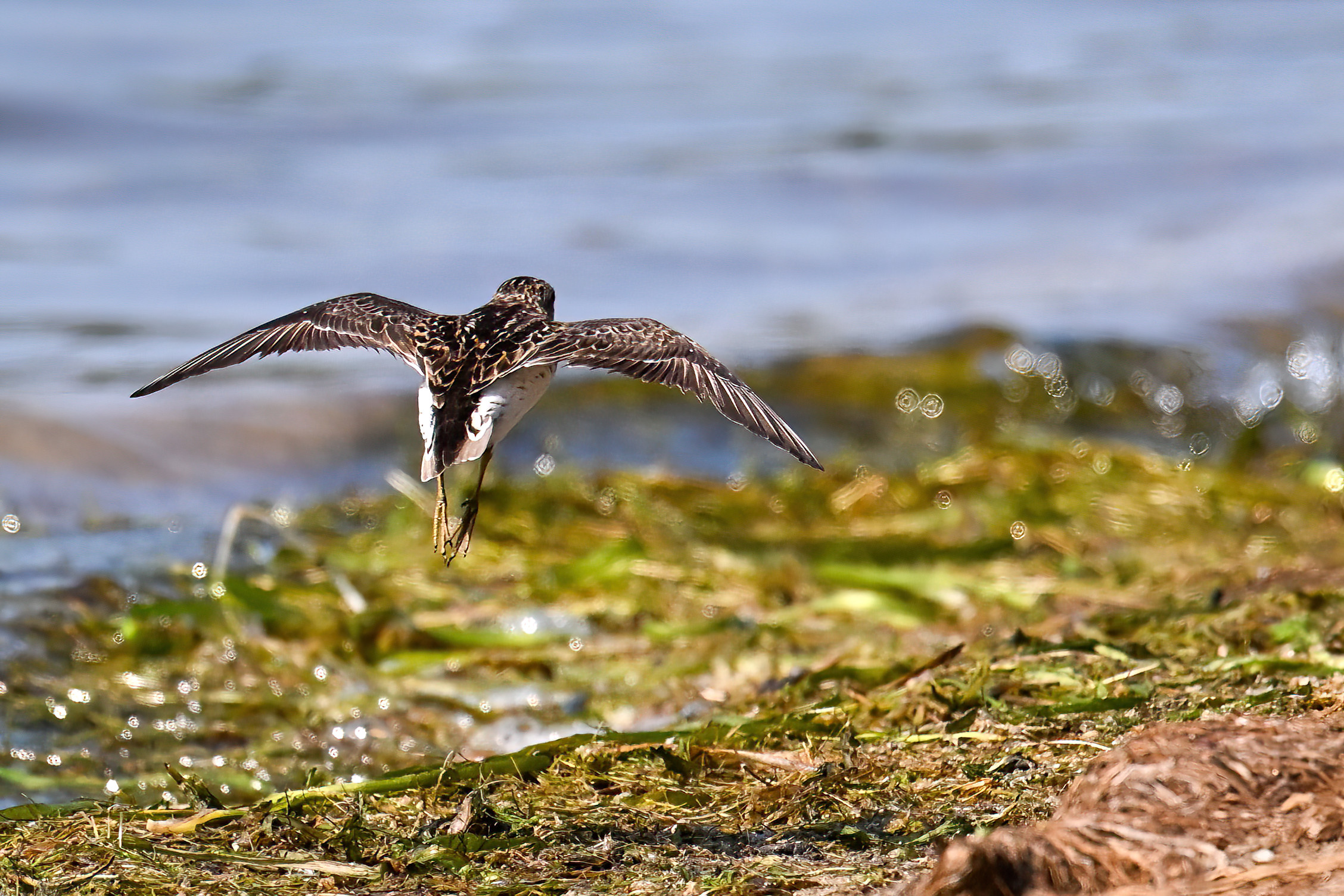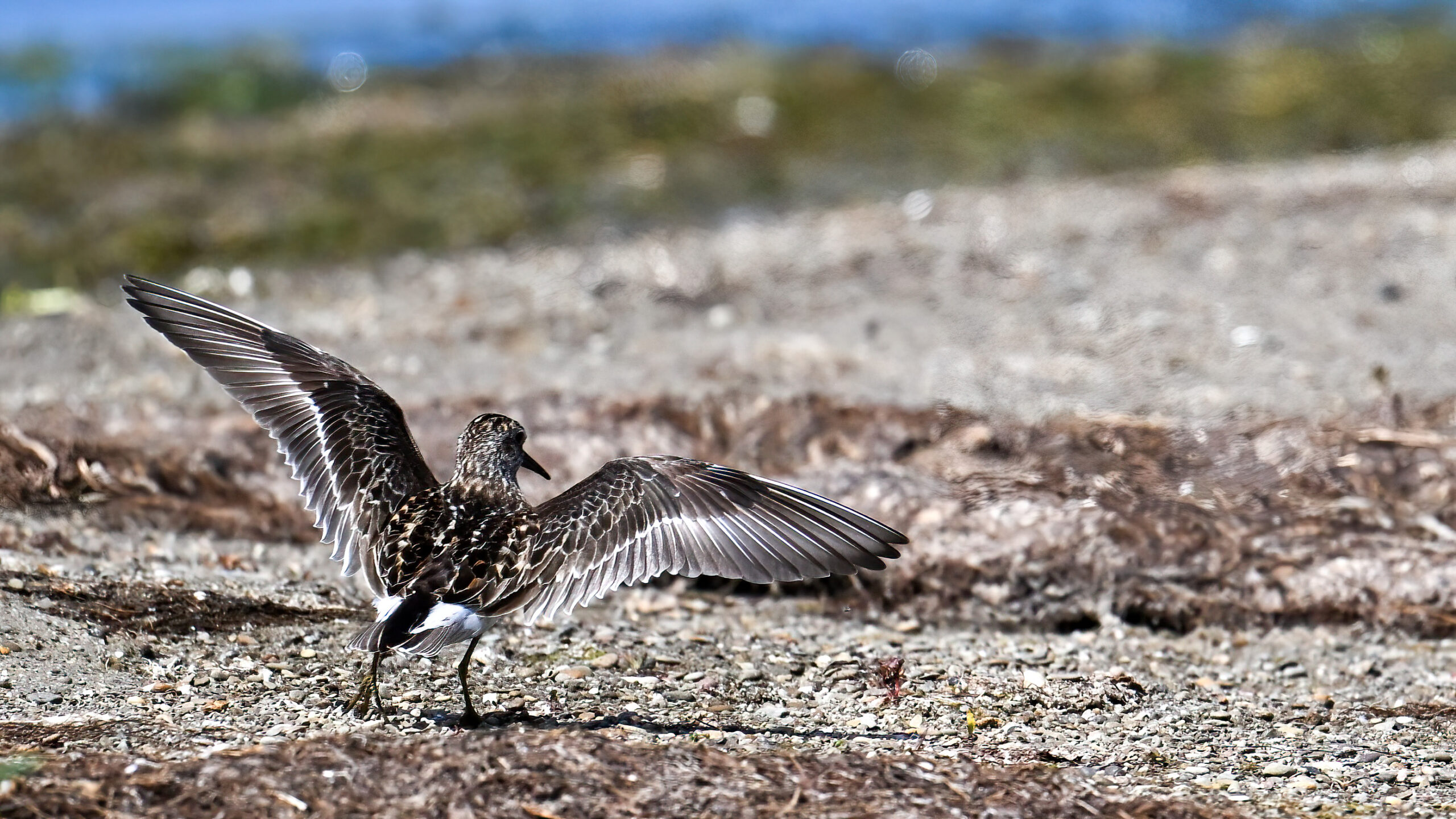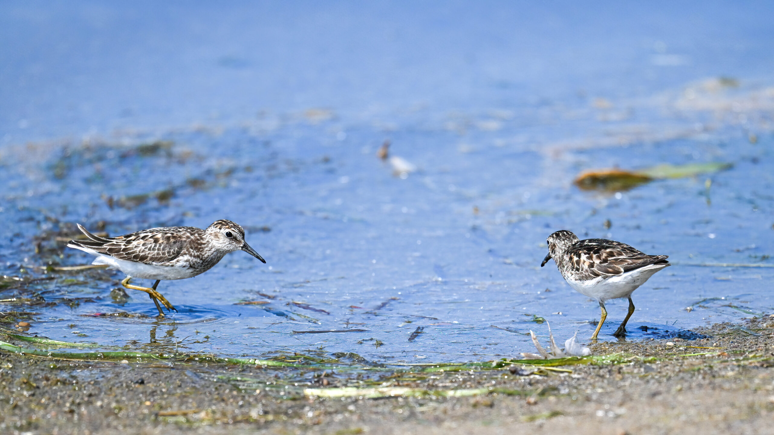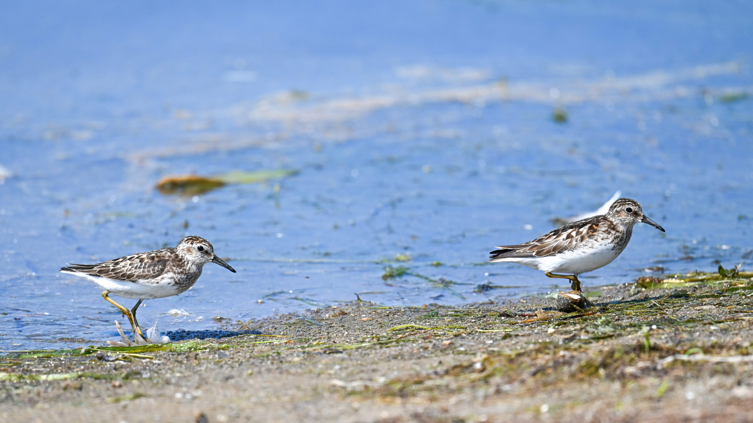 From May at Presque Isle State Park, a two-parter. First up, part 1, with American Crow harassed by a Red-winged Blackbird: