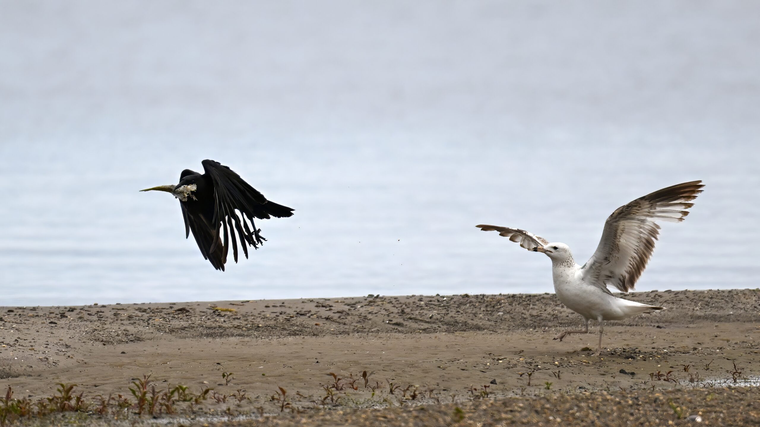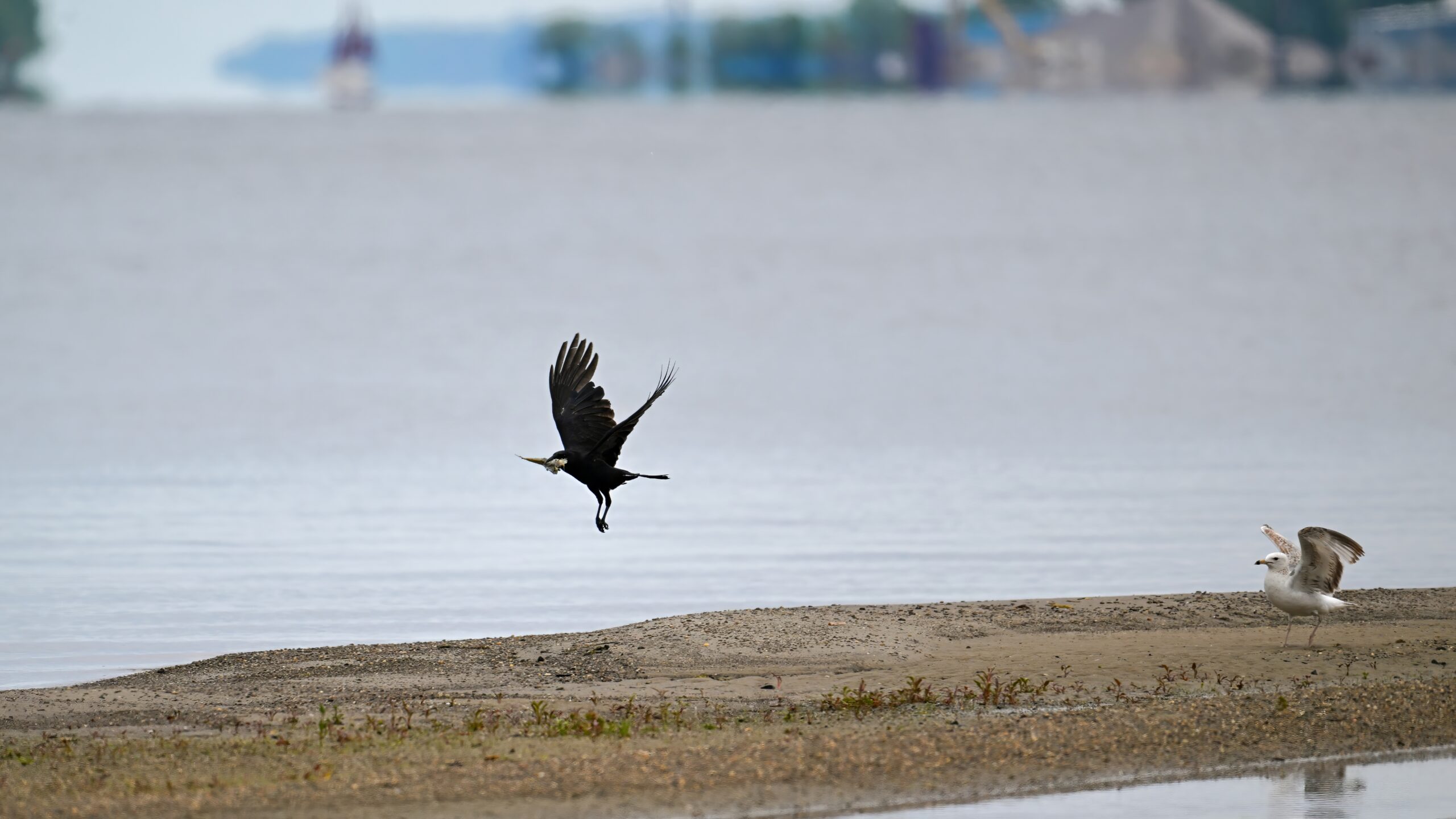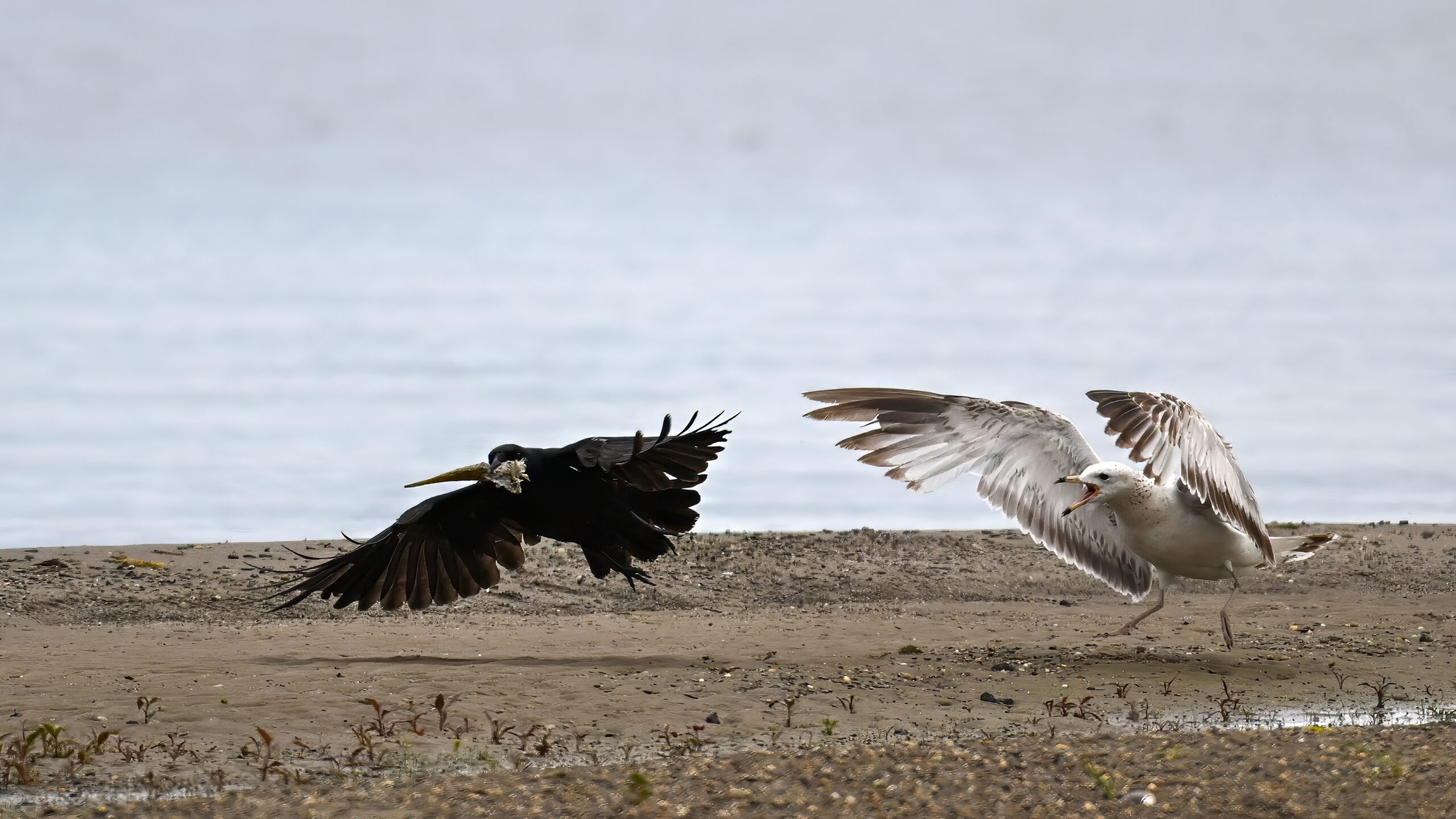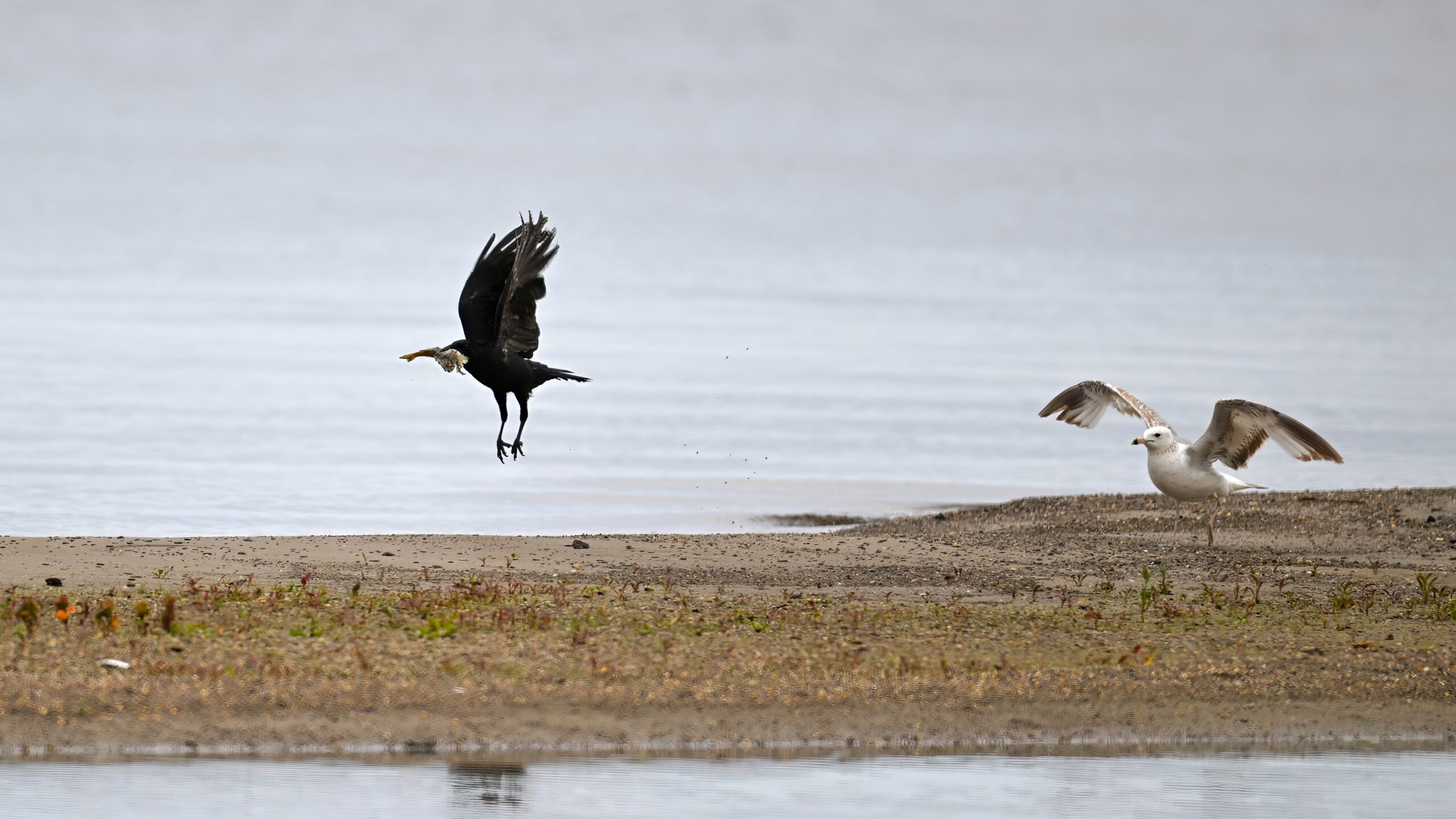 In part 2, it’s an American Crow w/ fish scrap vs. Ring-billed Gull: