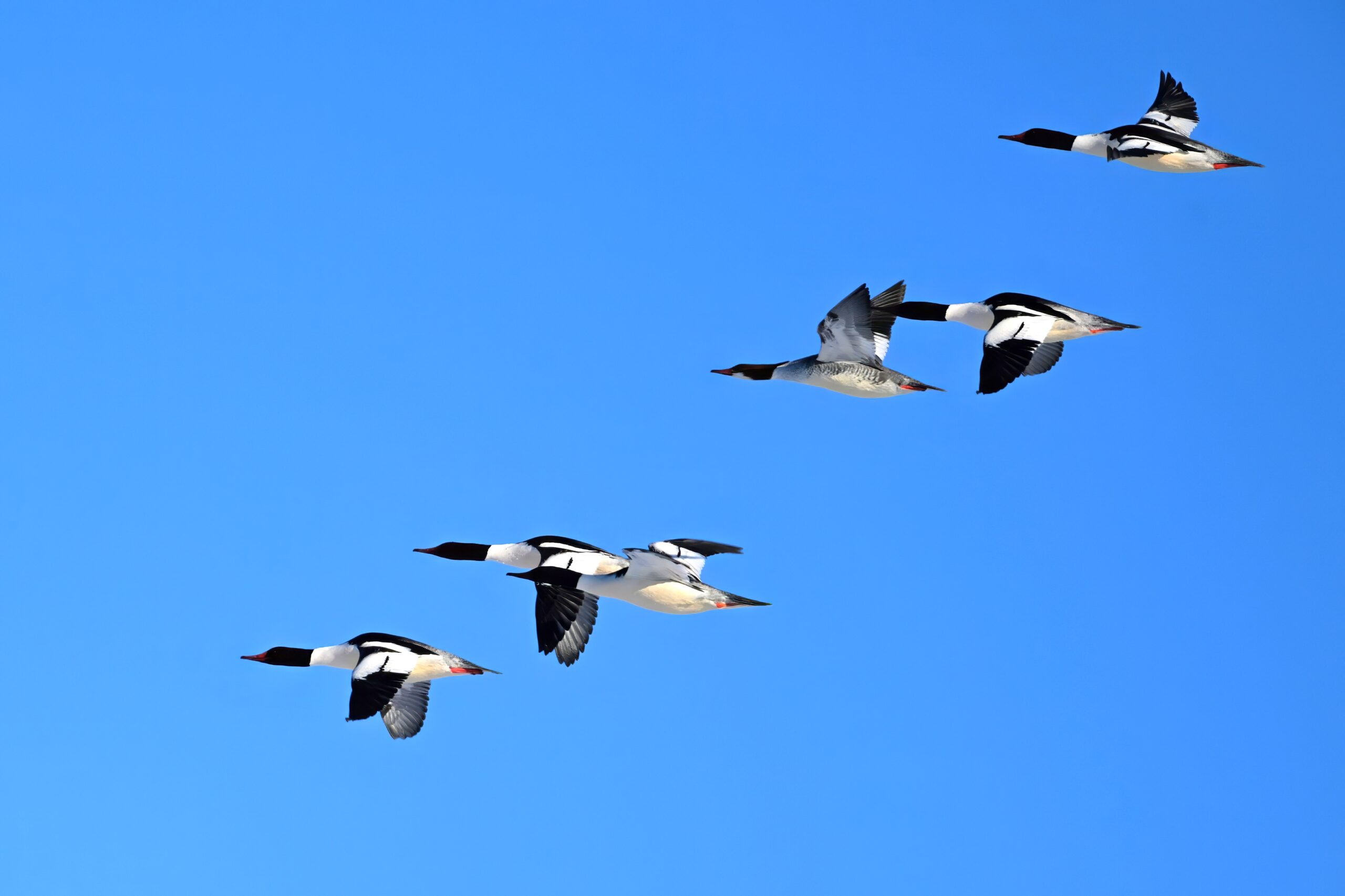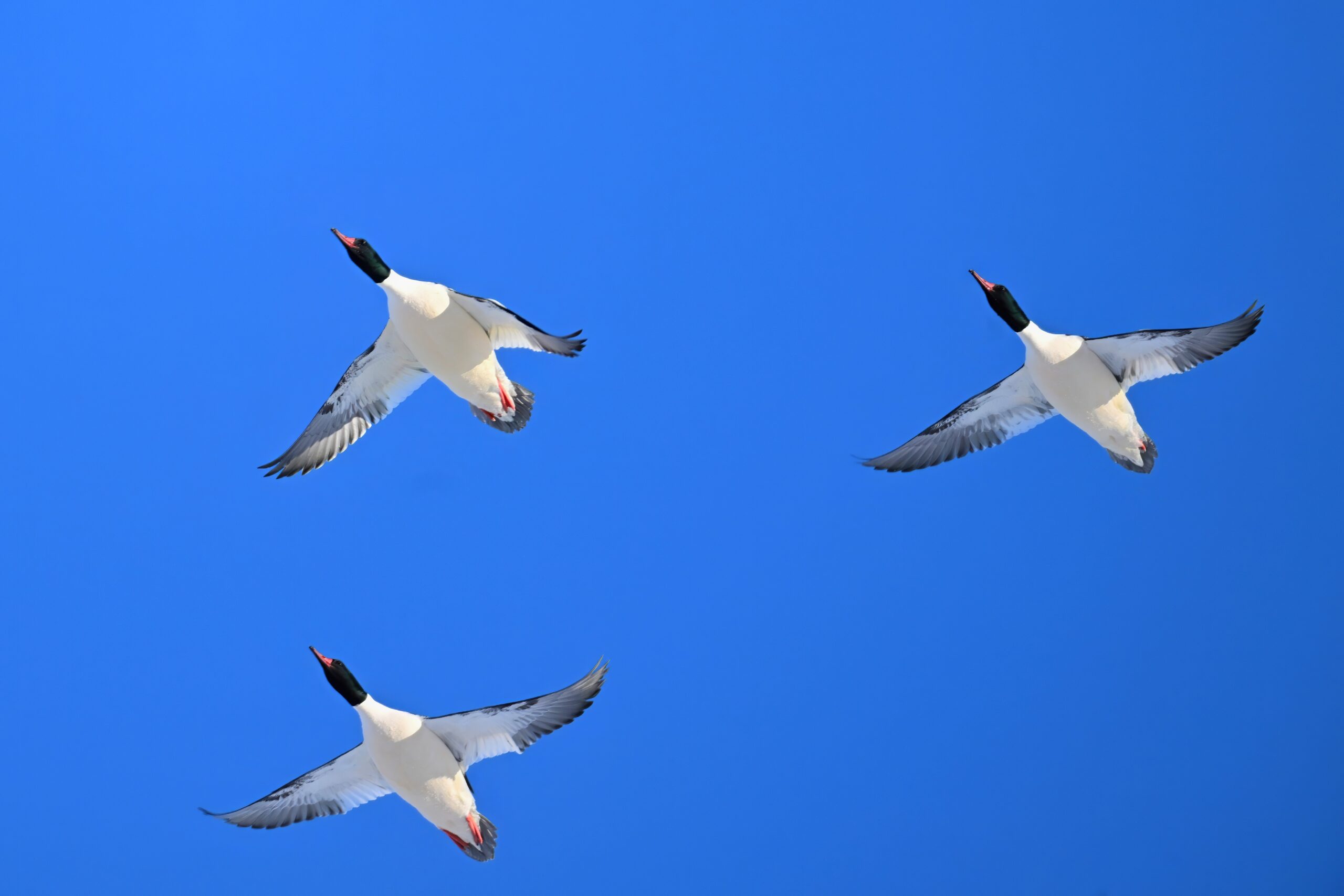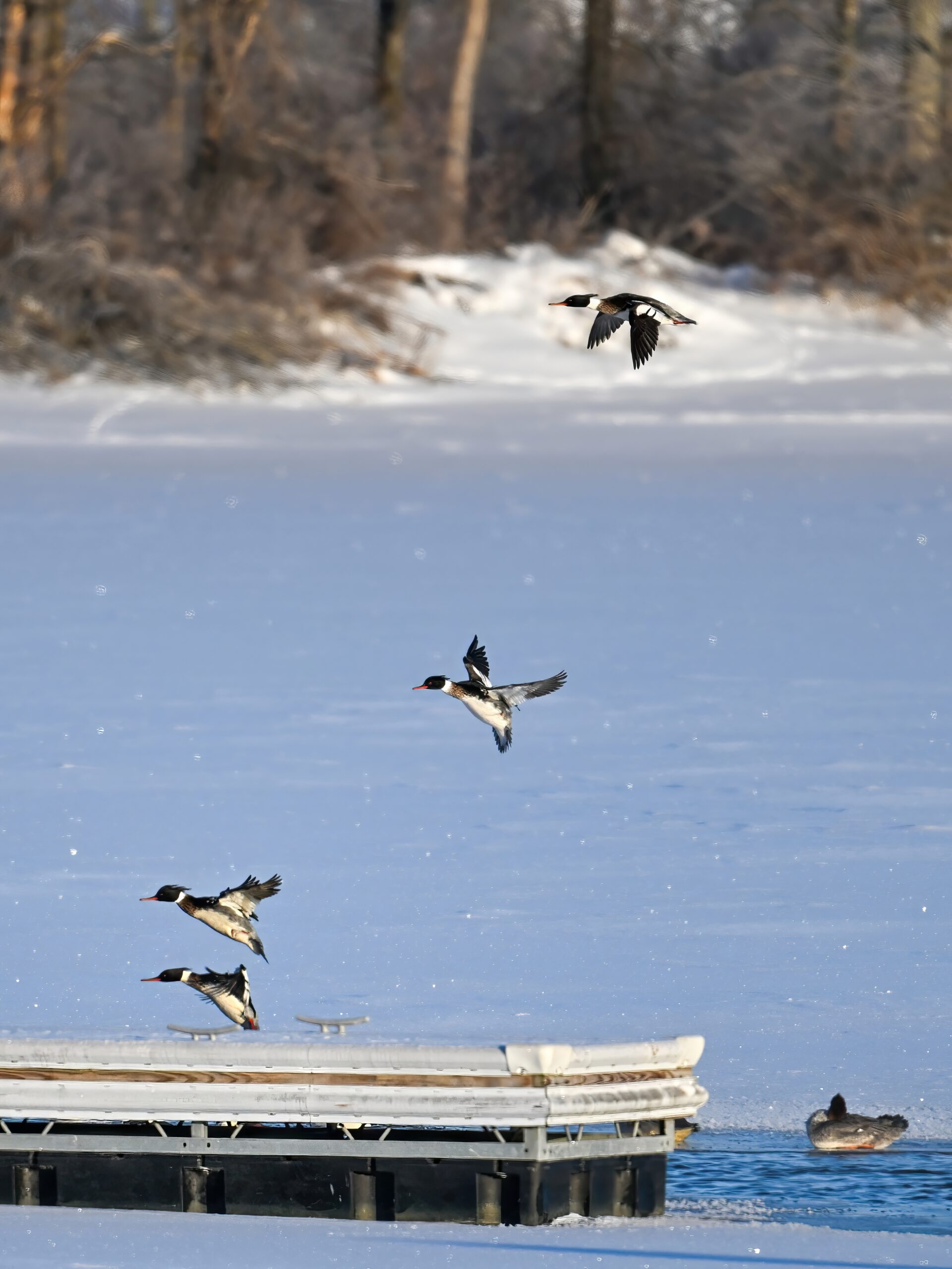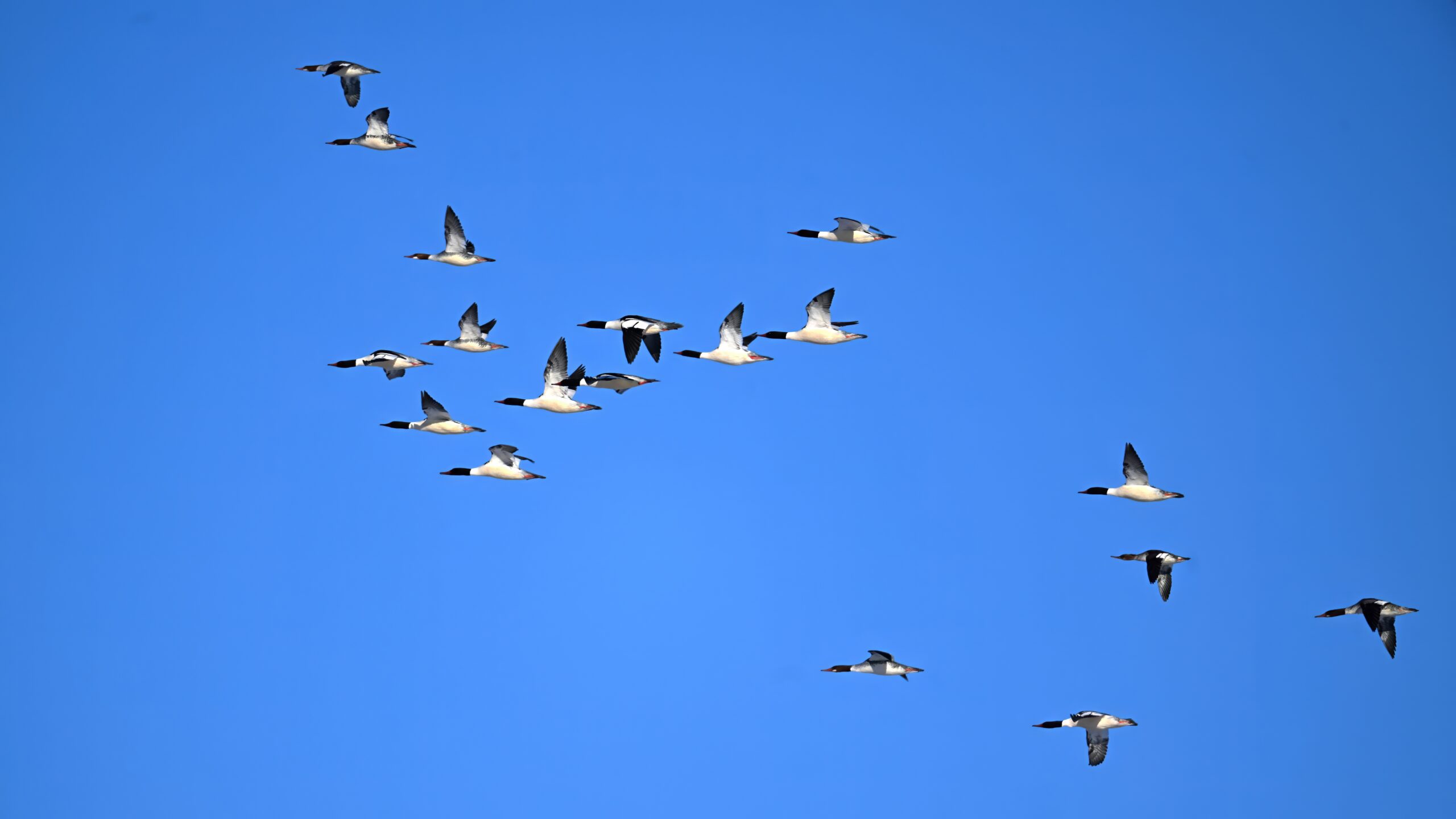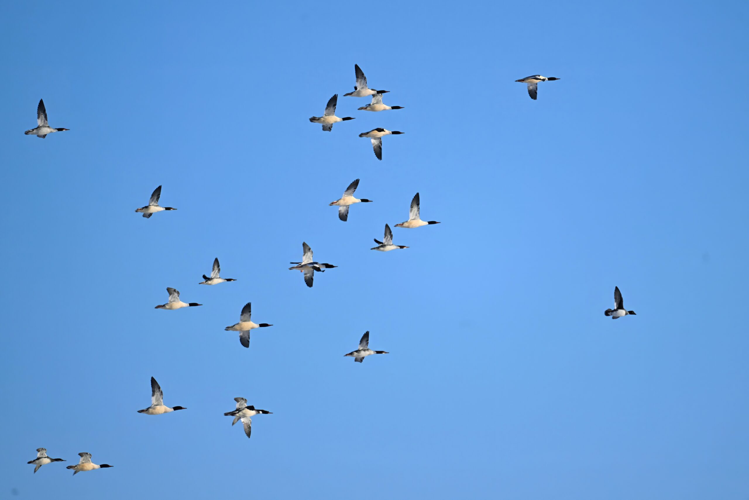 And finally, lots and lots of Common Merganser in flight: