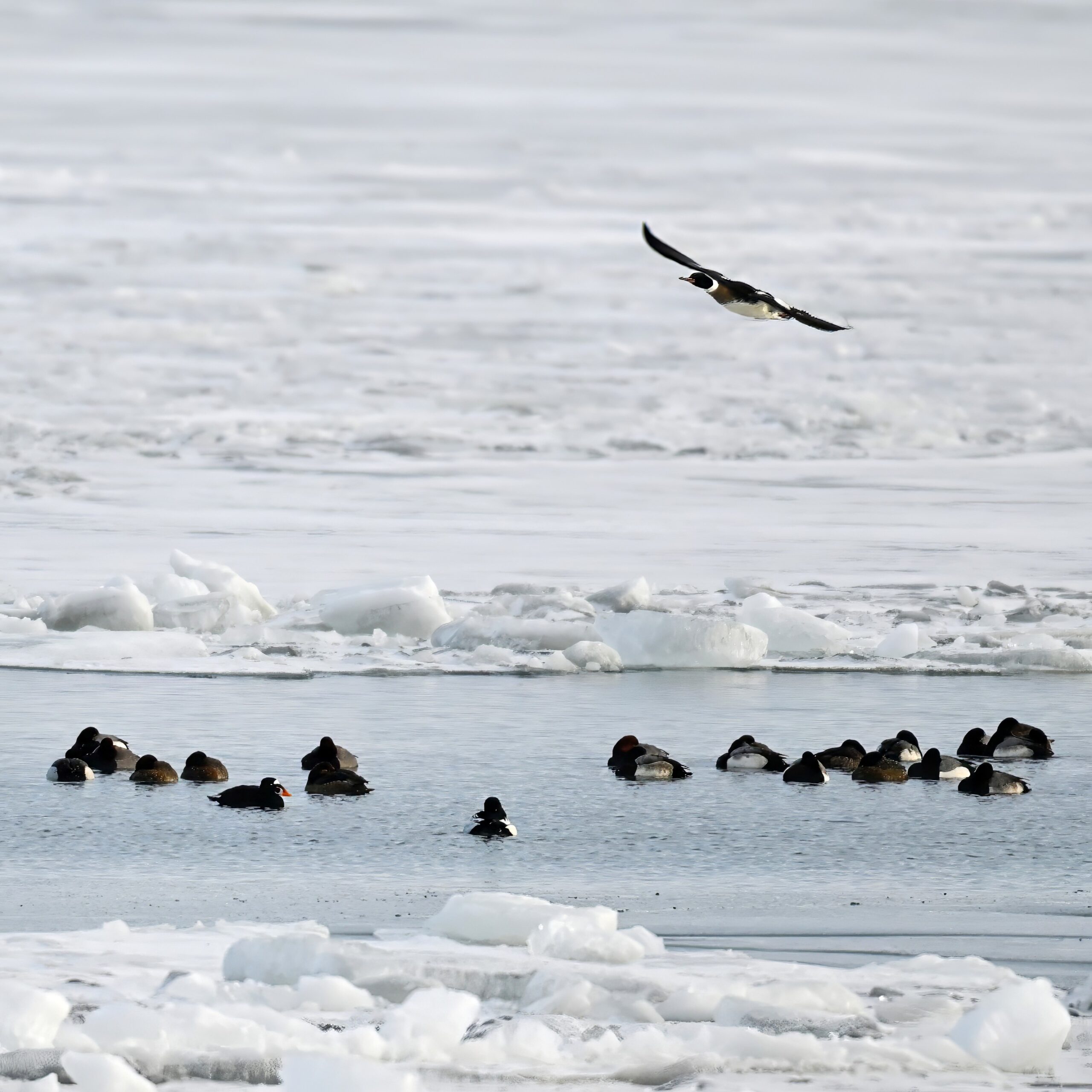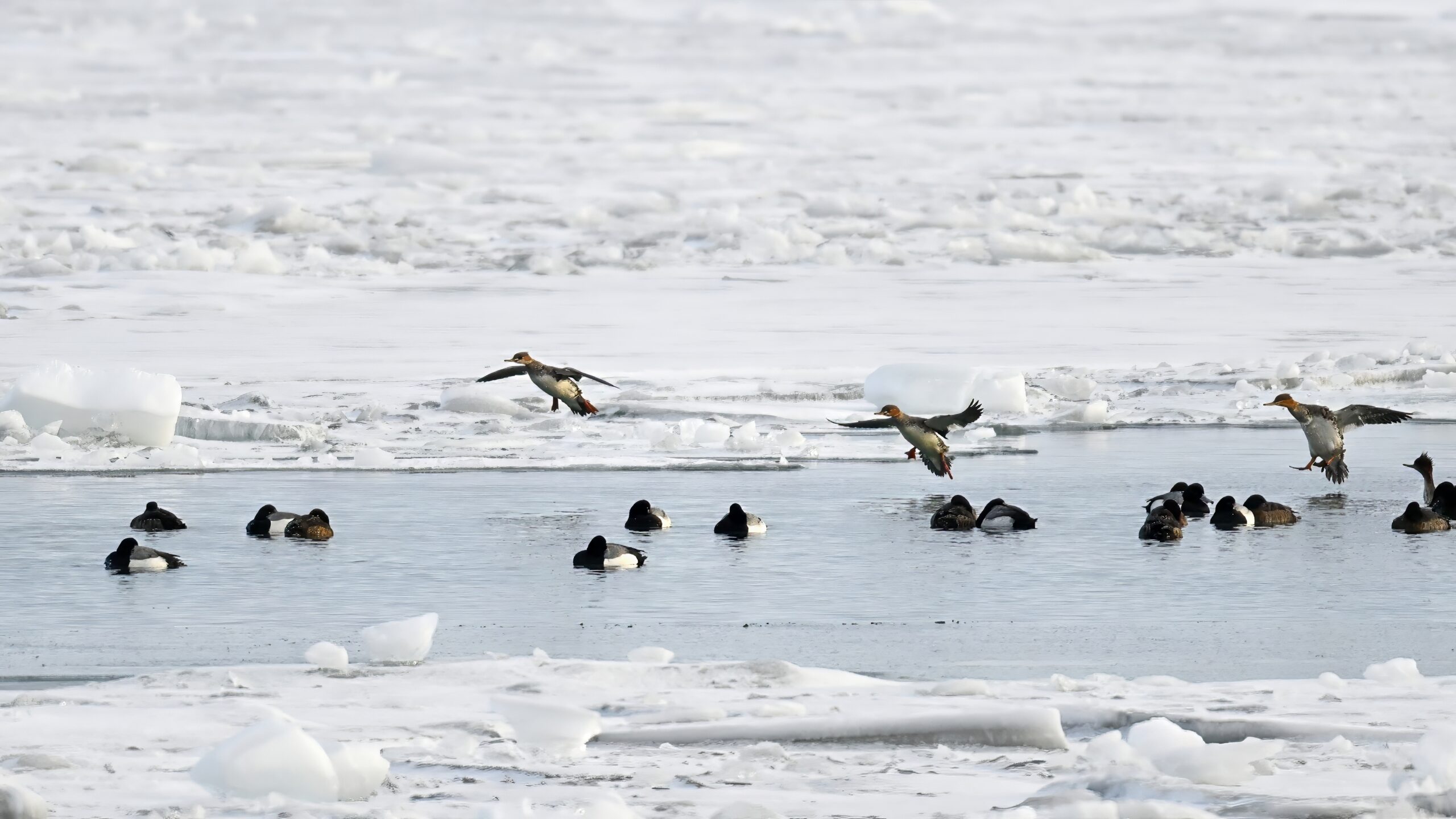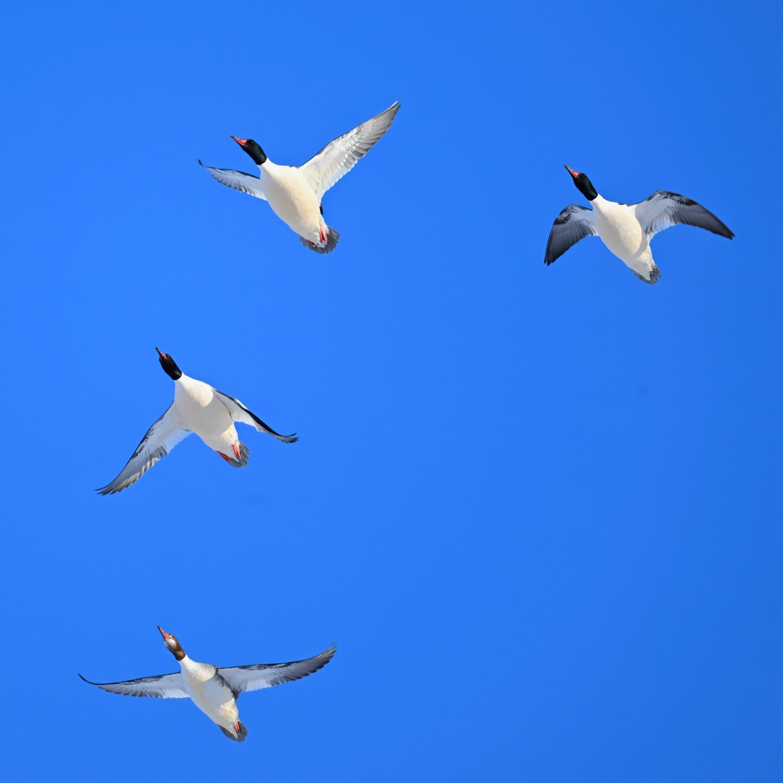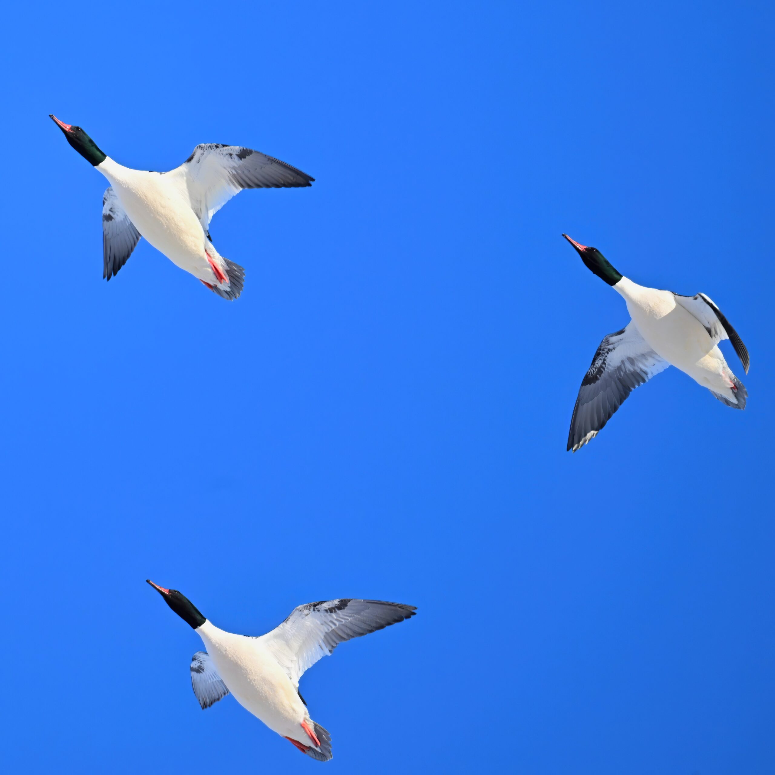 And finally, lots and lots of Common Merganser in flight: