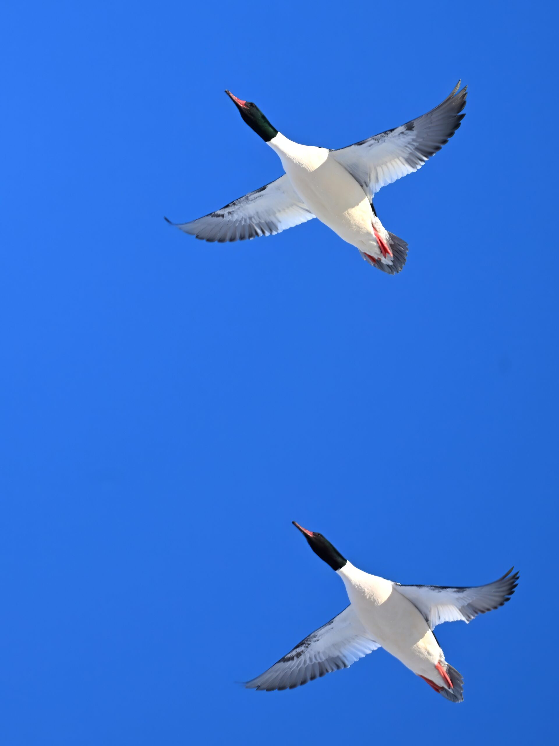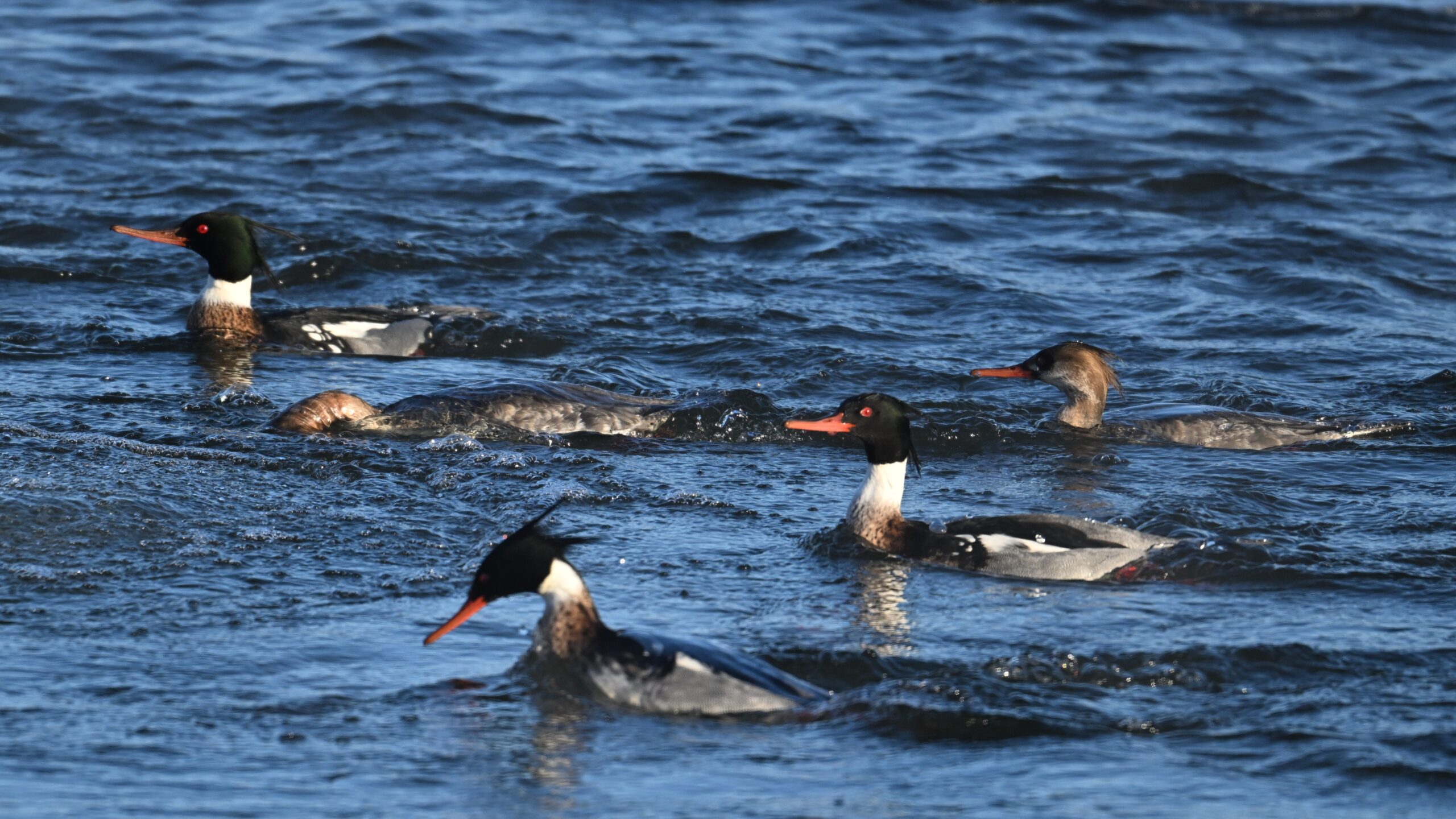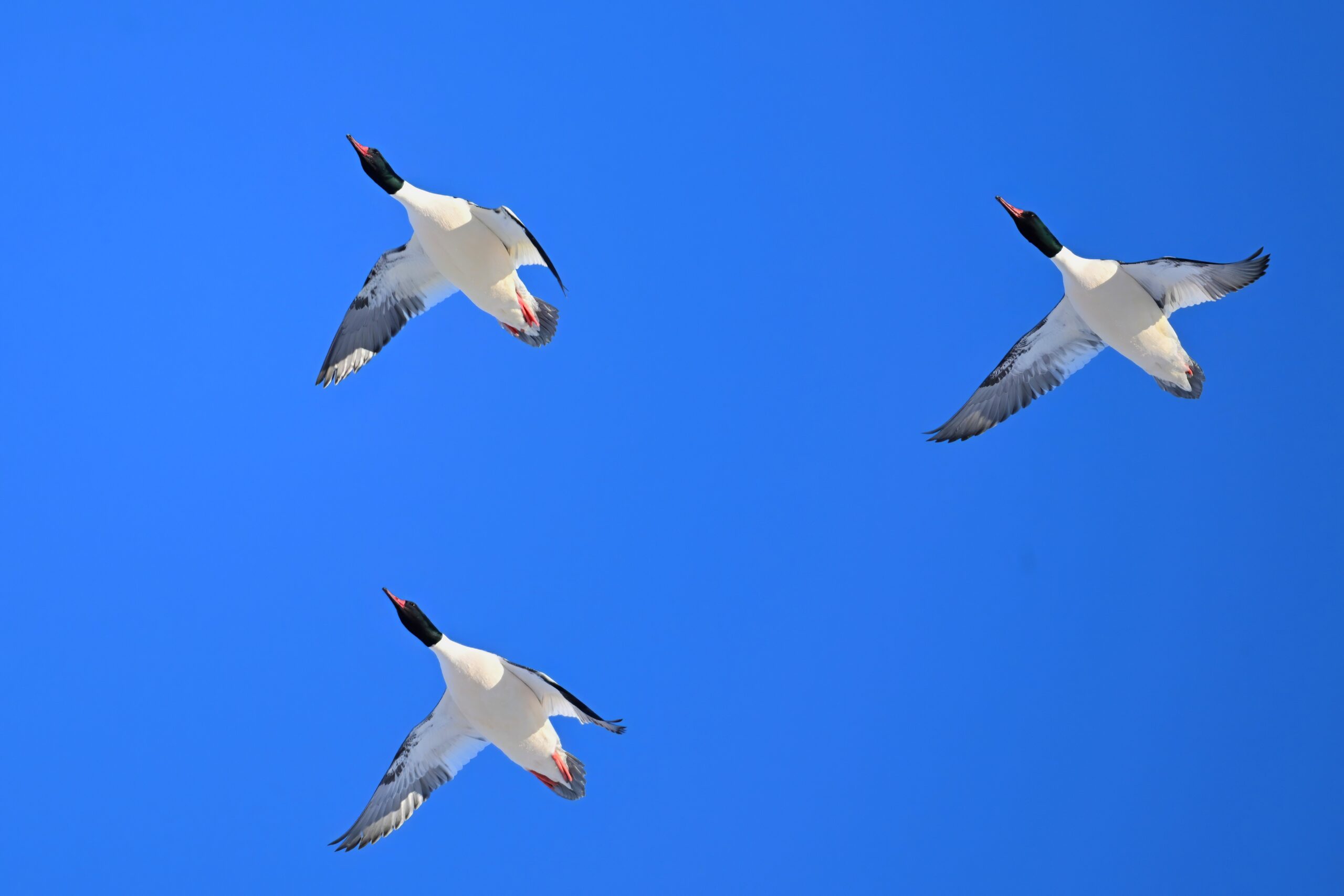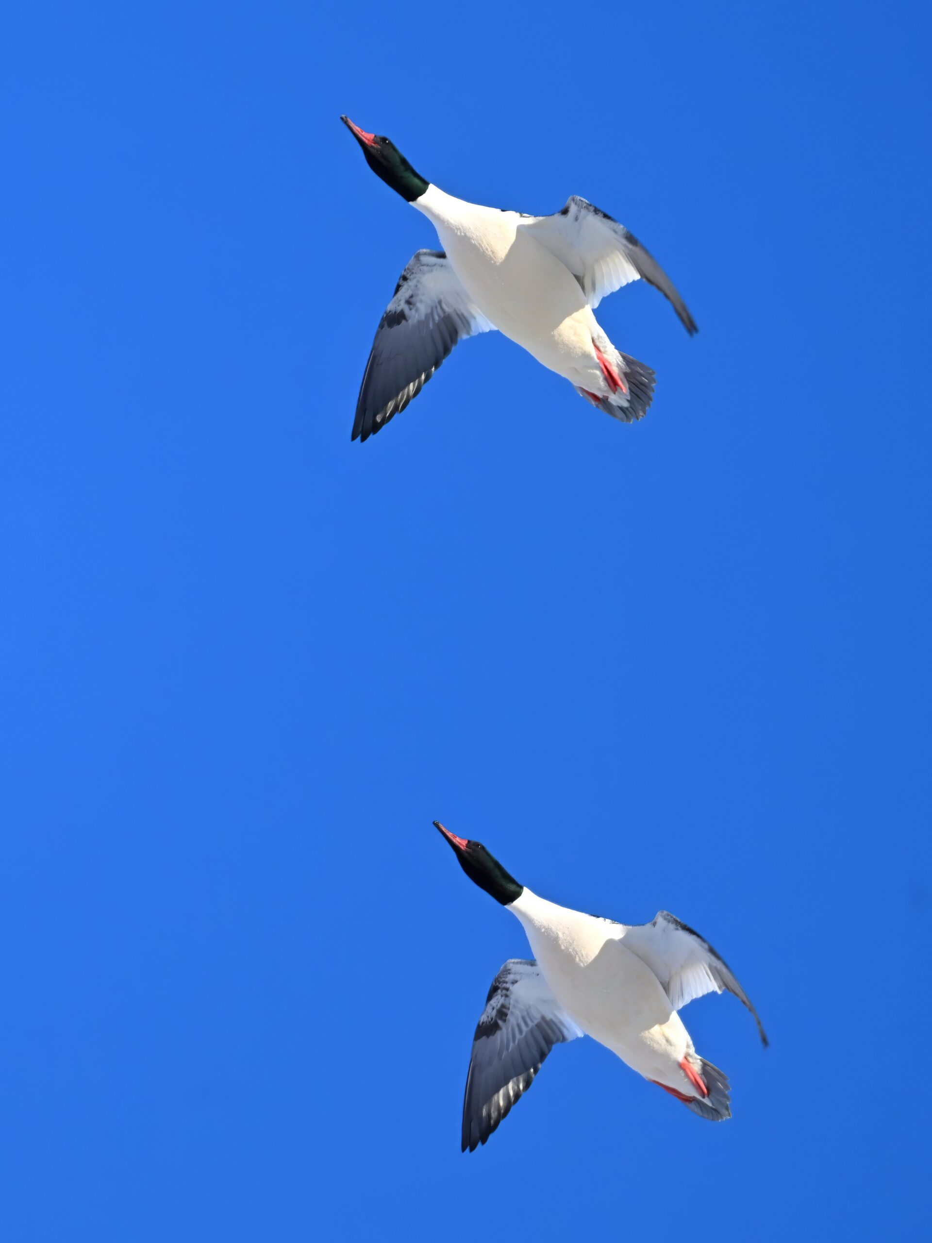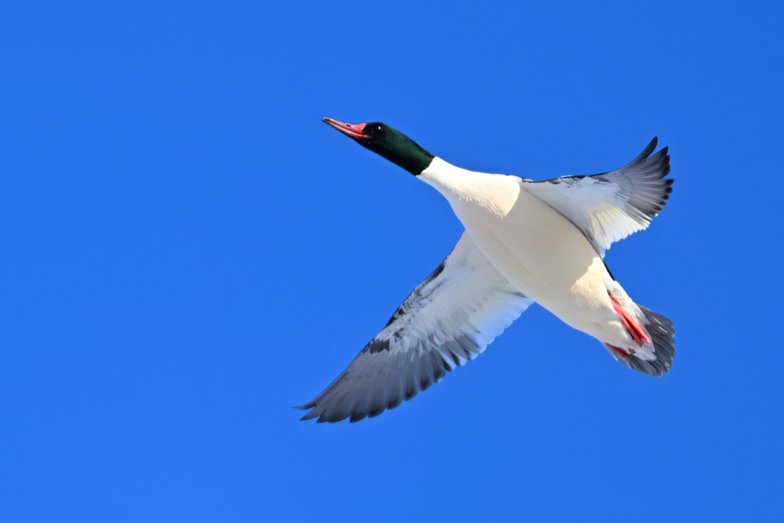 And finally, lots and lots of Common Merganser in flight: