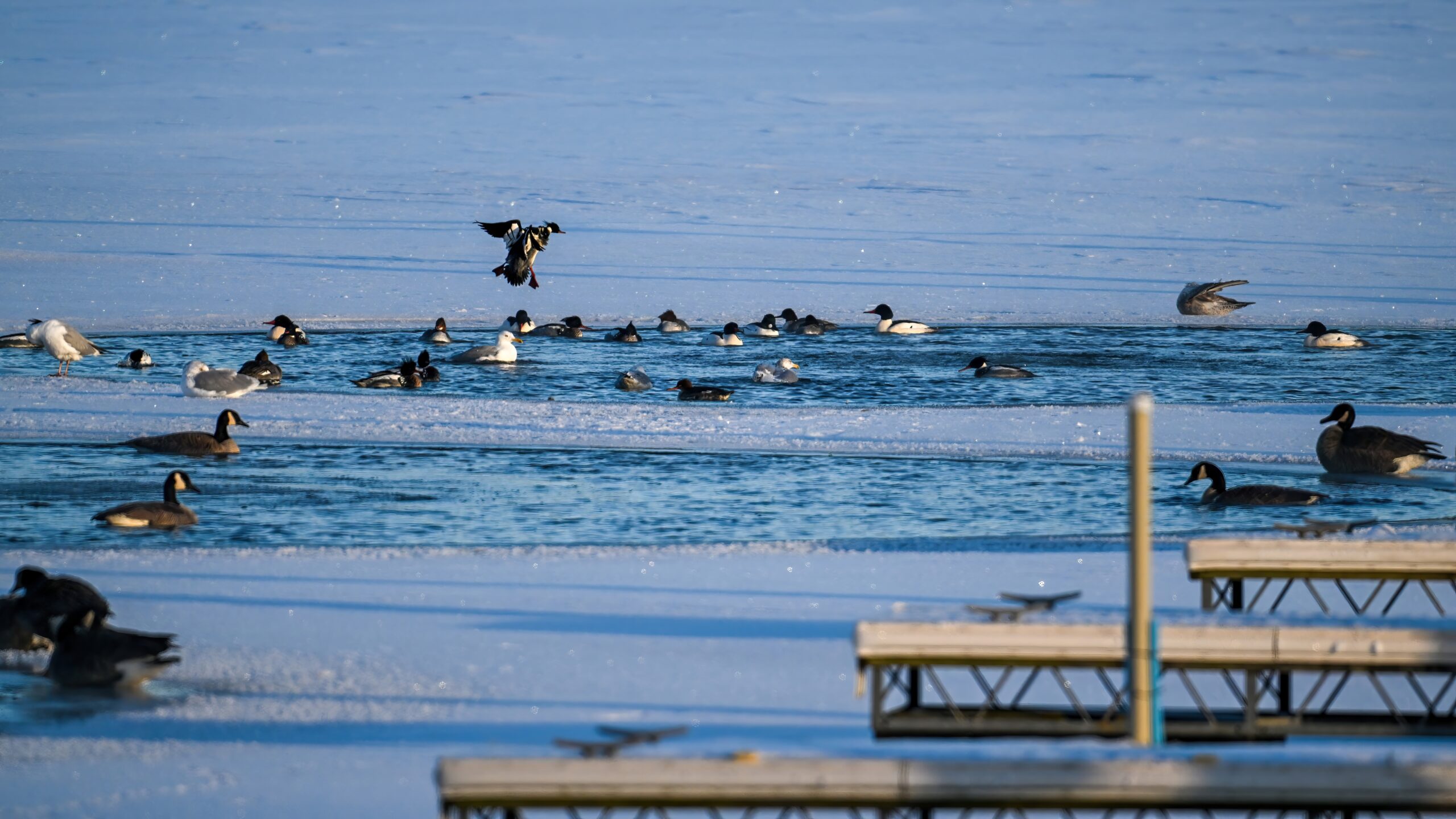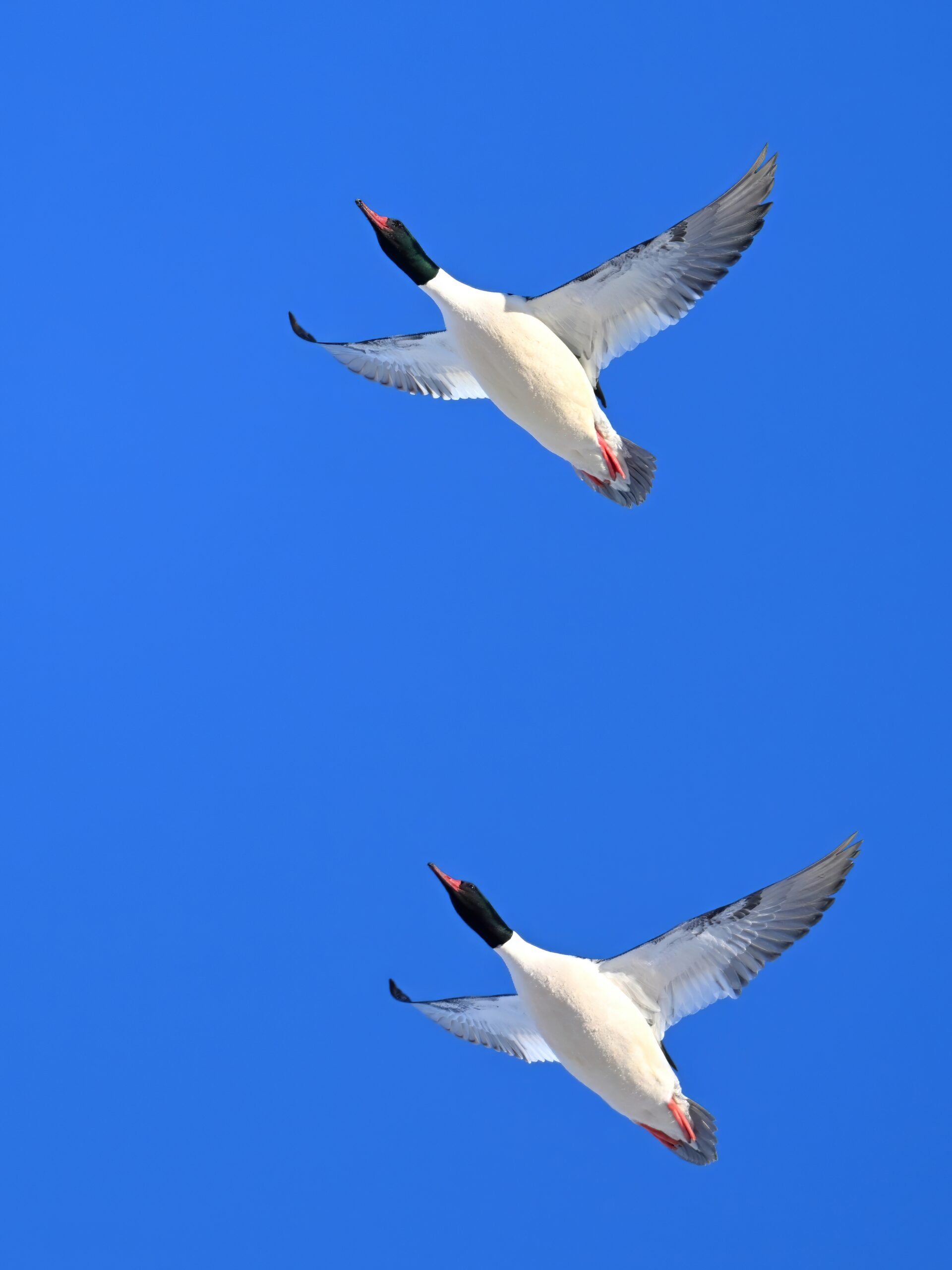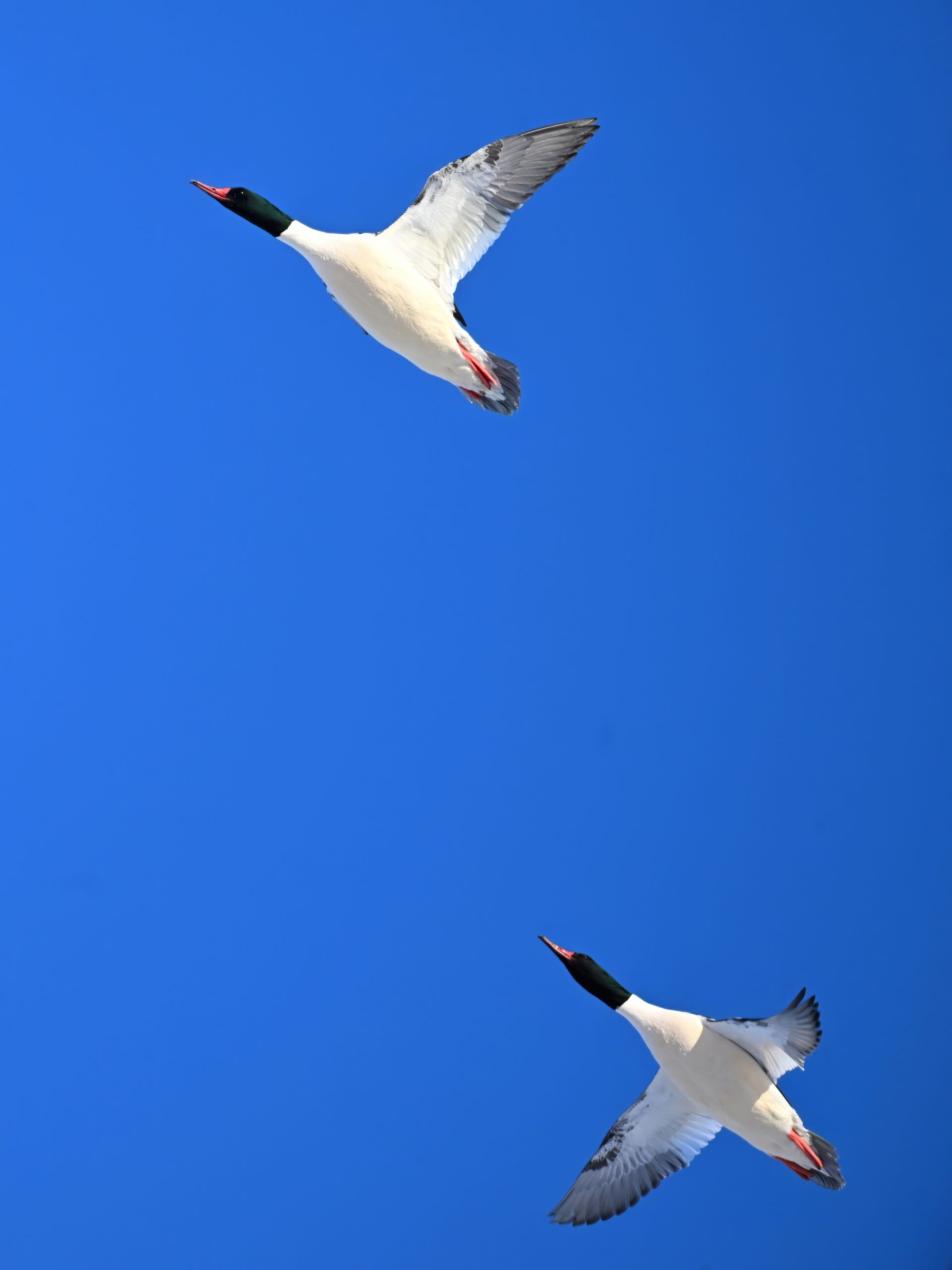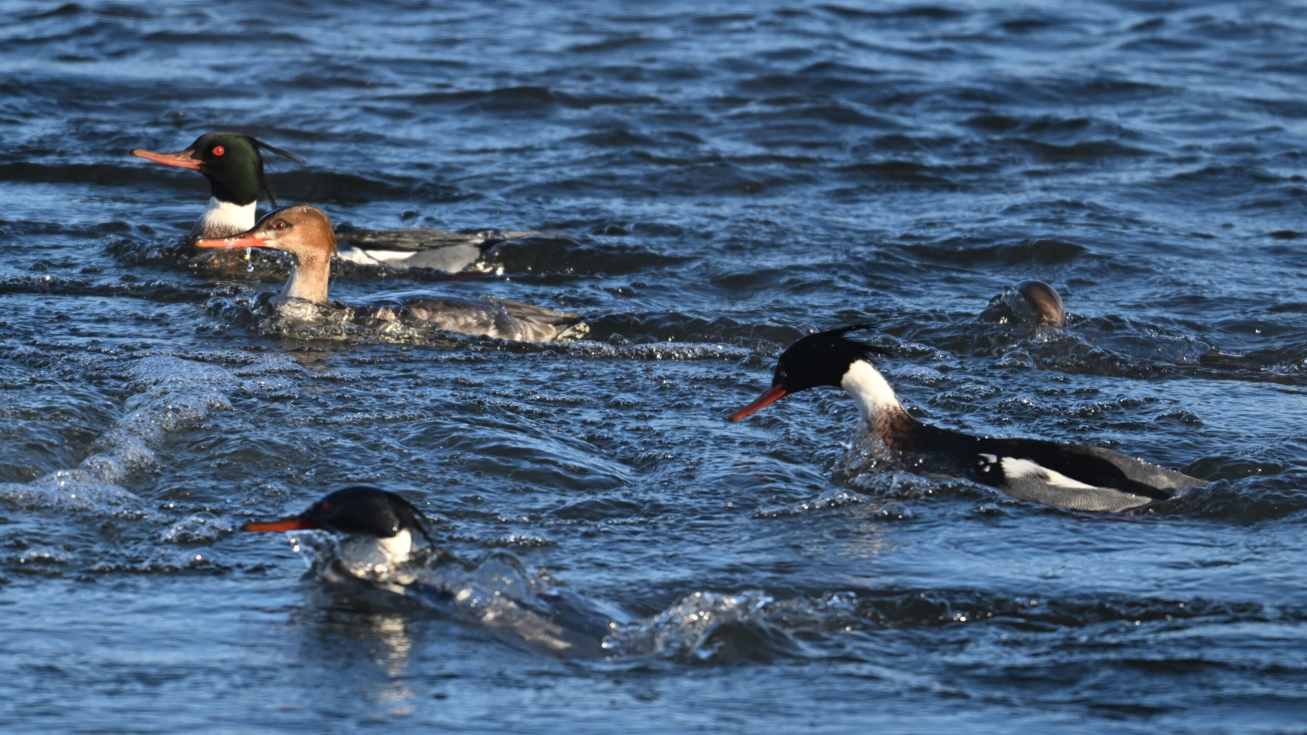 And finally, lots and lots of Common Merganser in flight: