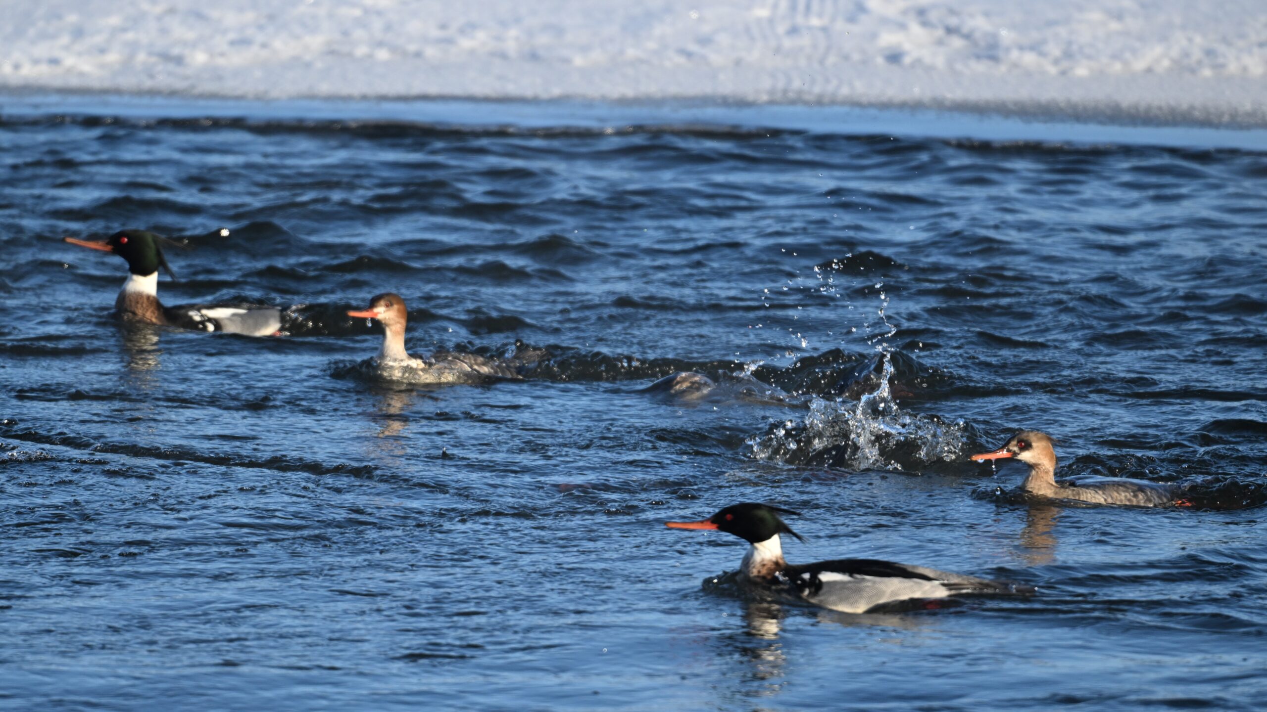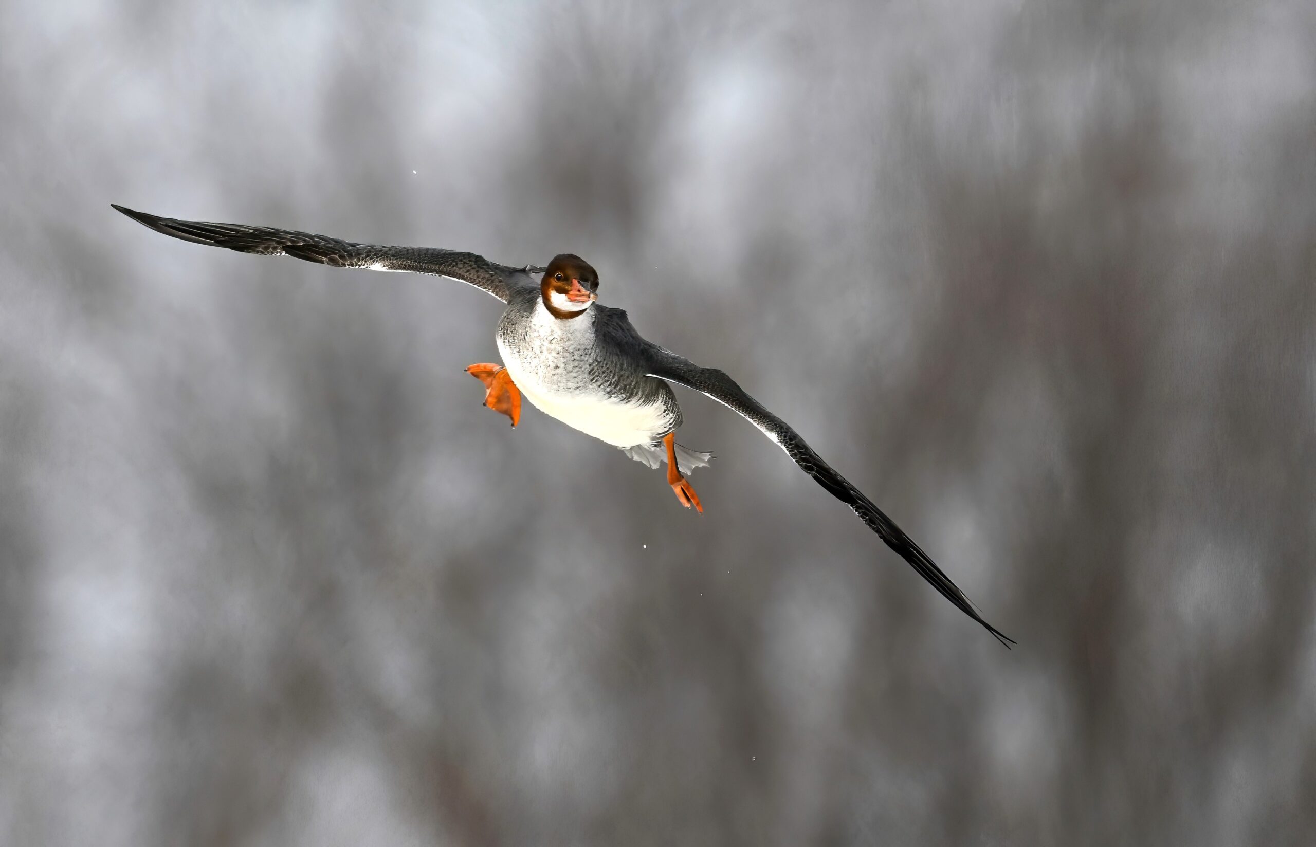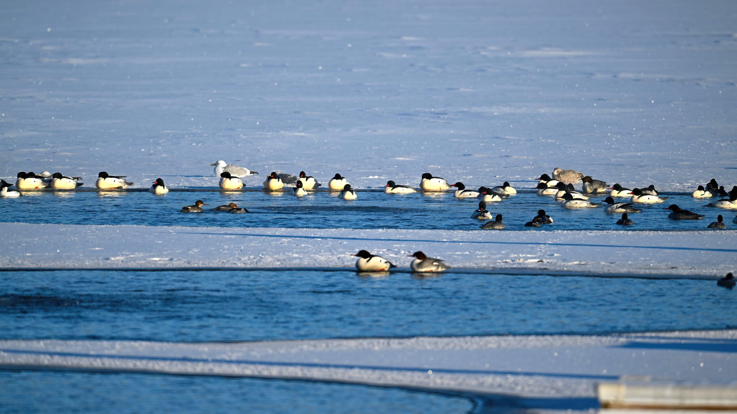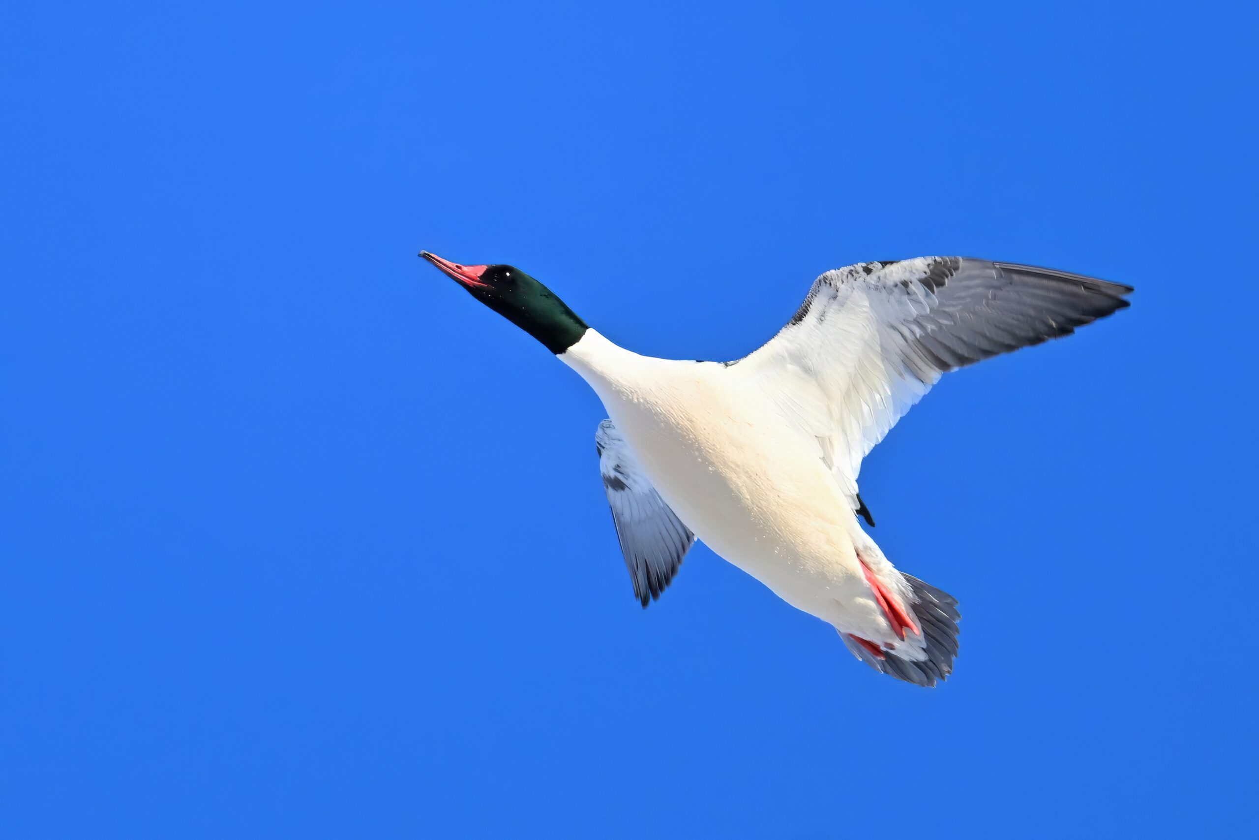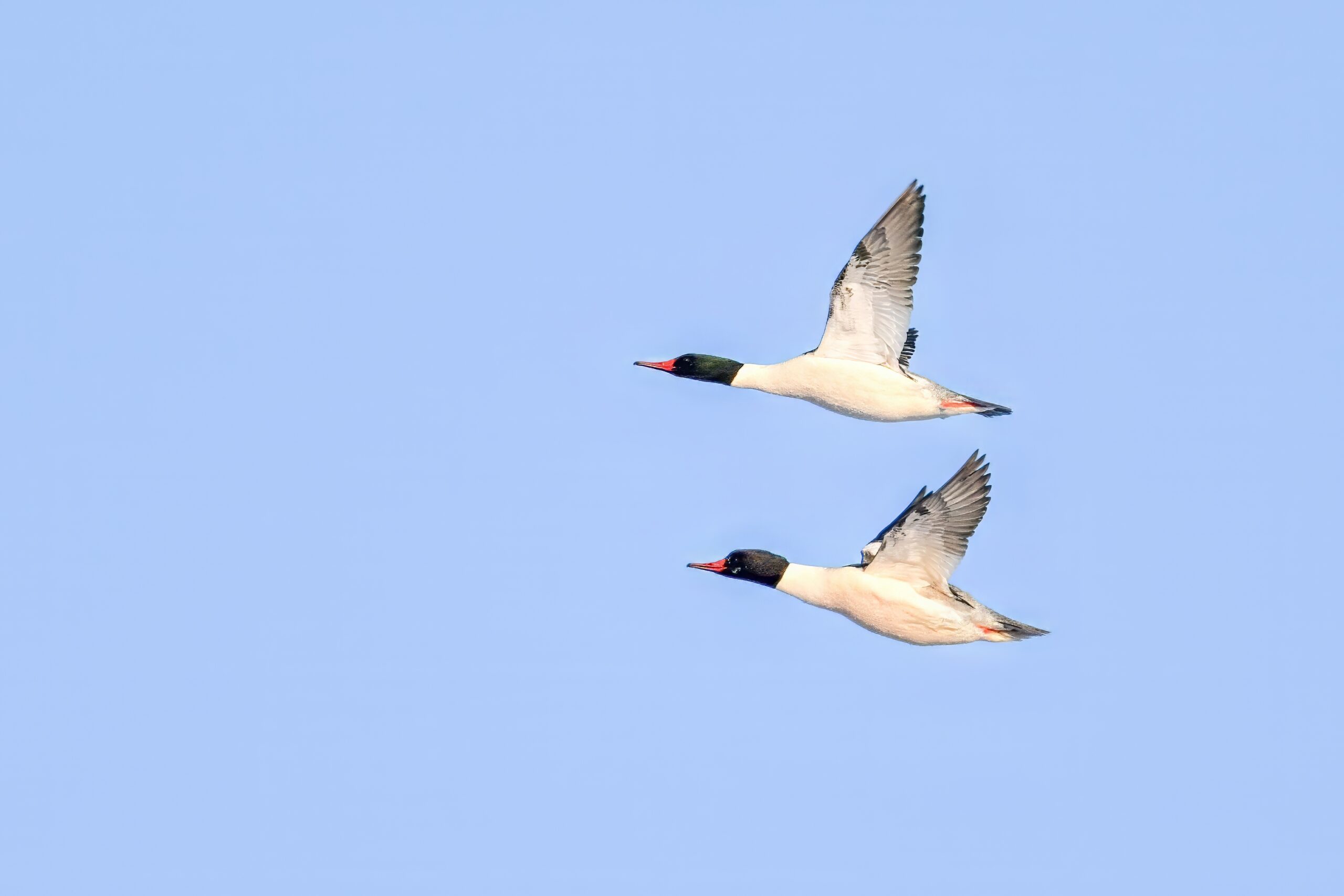 And finally, lots and lots of Common Merganser in flight: