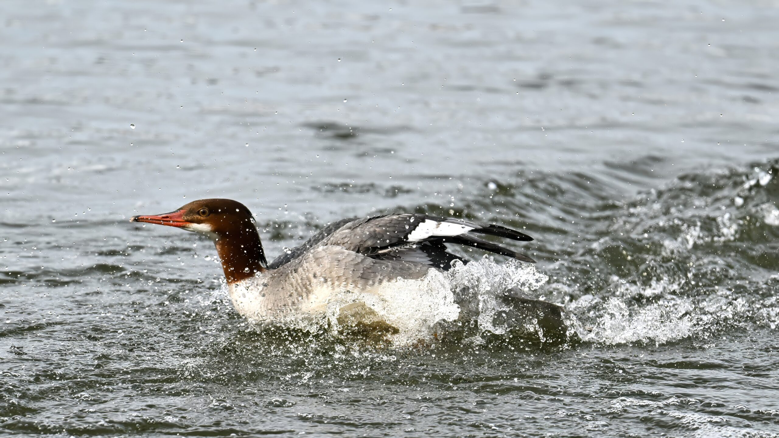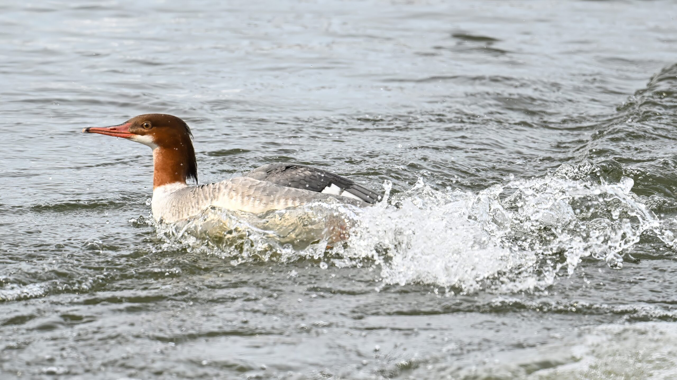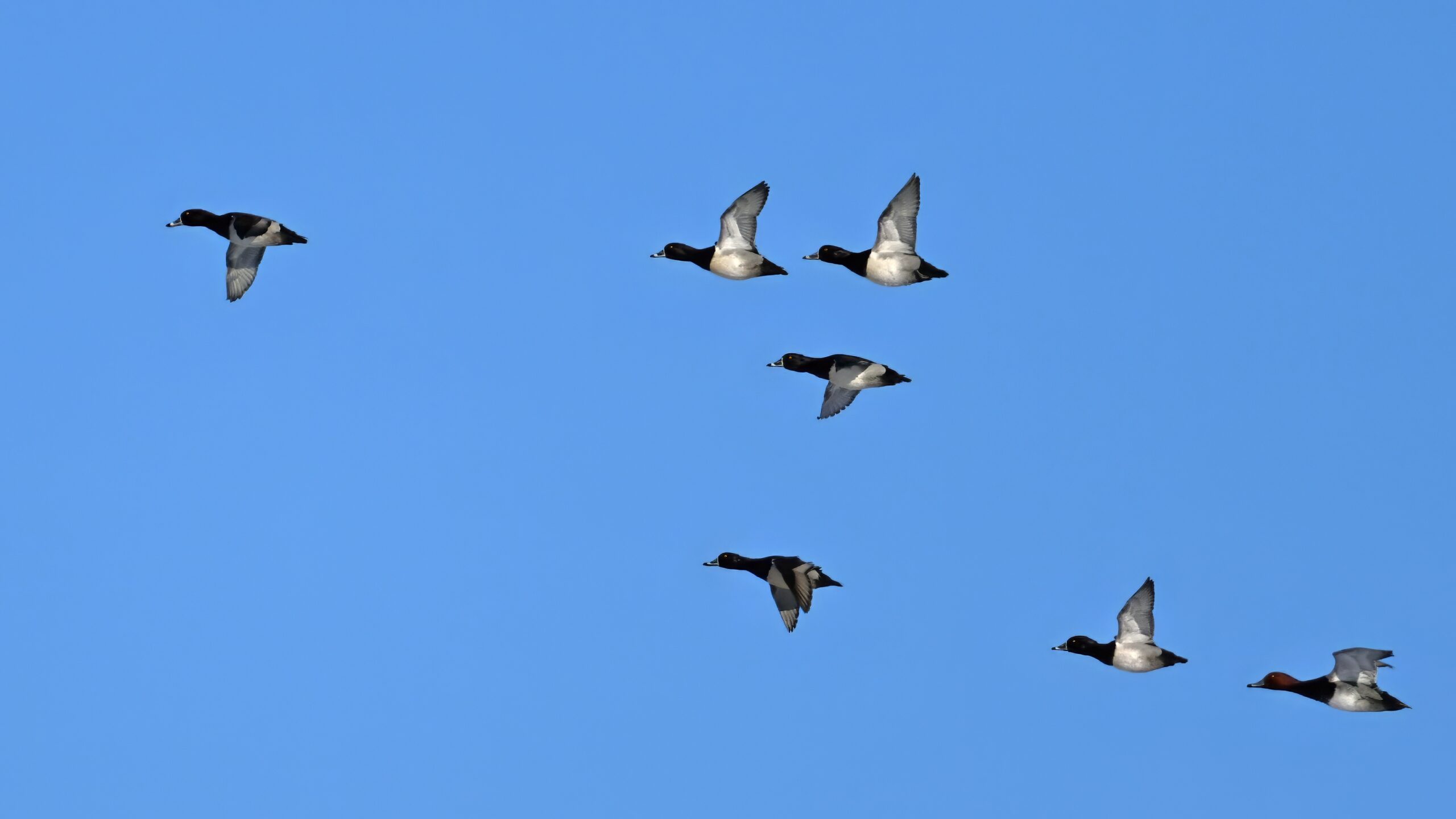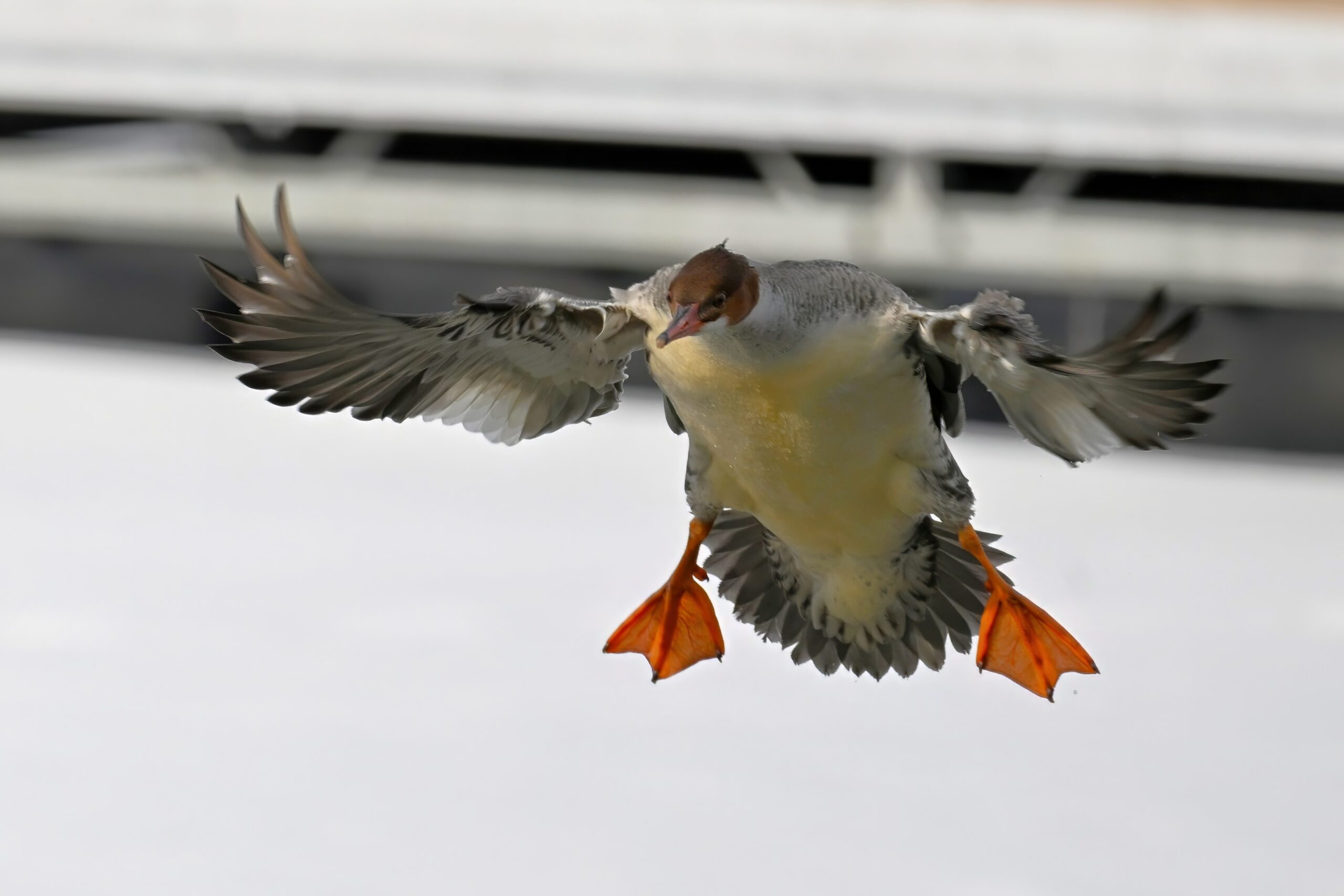 And finally, lots and lots of Common Merganser in flight: