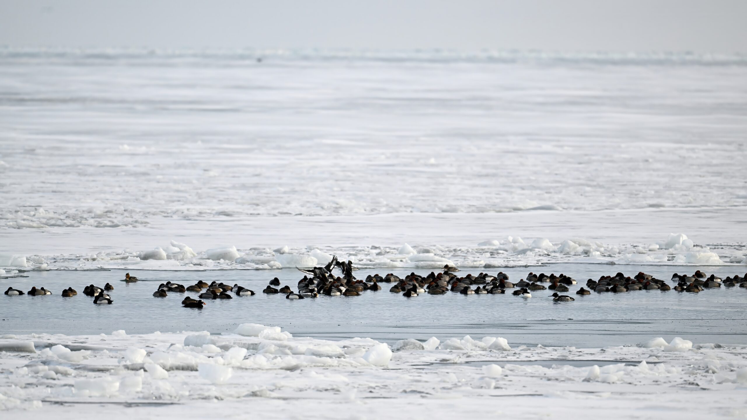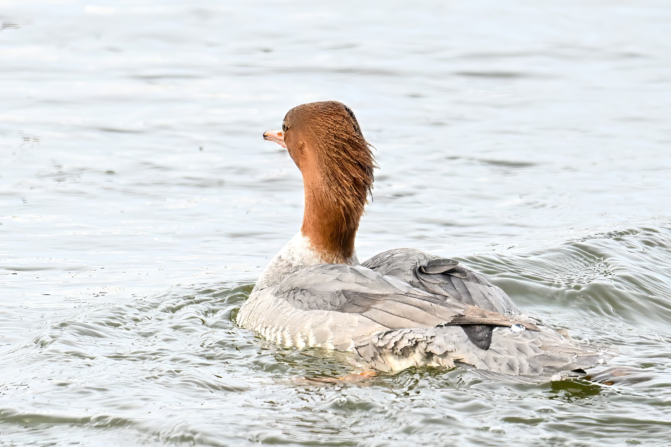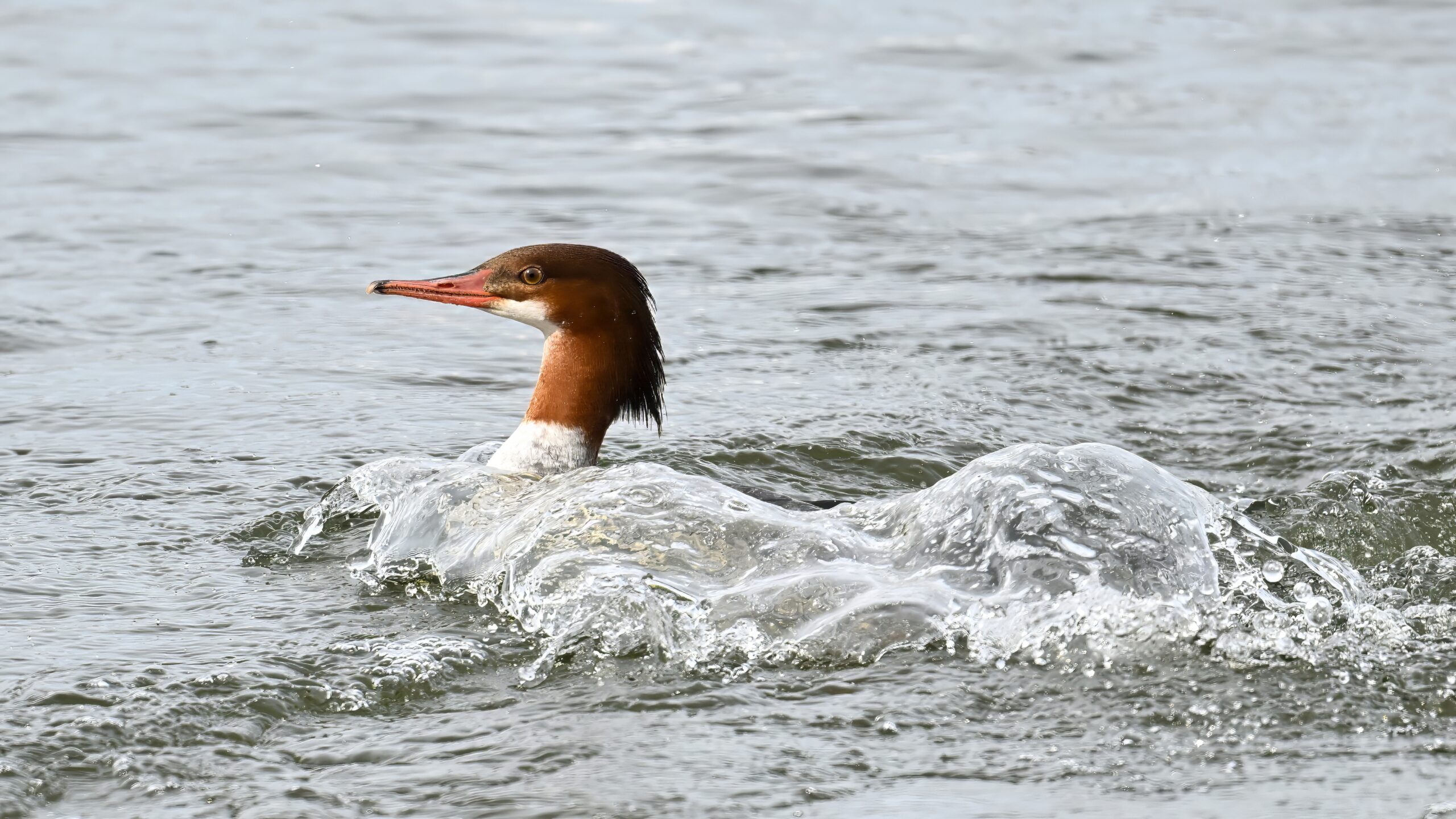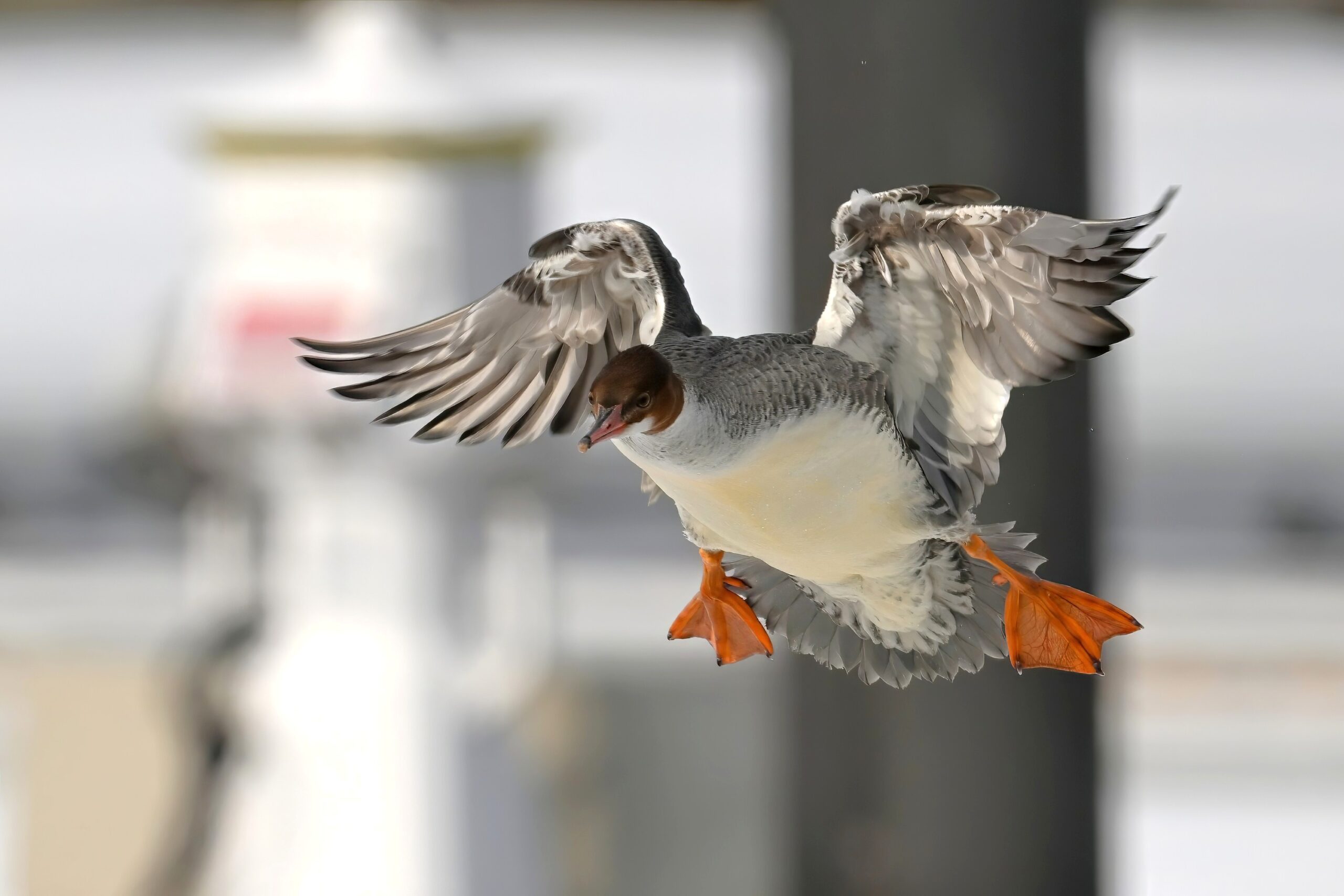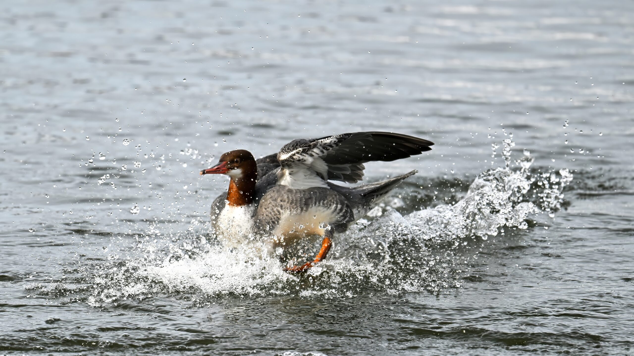 And finally, lots and lots of Common Merganser in flight: