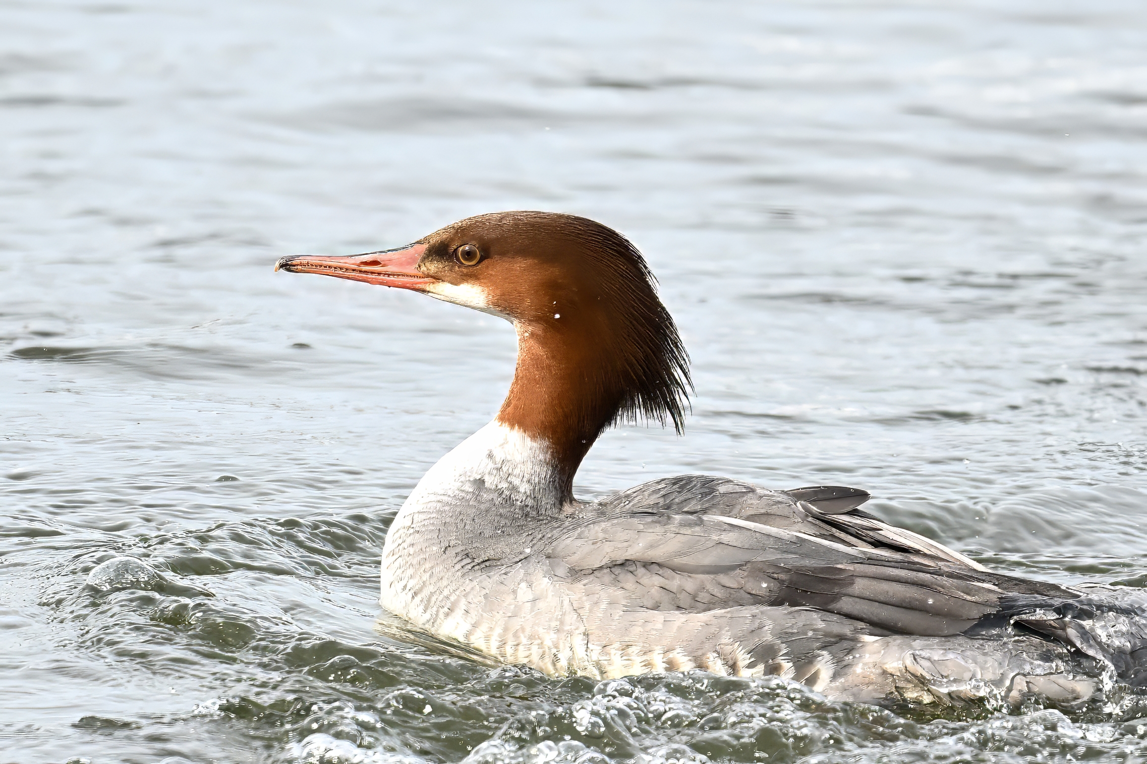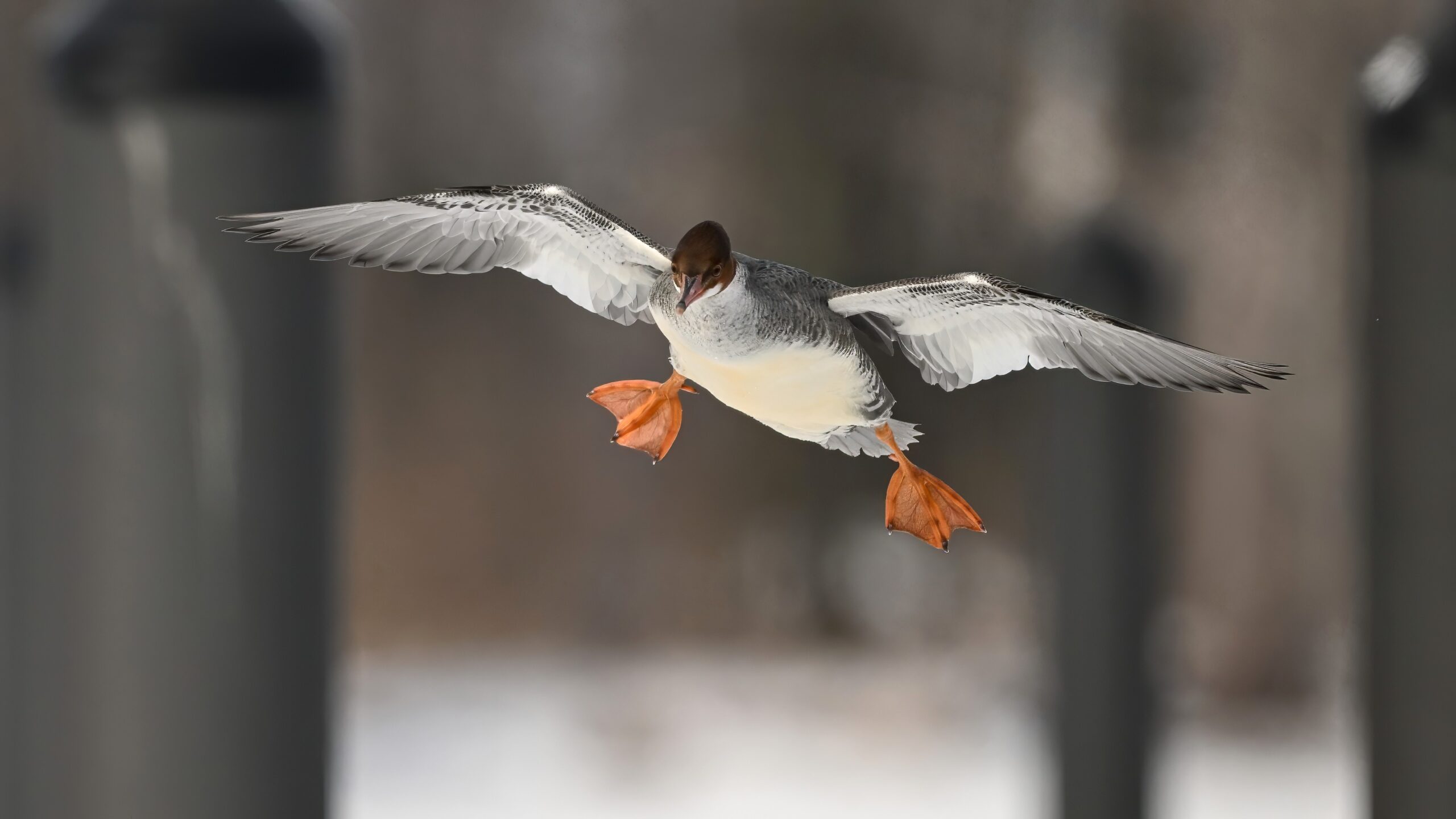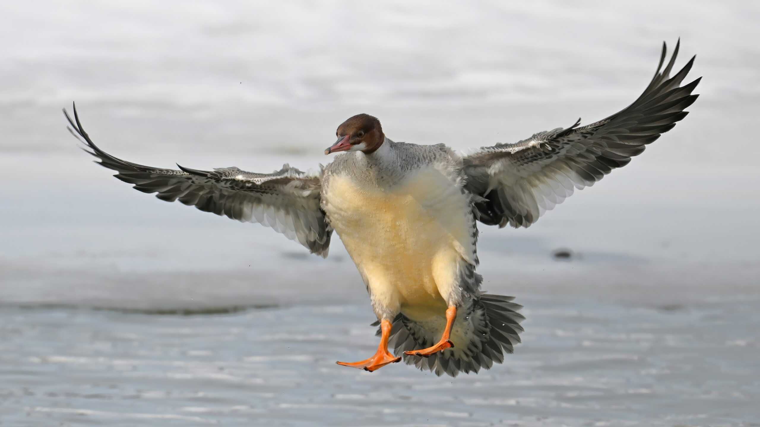 Nothing more fun in the world of bird photography than “landing ducks,” even with uneven lighting/exposure due to cloudy conditions. This is a female Common Merganser recently seen at Presque Isle Marina, in chronological order: