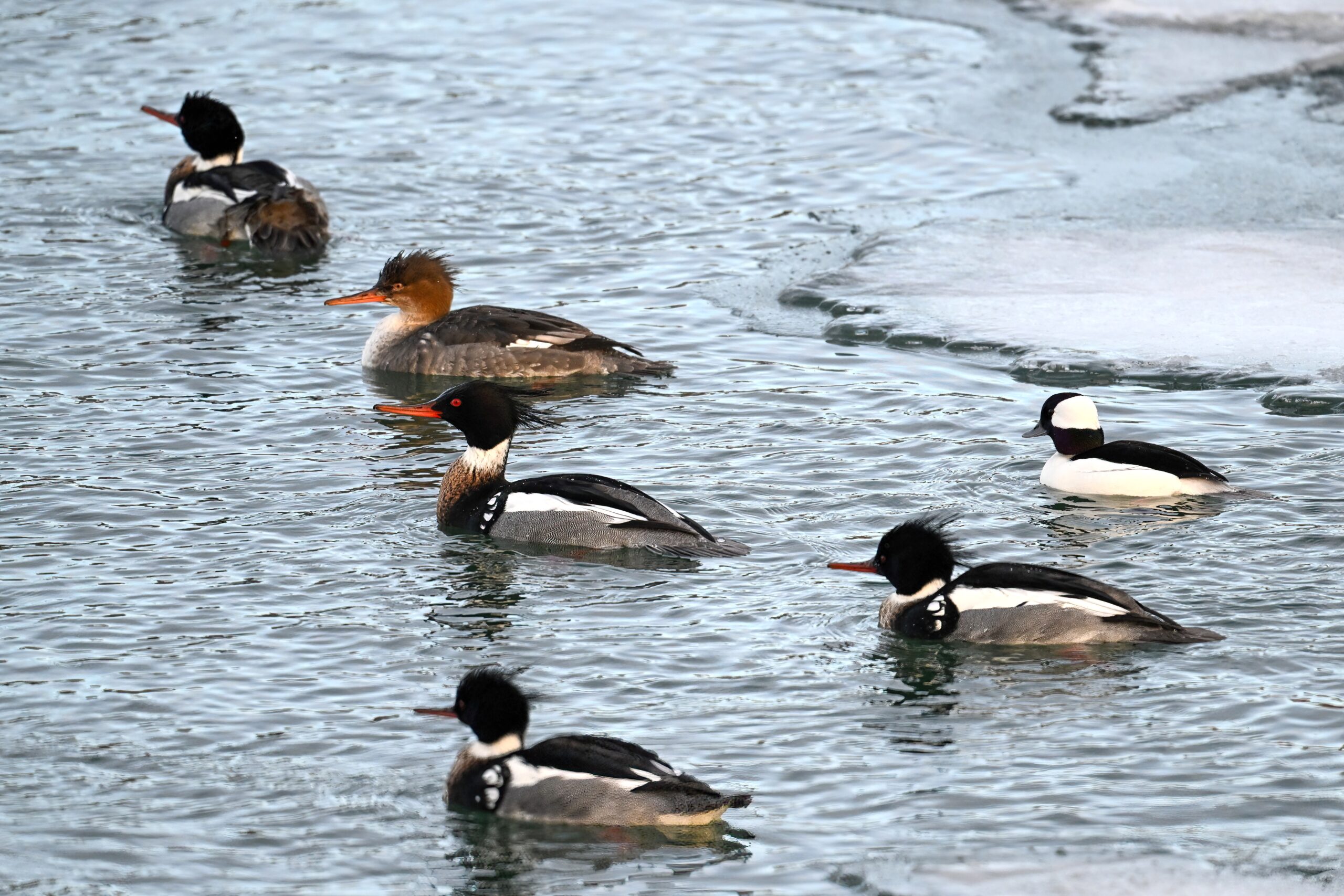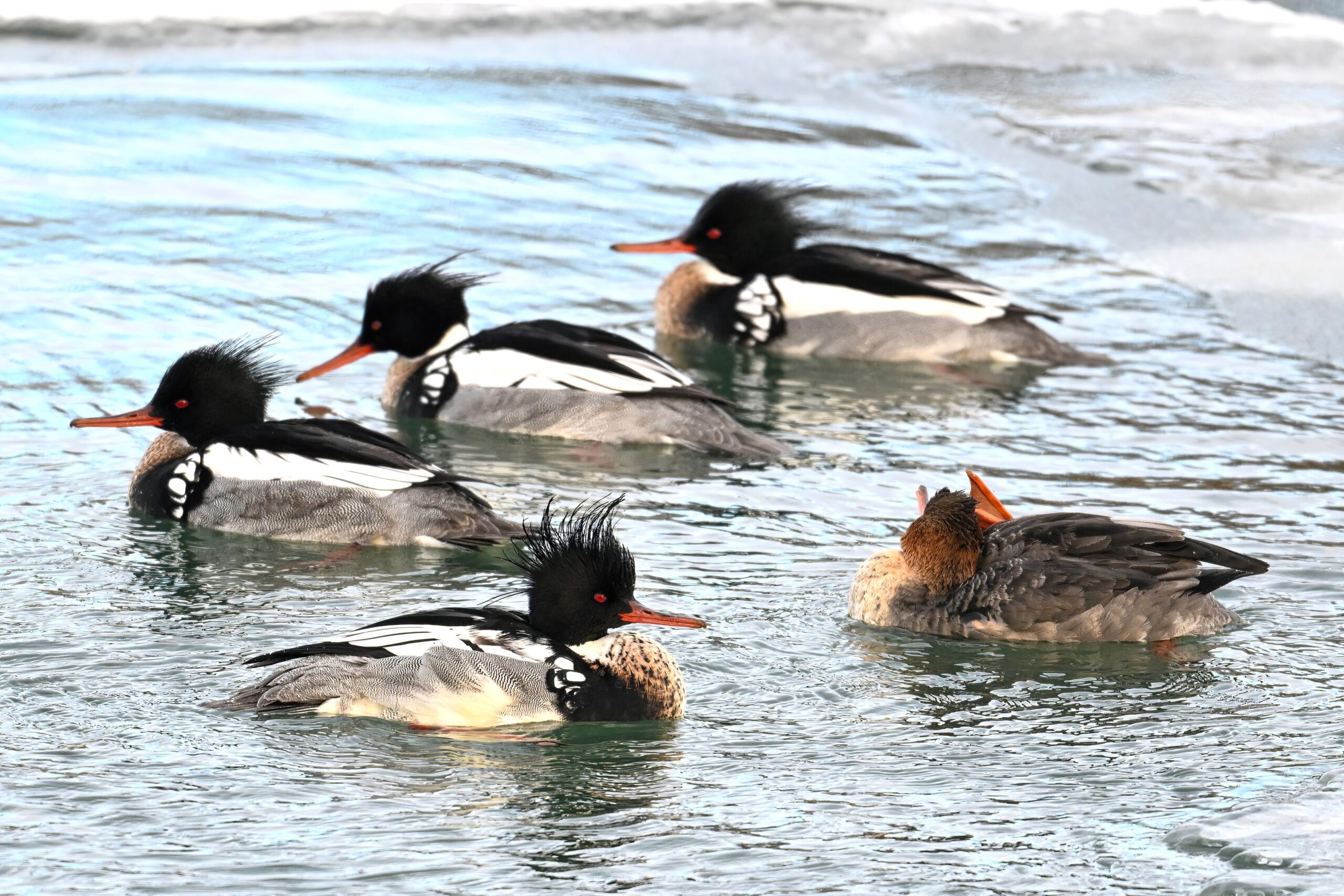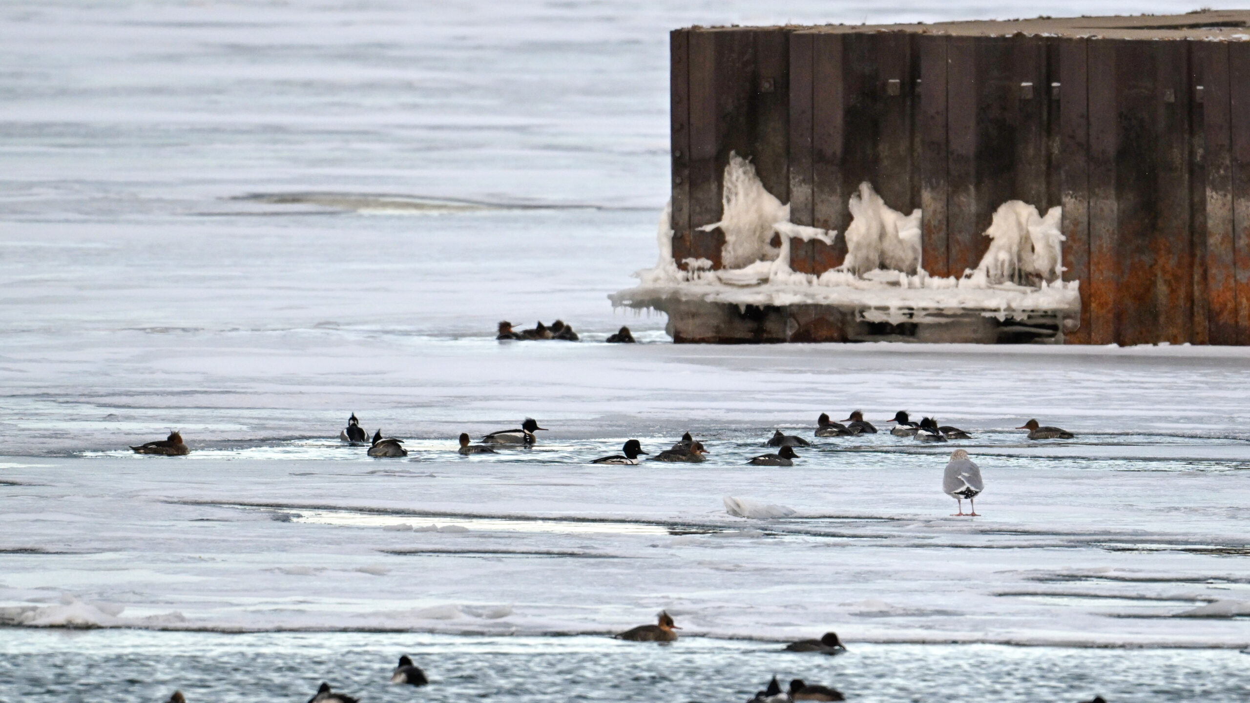 Back to Presque Isle Marina a week ago, featuring (unless otherwise noted) beautiful Red-breasted Merganser taking advantage of the open water.