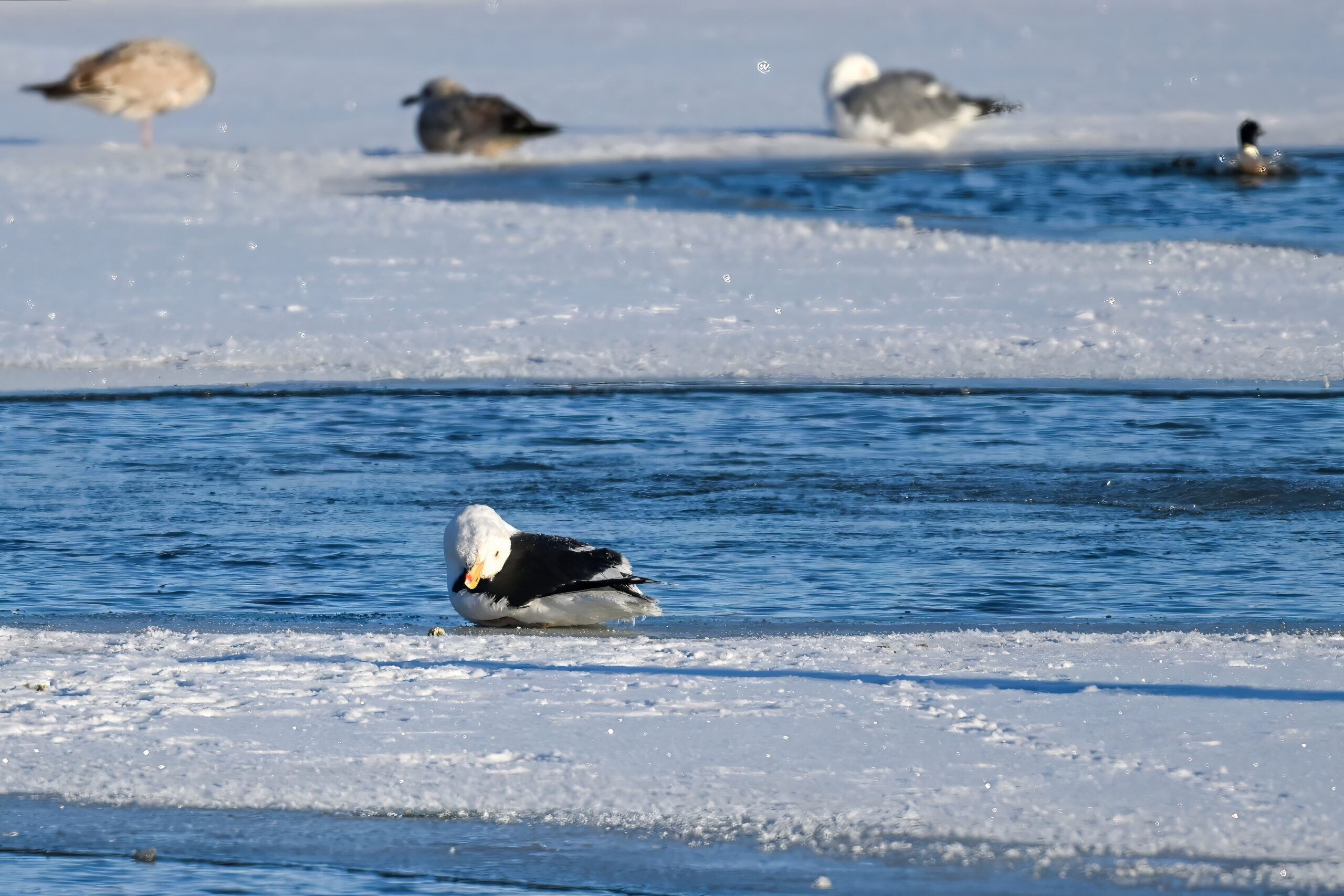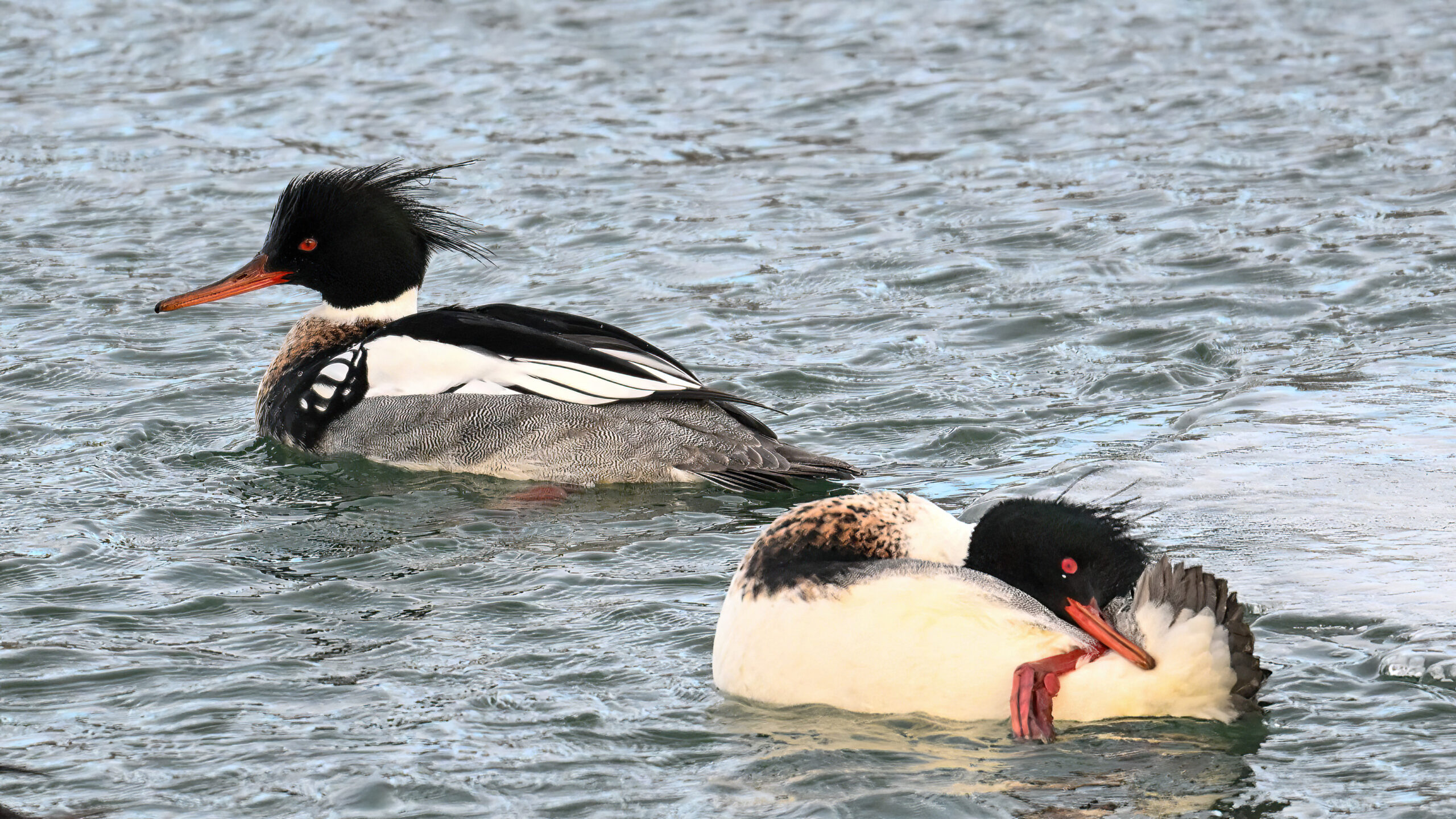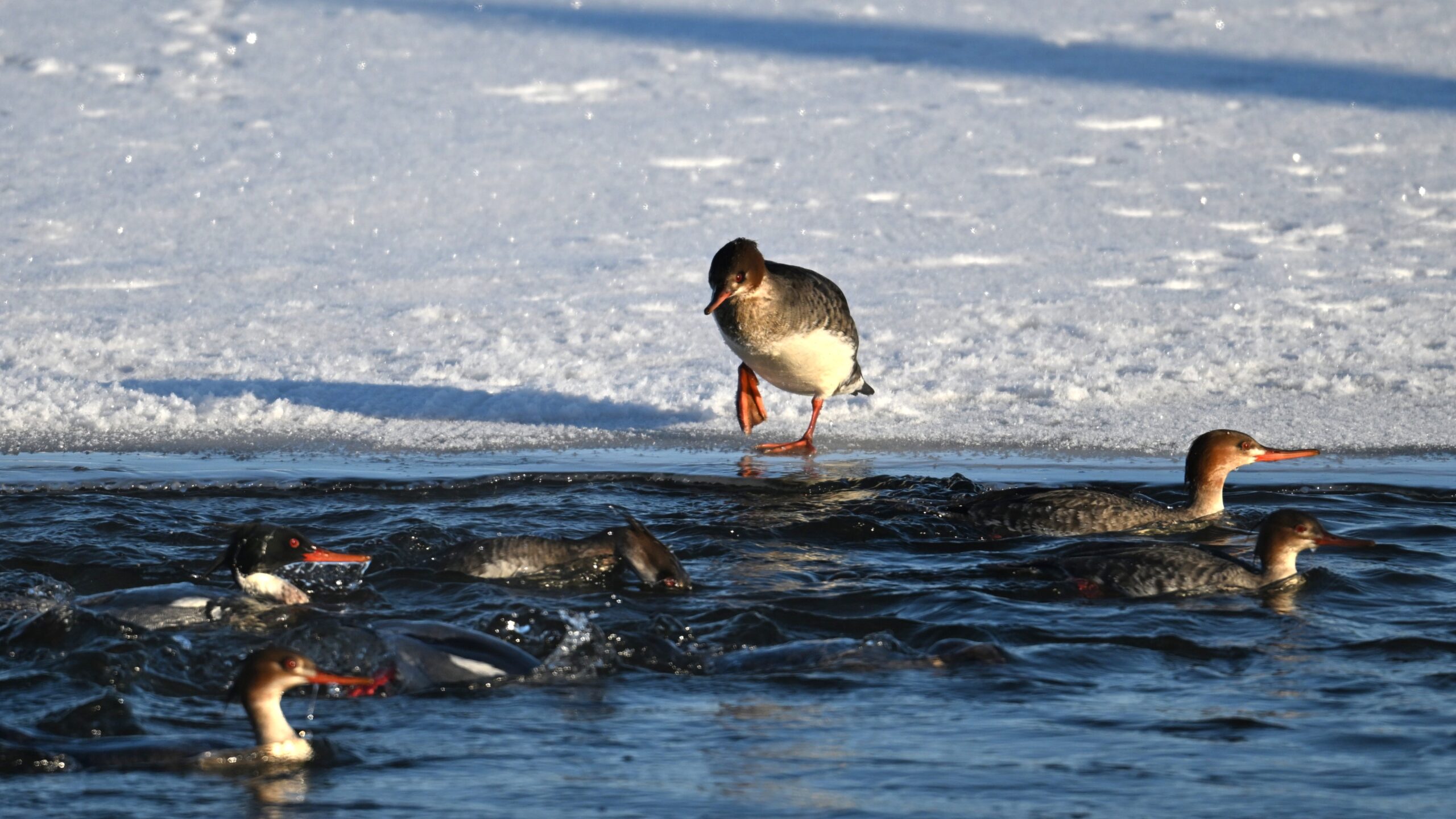 Back to Presque Isle Marina a week ago, featuring (unless otherwise noted) beautiful Red-breasted Merganser taking advantage of the open water.