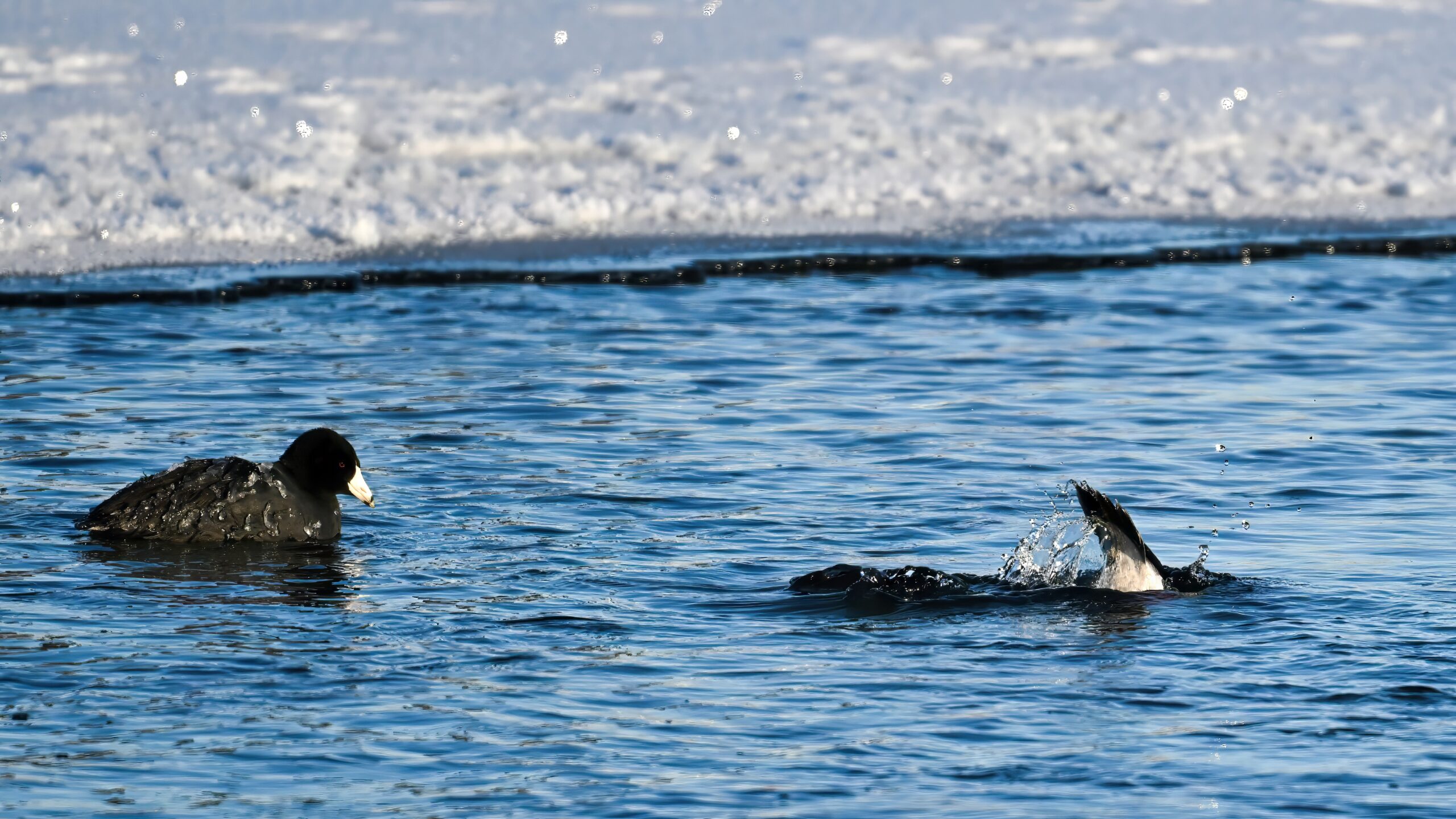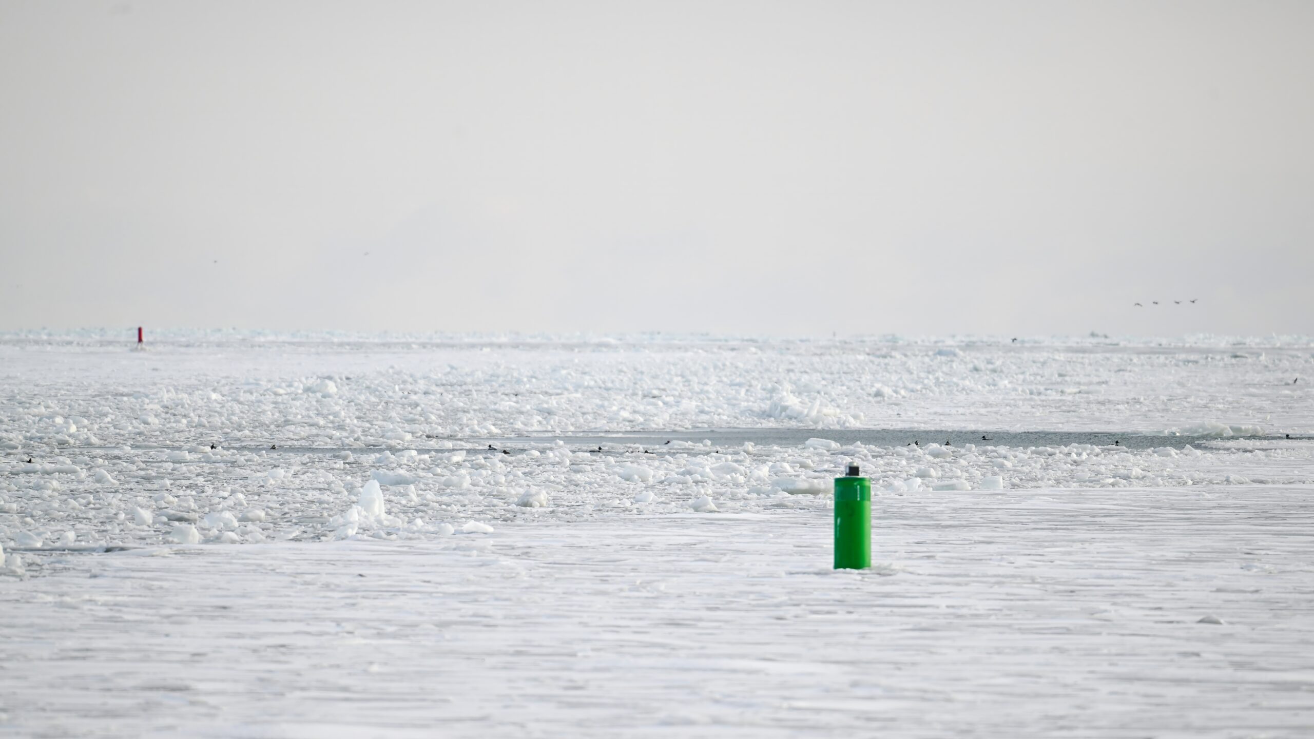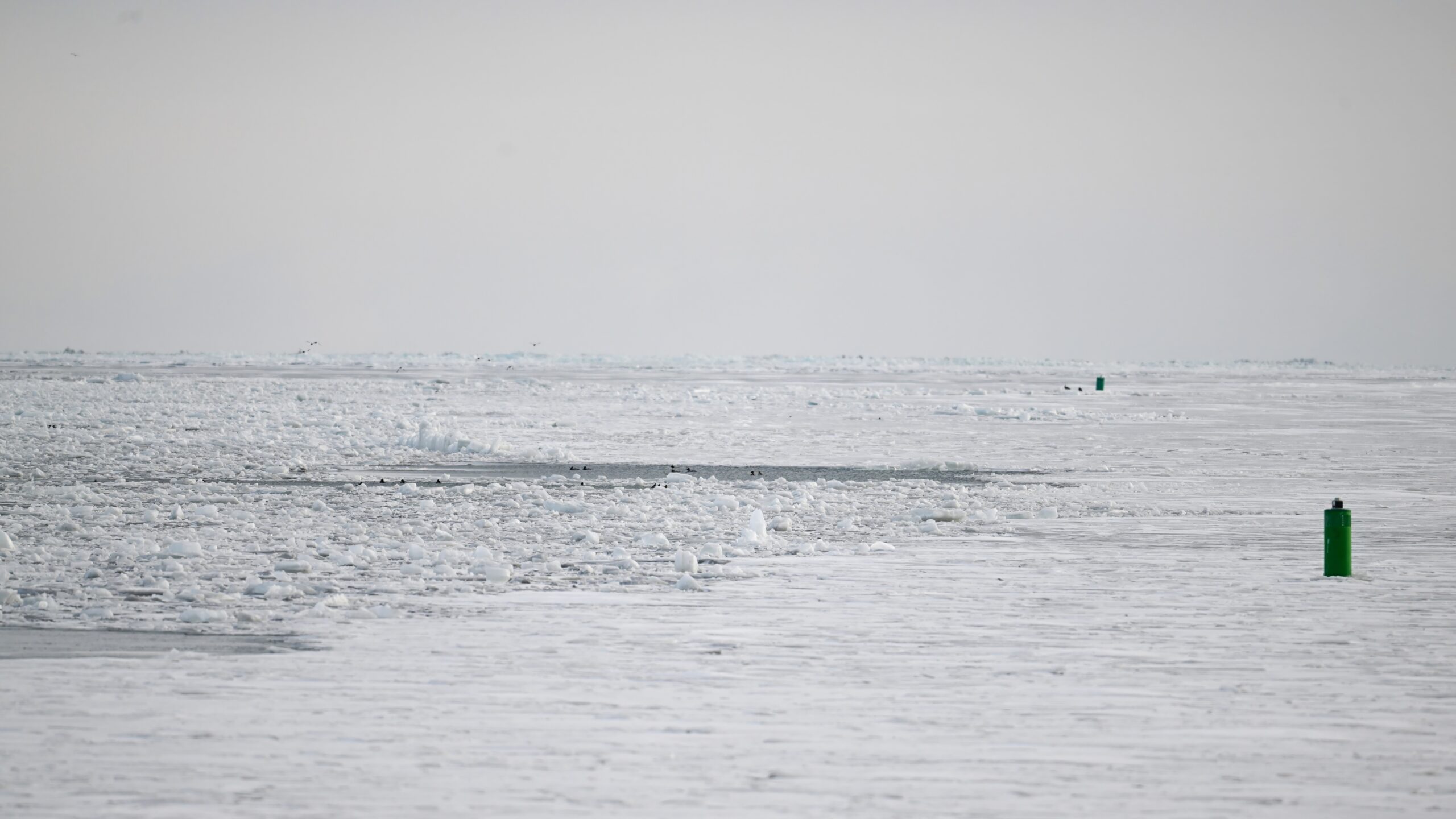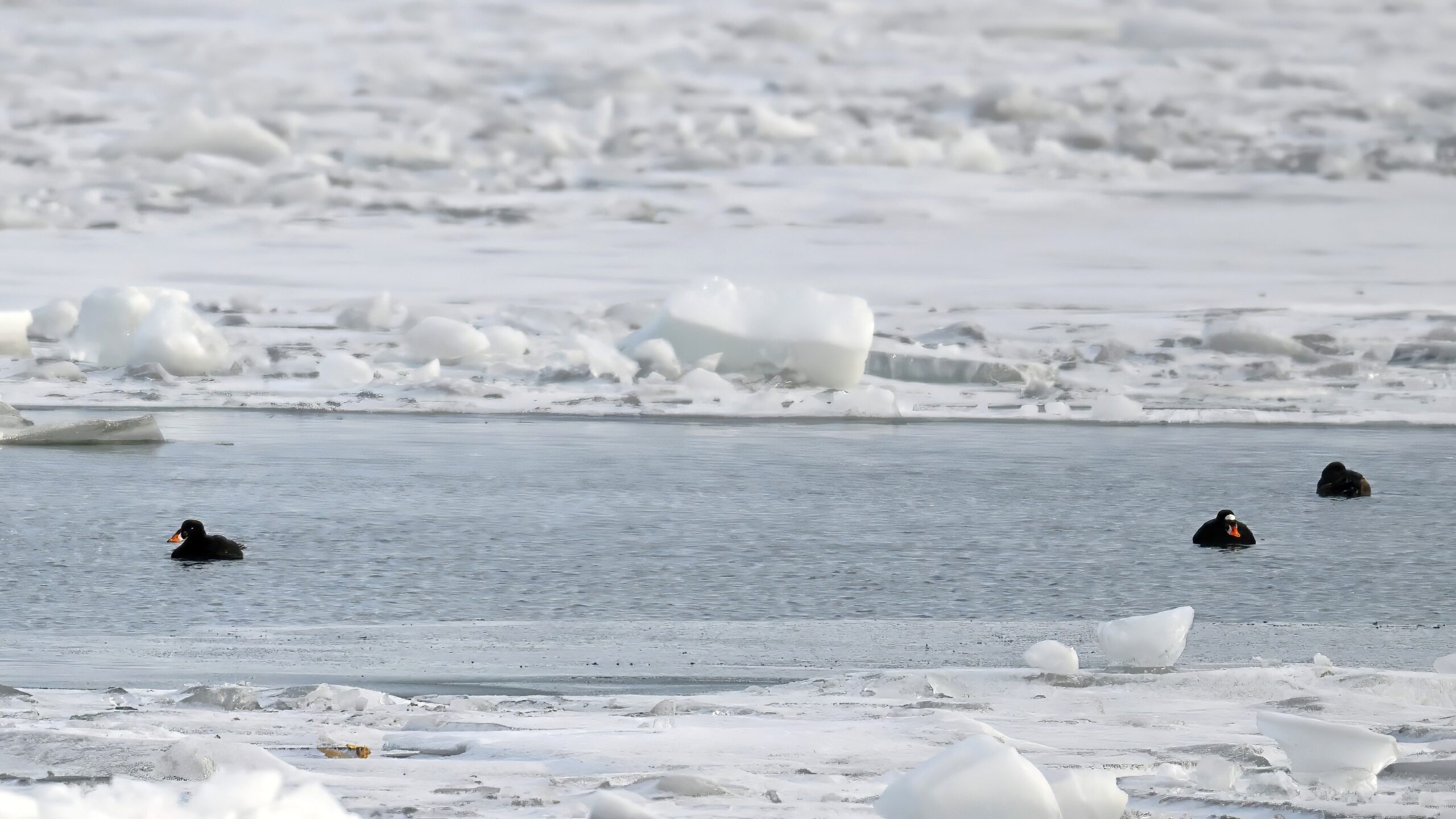 Today’s digital photographs are from South Pier the other early, cold morning, mostly looking east towards outer Lake Erie/Thompson Bay, featuring Surf Scoter and a great, if poorly lit, pair of Common Ravens: