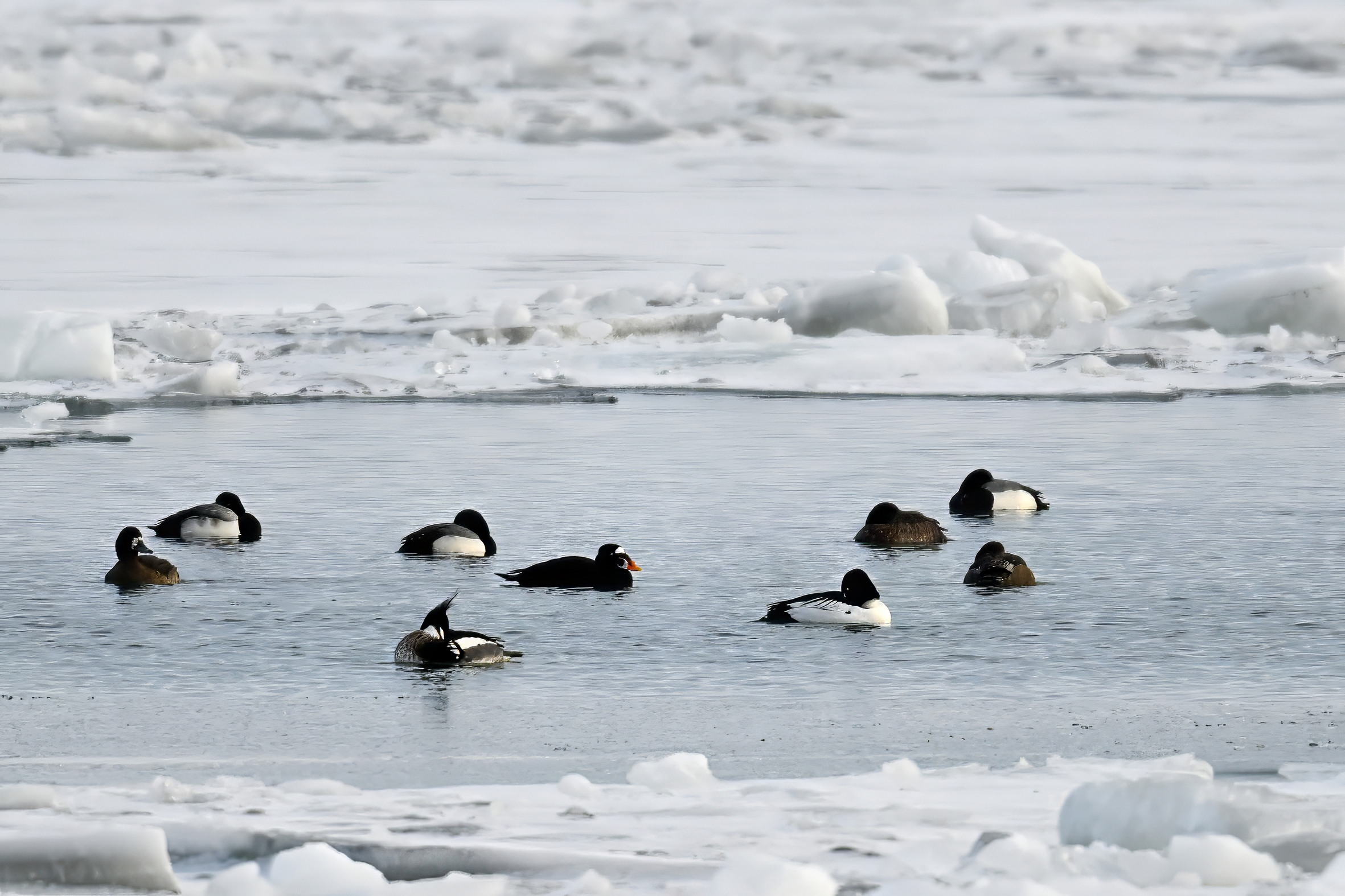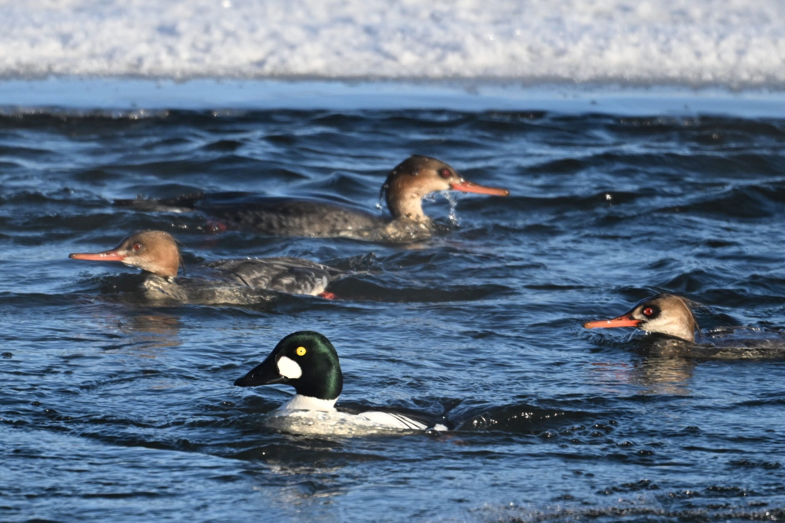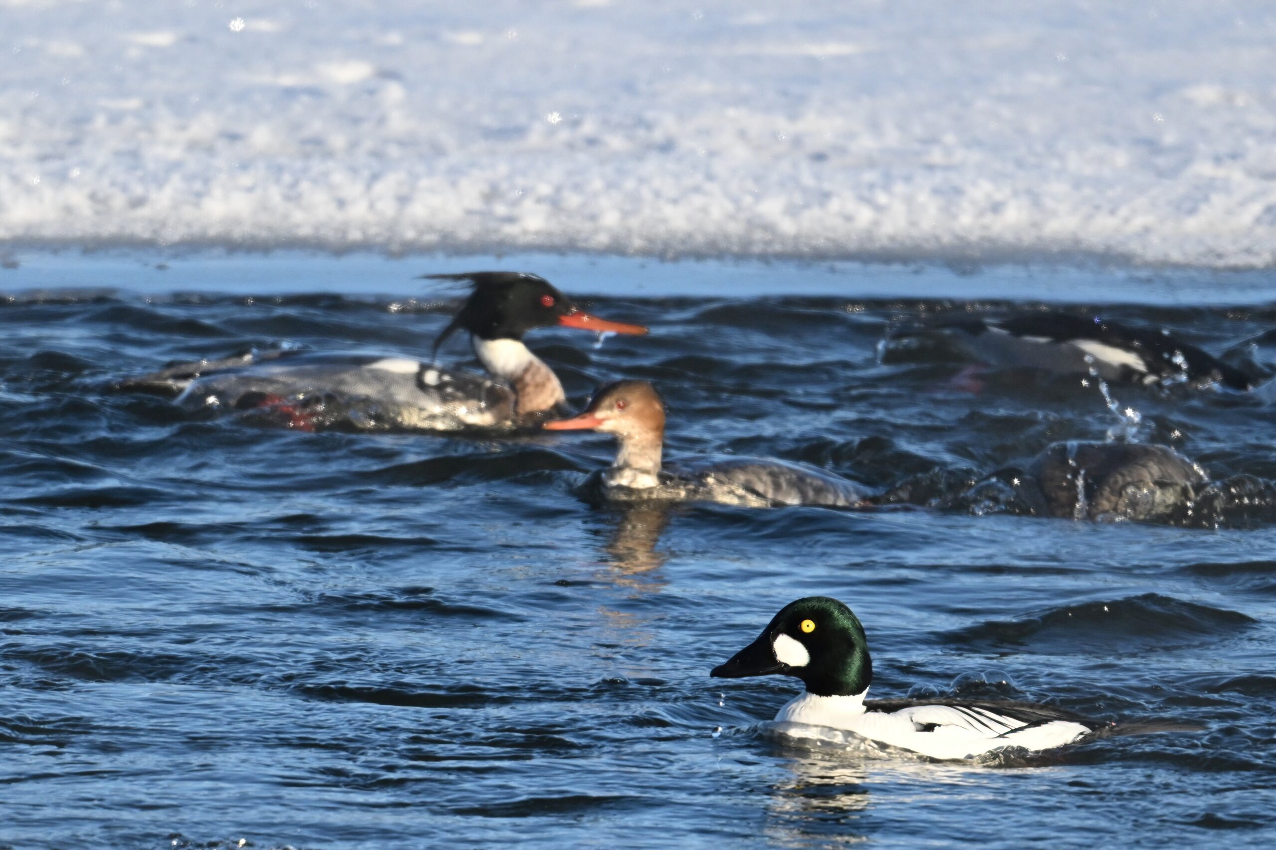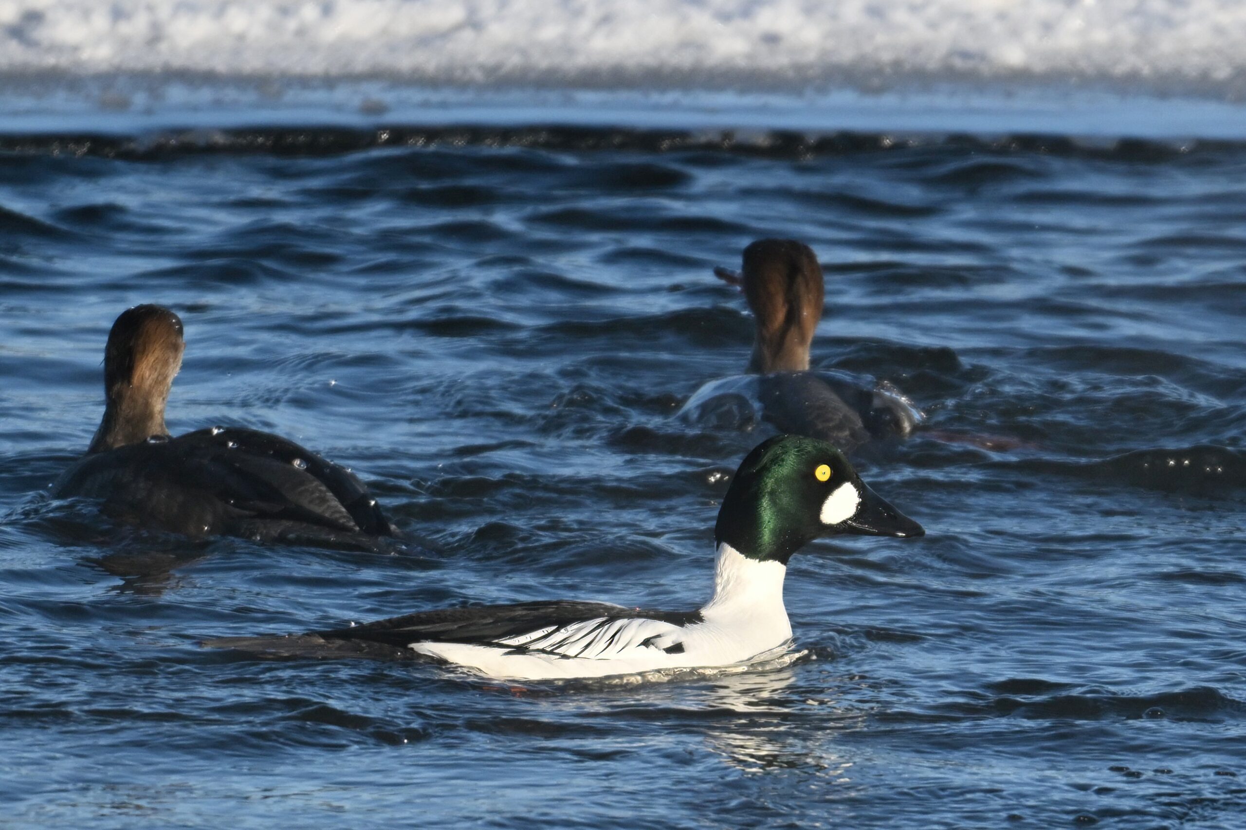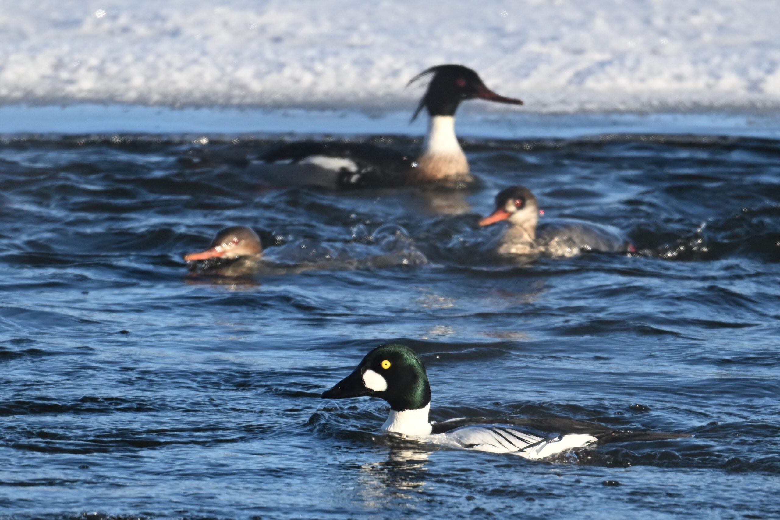Male Common Goldeneye @ center/foreground: