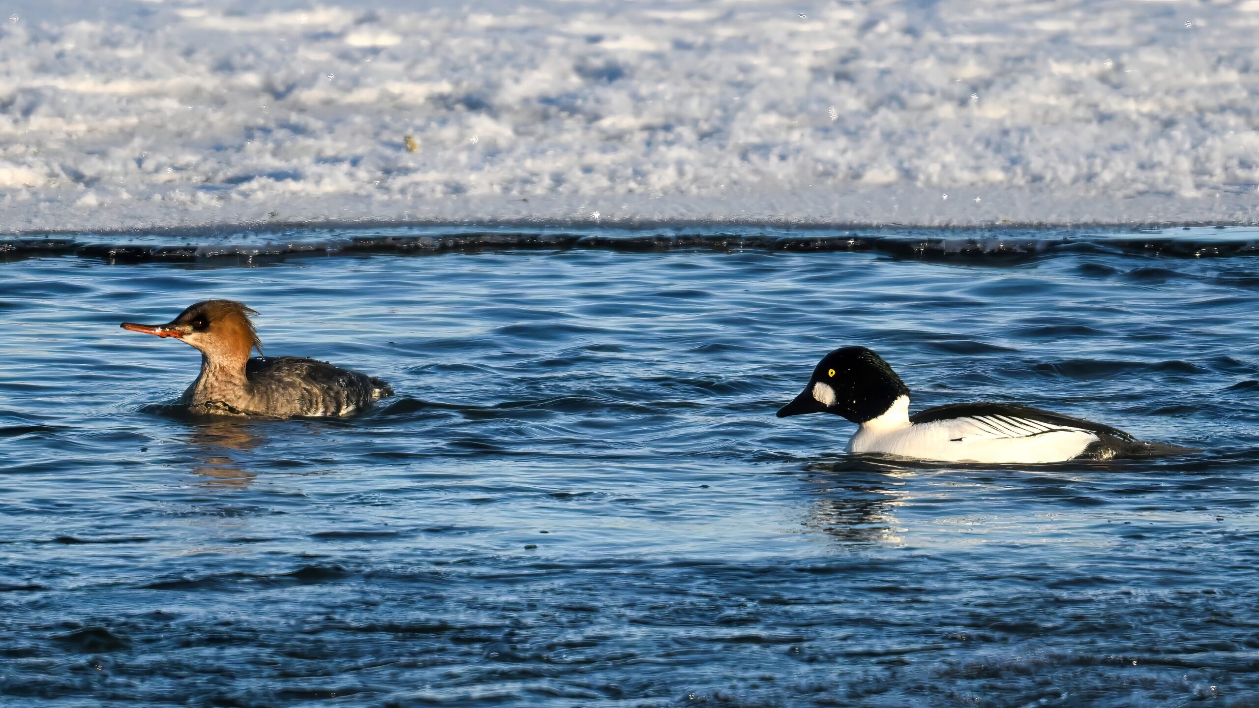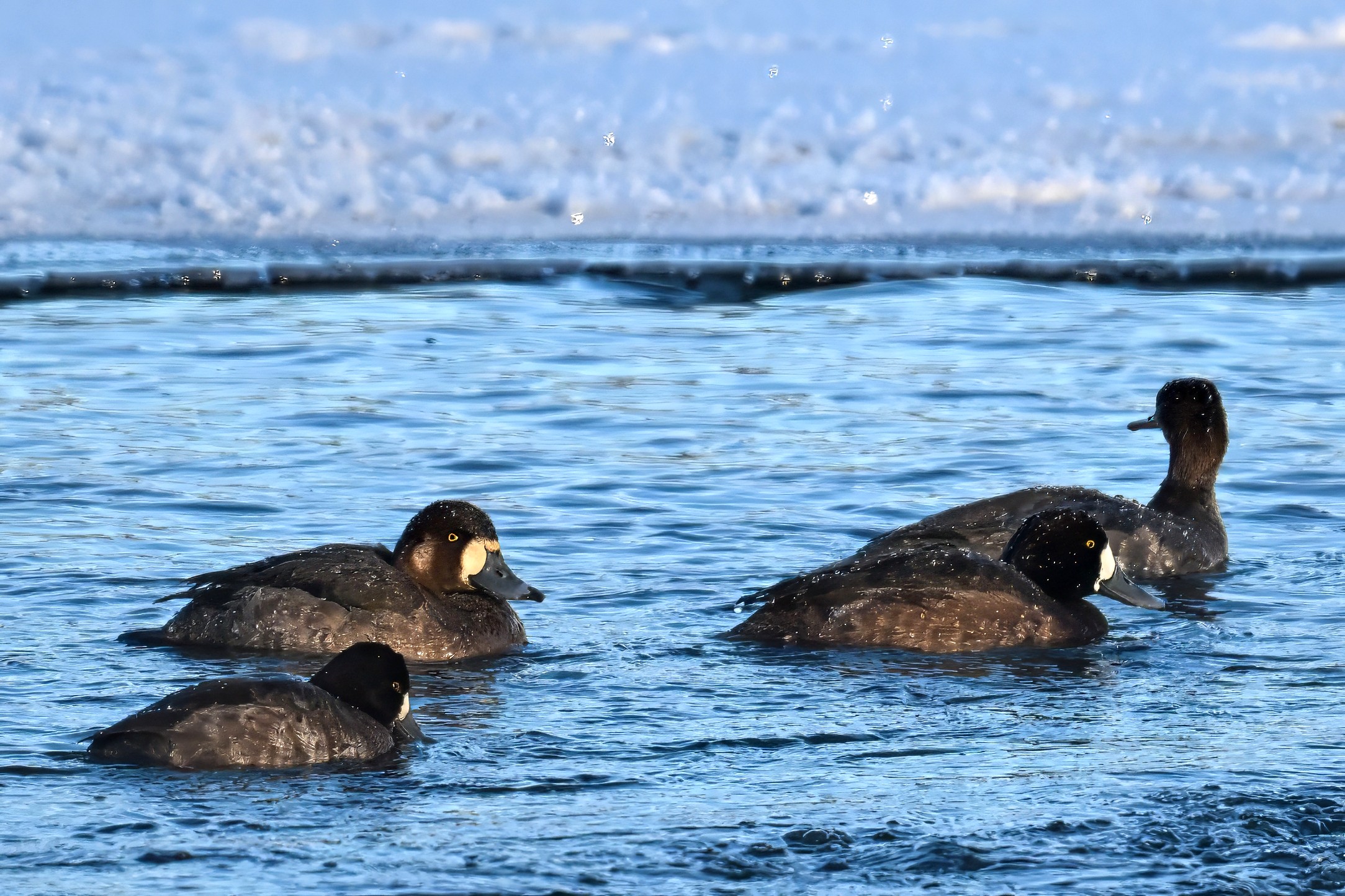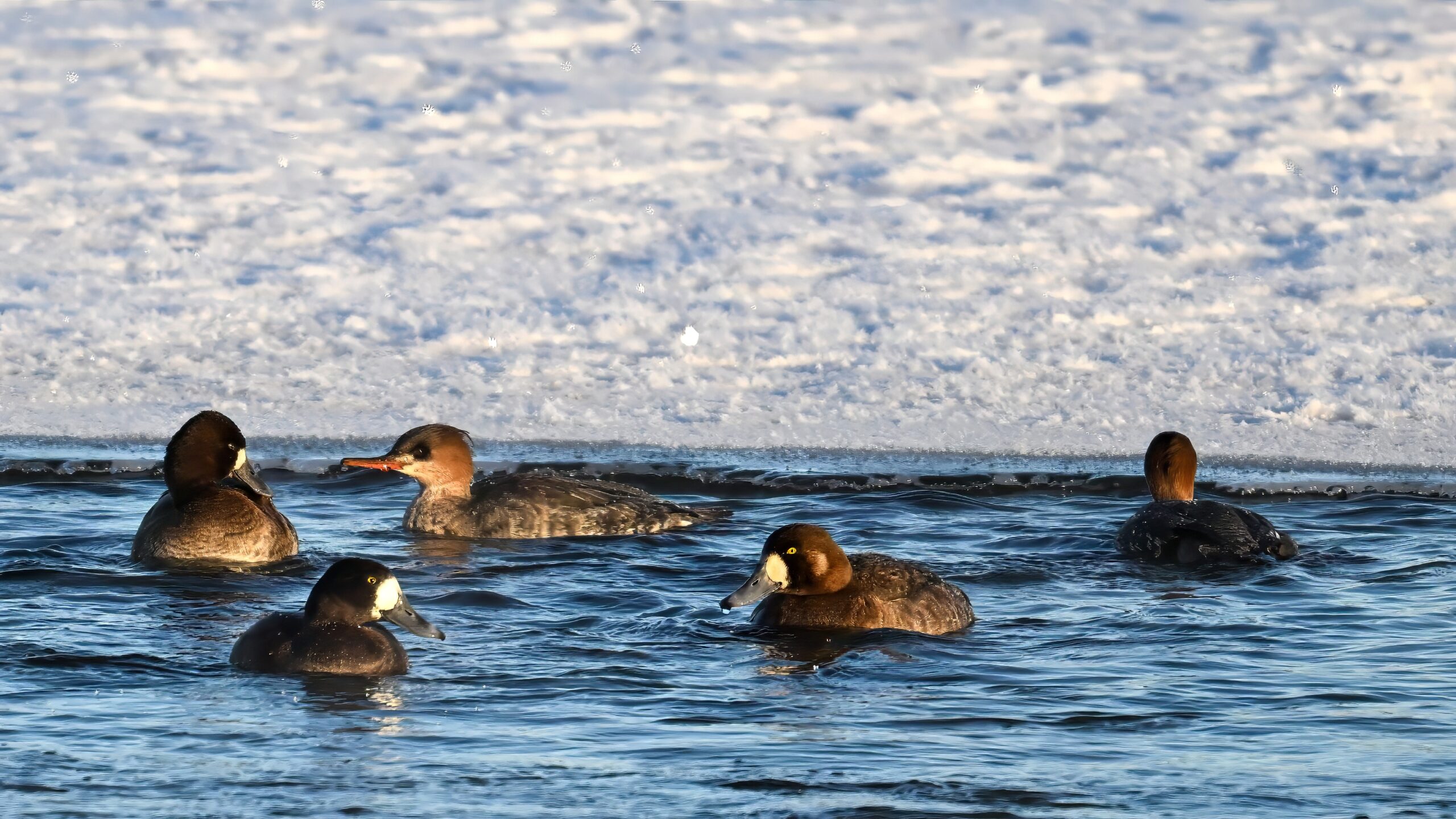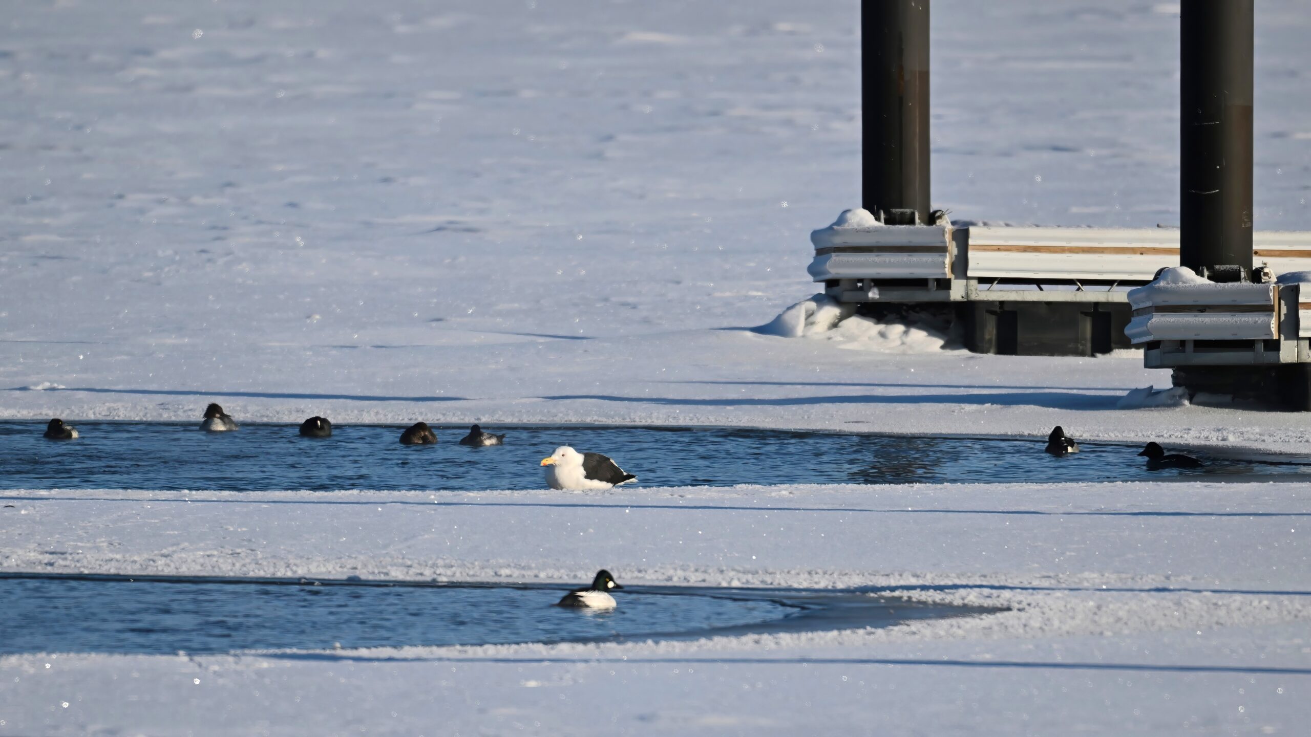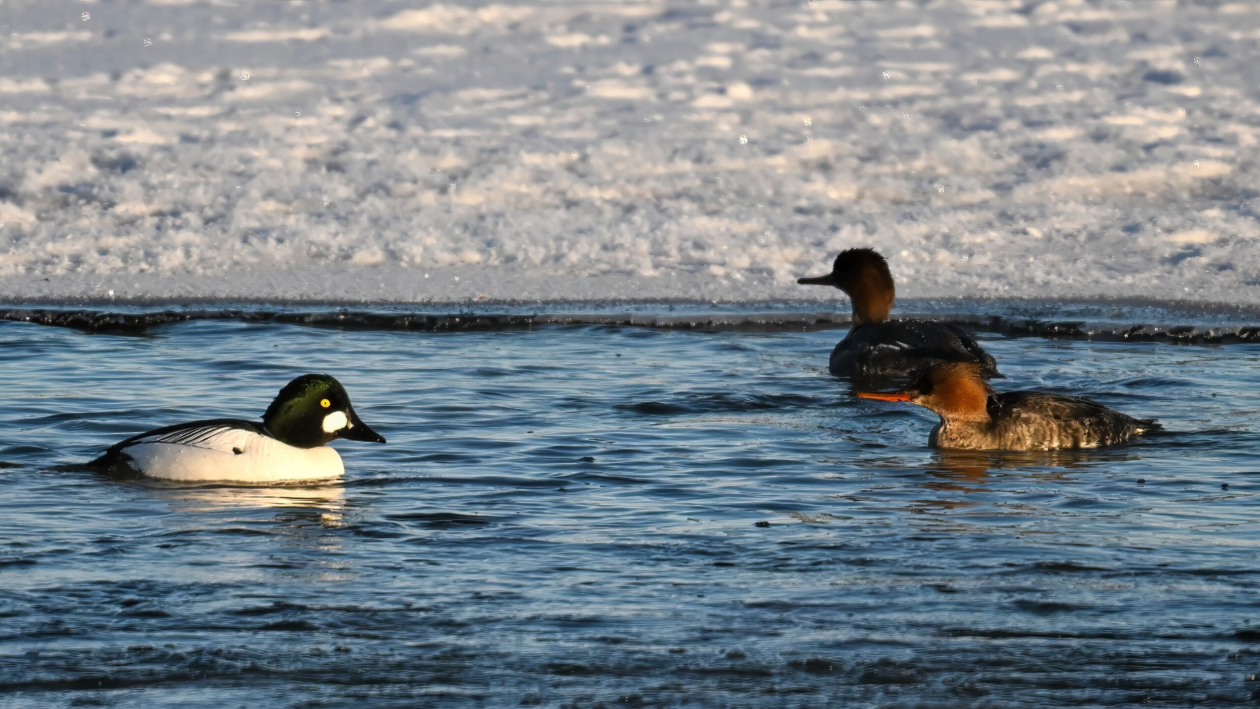 Male Common Goldeneye @ center/foreground: