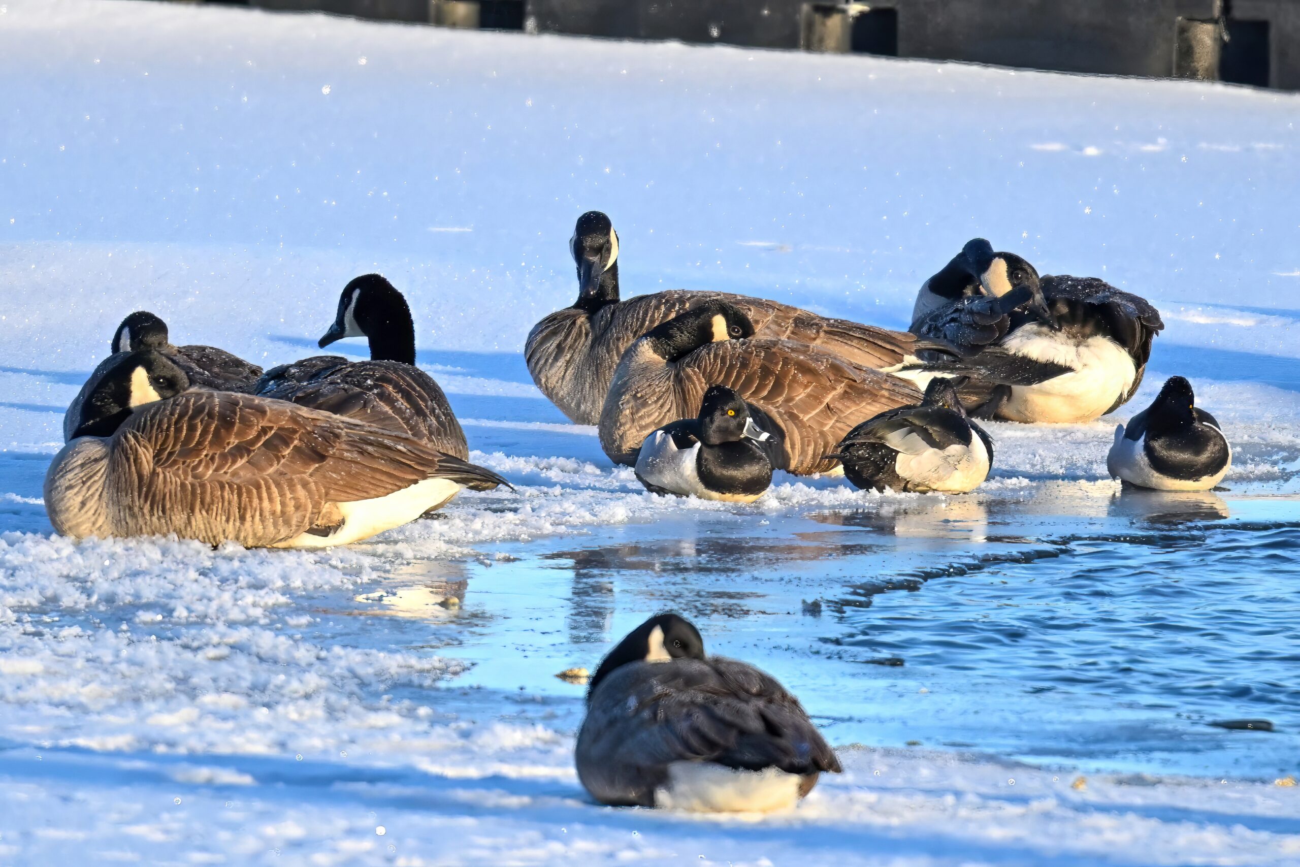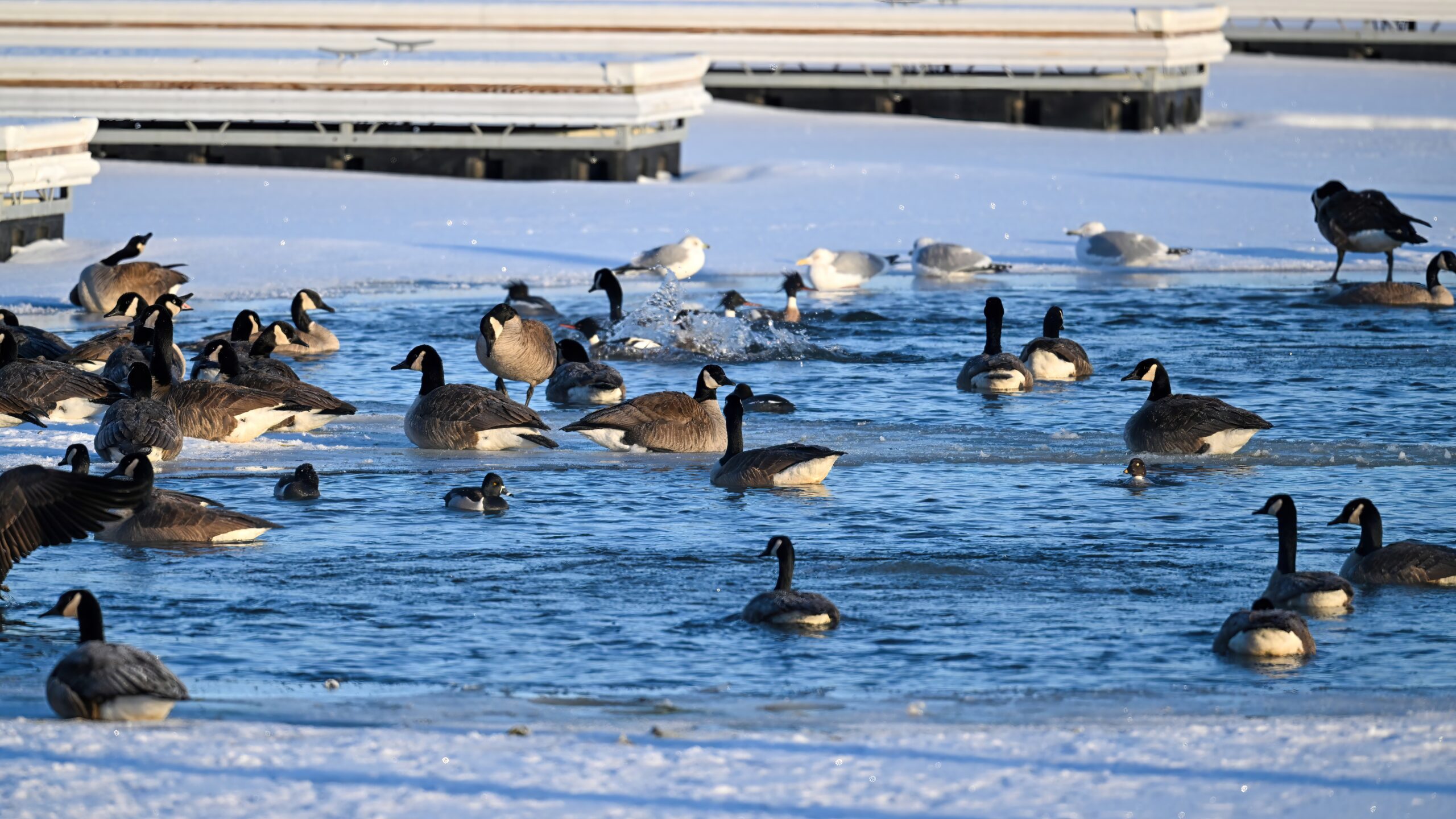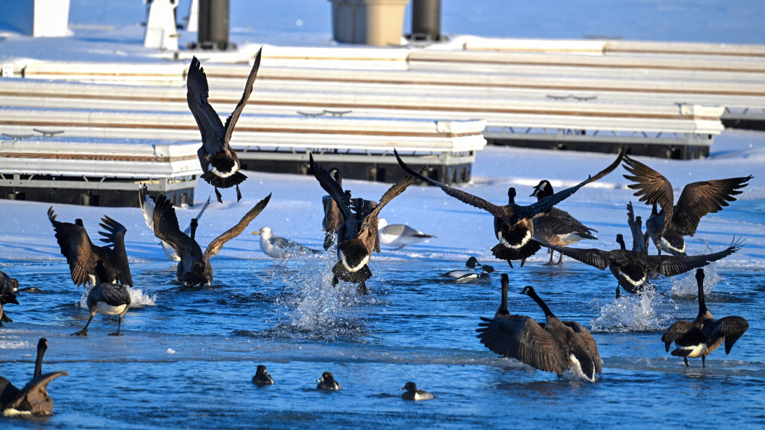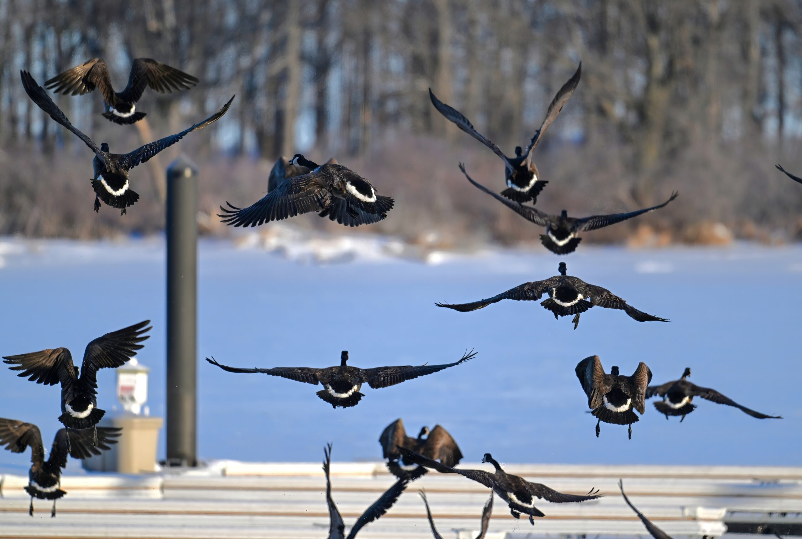 And with the protracted cold weather, even these Canada Geese are finally heading south:
