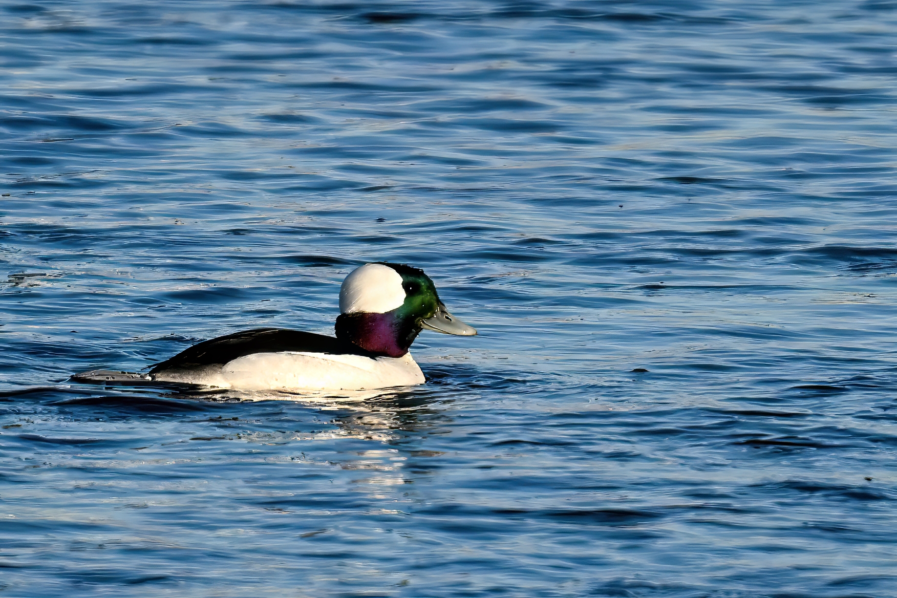 ID: looks like a male Hooded Merganser but without any white on the head/’hood.’ Who knew?