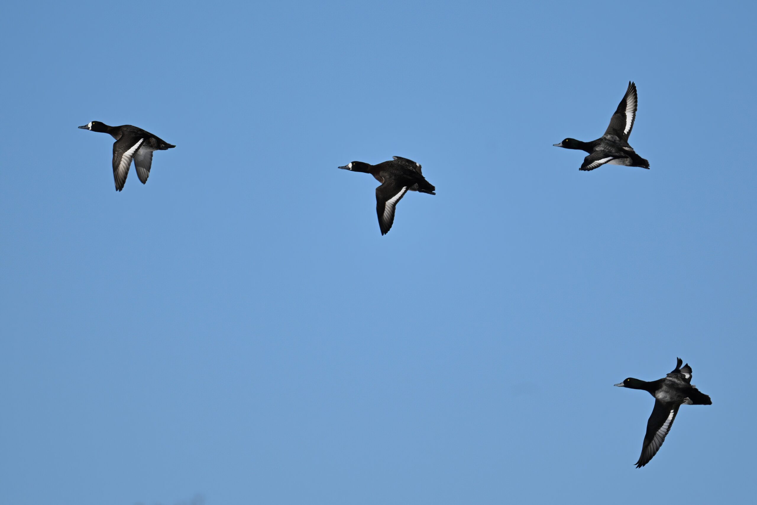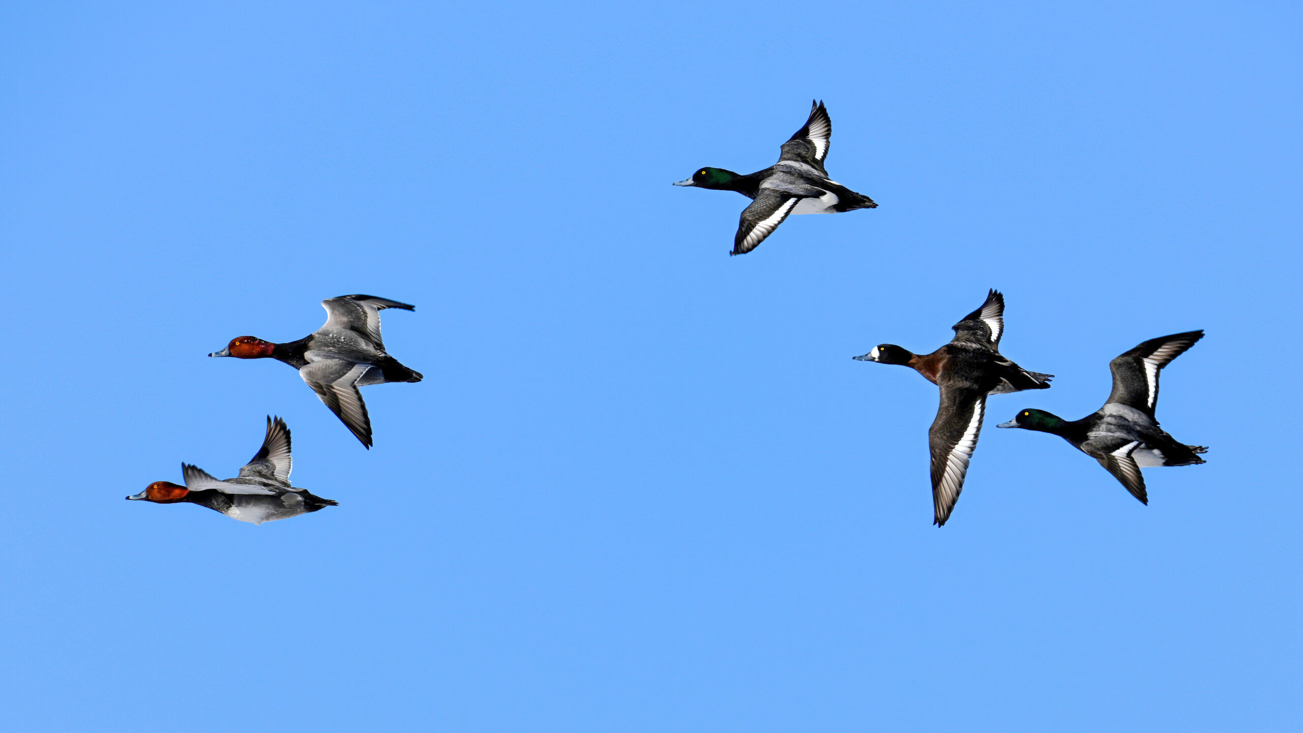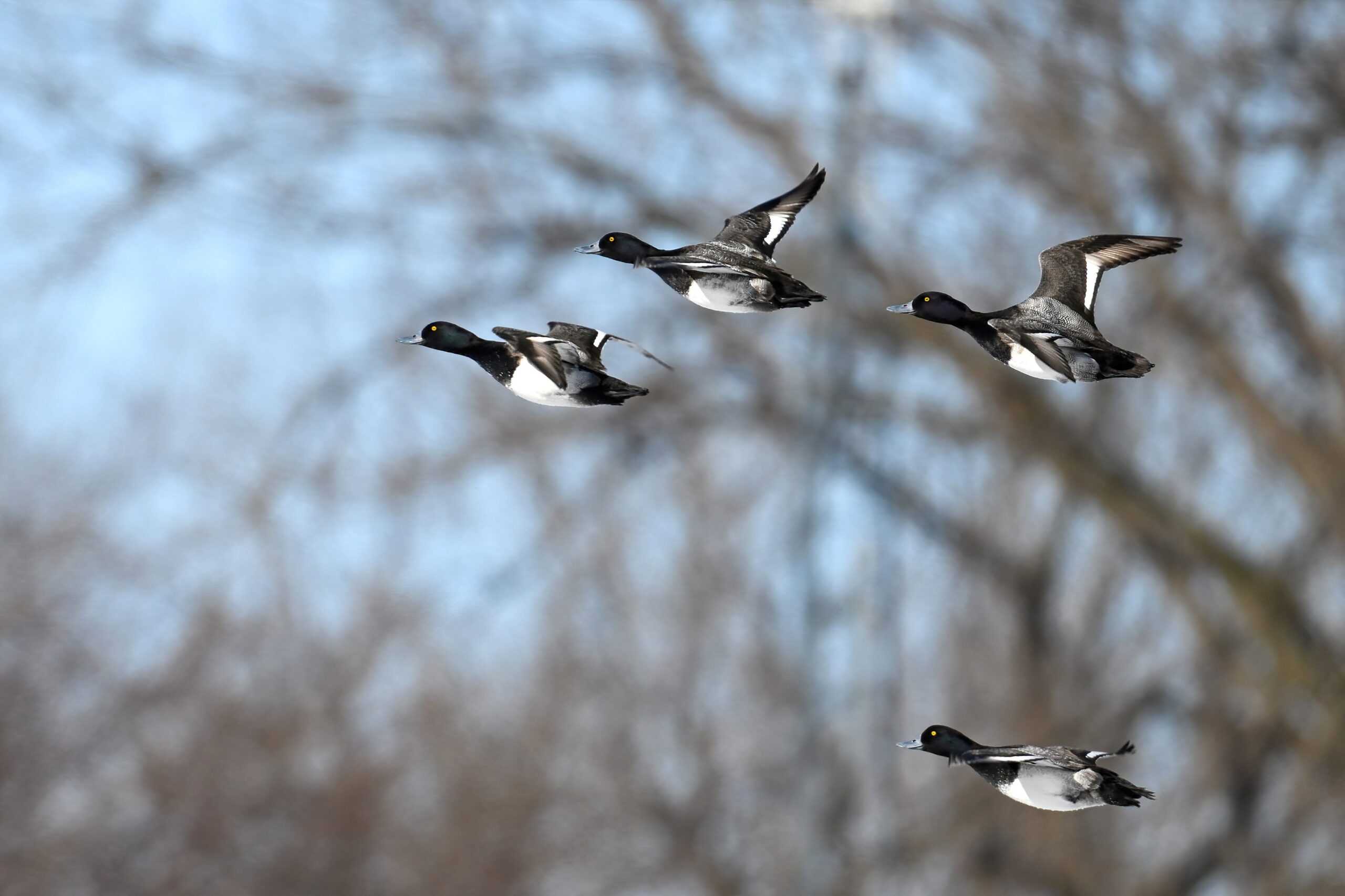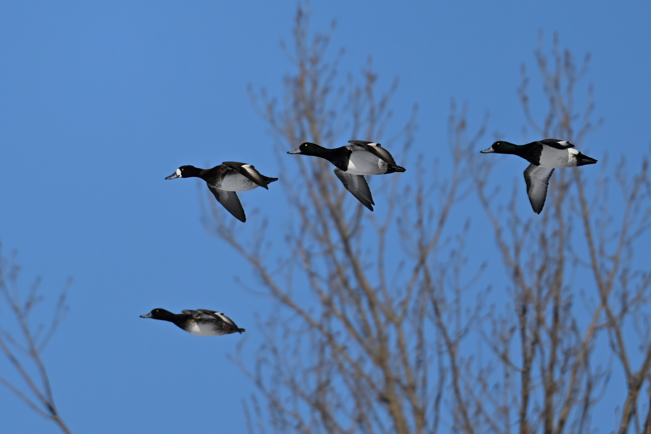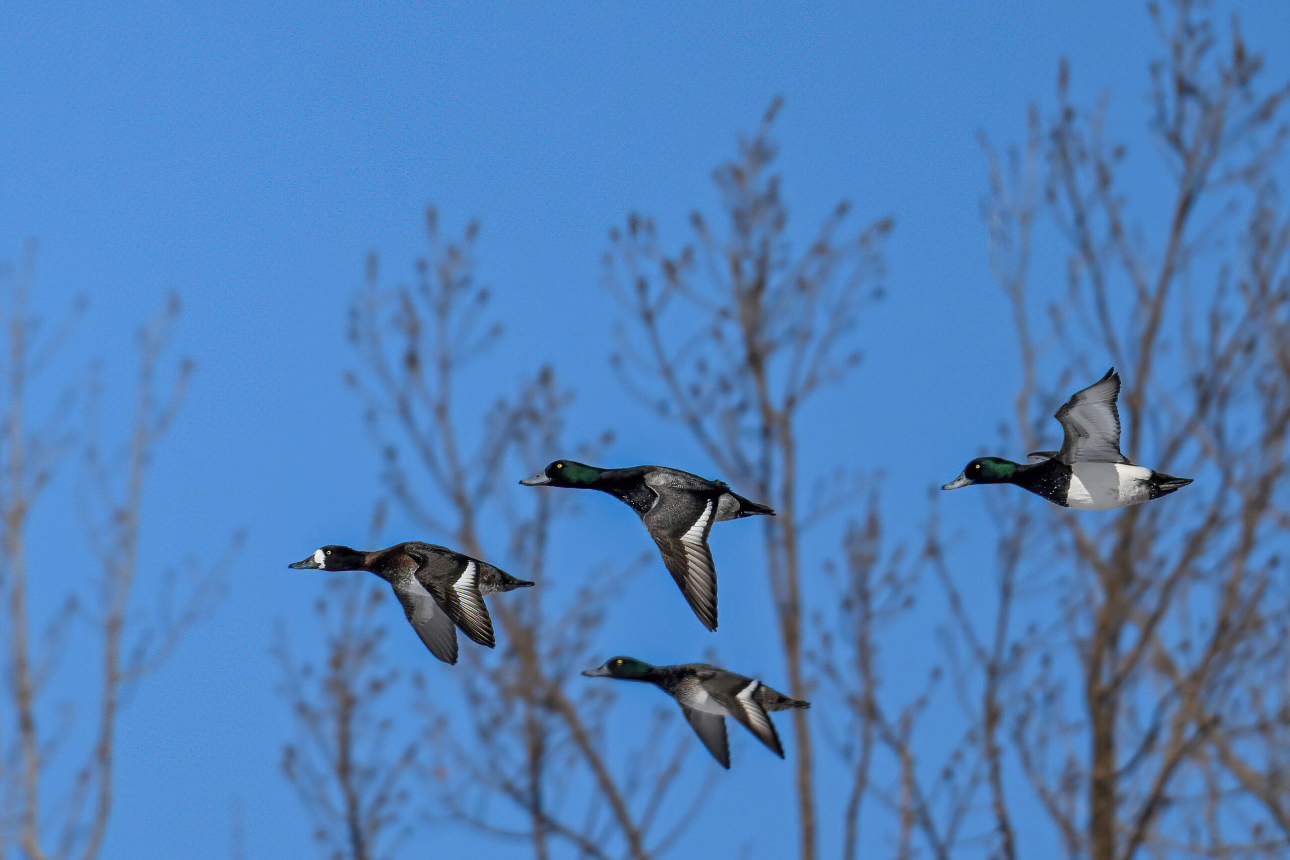 Lesser Scaups in flight