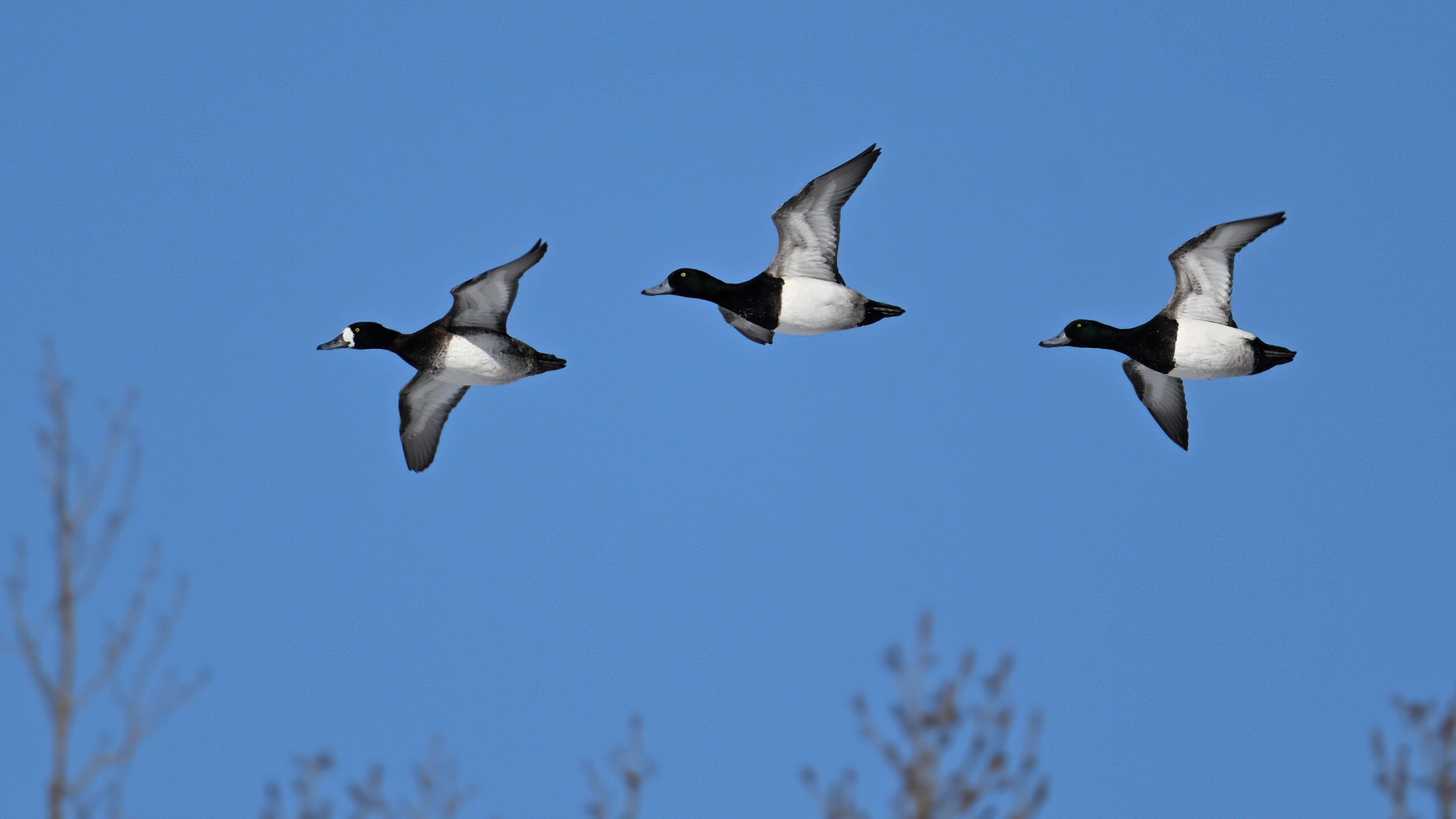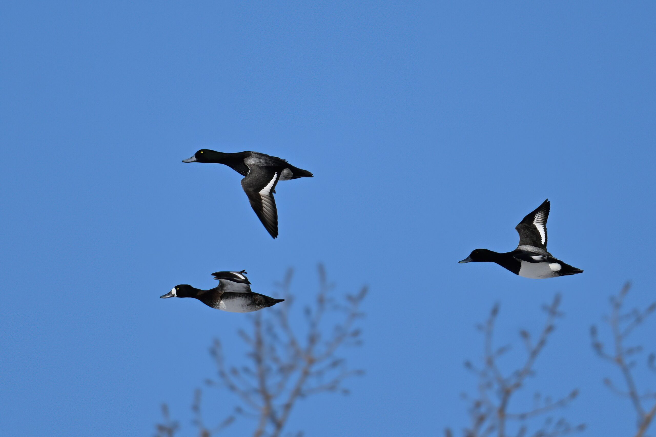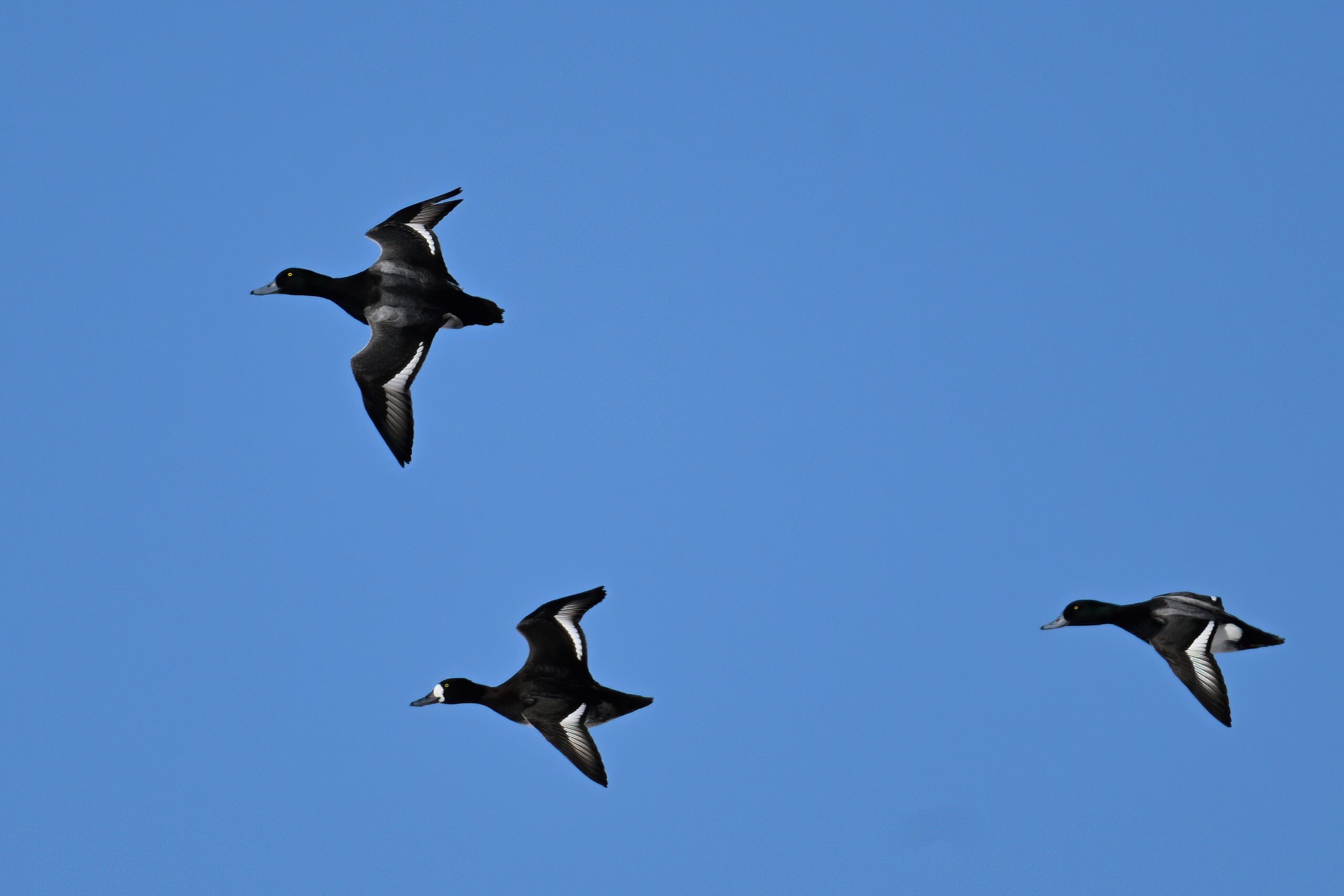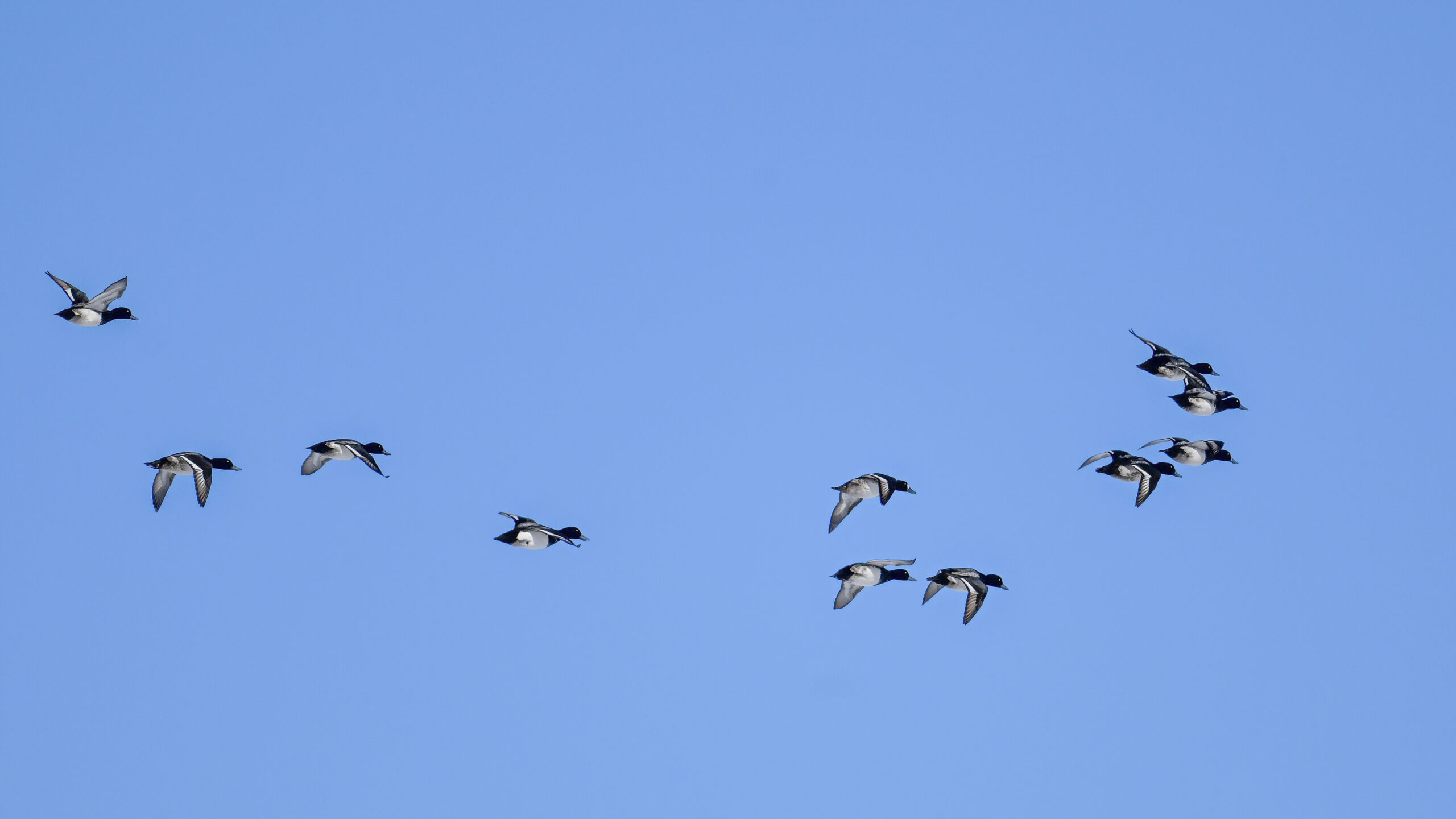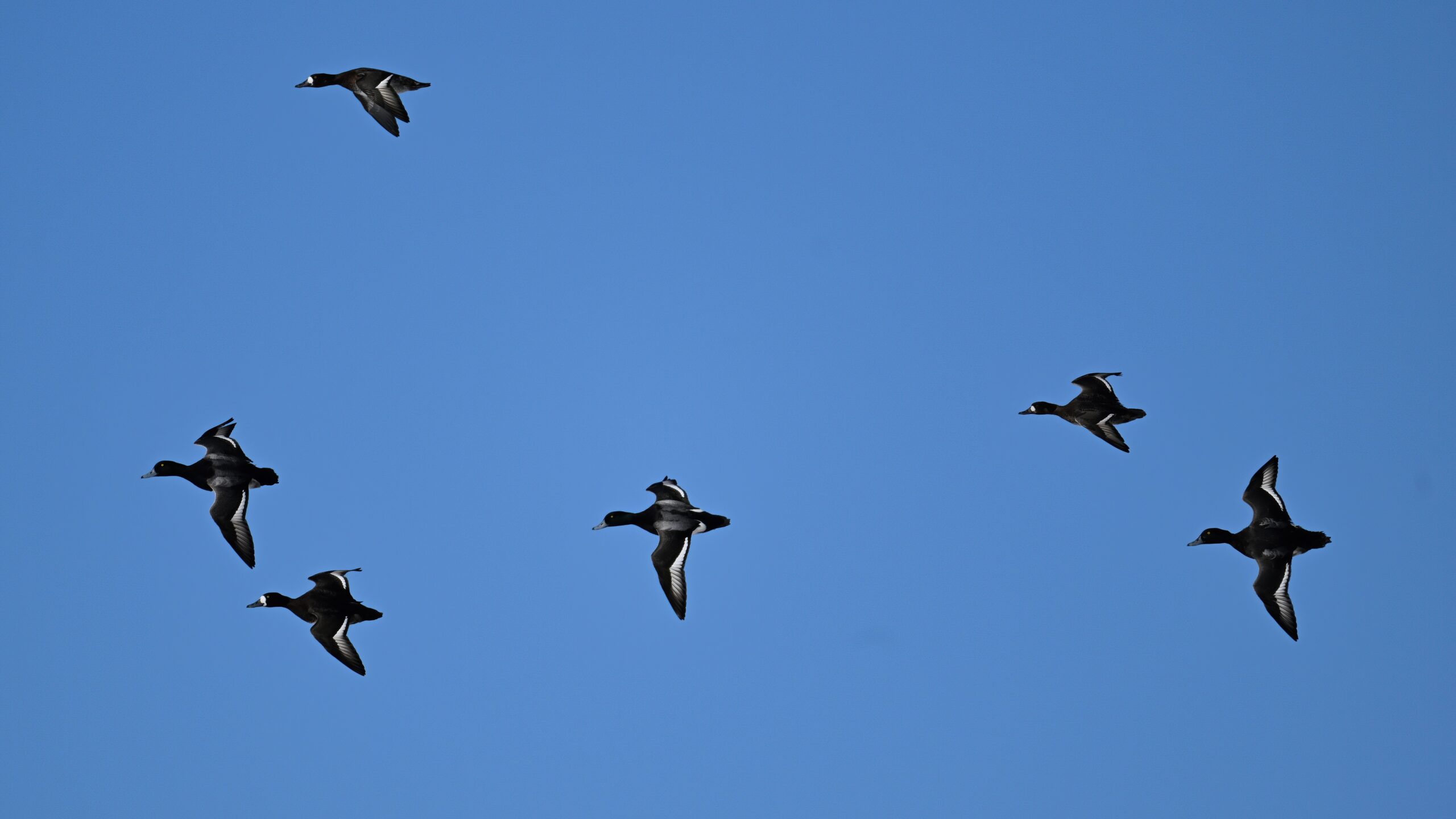 Lesser Scaups in flight