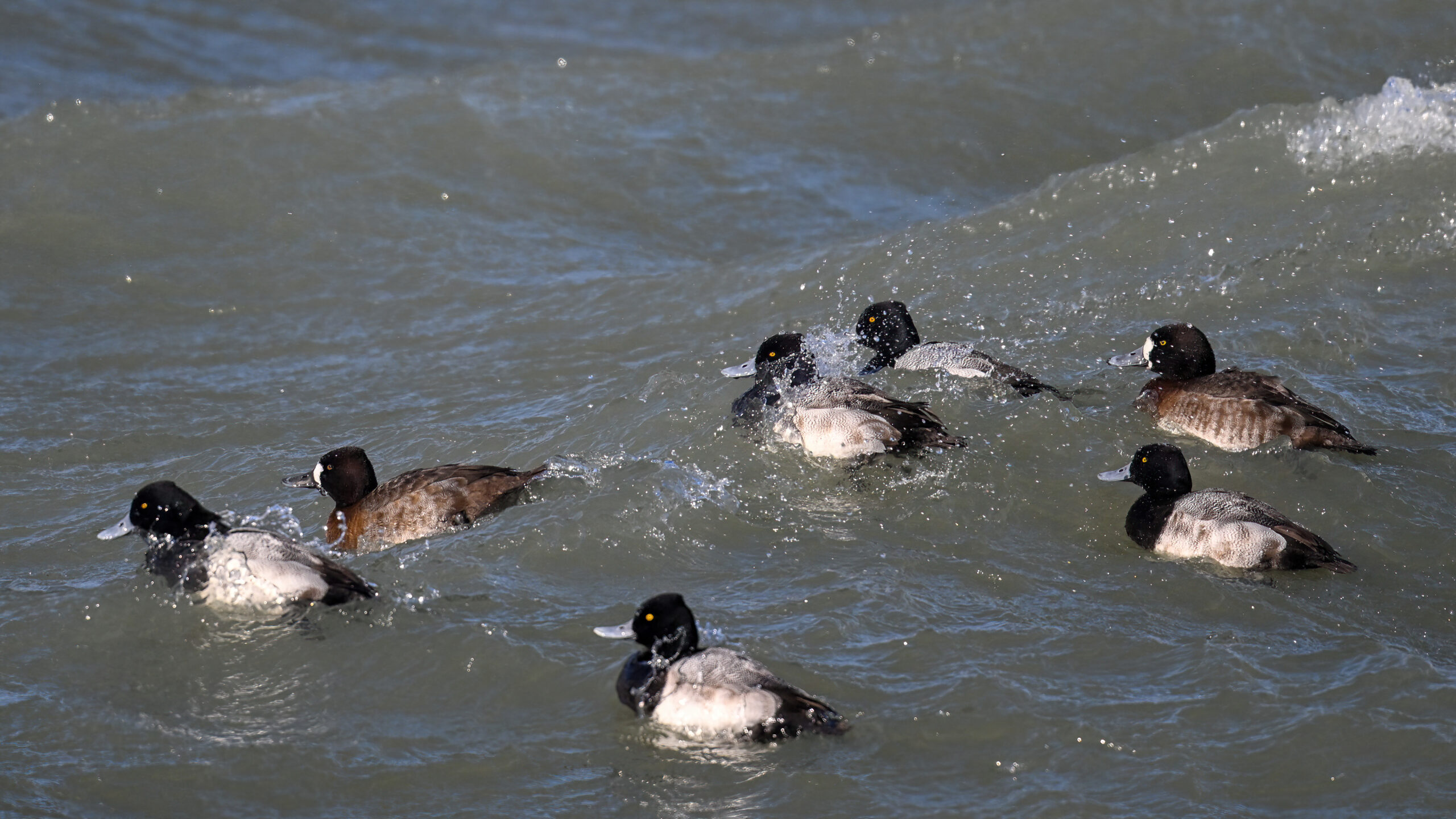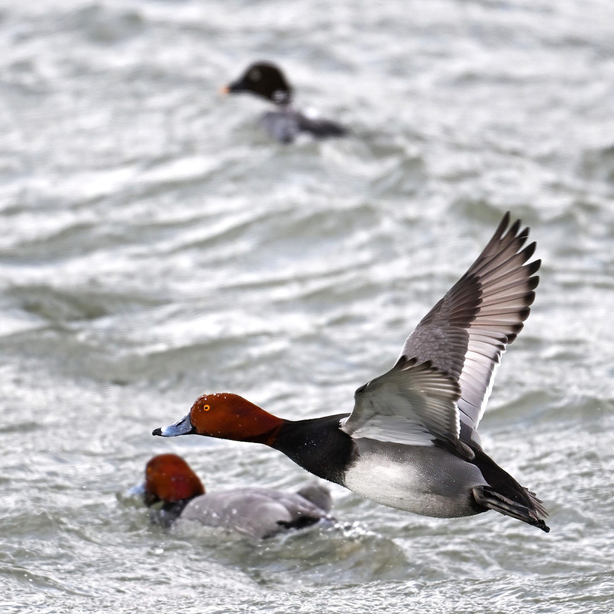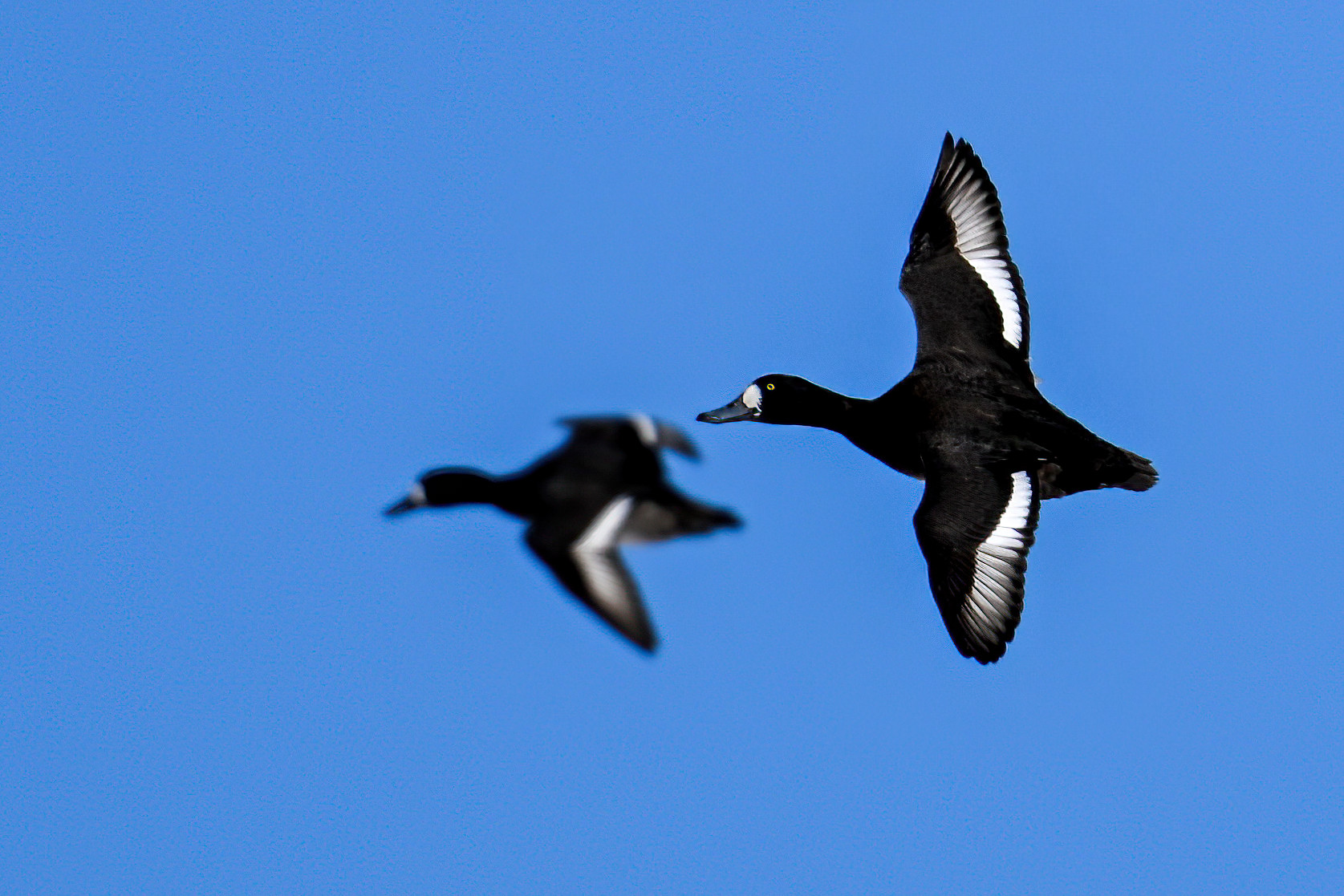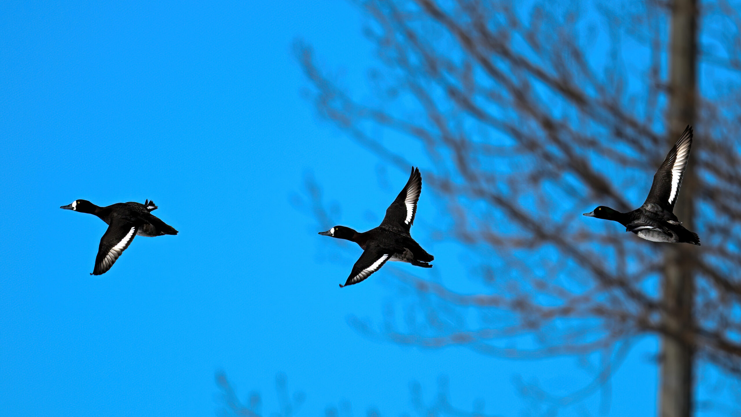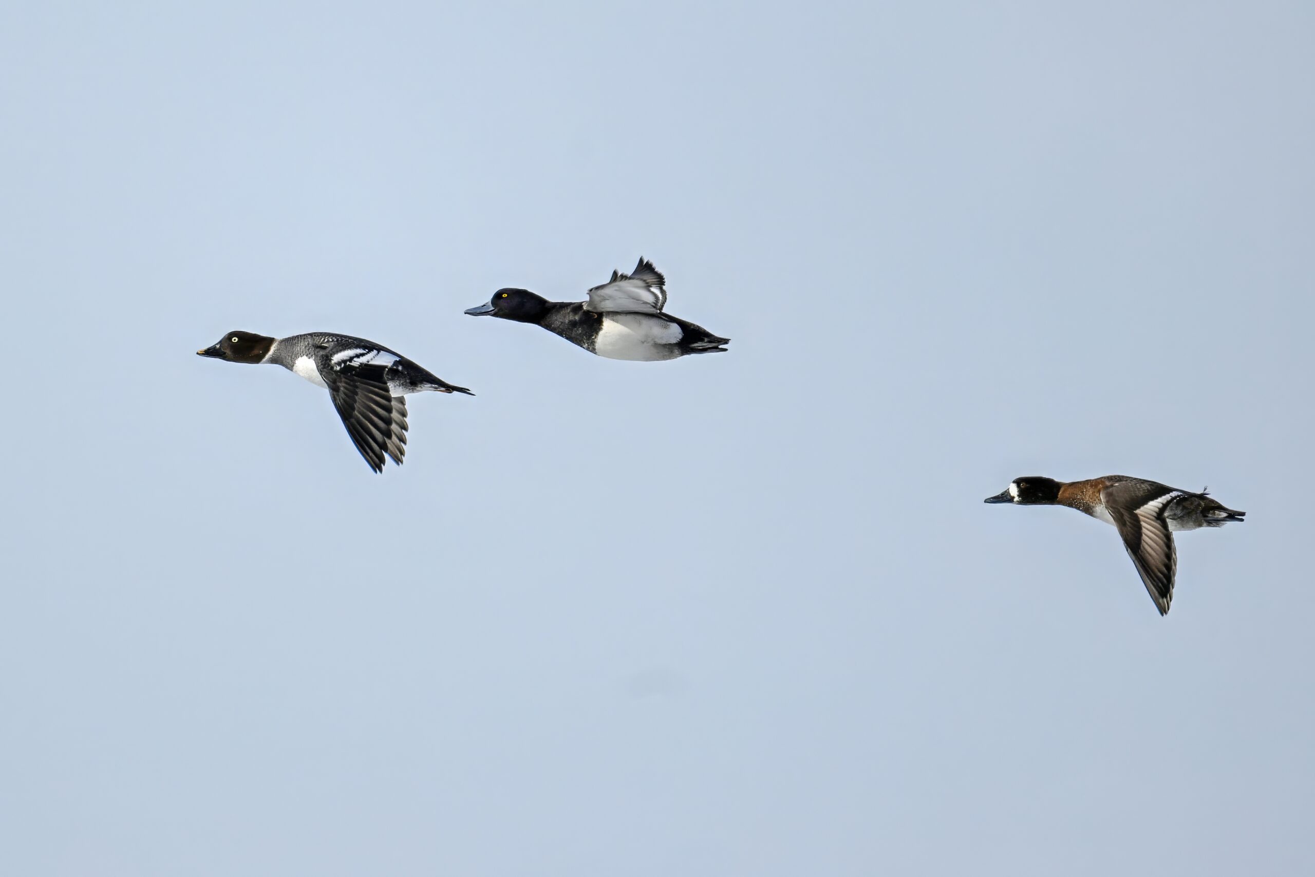 Lesser Scaups in flight