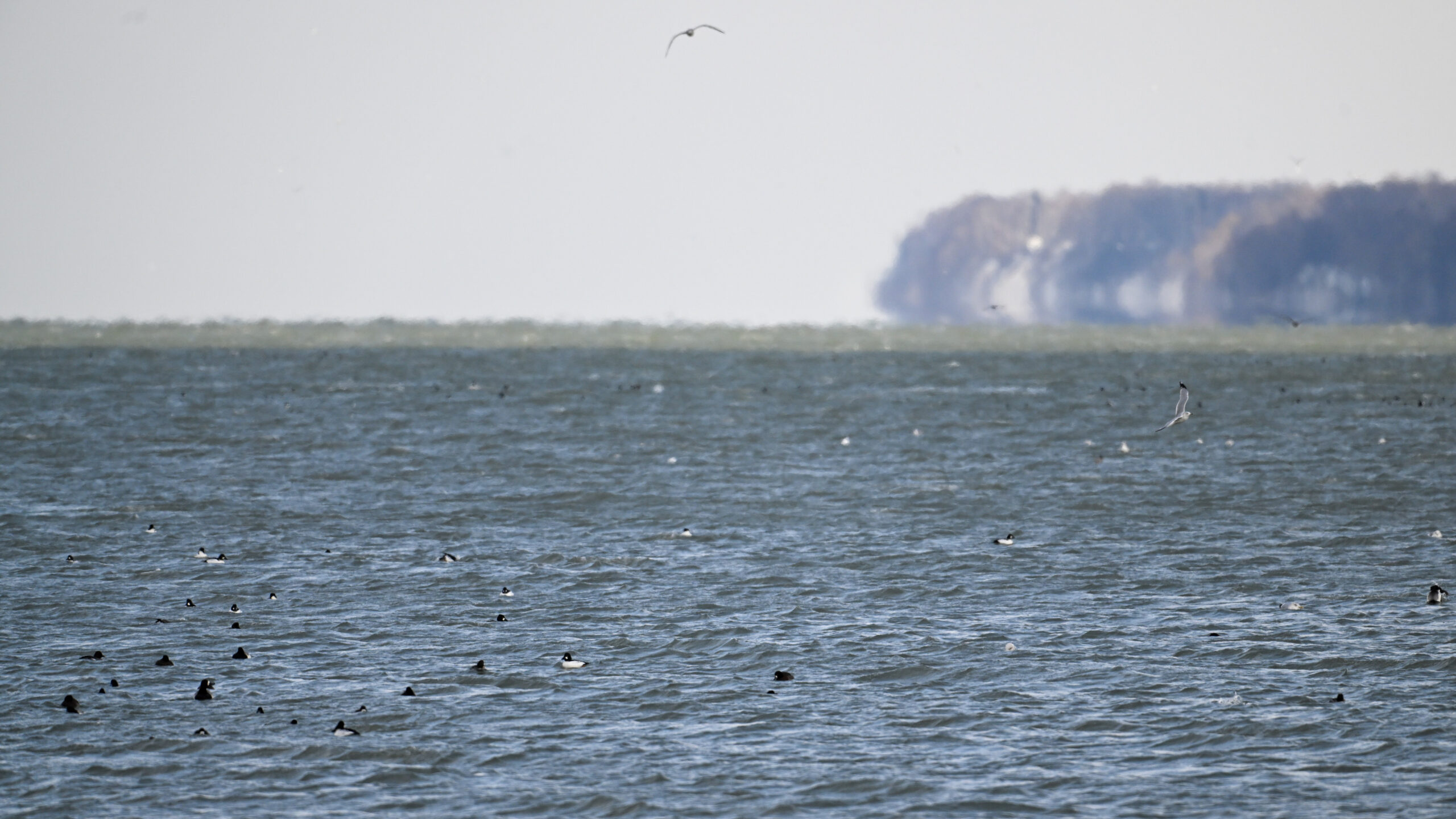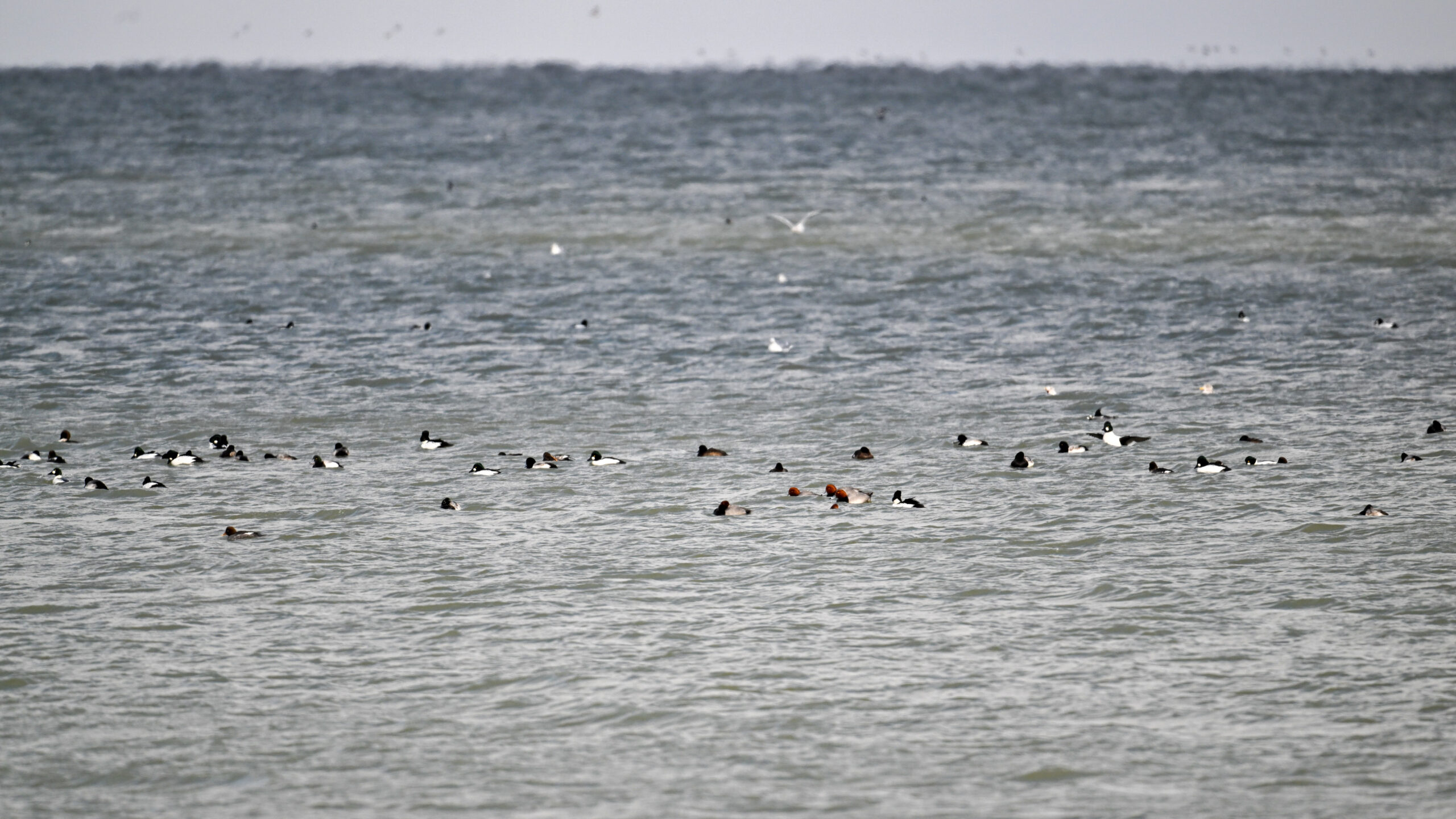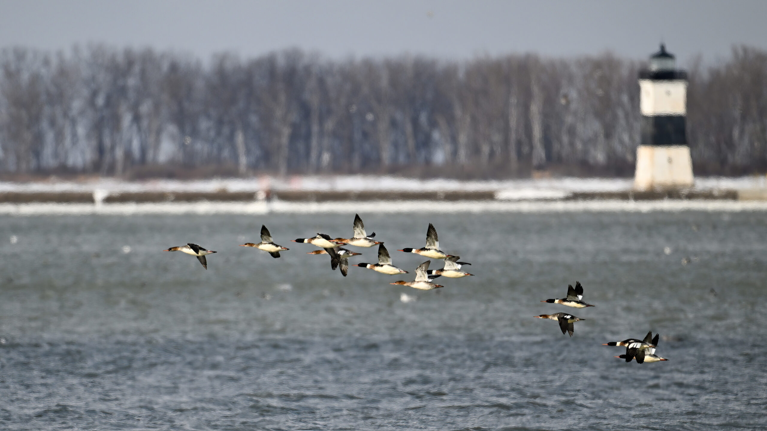 Male Red-breasted MergansersDistant copious gulls on outer Lake ErieLong-tailed DuckMisc duck (e.g., Common Goldeneye) on outer Lake ErieMale Red-breasted MerganserLong-tailed Duck IIFemale or immature Red-breasted MerganserRed-breasted Mergansers in flight IIRed-breasted Mergansers in flight IIIRed-breasted Mergansers in flight w/ North Pier LightImmature male Red-breasted MerganserRed-breasted Mergansers in flight VIProbably male Greater ScaupRed-breasted Mergansers in flight VIILesser Scaup (left, upper right) + Bufflehead (middle right)Mostly RedheadsScaups and Buffleheads IIAnother view of distant gull “feeding frenzy”Redheads (male – left, female – upper right)View east towards New York stateMale Redhead in flightGulls and ducks off old Erie Coke PlantLong-tailed Duck IIIDistant gulls IIIMore RedheadsMale Redhead in flight IIMergansers in flight VIIIRedheads and a ScaupPoorly lit comparison – Red-breasted (top) and Common (bottom) Mergansers, both male