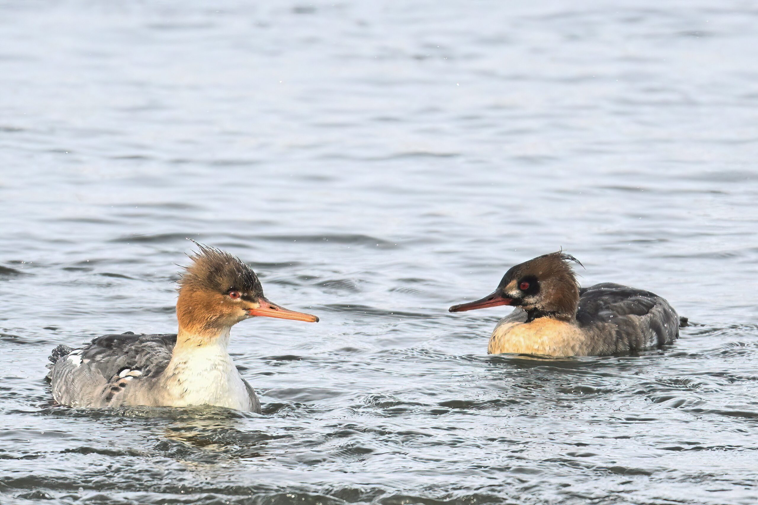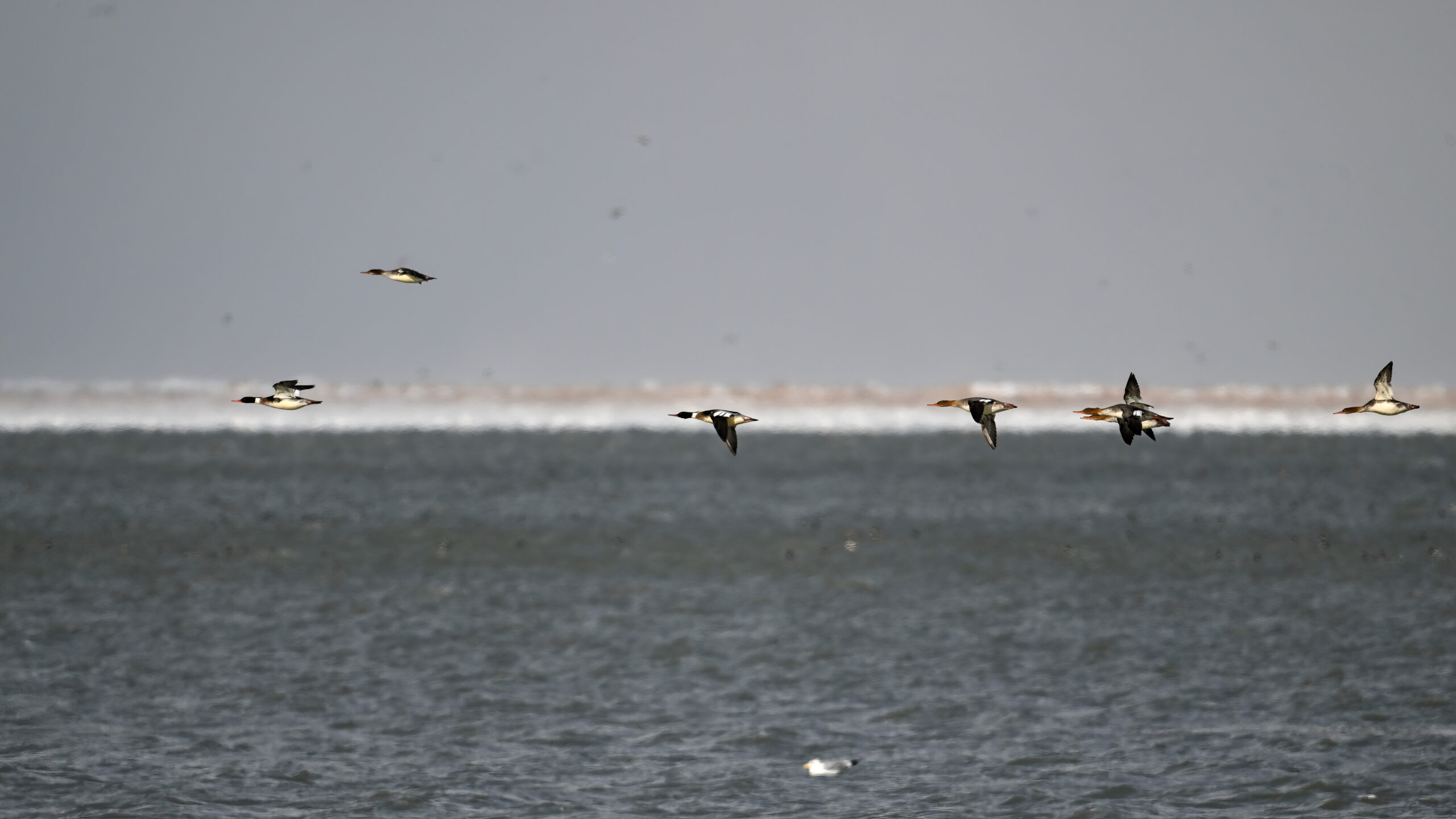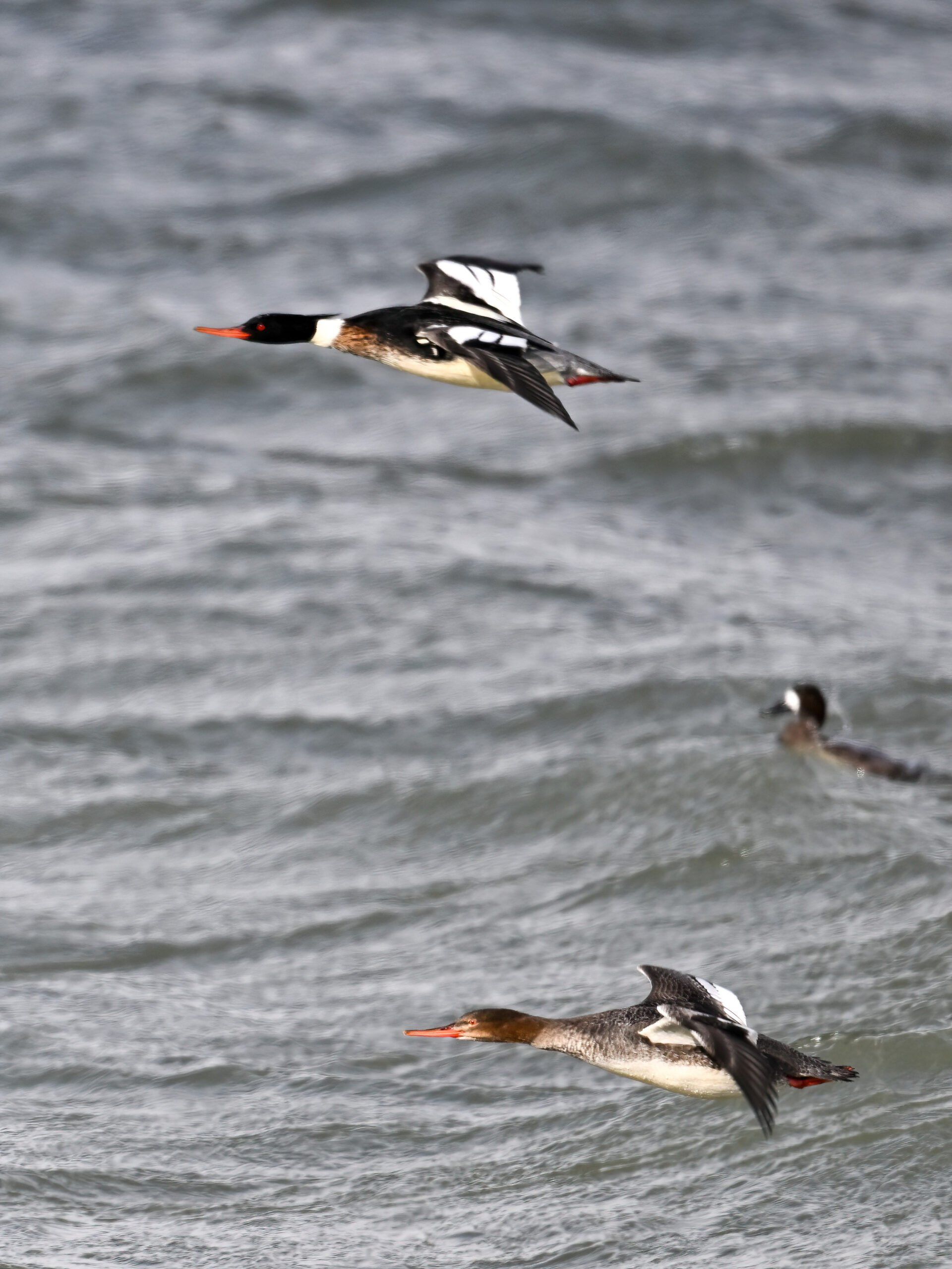 Male Red-breasted MergansersDistant copious gulls on outer Lake ErieLong-tailed DuckMisc duck (e.g., Common Goldeneye) on outer Lake ErieMale Red-breasted MerganserLong-tailed Duck IIFemale or immature Red-breasted MerganserRed-breasted Mergansers in flight IIRed-breasted Mergansers in flight IIIRed-breasted Mergansers in flight w/ North Pier LightImmature male Red-breasted MerganserRed-breasted Mergansers in flight VIProbably male Greater ScaupRed-breasted Mergansers in flight VIILesser Scaup (left, upper right) + Bufflehead (middle right)Mostly RedheadsScaups and Buffleheads IIAnother view of distant gull “feeding frenzy”Redheads (male – left, female – upper right)View east towards New York stateMale Redhead in flightGulls and ducks off old Erie Coke PlantLong-tailed Duck IIIDistant gulls IIIMore RedheadsMale Redhead in flight IIMergansers in flight VIIIRedheads and a ScaupPoorly lit comparison – Red-breasted (top) and Common (bottom) Mergansers, both male